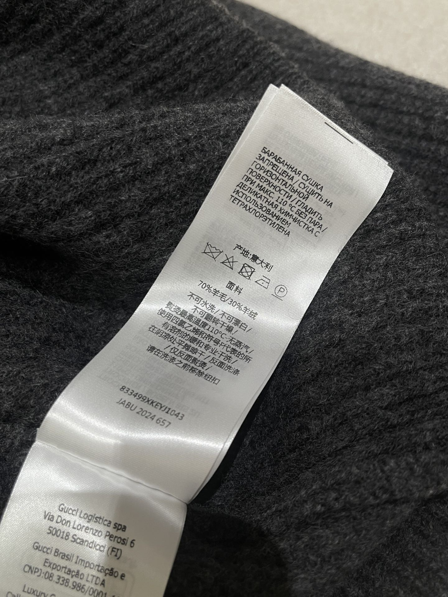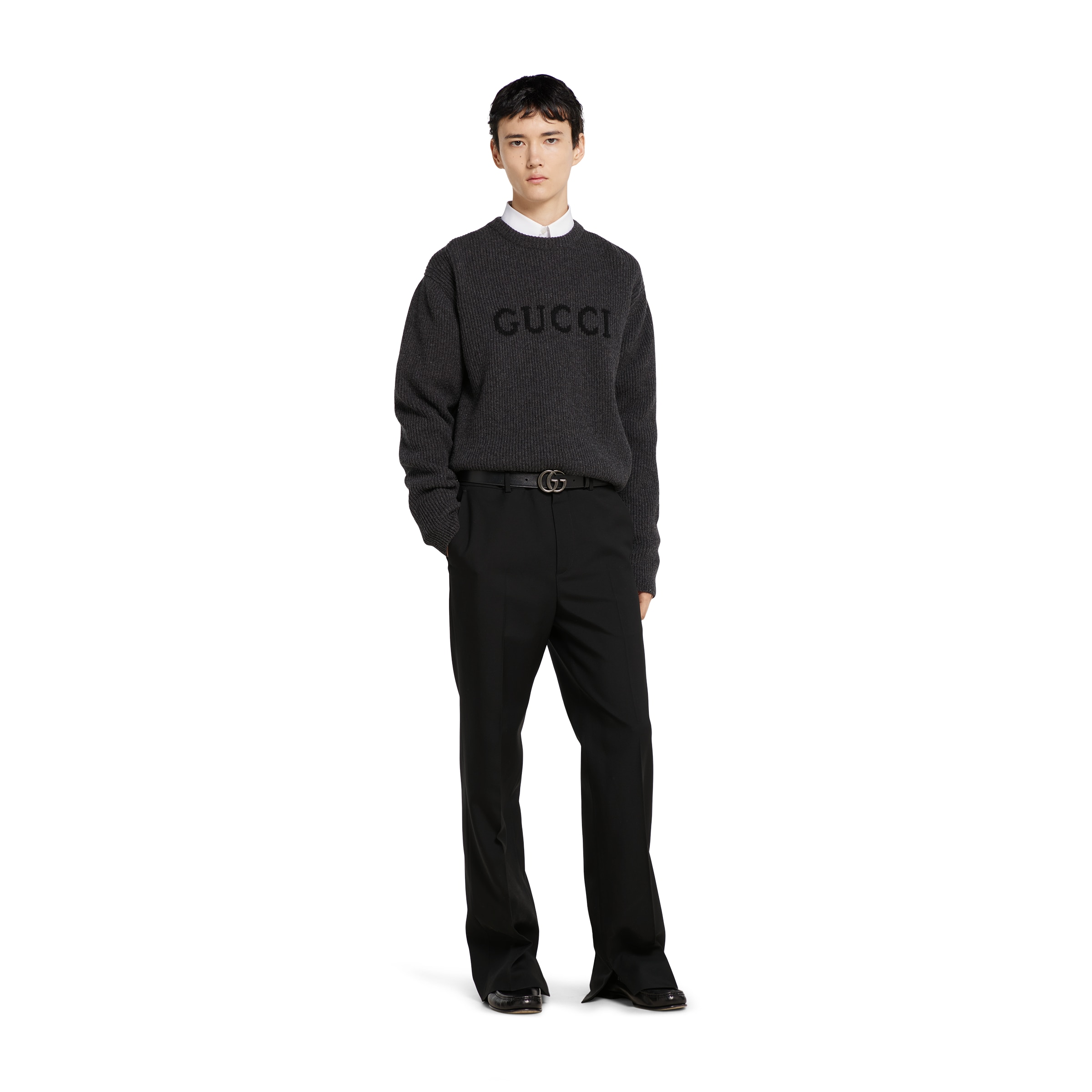 This Gucci clothing showcases the brand's exceptional craftsmanship and attention to detail. Crafted from premium cashmere, wool, in a stunning black / grey colorway, this piece combines timeless luxury with modern style.