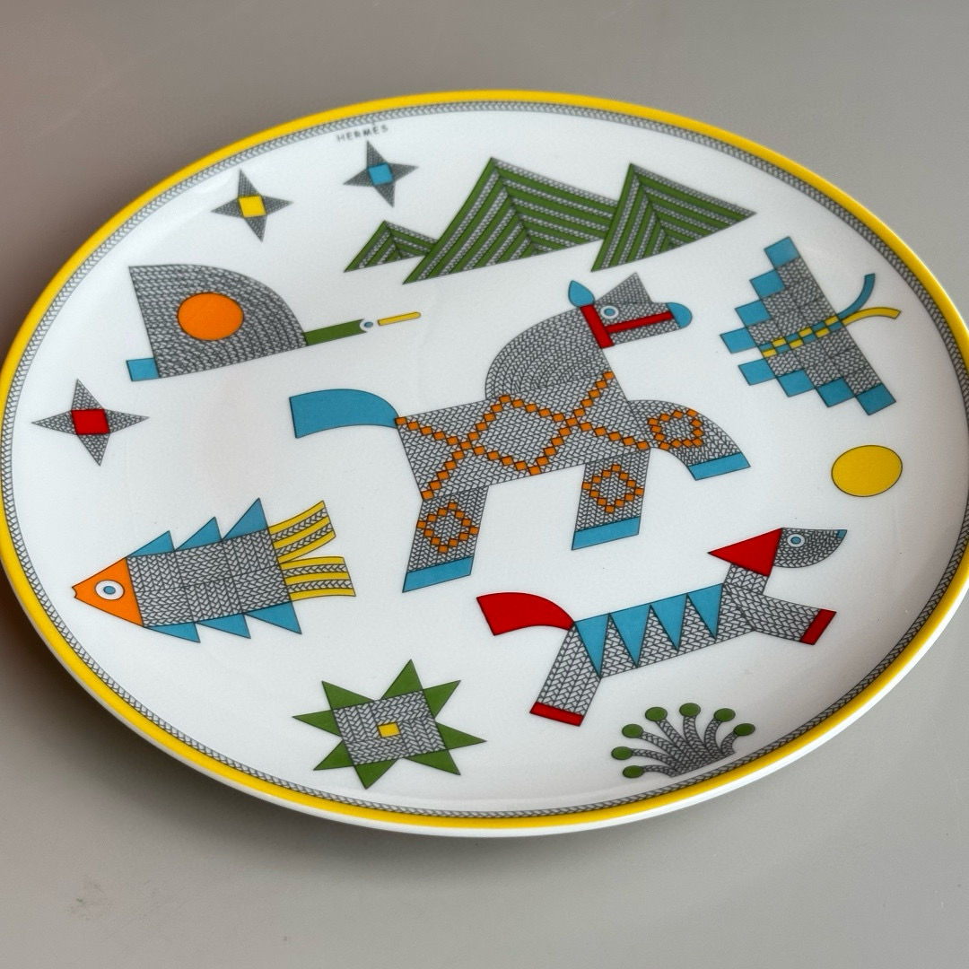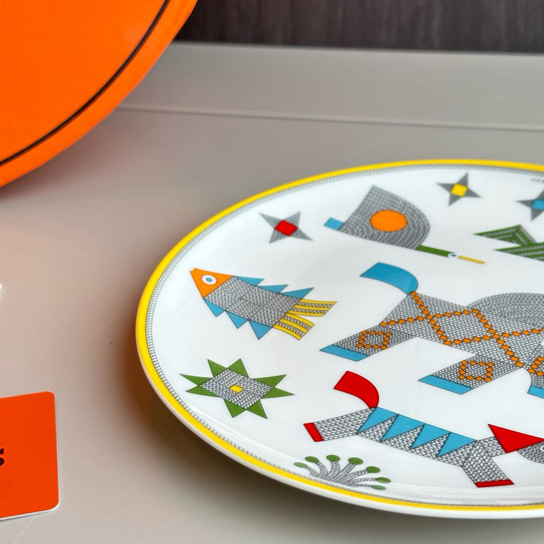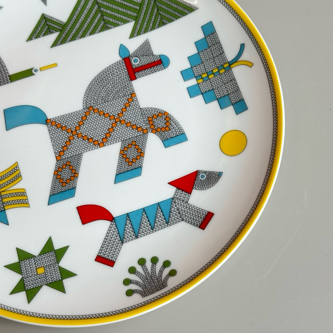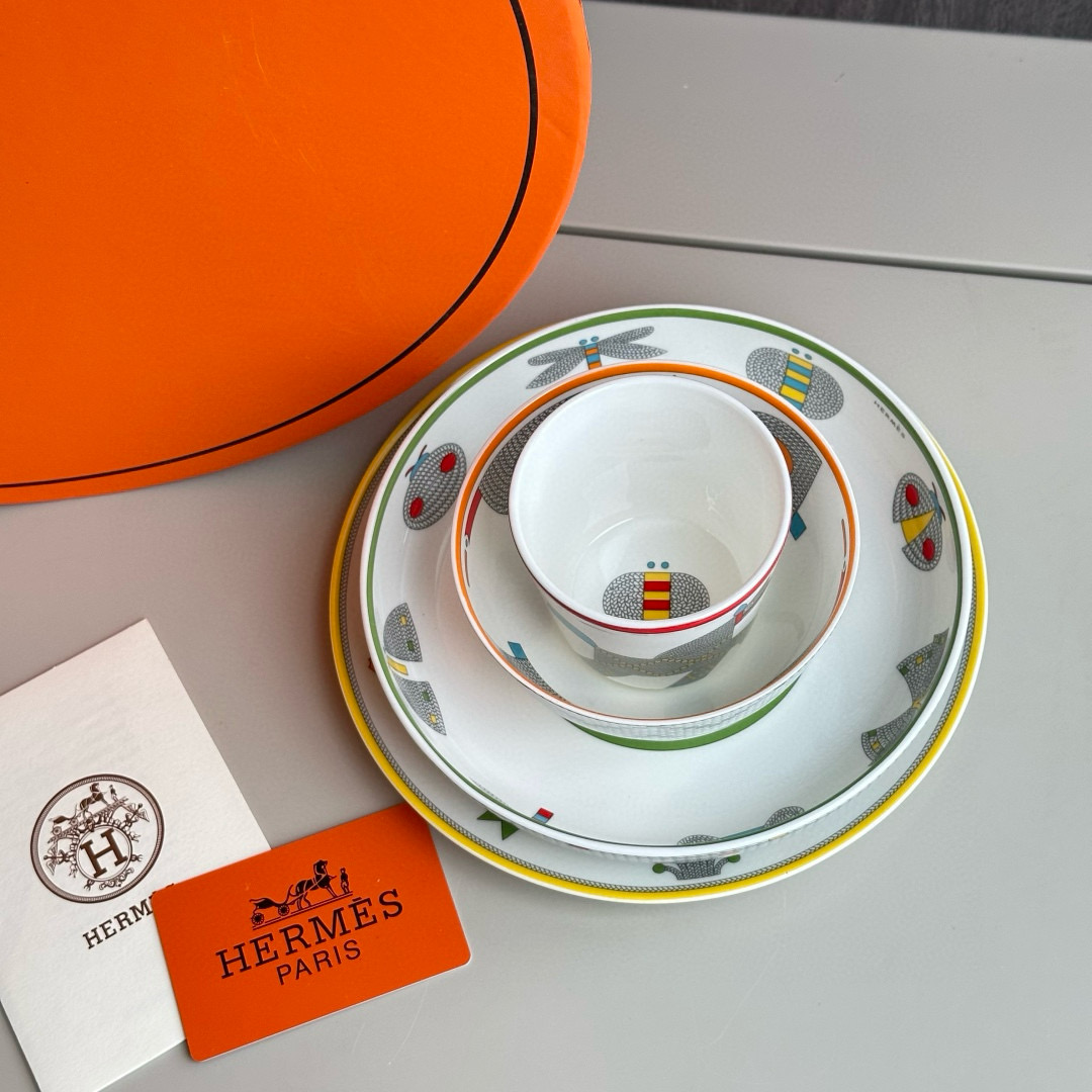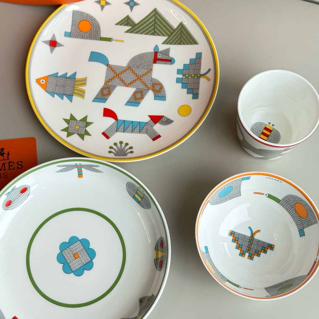 NIGO Hermes Animaux Nattes Colorful Animal Pattern Printed Bone China Material Dessert Plate, Cereal Plate, Dinner Bowl, Flat Bottom Cup Four Pieces Set Accessories #nigo75466
