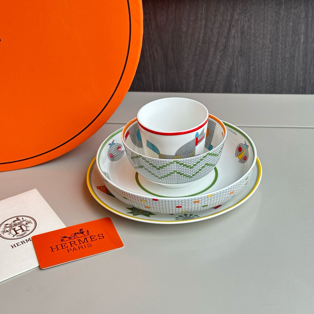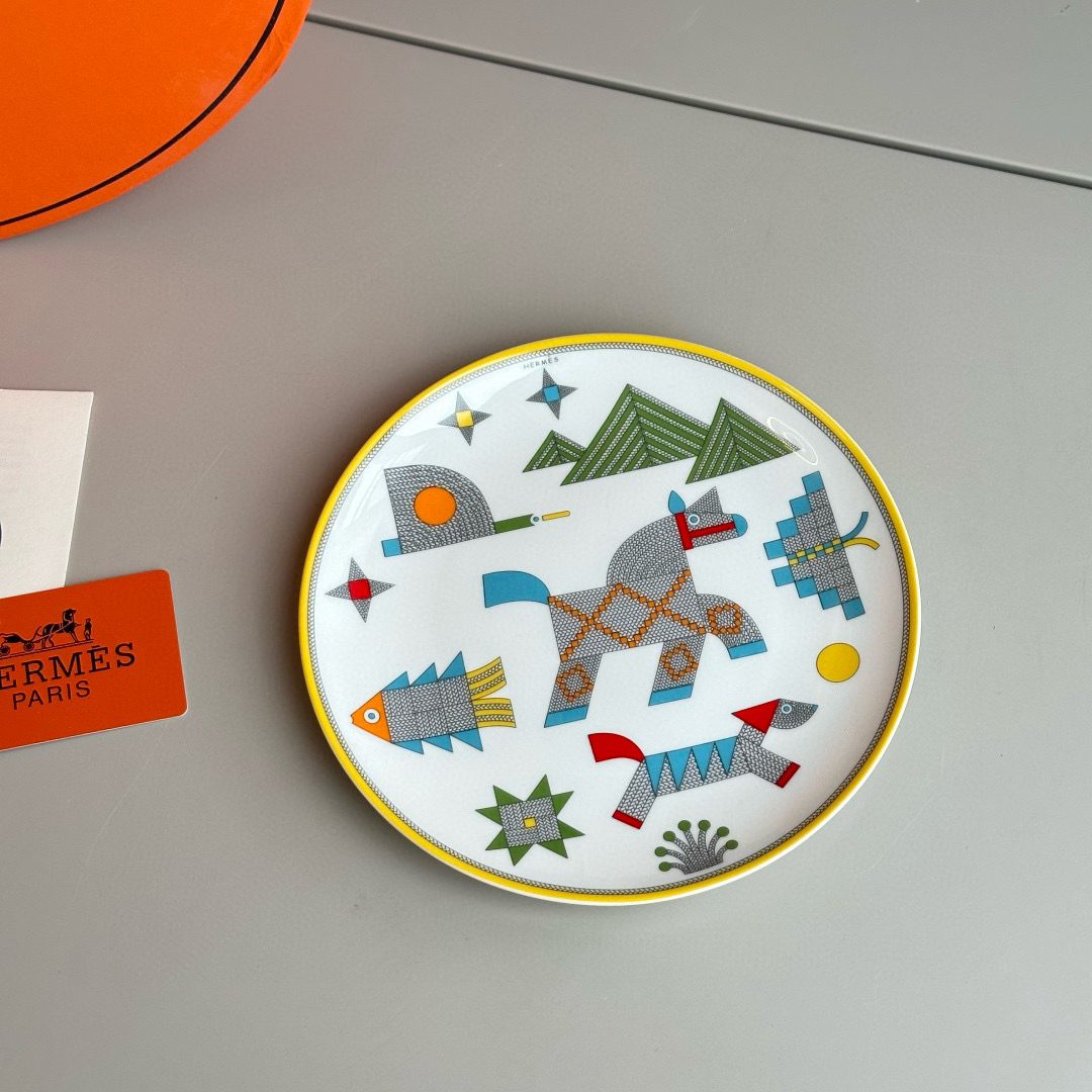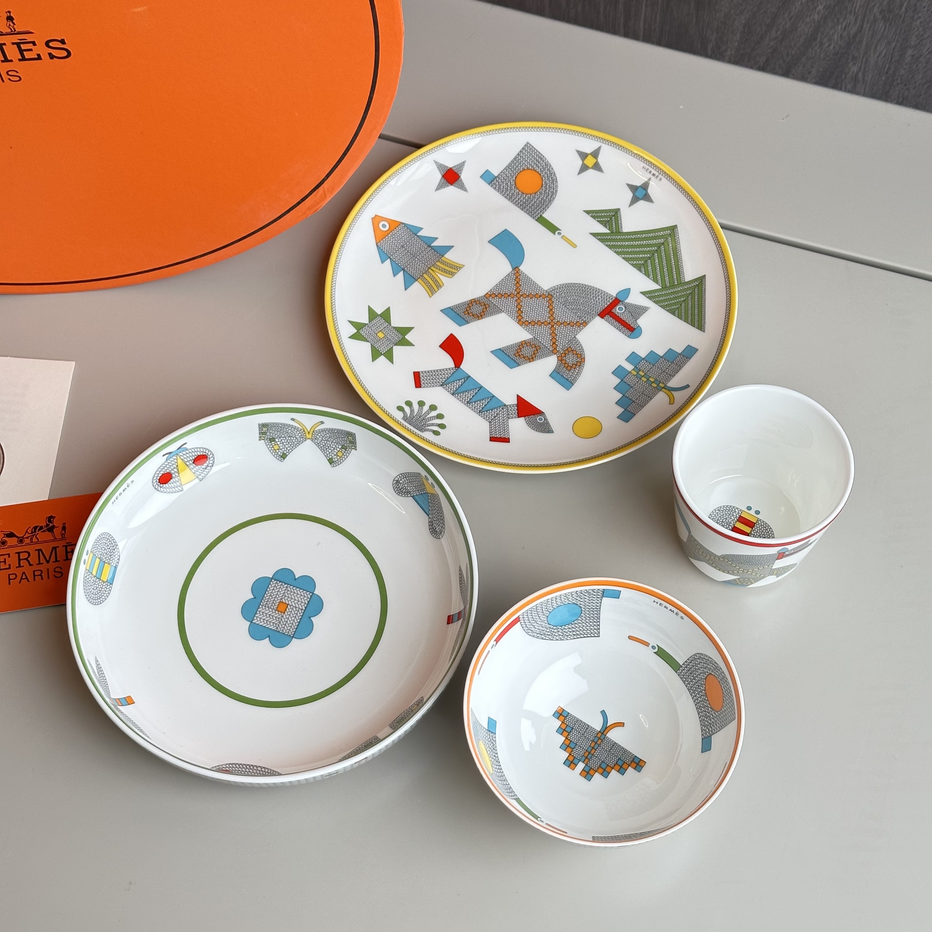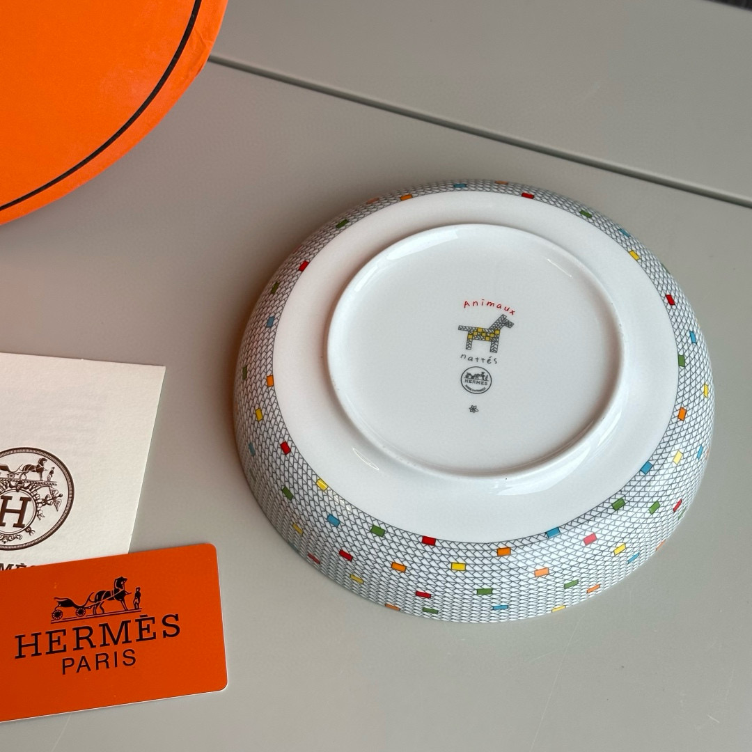 NIGO Hermes Animaux Nattes Colorful Animal Pattern Printed Bone China Material Dessert Plate, Cereal Plate, Dinner Bowl, Flat Bottom Cup Four Pieces Set Accessories #nigo75466