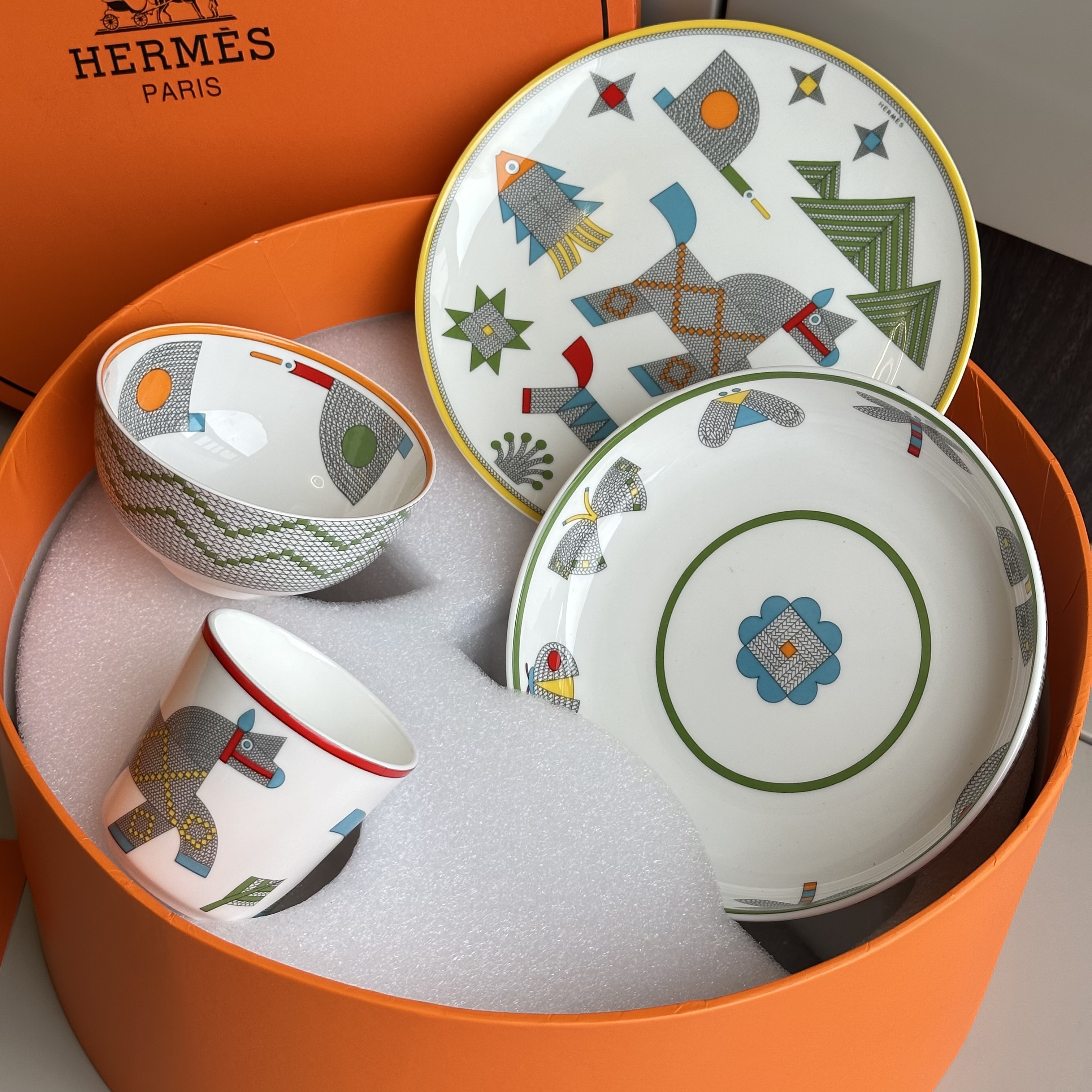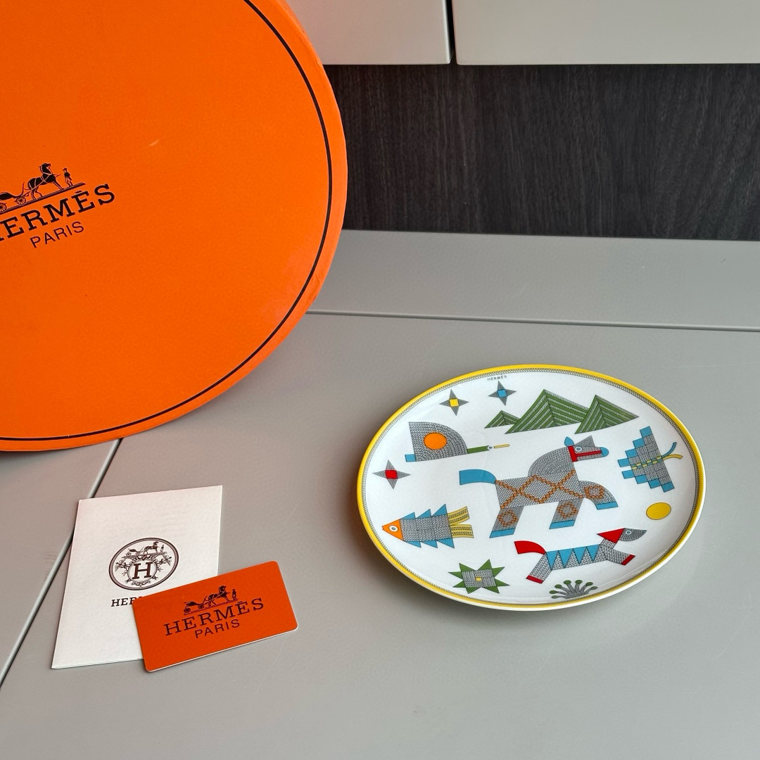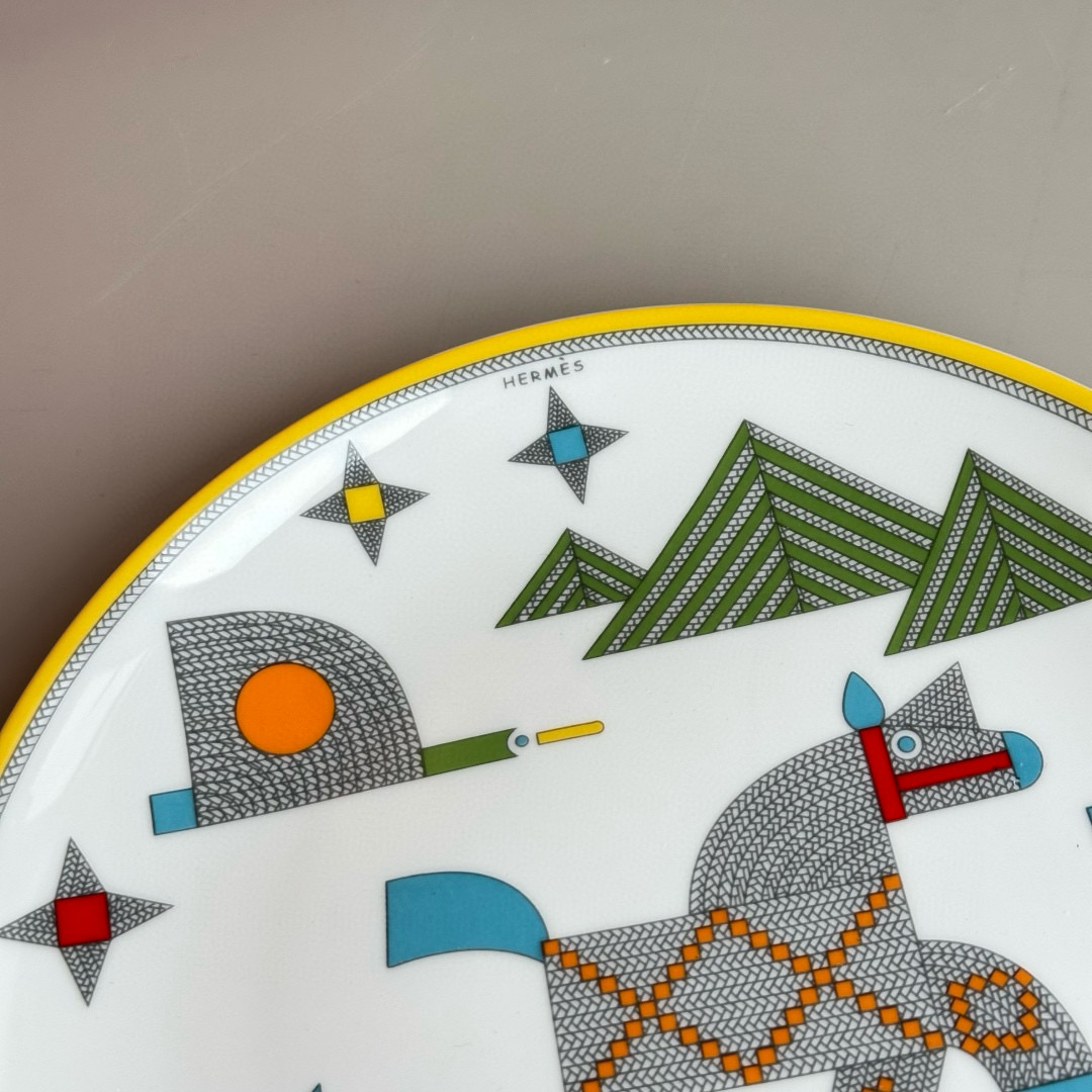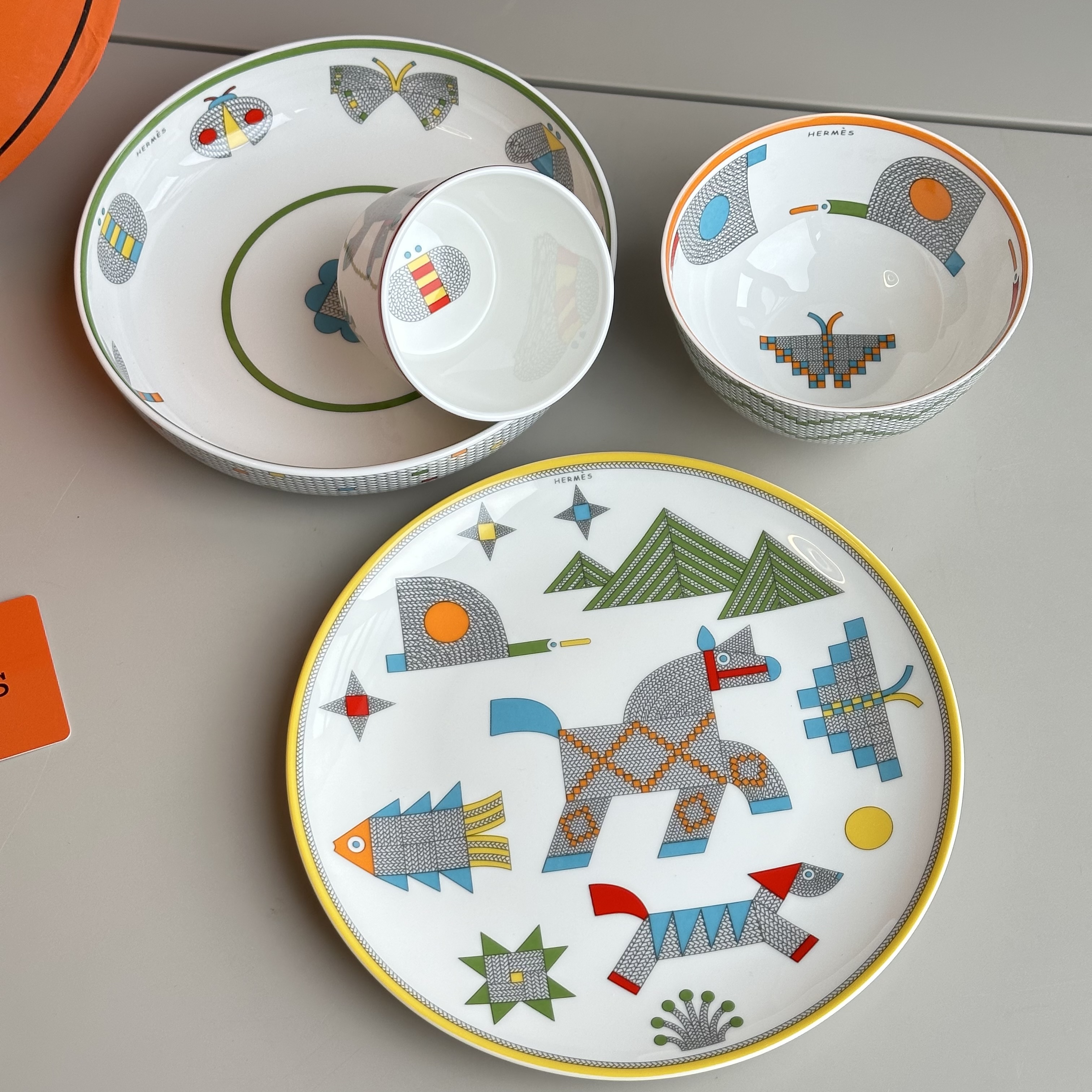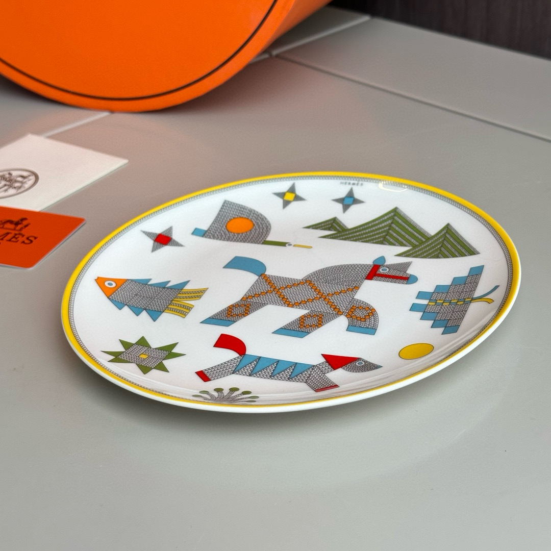 NIGO Hermes Animaux Nattes Colorful Animal Pattern Printed Bone China Material Dessert Plate, Cereal Plate, Dinner Bowl, Flat Bottom Cup Four Pieces Set Accessories #nigo75466