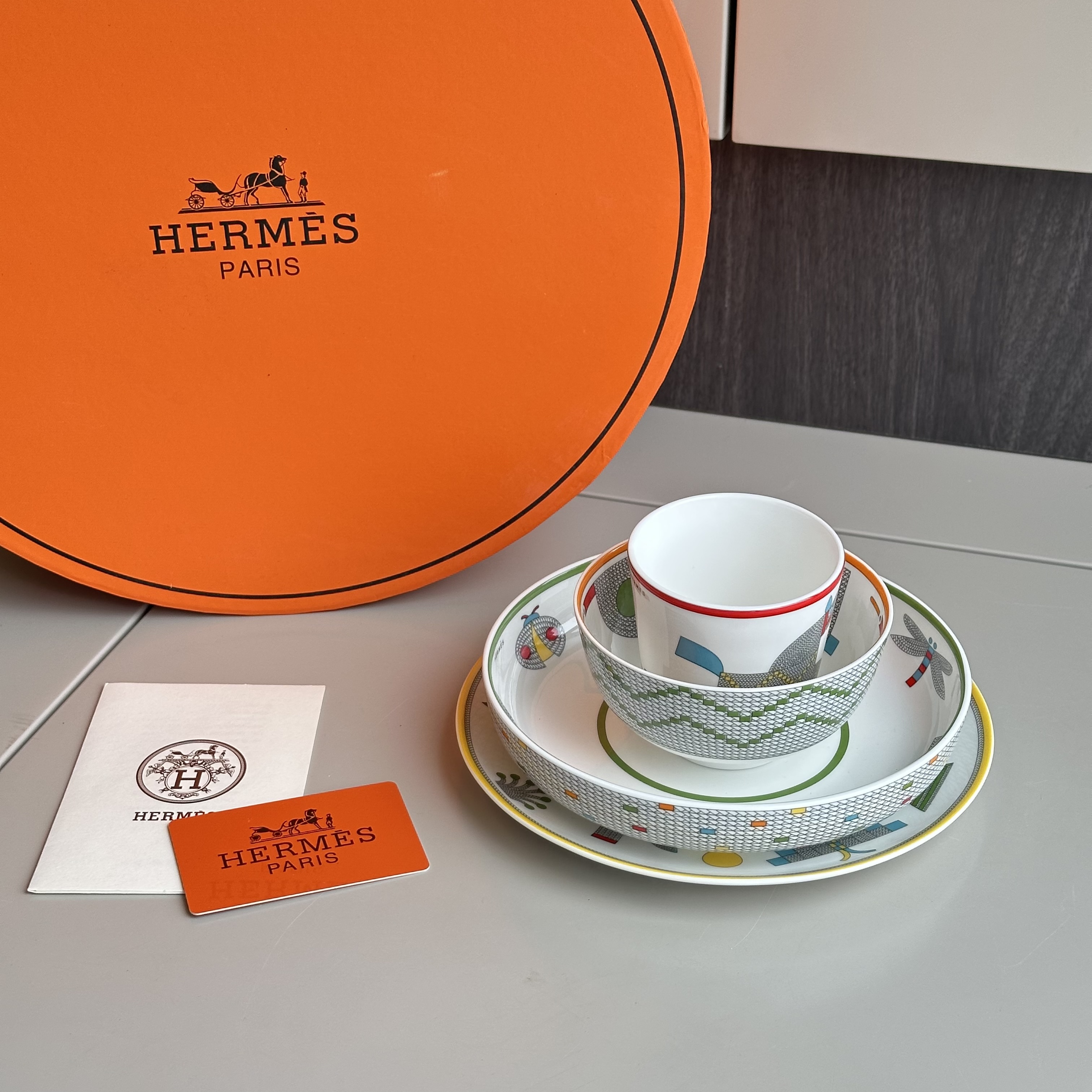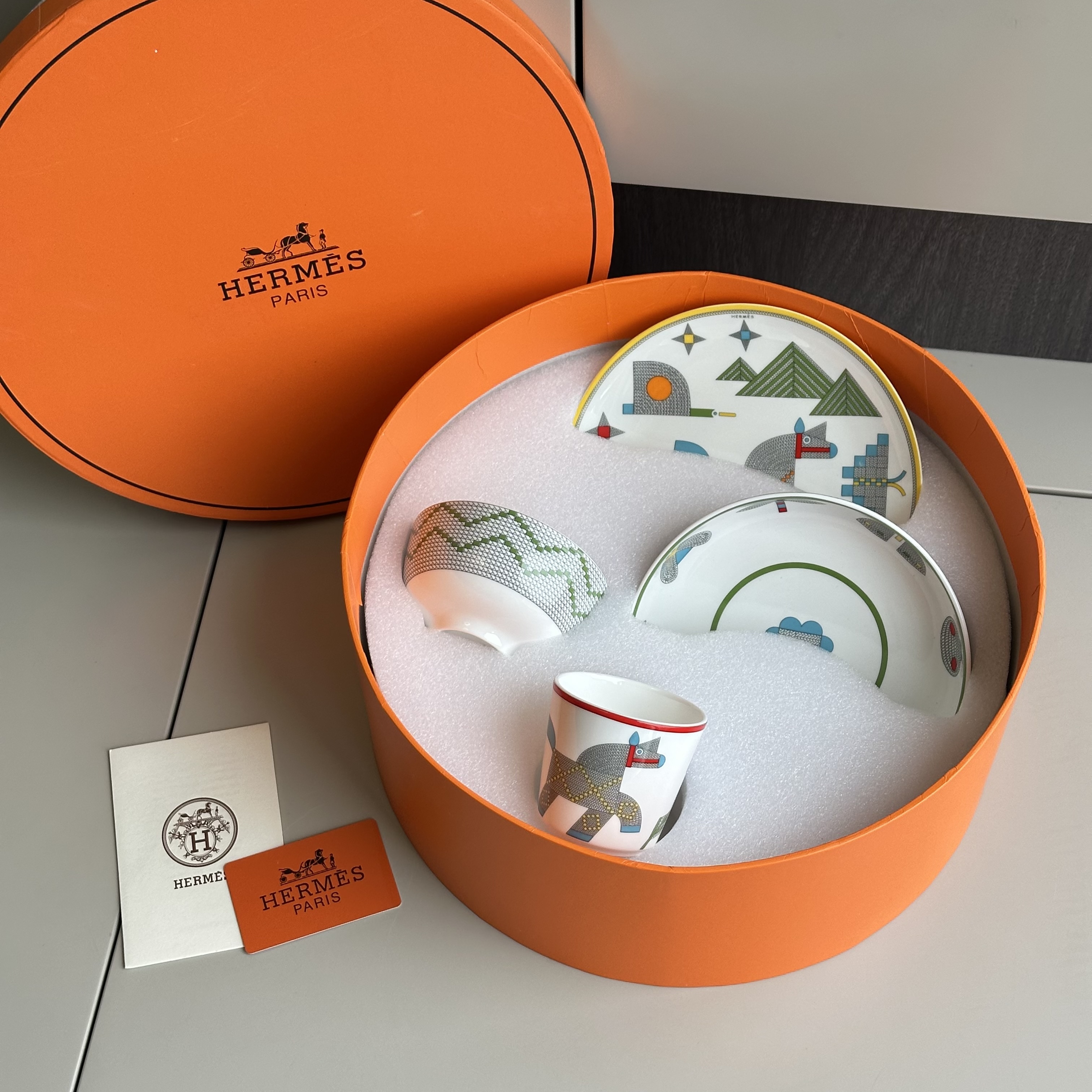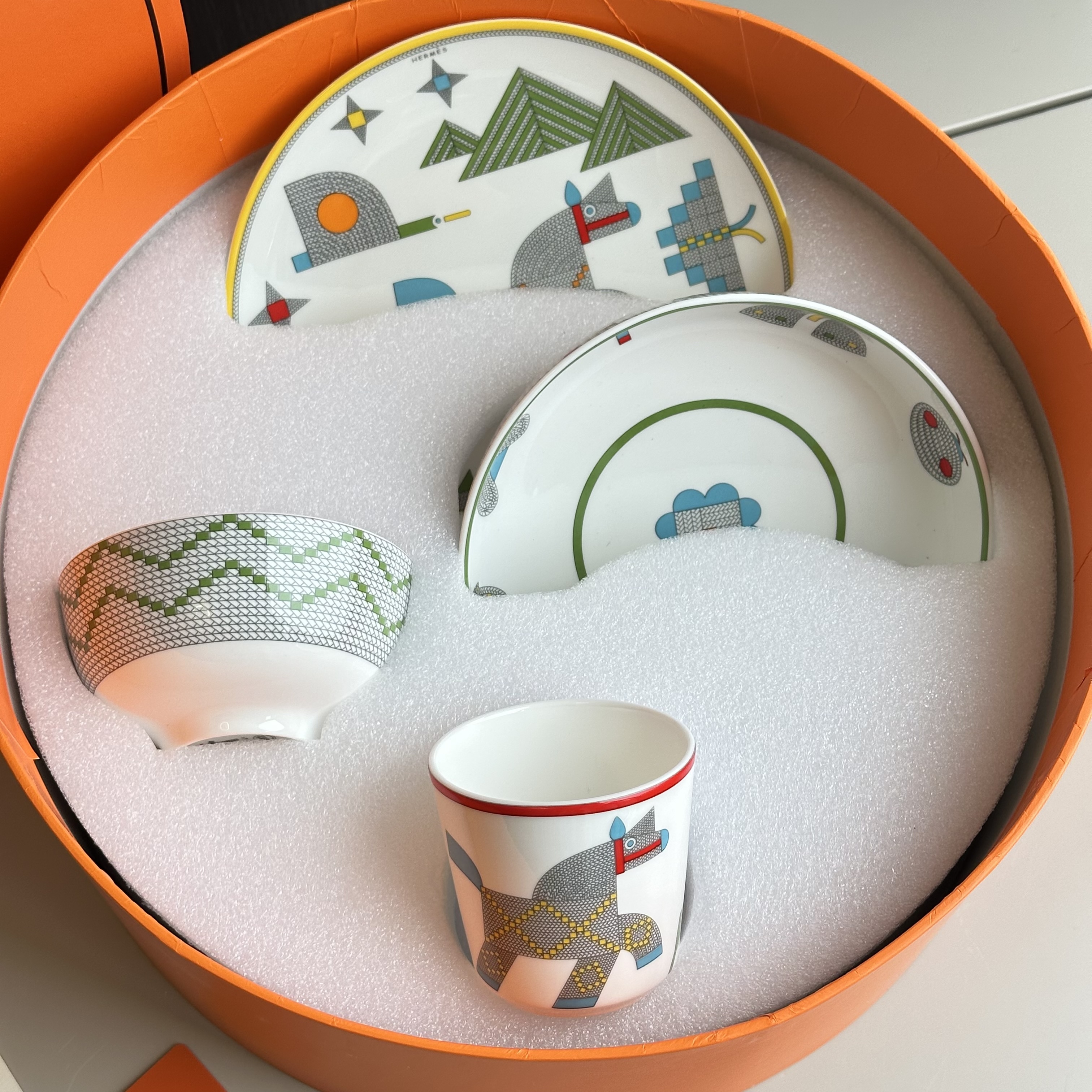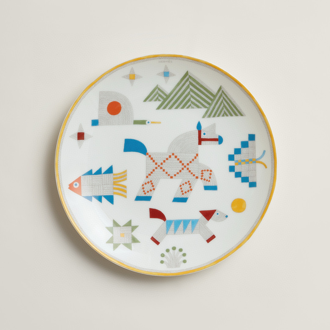 NIGO Hermes Animaux Nattes Colorful Animal Pattern Printed Bone China Material Dessert Plate, Cereal Plate, Dinner Bowl, Flat Bottom Cup Four Pieces Set Accessories #nigo75466
