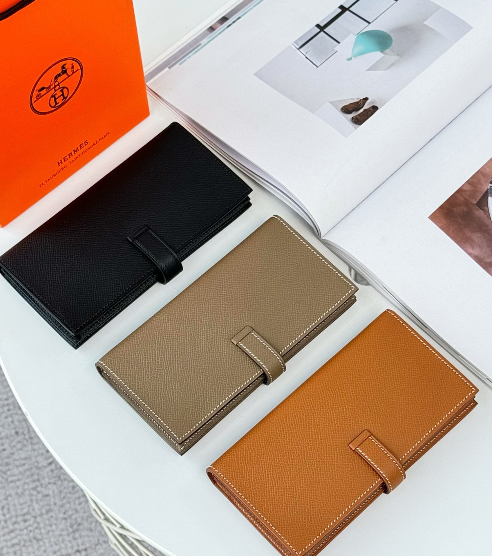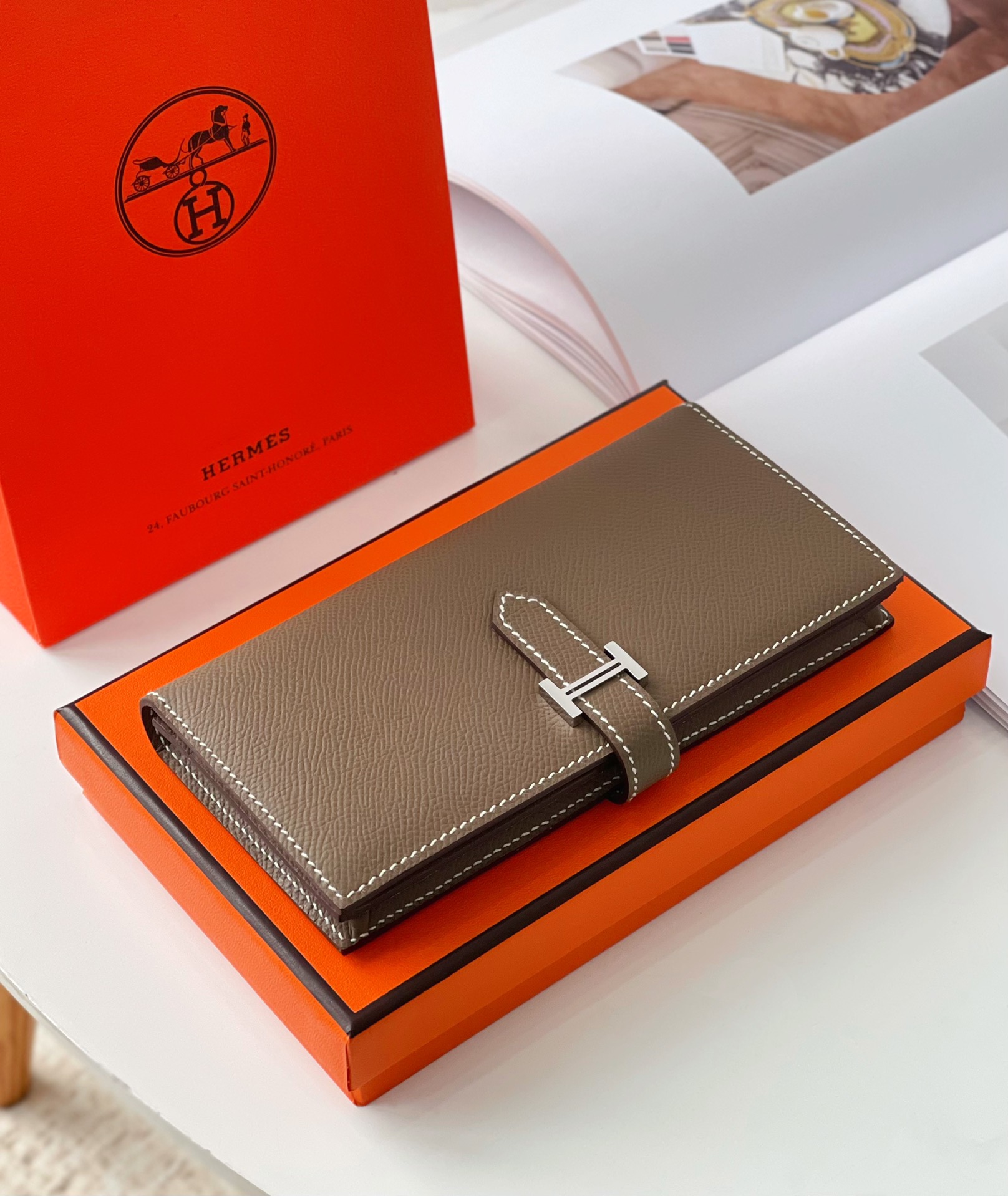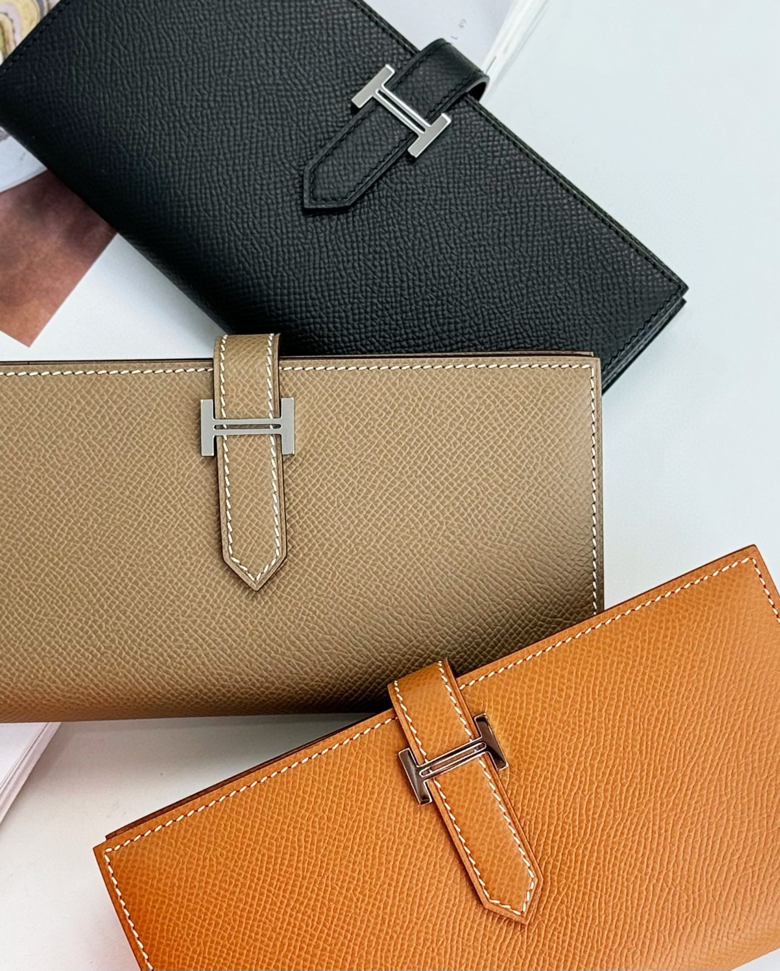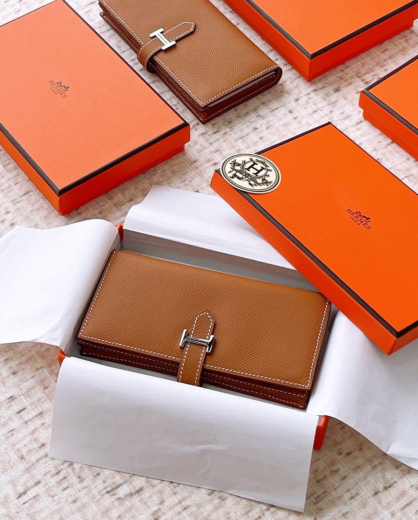 NIGO Hermes Bearn Women's Solid Color Silver Buckle Calfskin Wallet Card Case Bag Bags #nigo73145