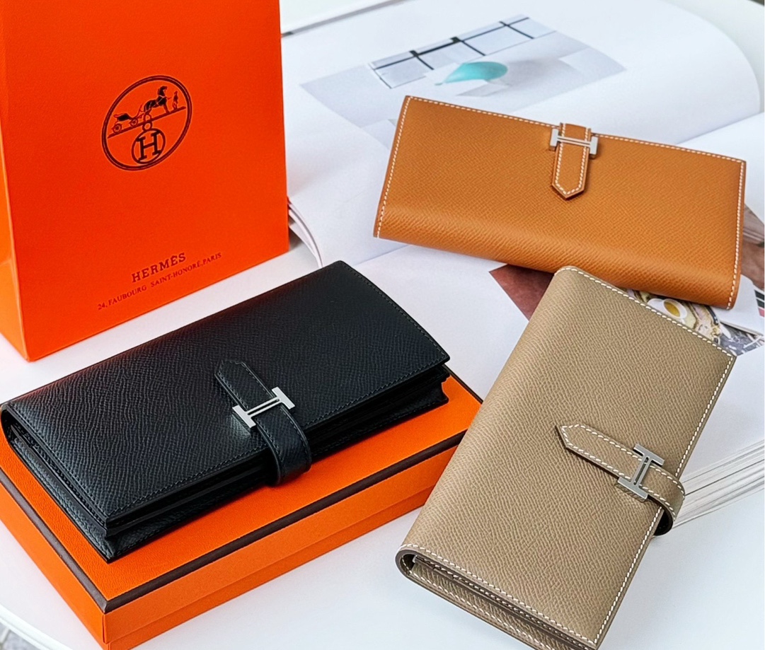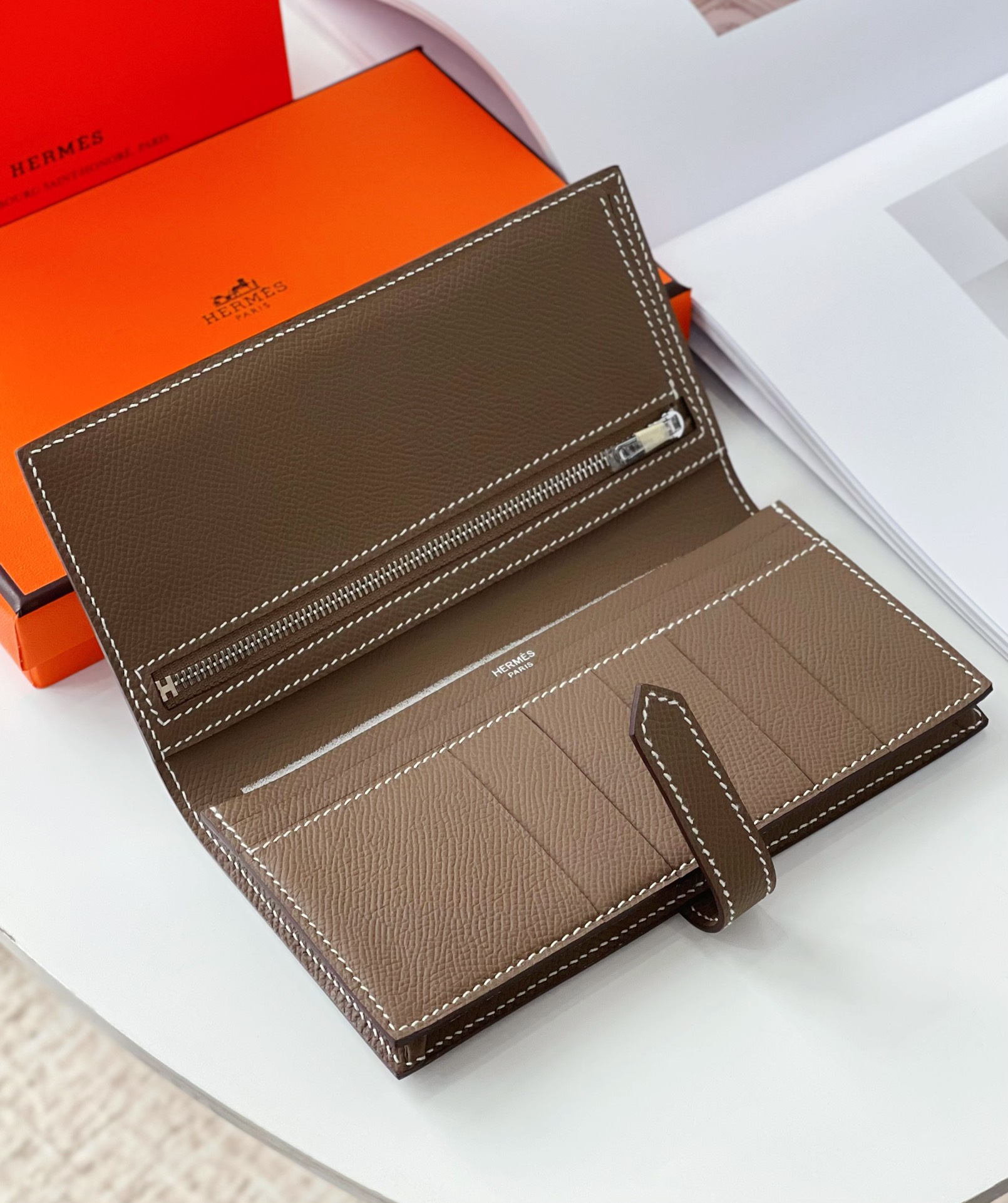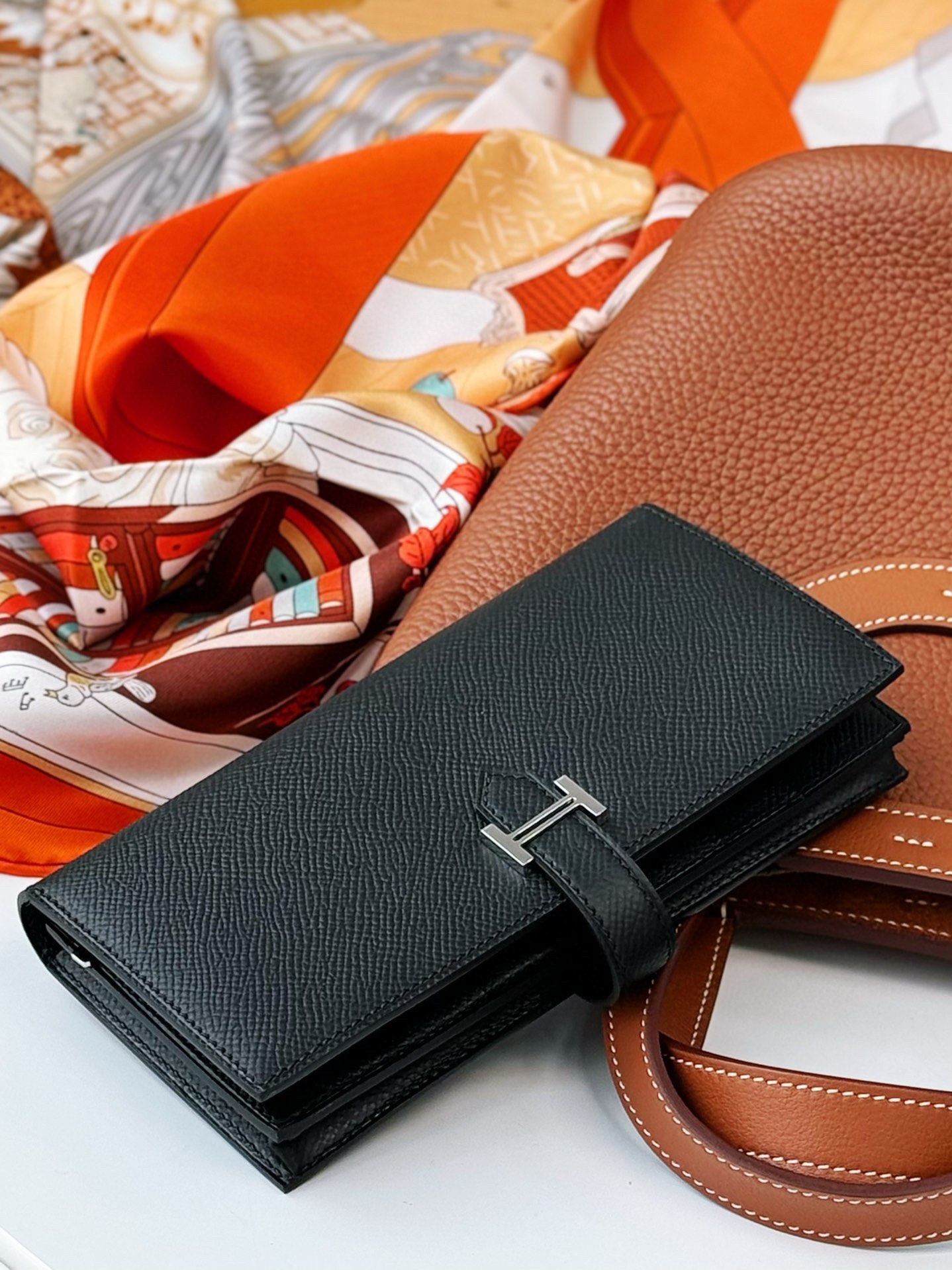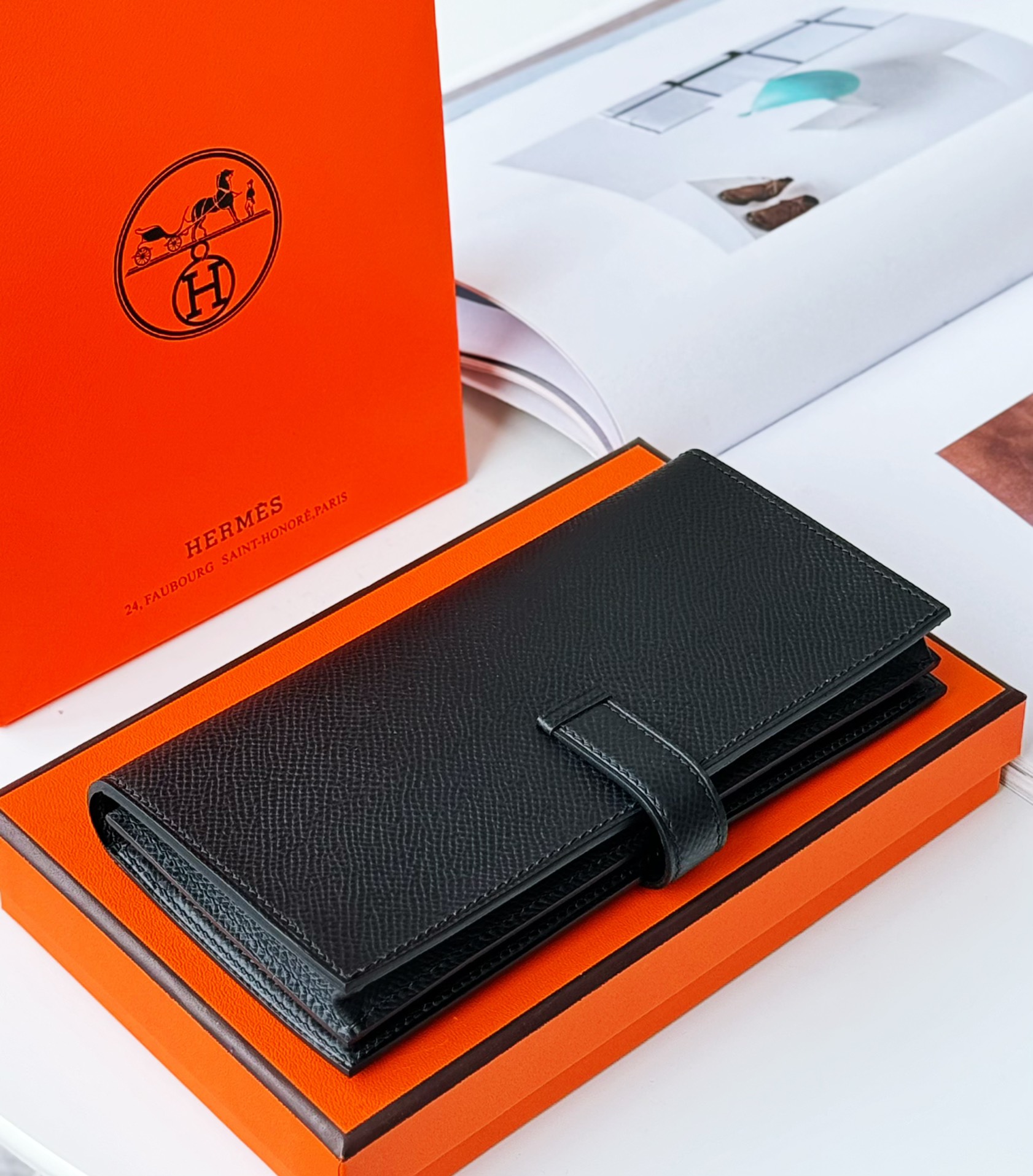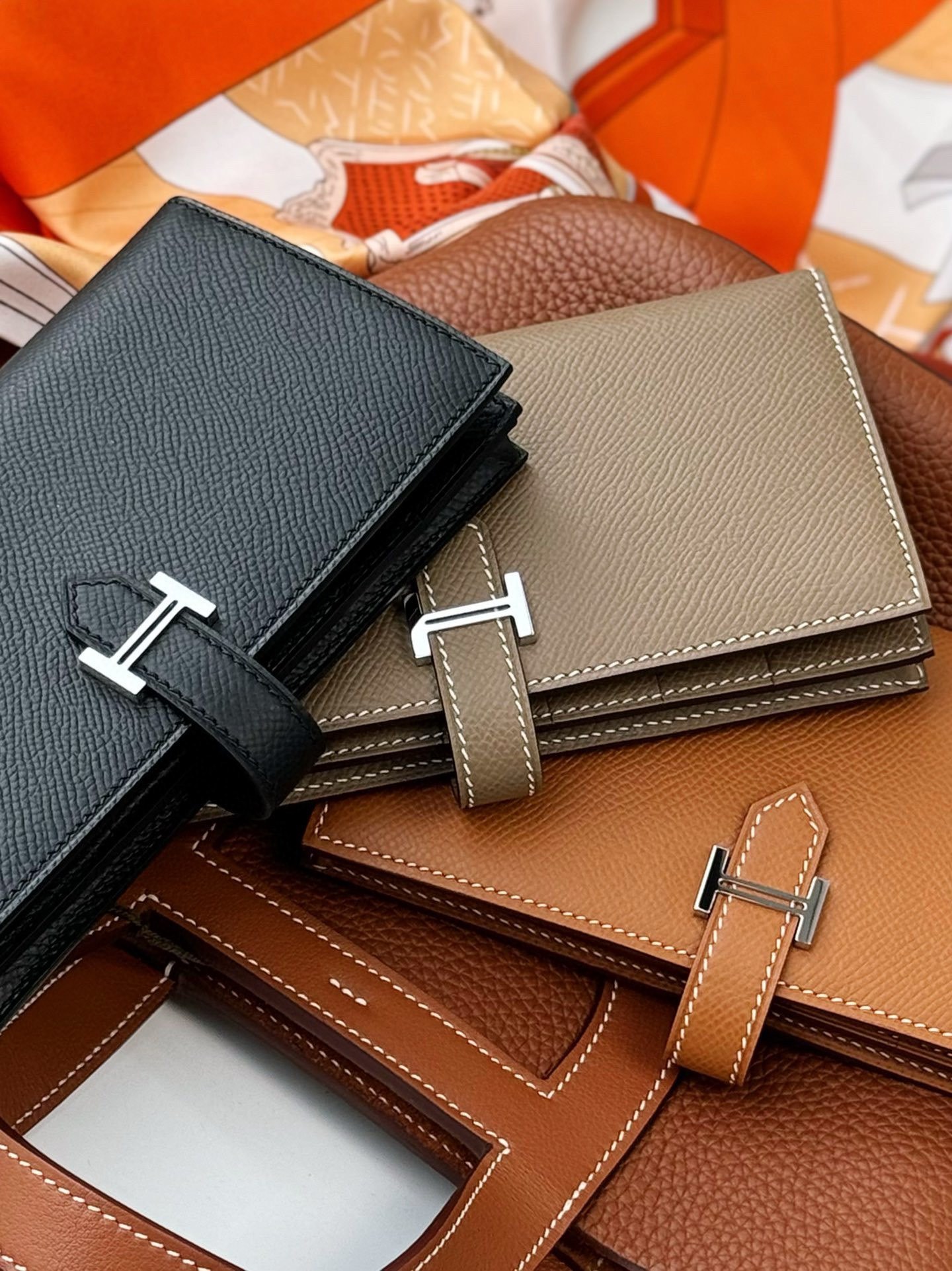NIGO Hermes Bearn Women's Solid Color Silver Buckle Calfskin Wallet Card Case Bag Bags #nigo73145