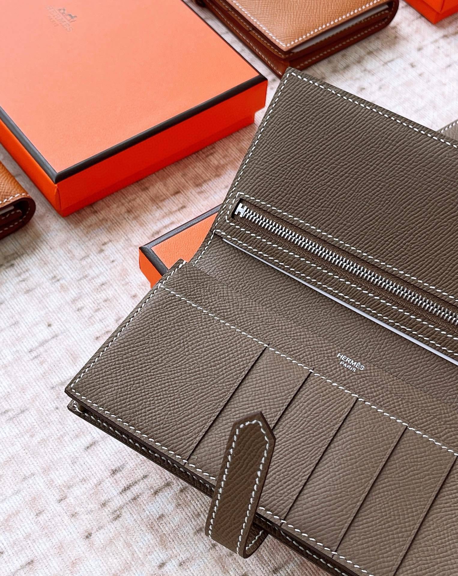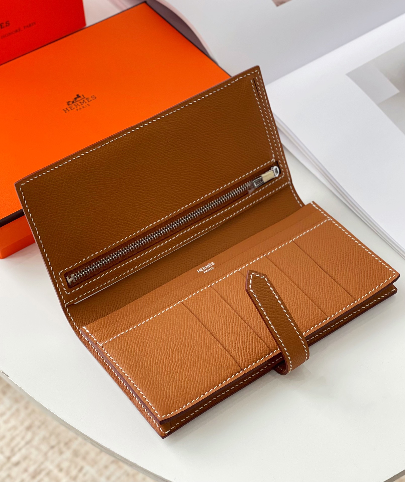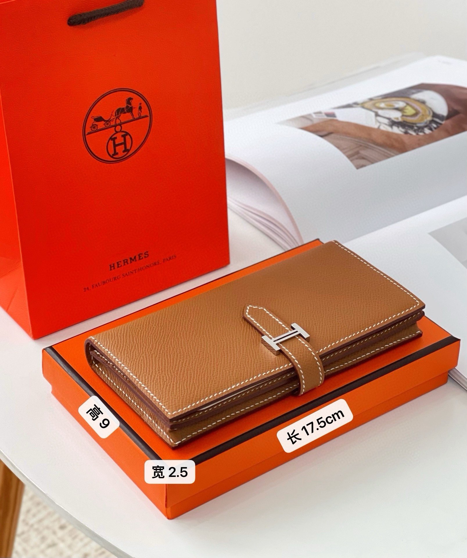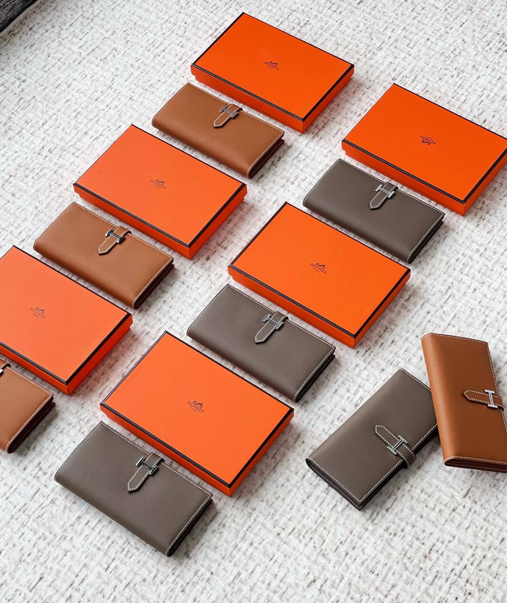 NIGO Hermes Bearn Women's Solid Color Silver Buckle Calfskin Wallet Card Case Bag Bags #nigo73145