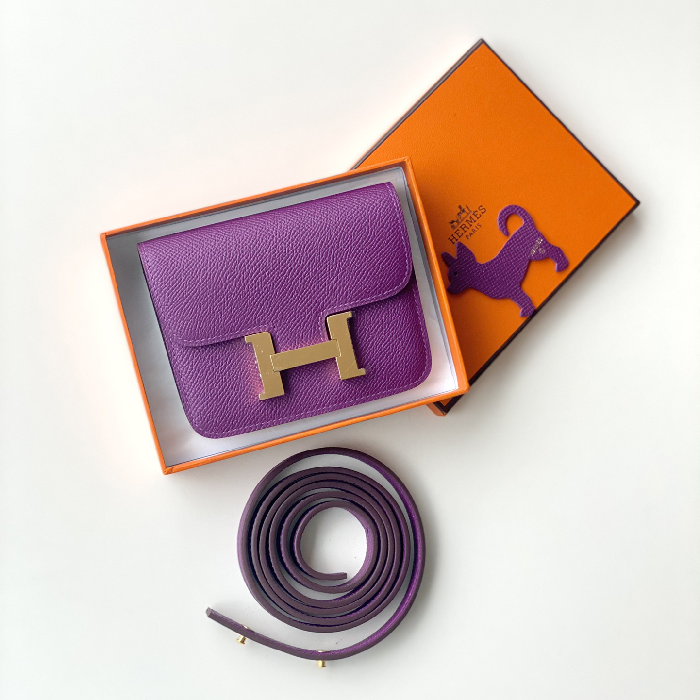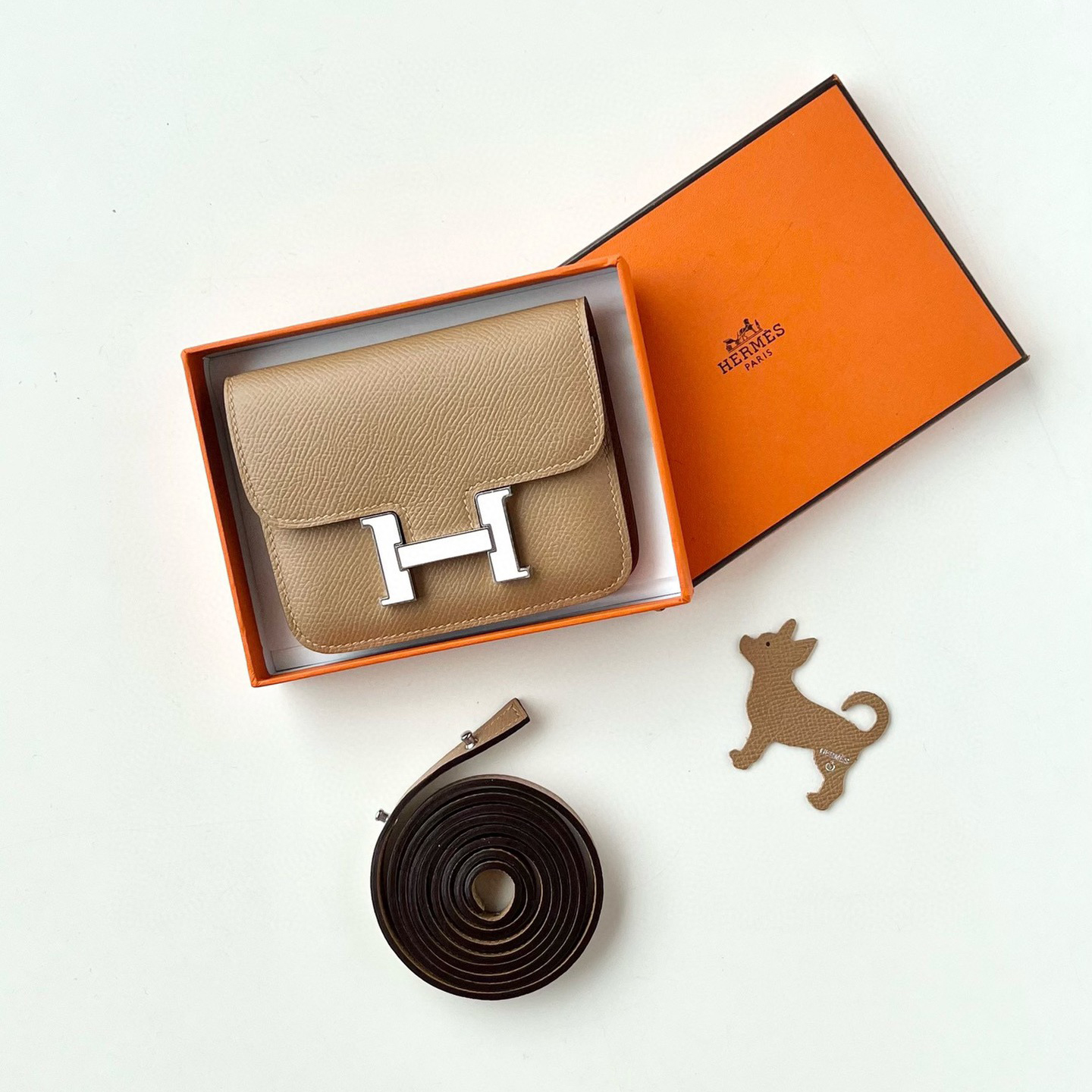 NIGO Hermes Constance Slim Women's Solid Color Leather Metal Buckle Epson Cowhide Waistlet Wallet Bag Bags #nigo74676