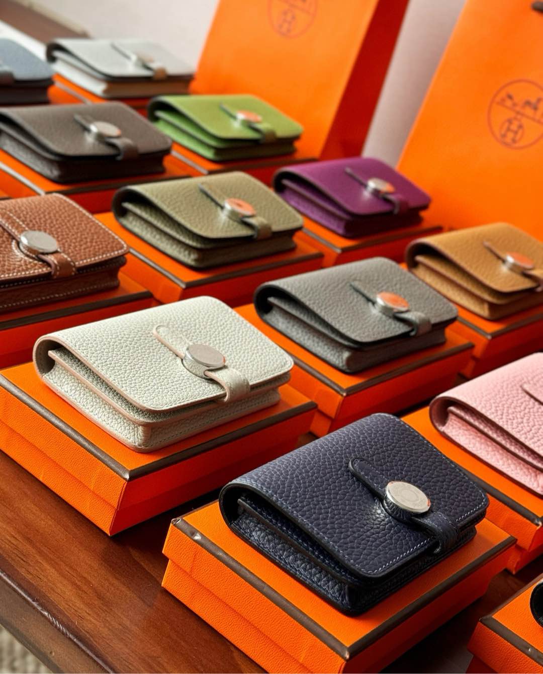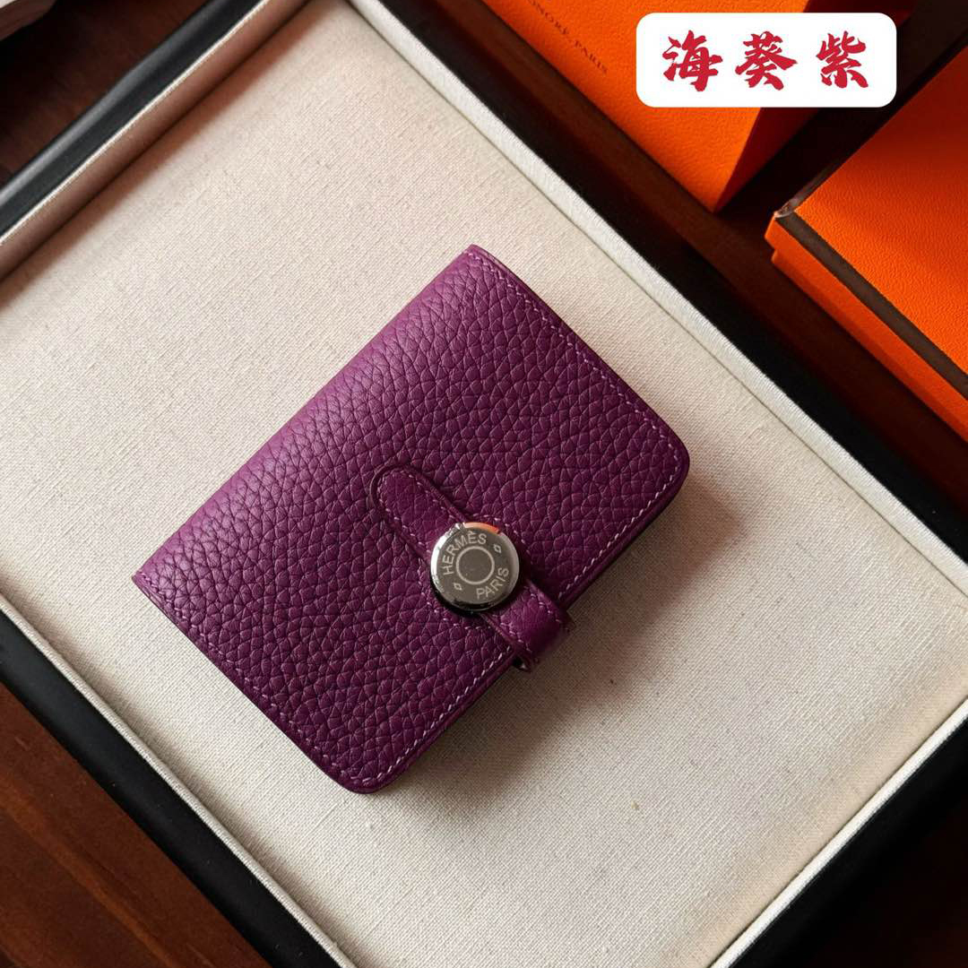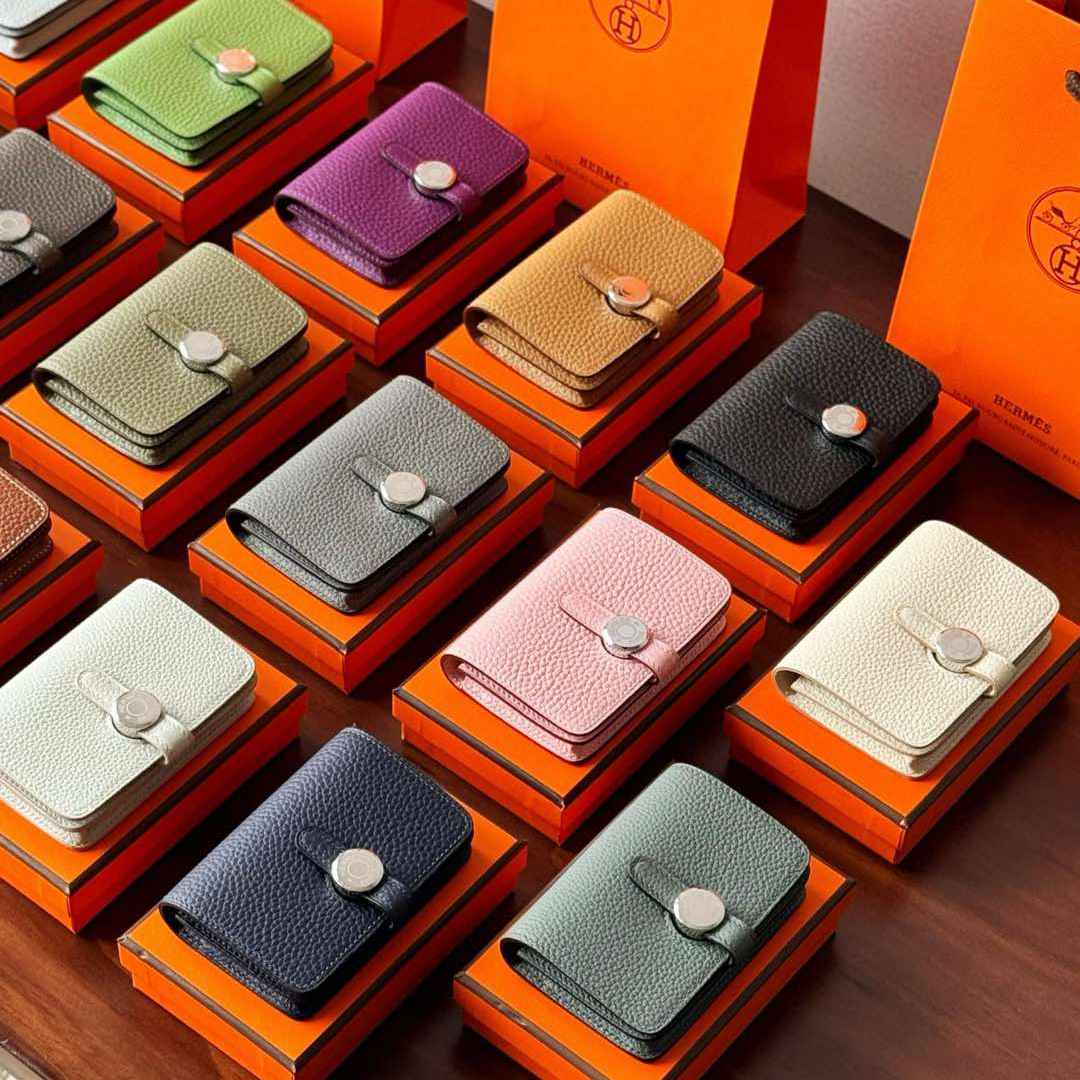 NIGO Hermes Dogon Women's Silver Buckle Togo Cowhide Solid Color Card Case Wallet Bag Bags #nigo74813