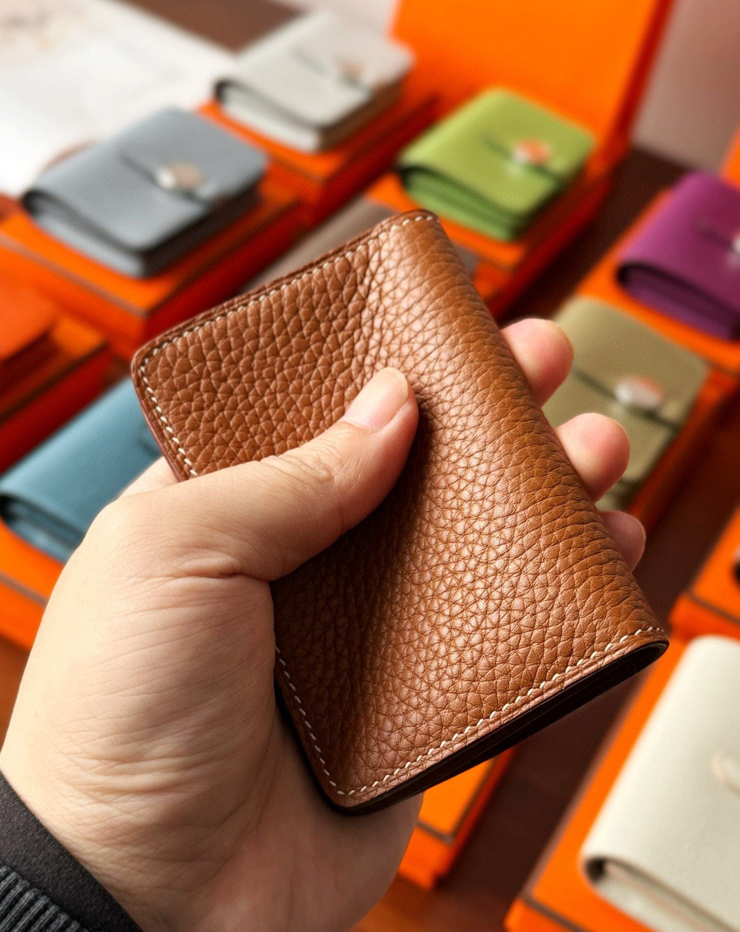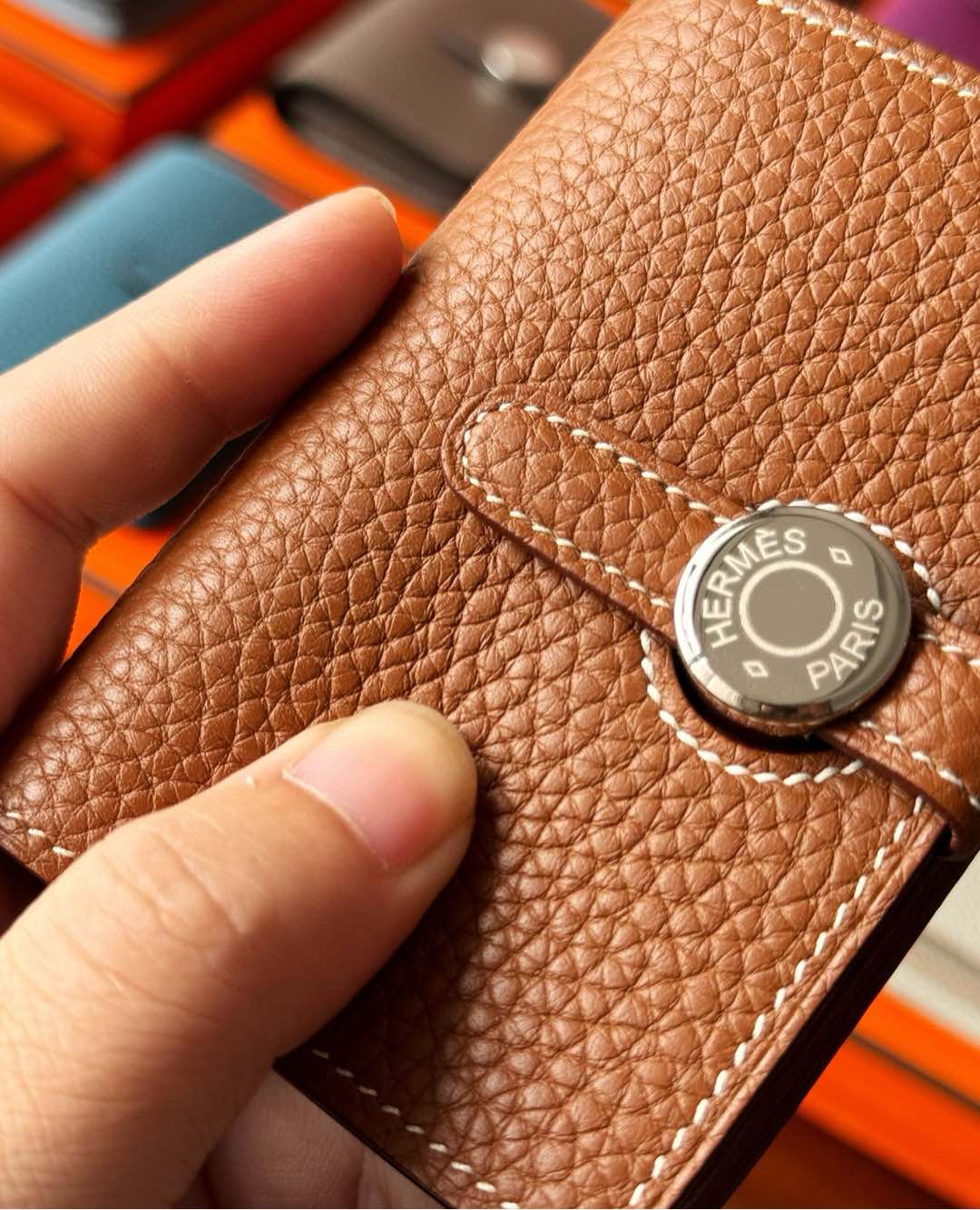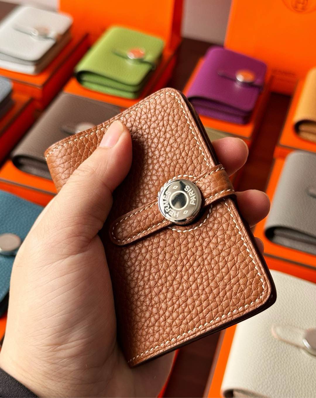 NIGO Hermes Dogon Women's Silver Buckle Togo Cowhide Solid Color Card Case Wallet Bag Bags #nigo74813