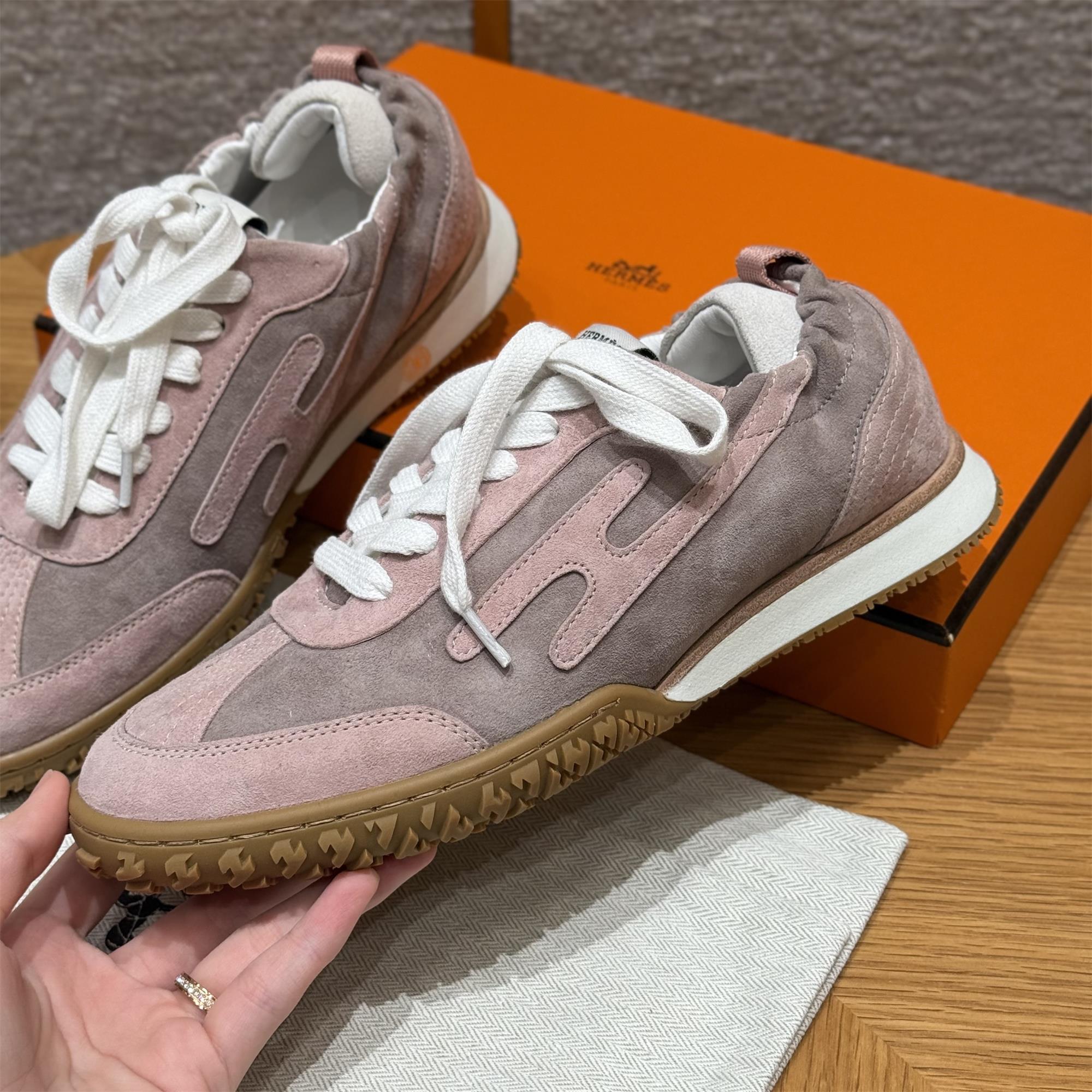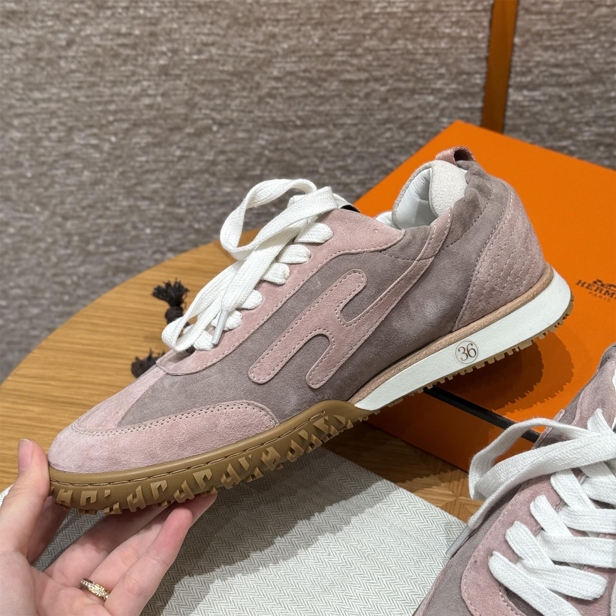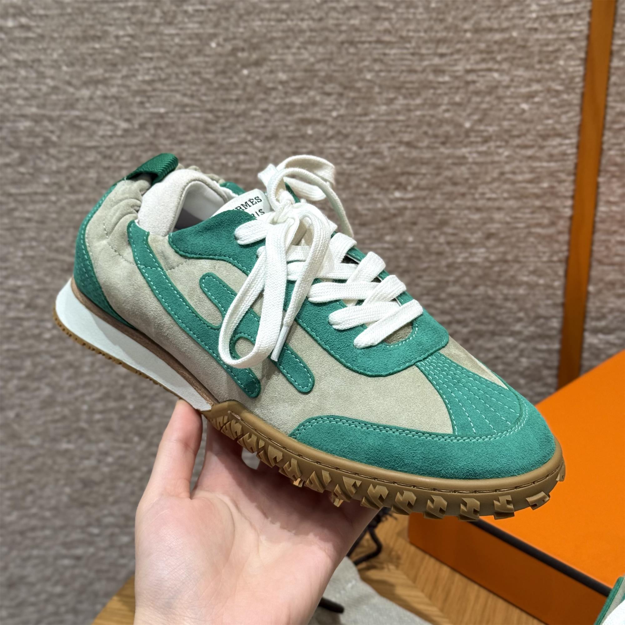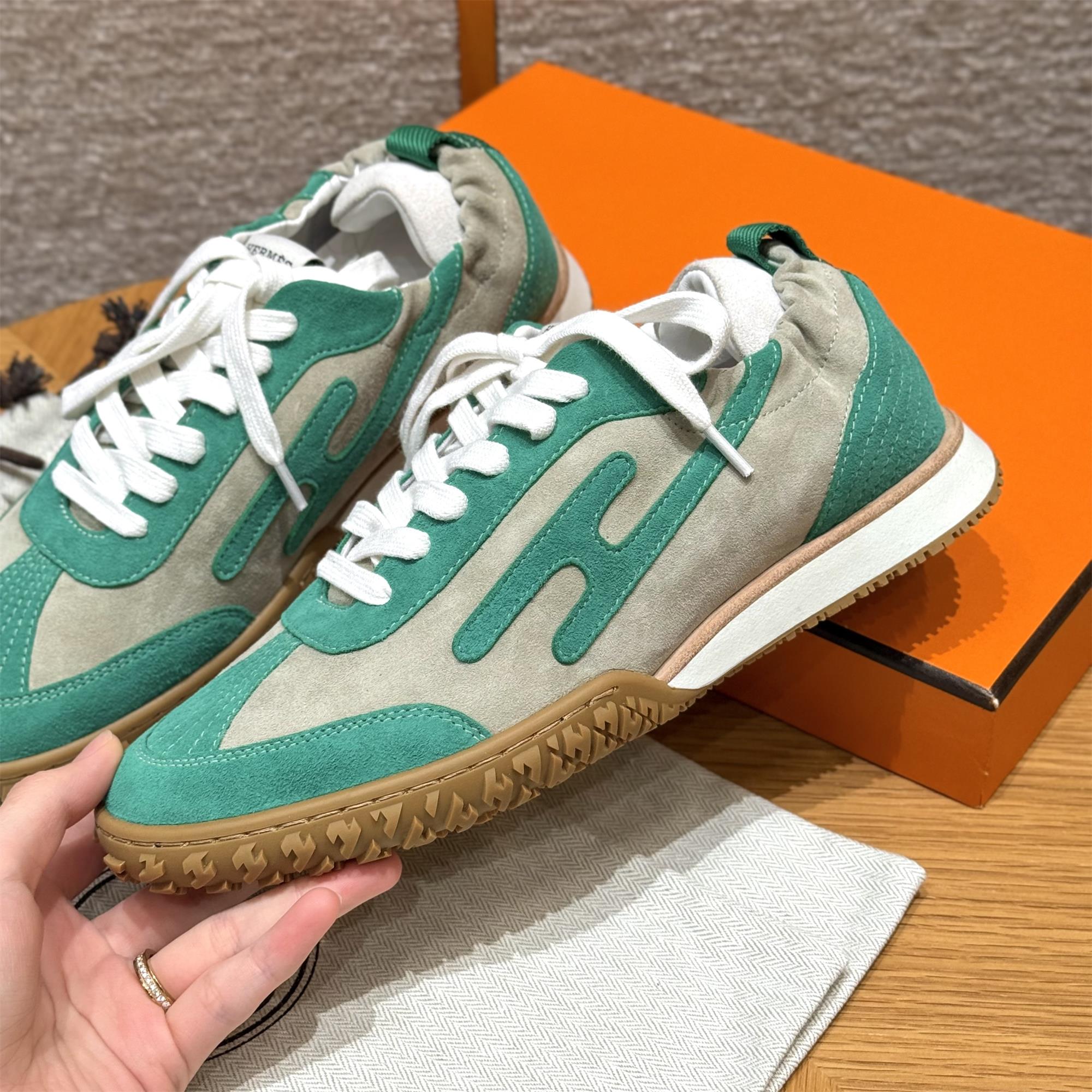 NIGO Hermes Jet Women's Four-Season Color-Blocked Suede Fabric Rubber Sole Low-Top Lace-Up Sneakers Shoes #nigo77573