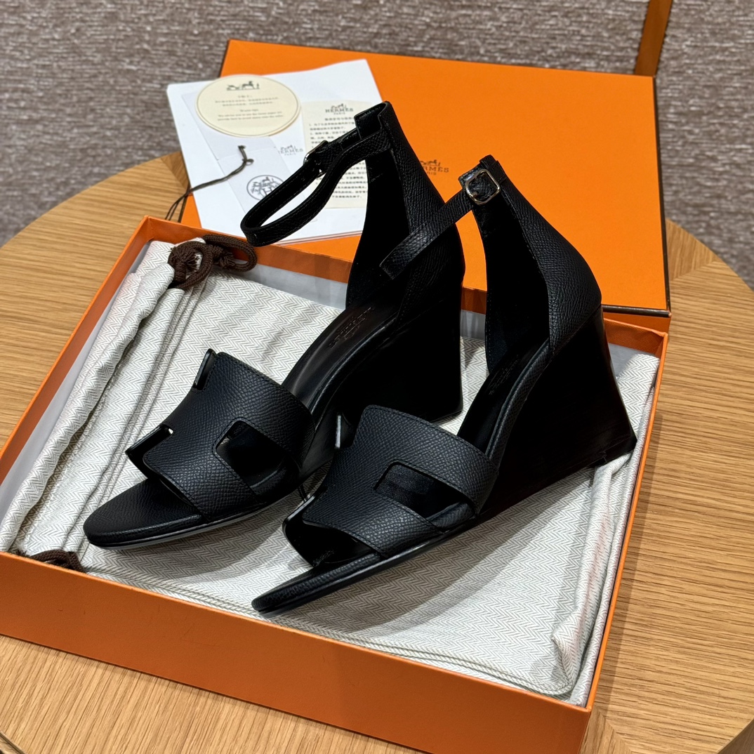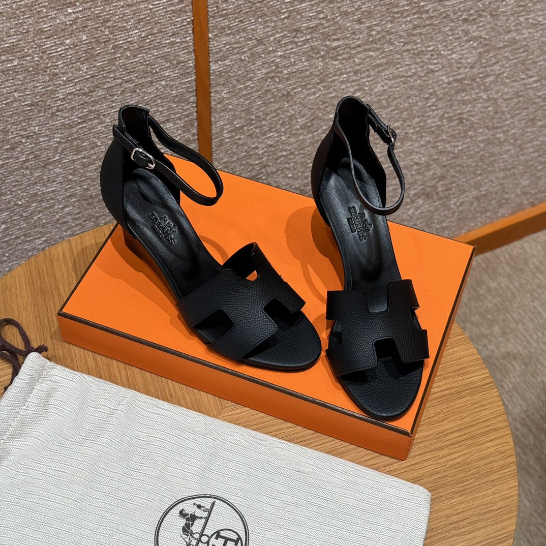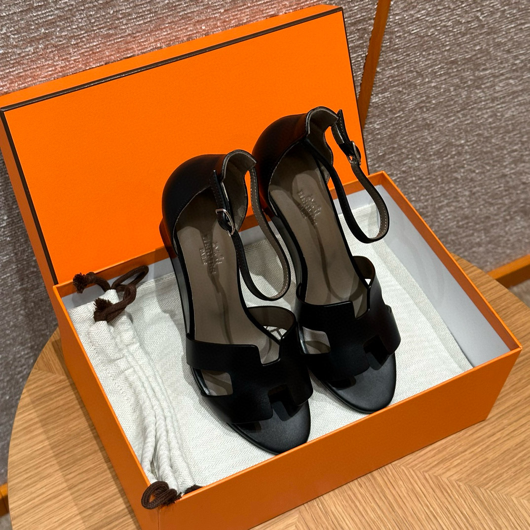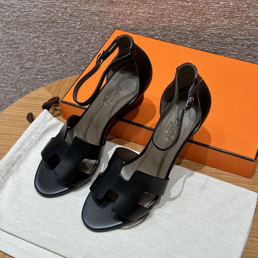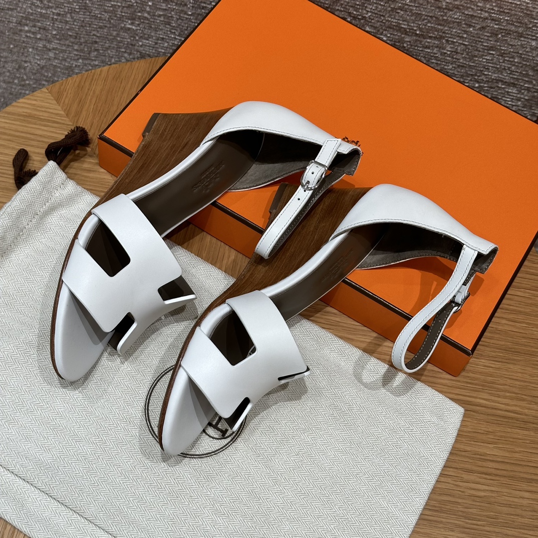 NIGO Hermes Legend Women's Solid Color Summer Solid Color Open Toe Buckle Leather Thick Sole High Heel Sandals Shoes #nigo77466