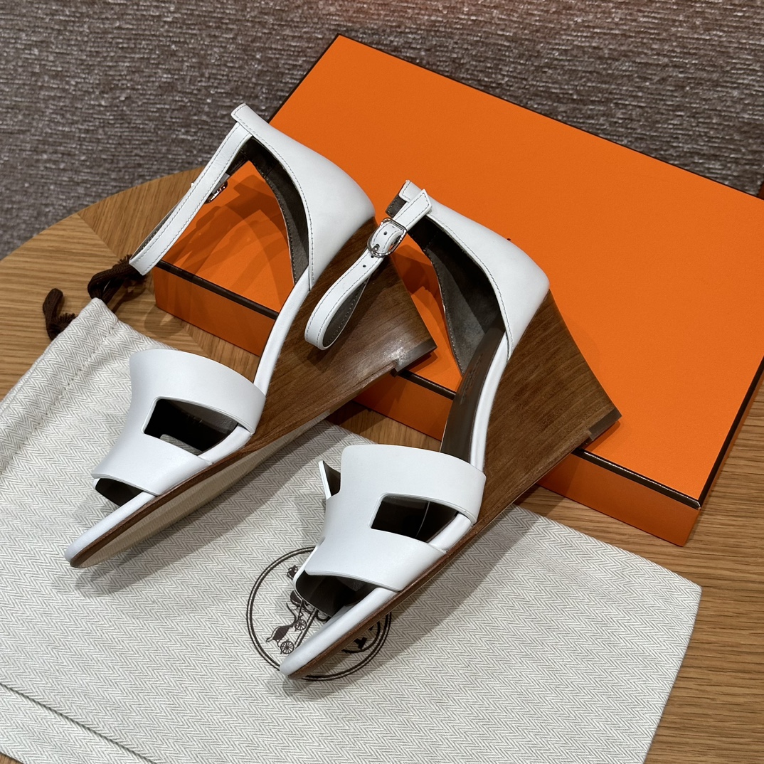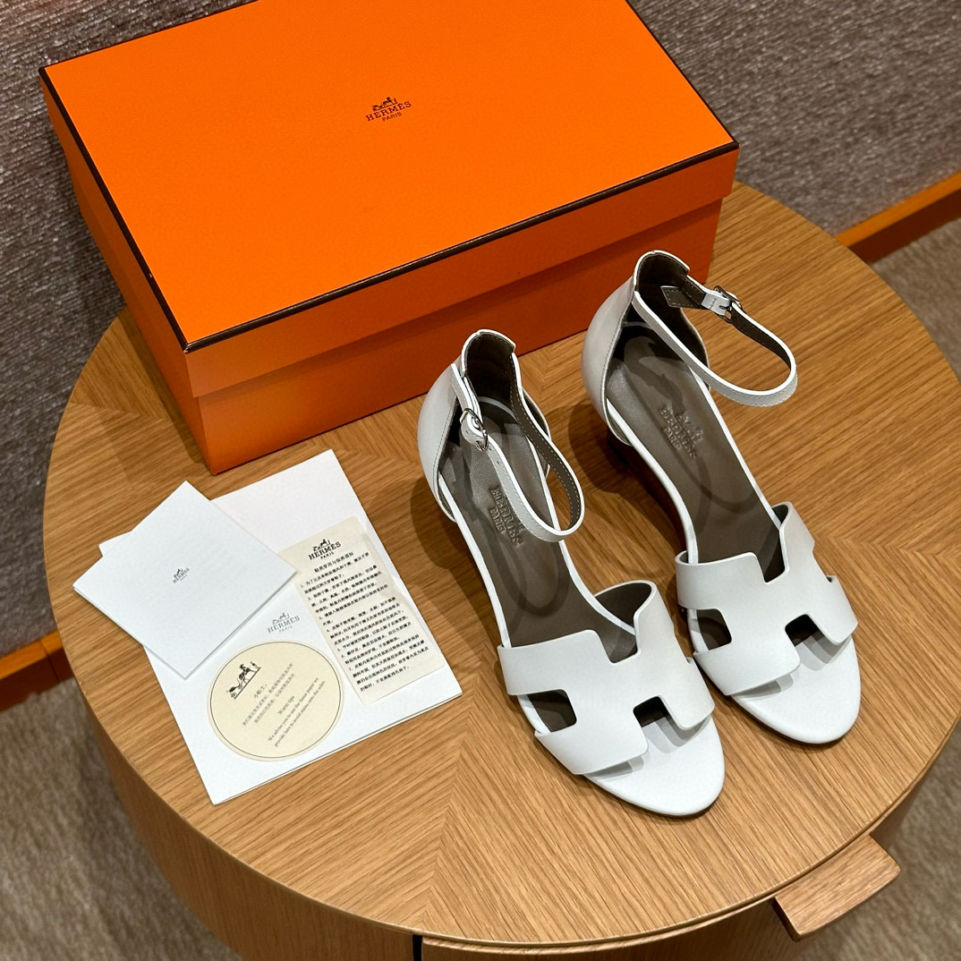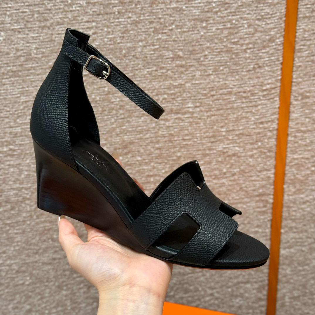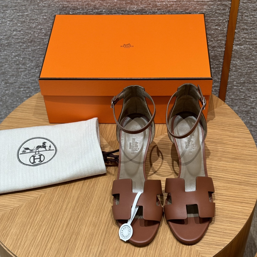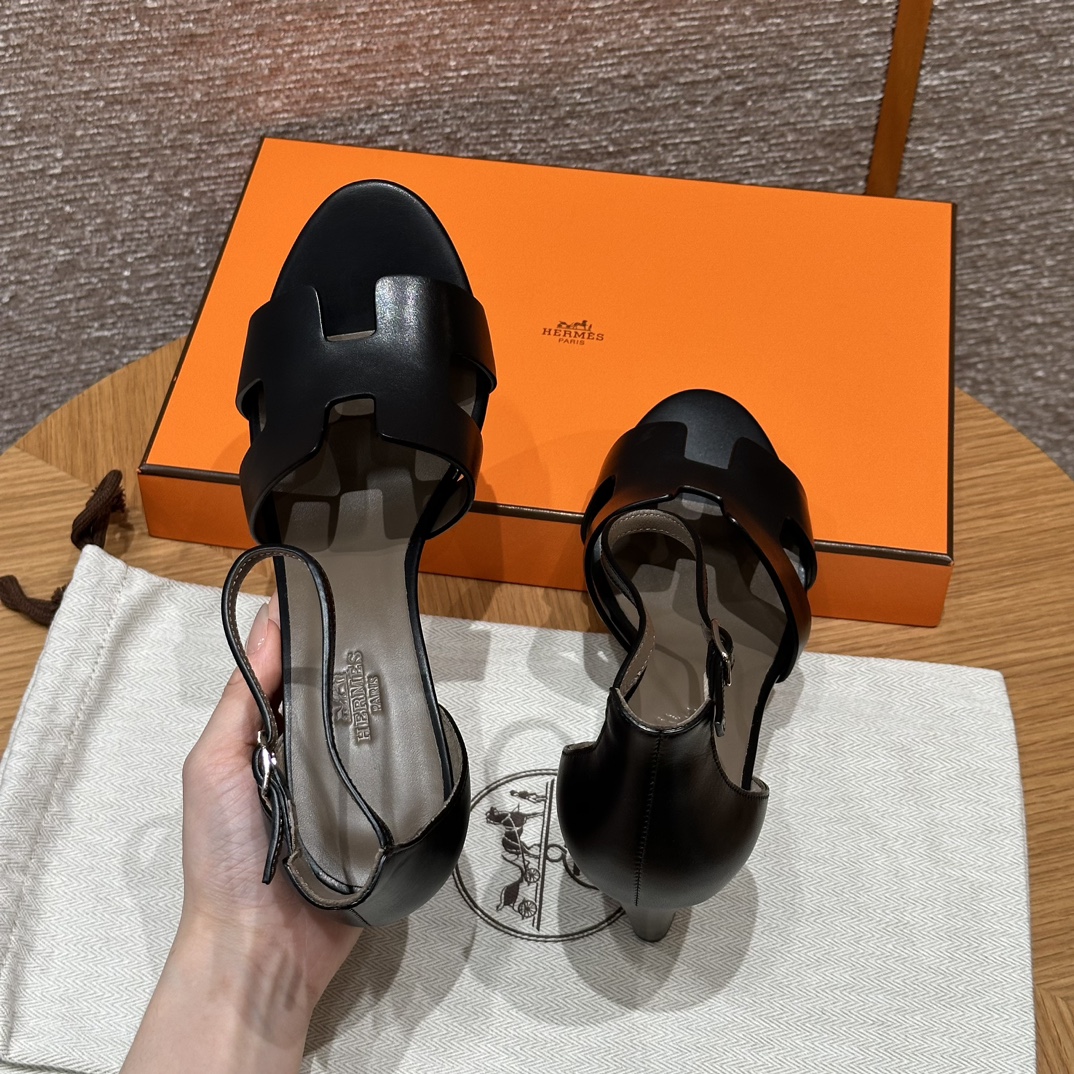NIGO Hermes Legend Women's Solid Color Summer Solid Color Open Toe Buckle Leather Thick Sole High Heel Sandals Shoes #nigo77466