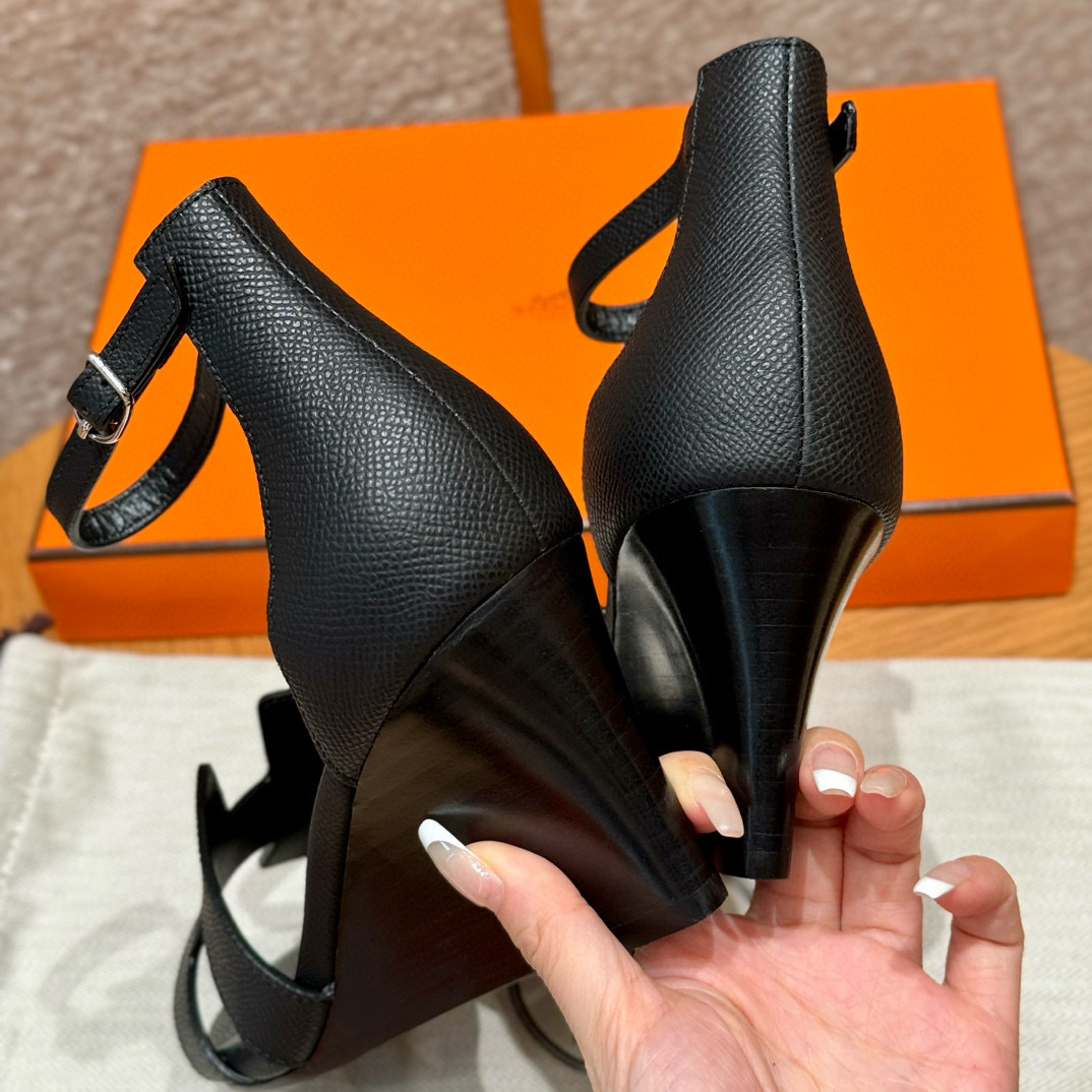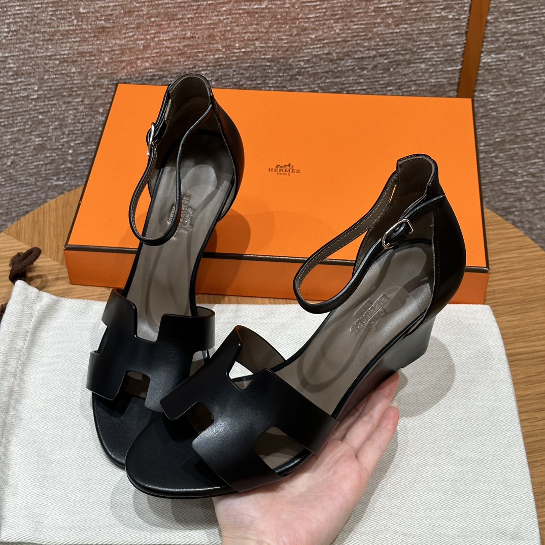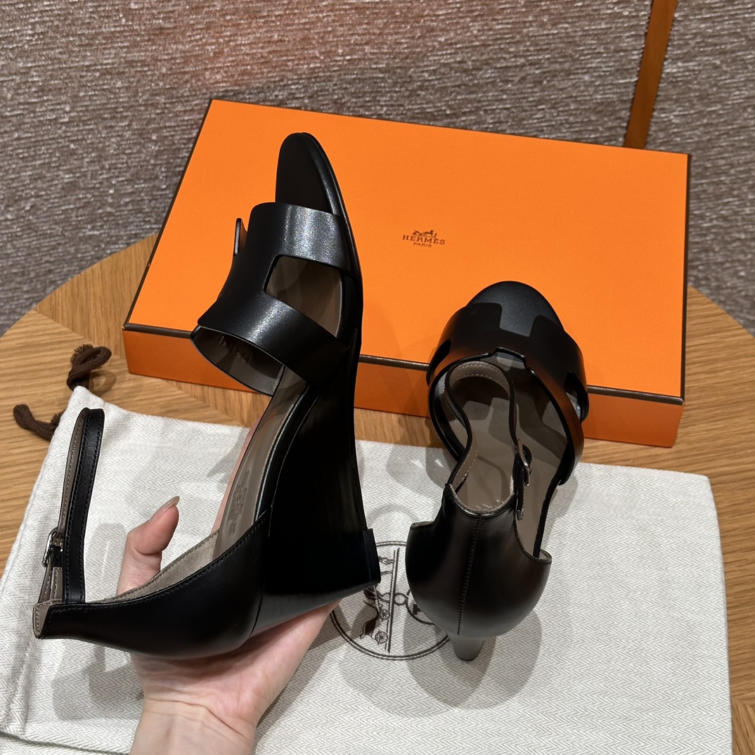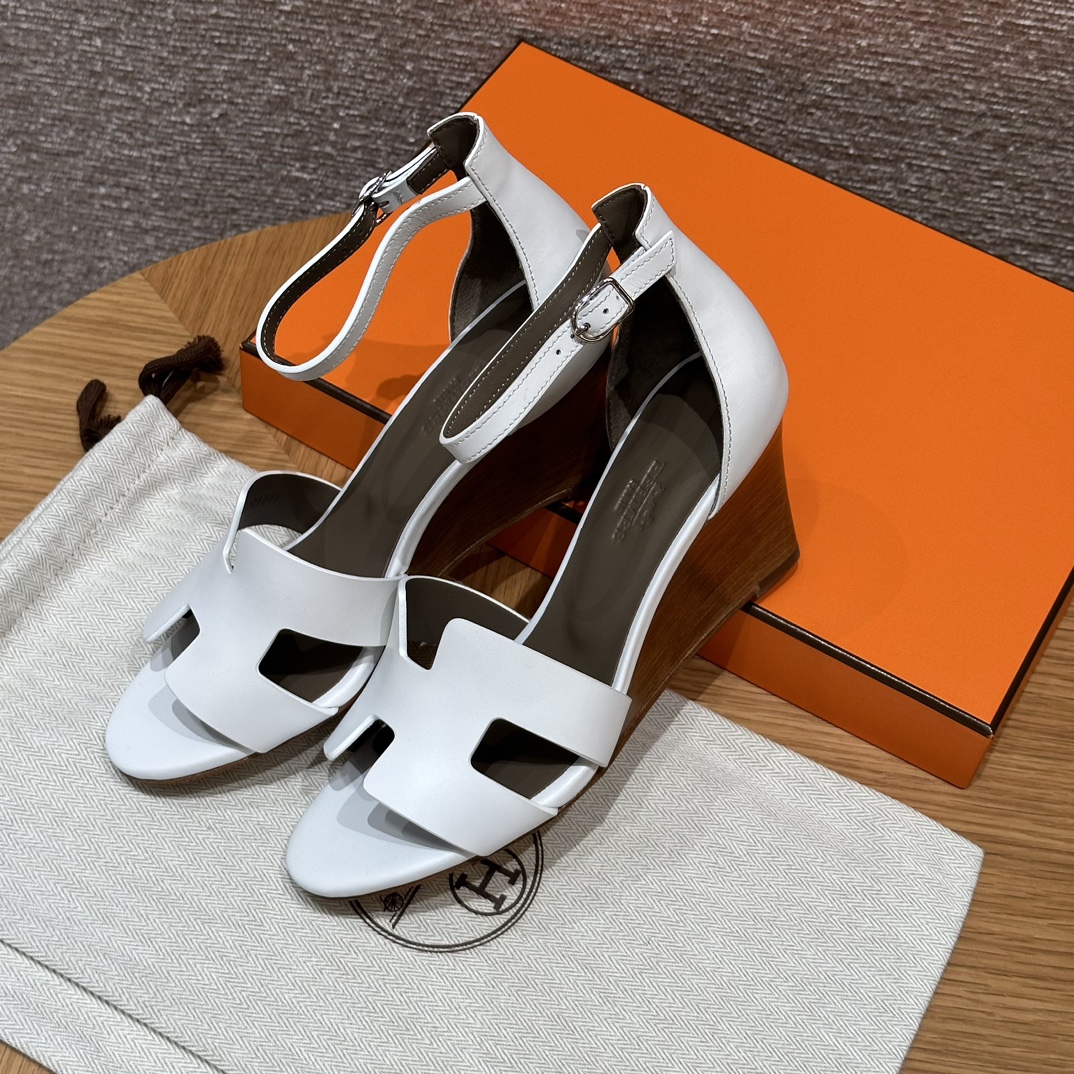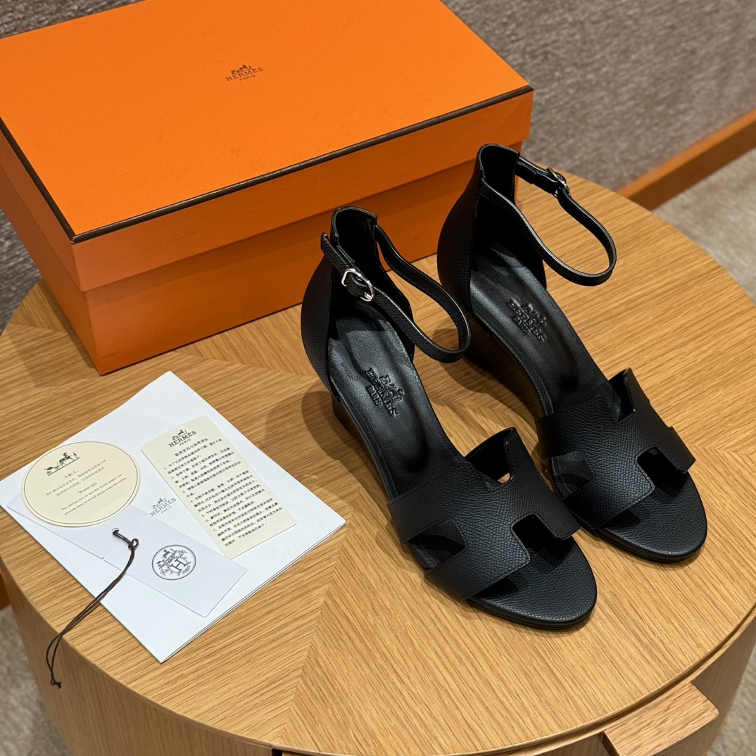 NIGO Hermes Legend Women's Solid Color Summer Solid Color Open Toe Buckle Leather Thick Sole High Heel Sandals Shoes #nigo77466