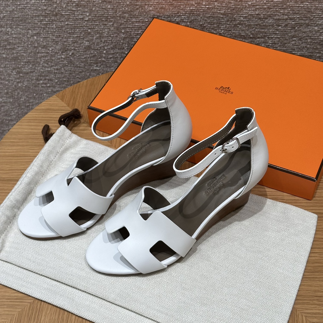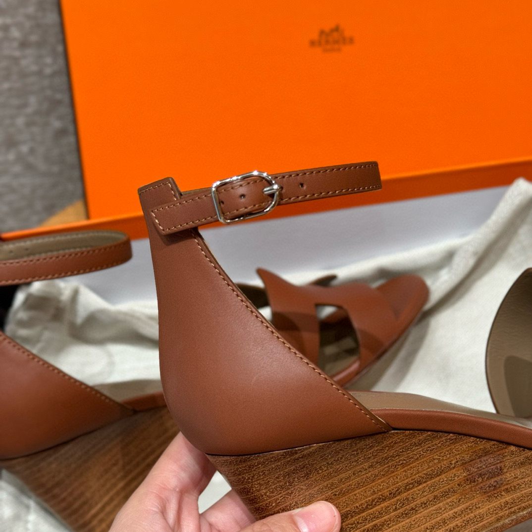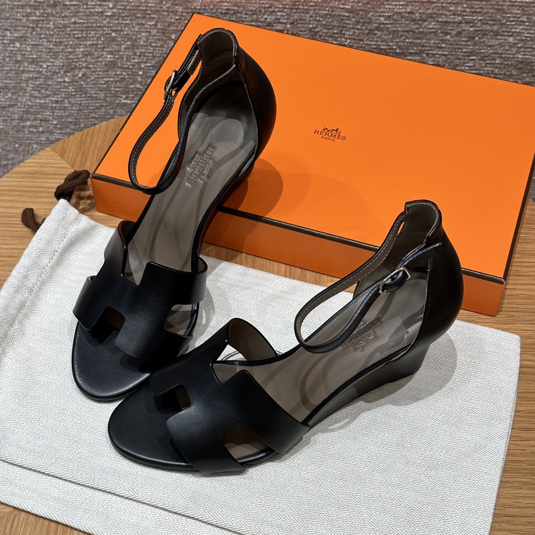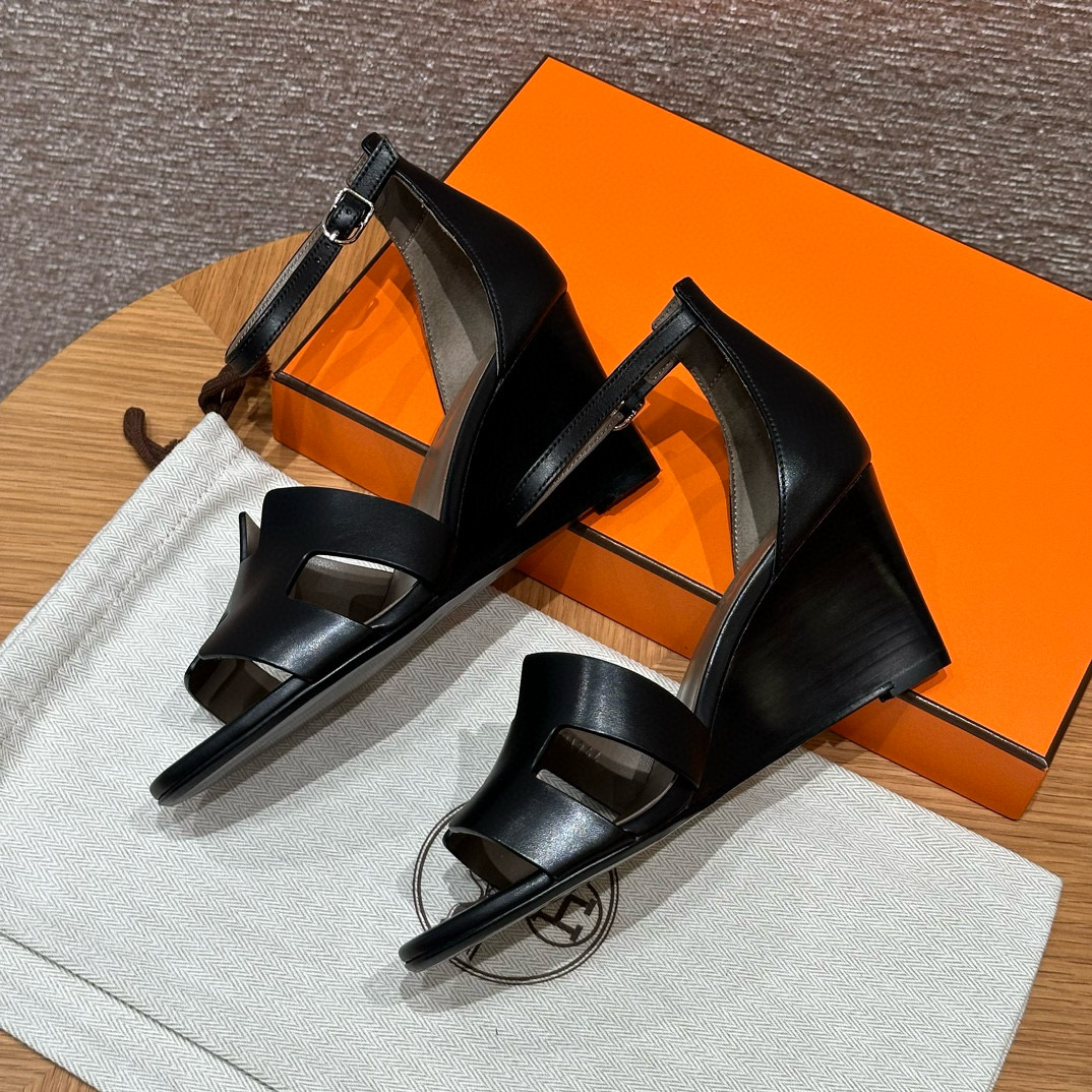 NIGO Hermes Legend Women's Solid Color Summer Solid Color Open Toe Buckle Leather Thick Sole High Heel Sandals Shoes #nigo77466