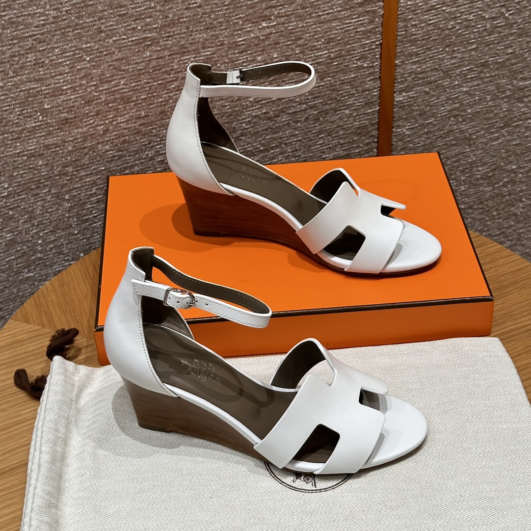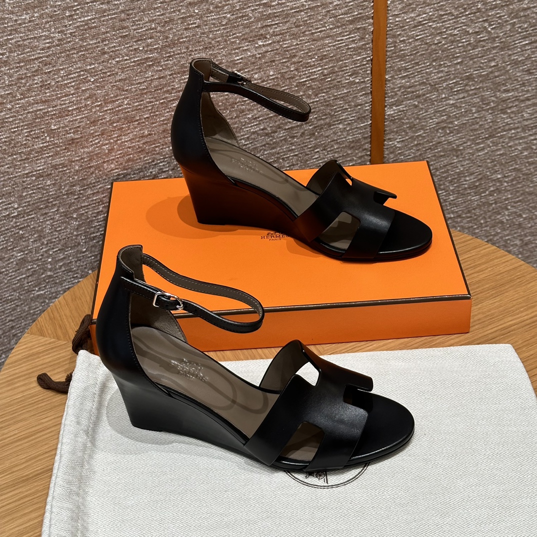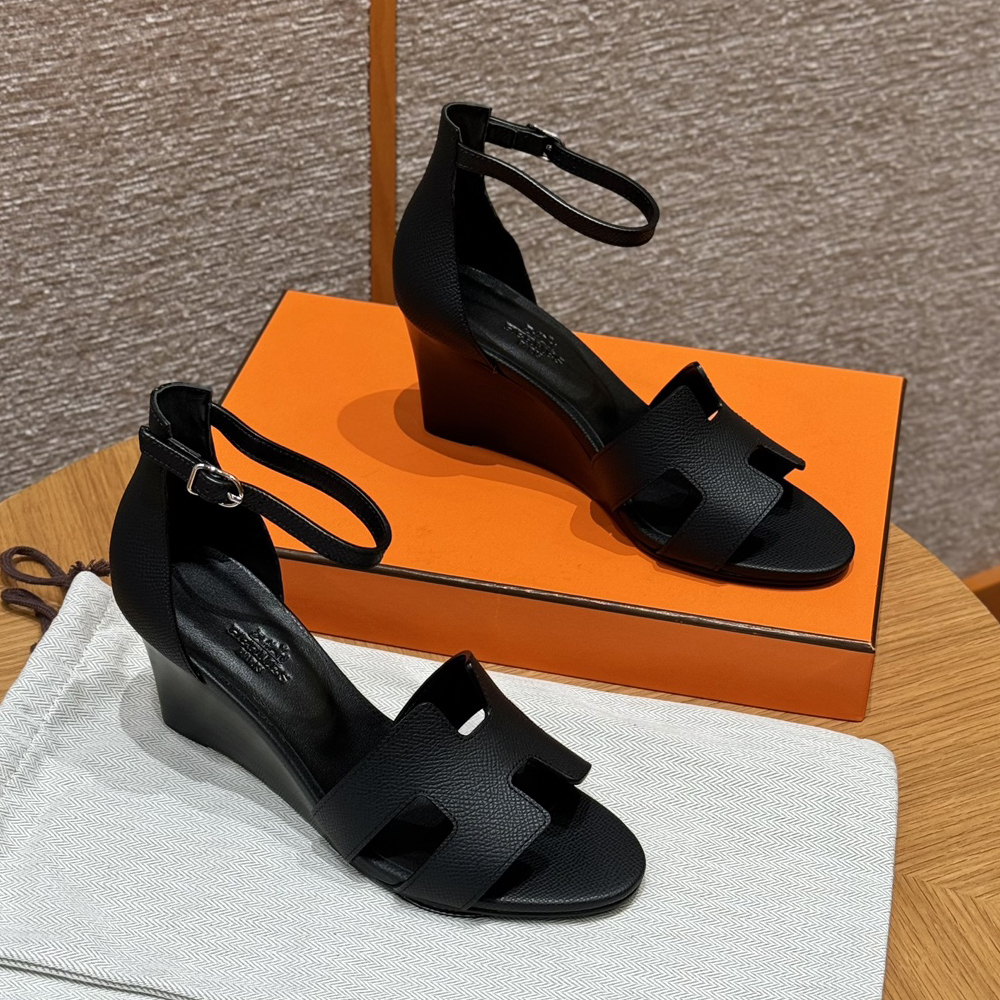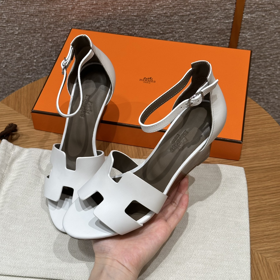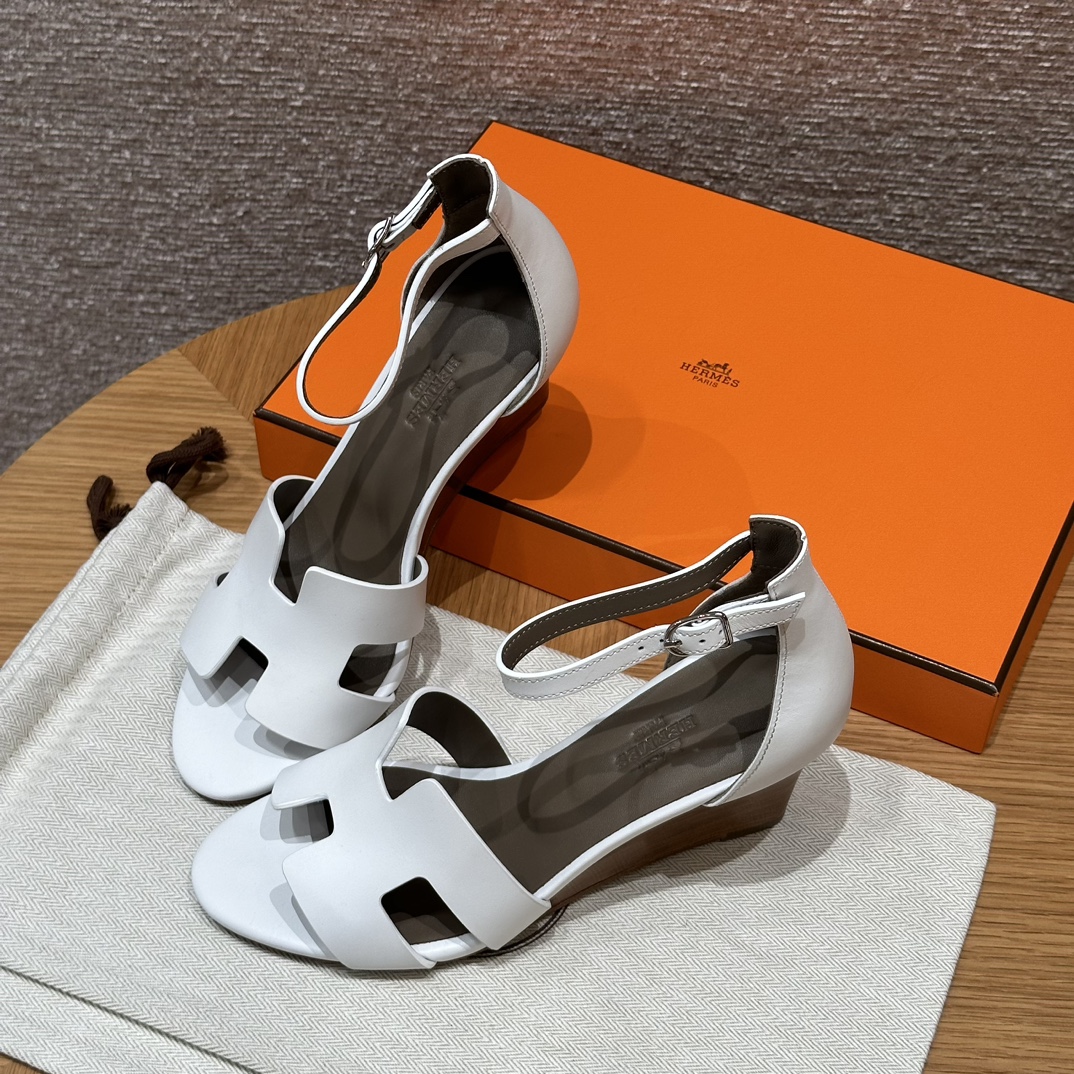 NIGO Hermes Legend Women's Solid Color Summer Solid Color Open Toe Buckle Leather Thick Sole High Heel Sandals Shoes #nigo77466