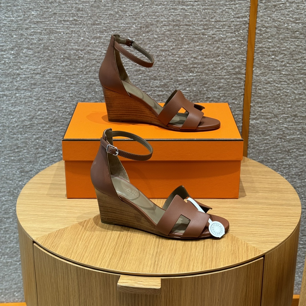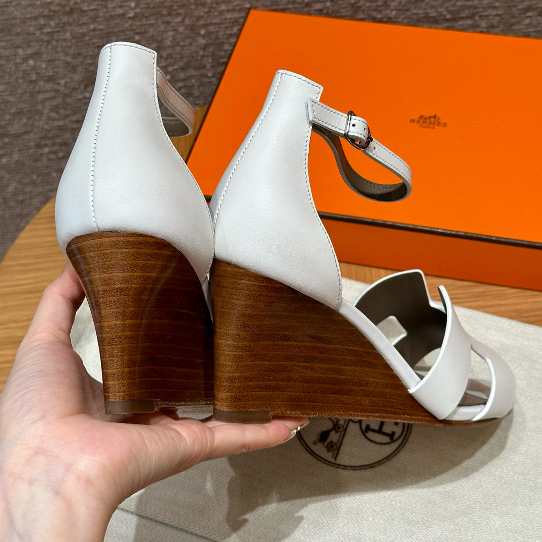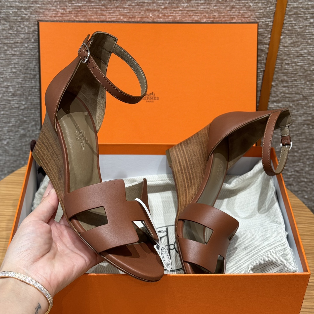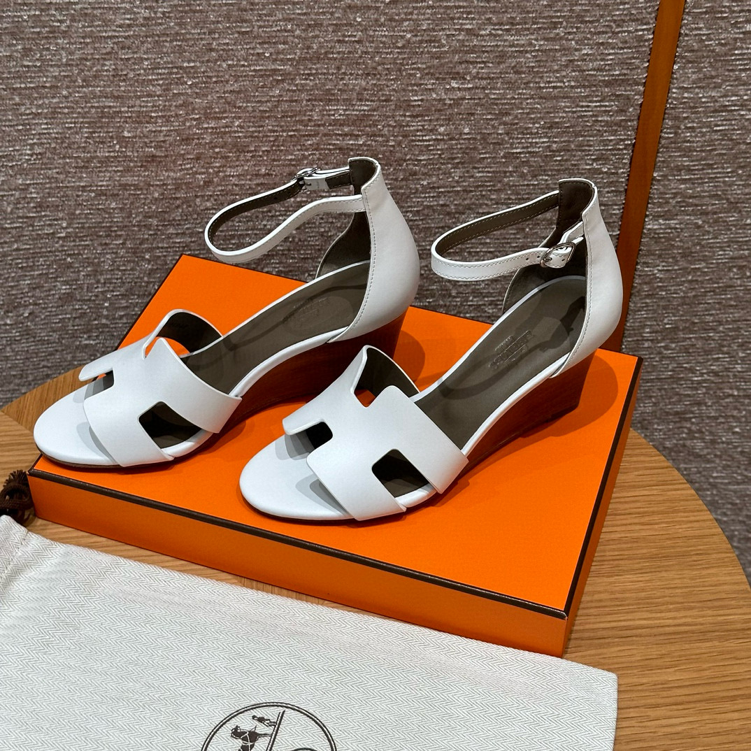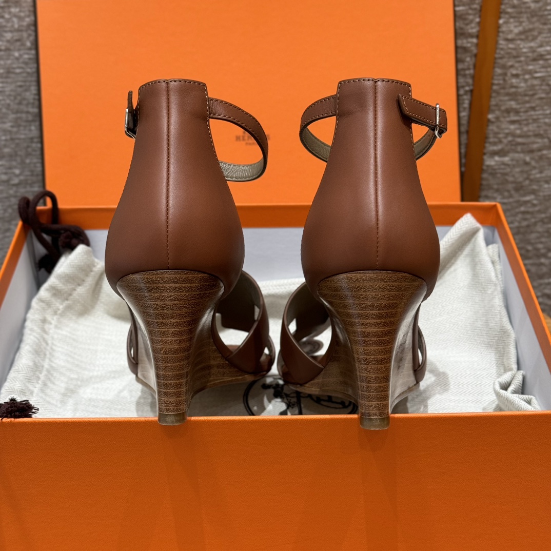 NIGO Hermes Legend Women's Solid Color Summer Solid Color Open Toe Buckle Leather Thick Sole High Heel Sandals Shoes #nigo77466