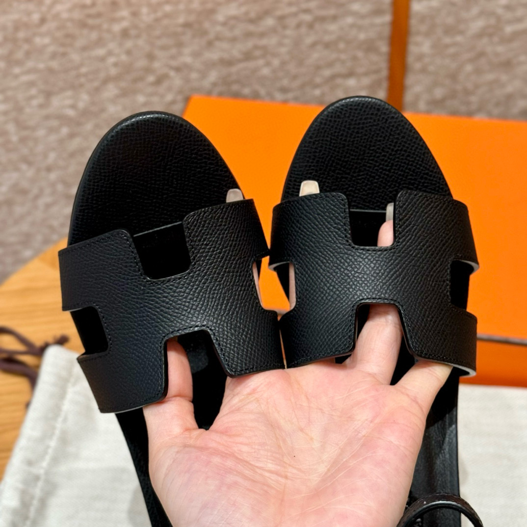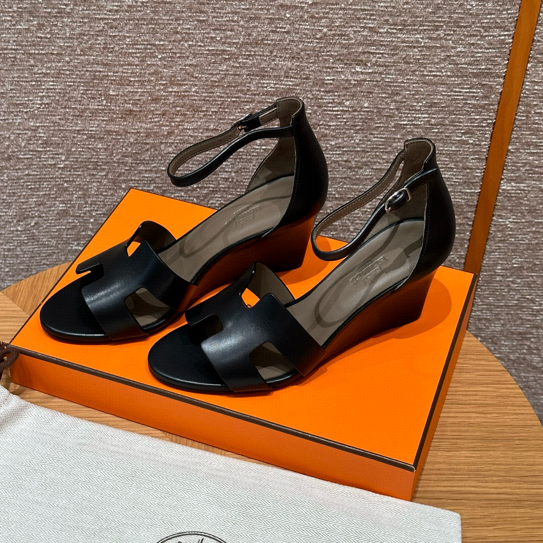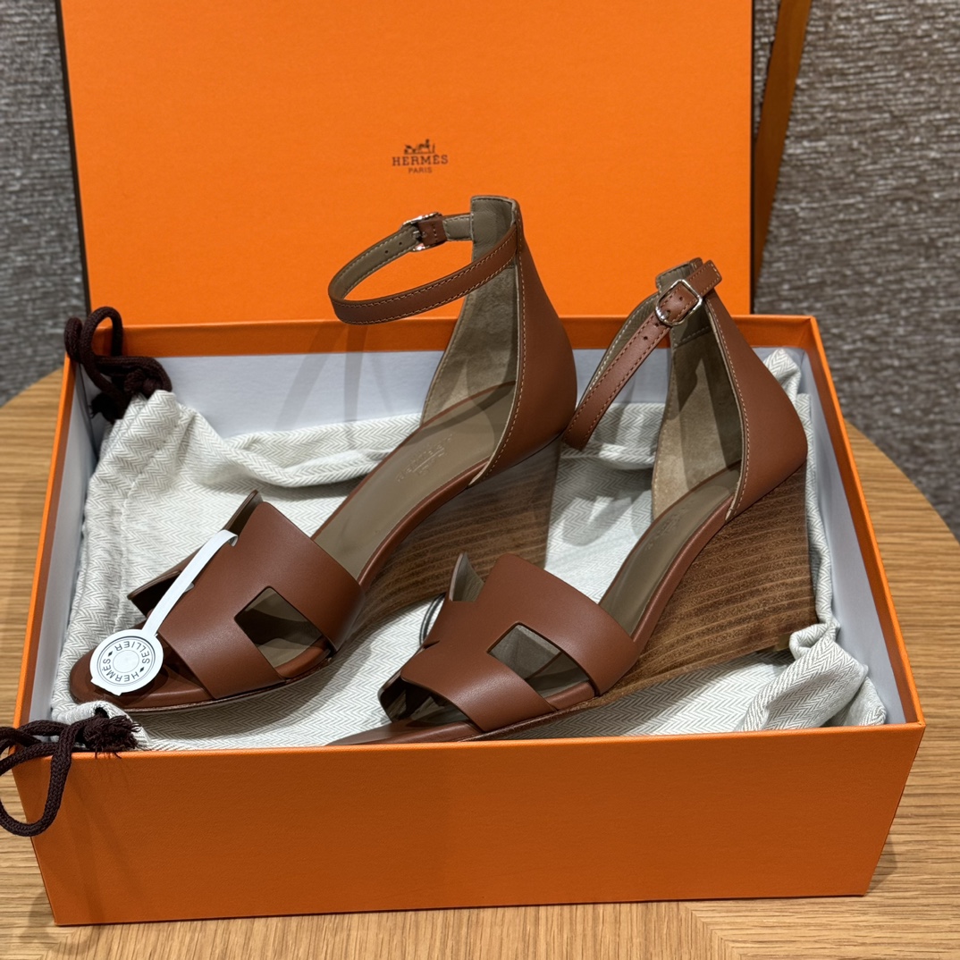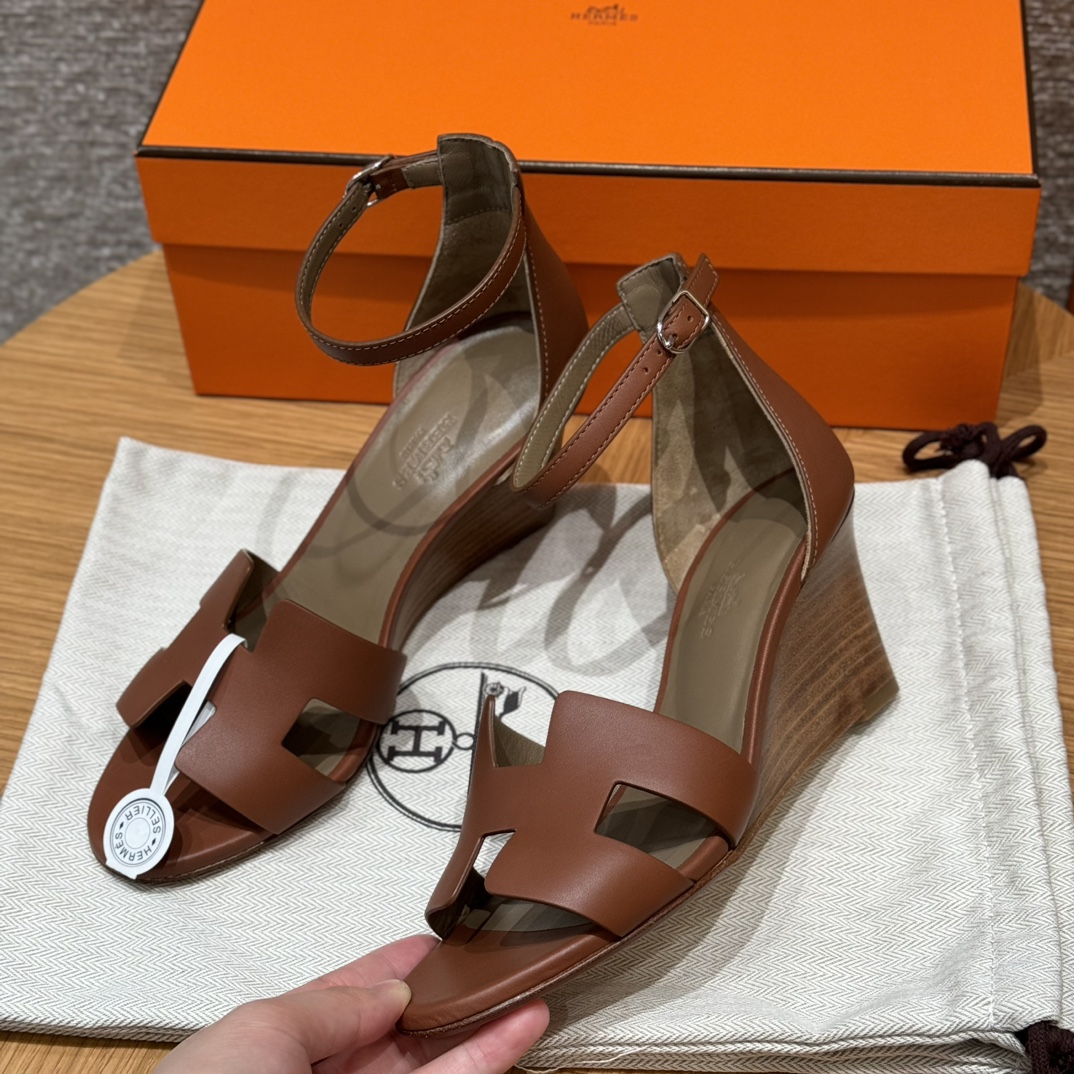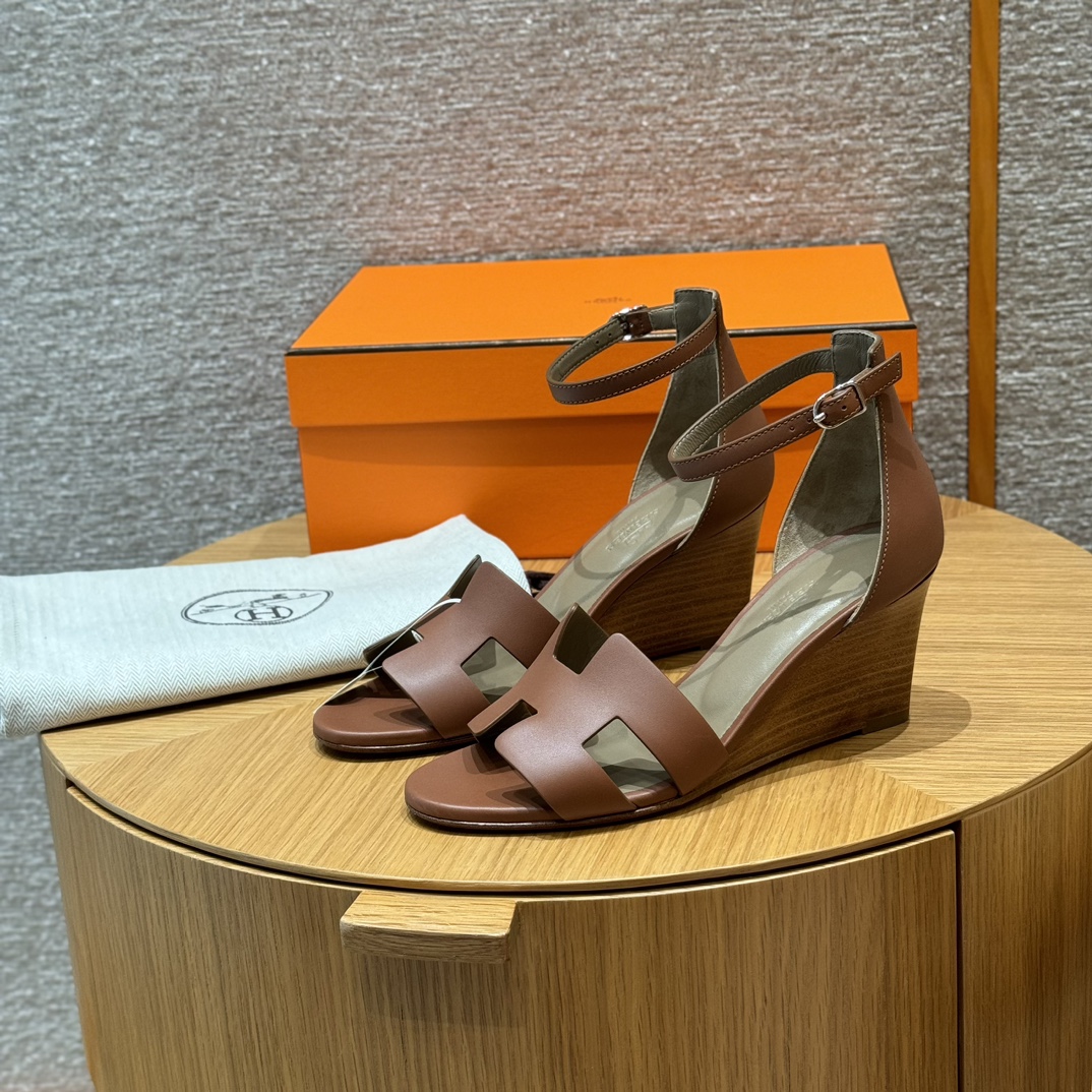 NIGO Hermes Legend Women's Solid Color Summer Solid Color Open Toe Buckle Leather Thick Sole High Heel Sandals Shoes #nigo77466
