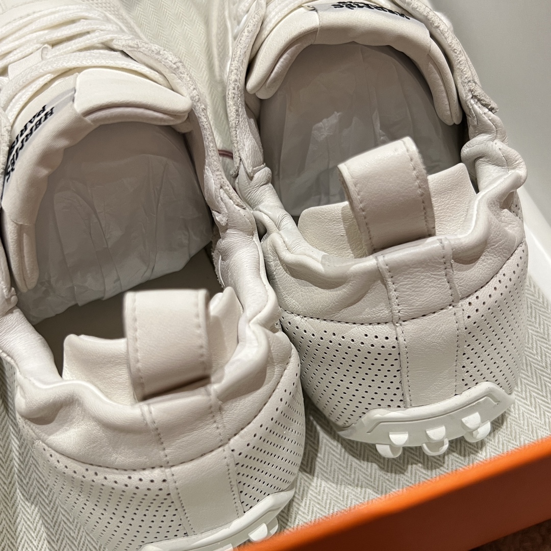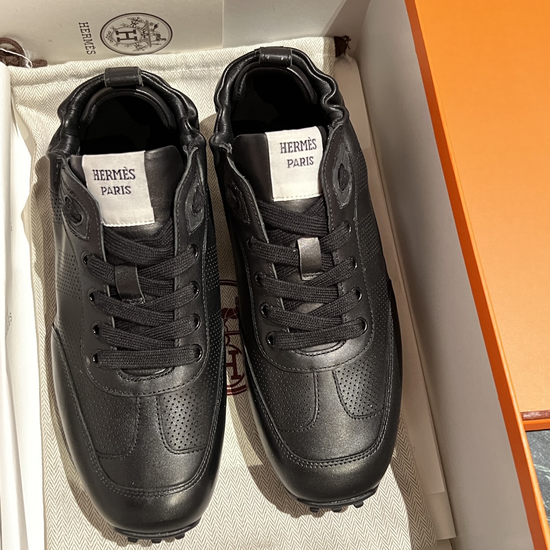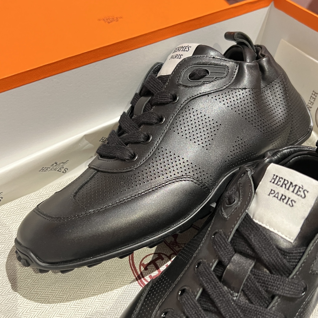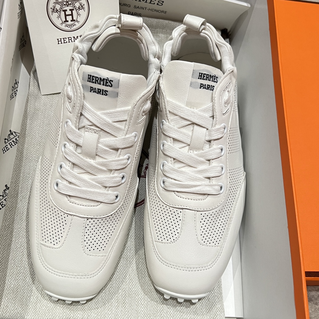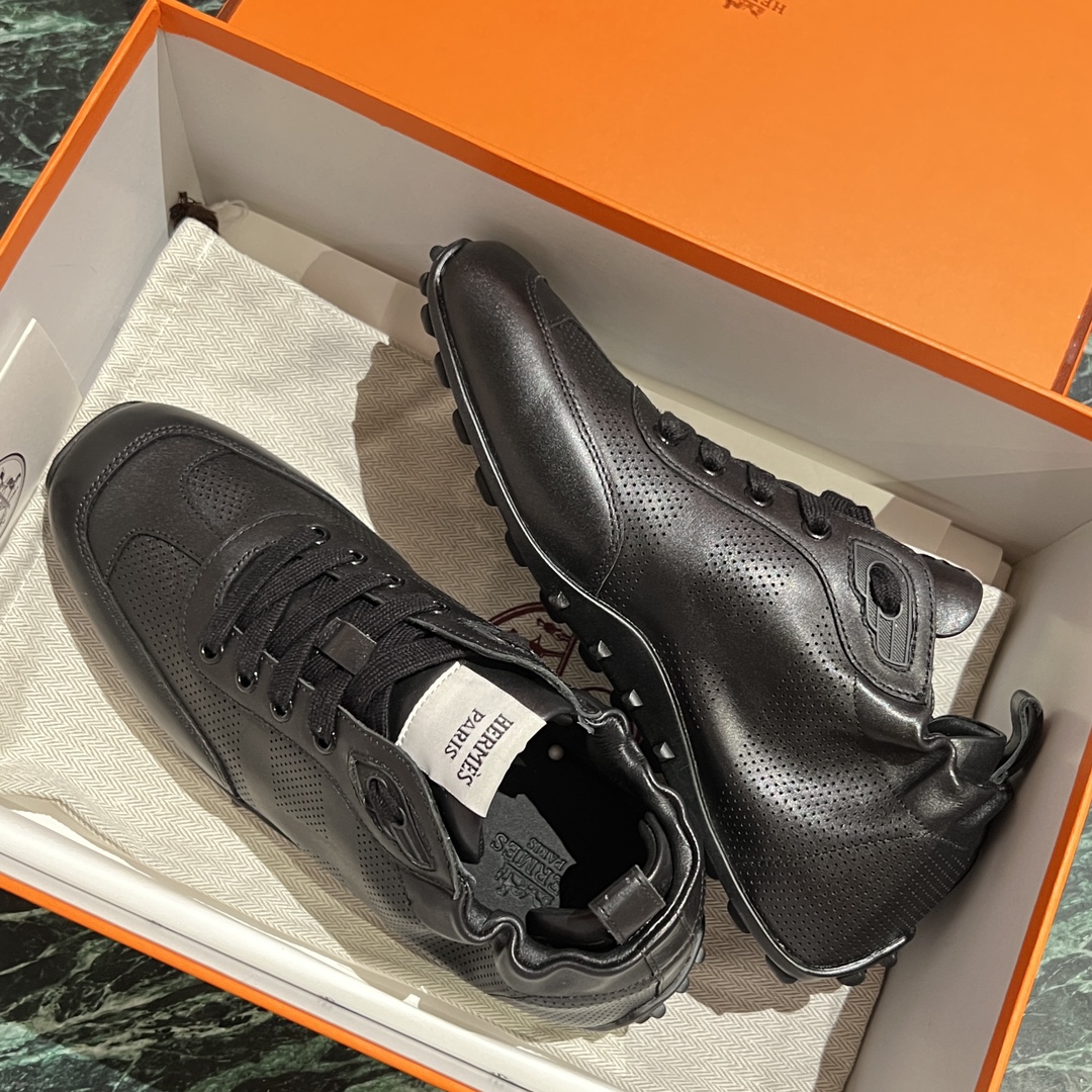 NIGO Hermes Men's And Women's Solid Color Grained Calf Leather Round Toe Low Top Lace Up Sneakers Shoes #nigo72224