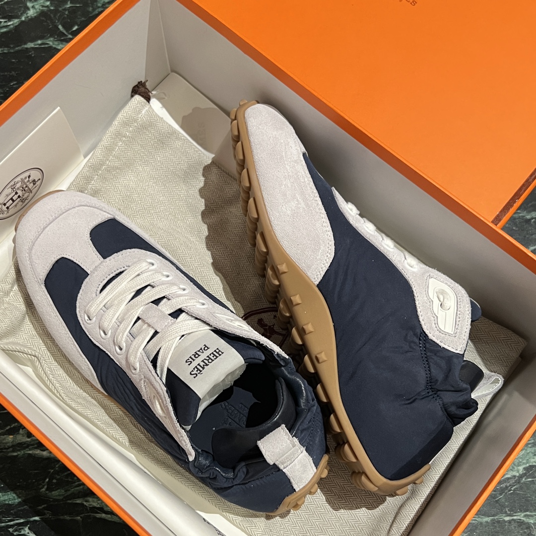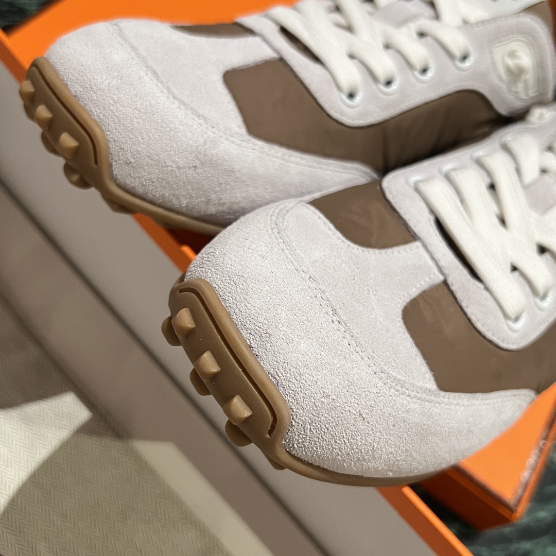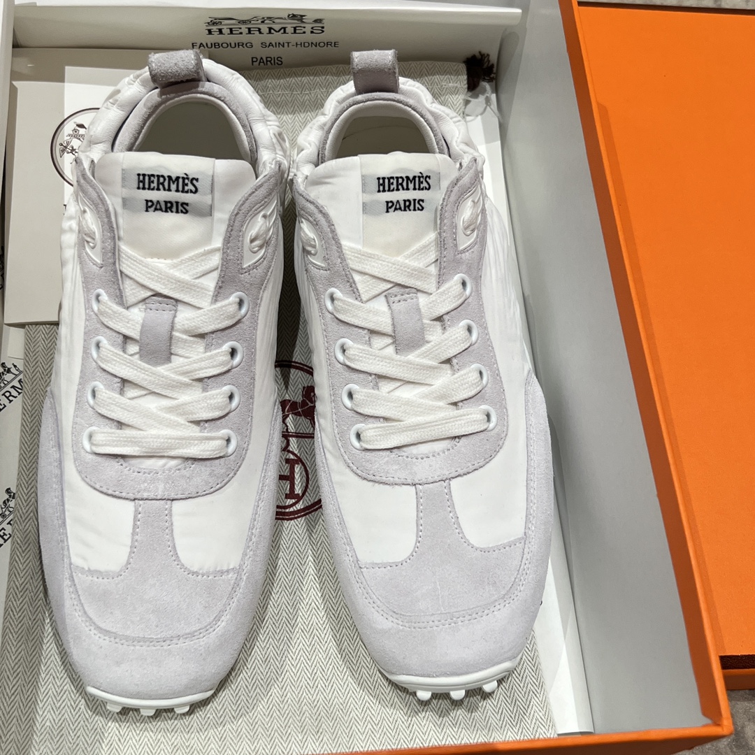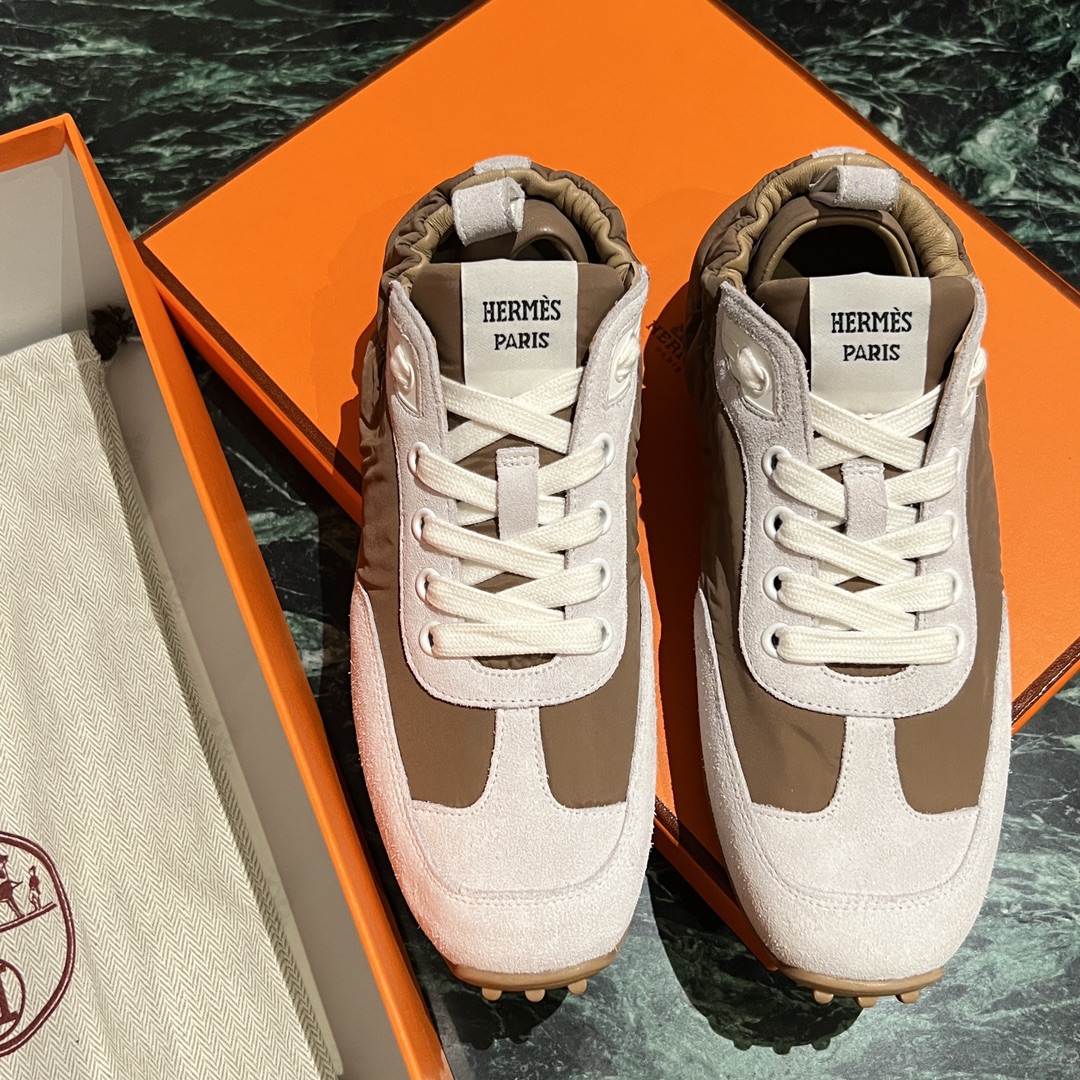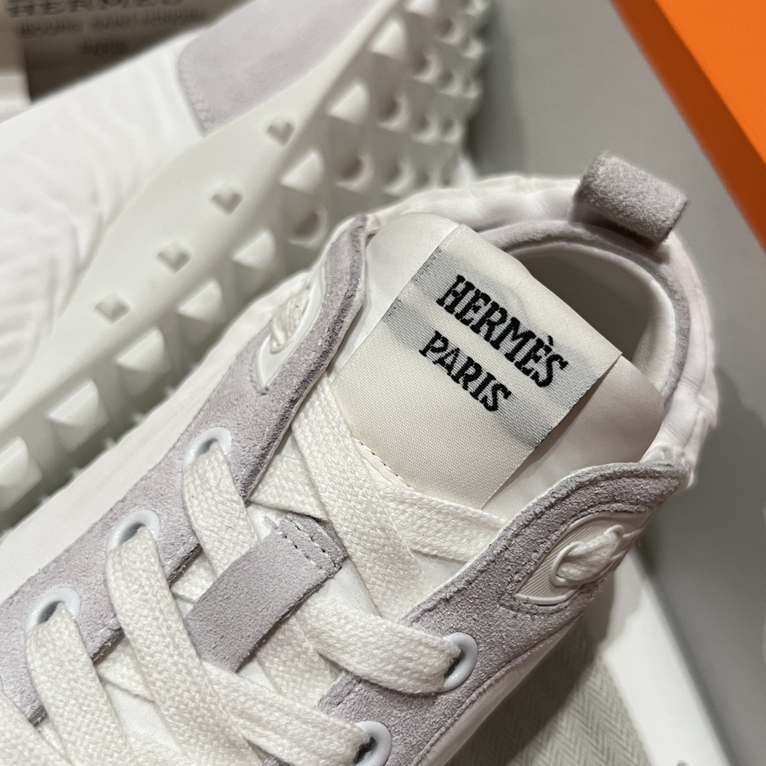 NIGO Hermes Men's And Women's Solid Color Grained Calf Leather Round Toe Low Top Lace Up Sneakers Shoes #nigo72224
