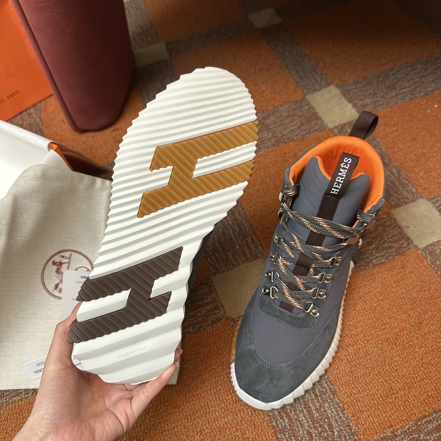 NIGO Hermes Men's and Women's Solid Color Suede Goatskin High Top Lace Up Sneakers Shoes #nigo75742