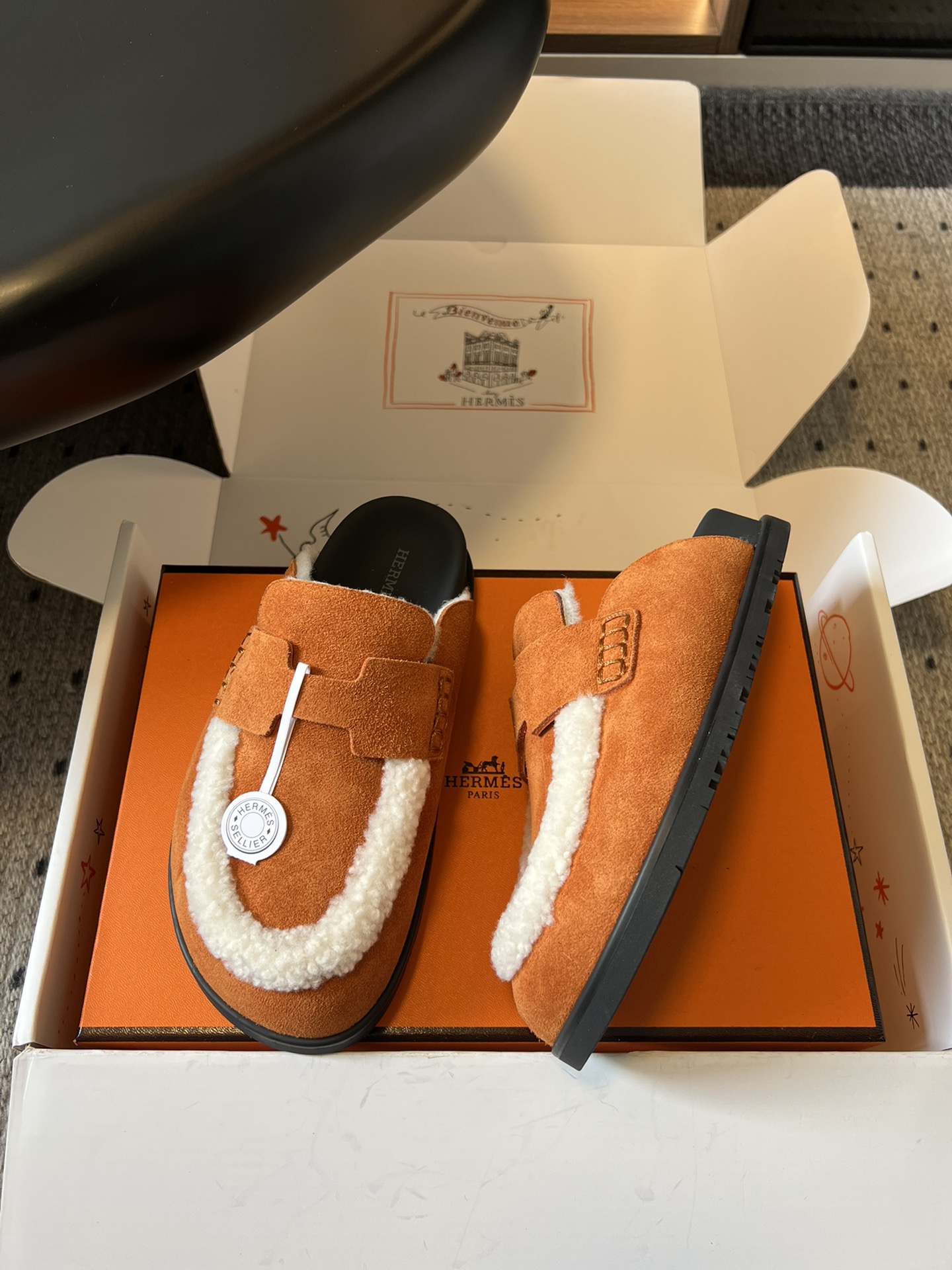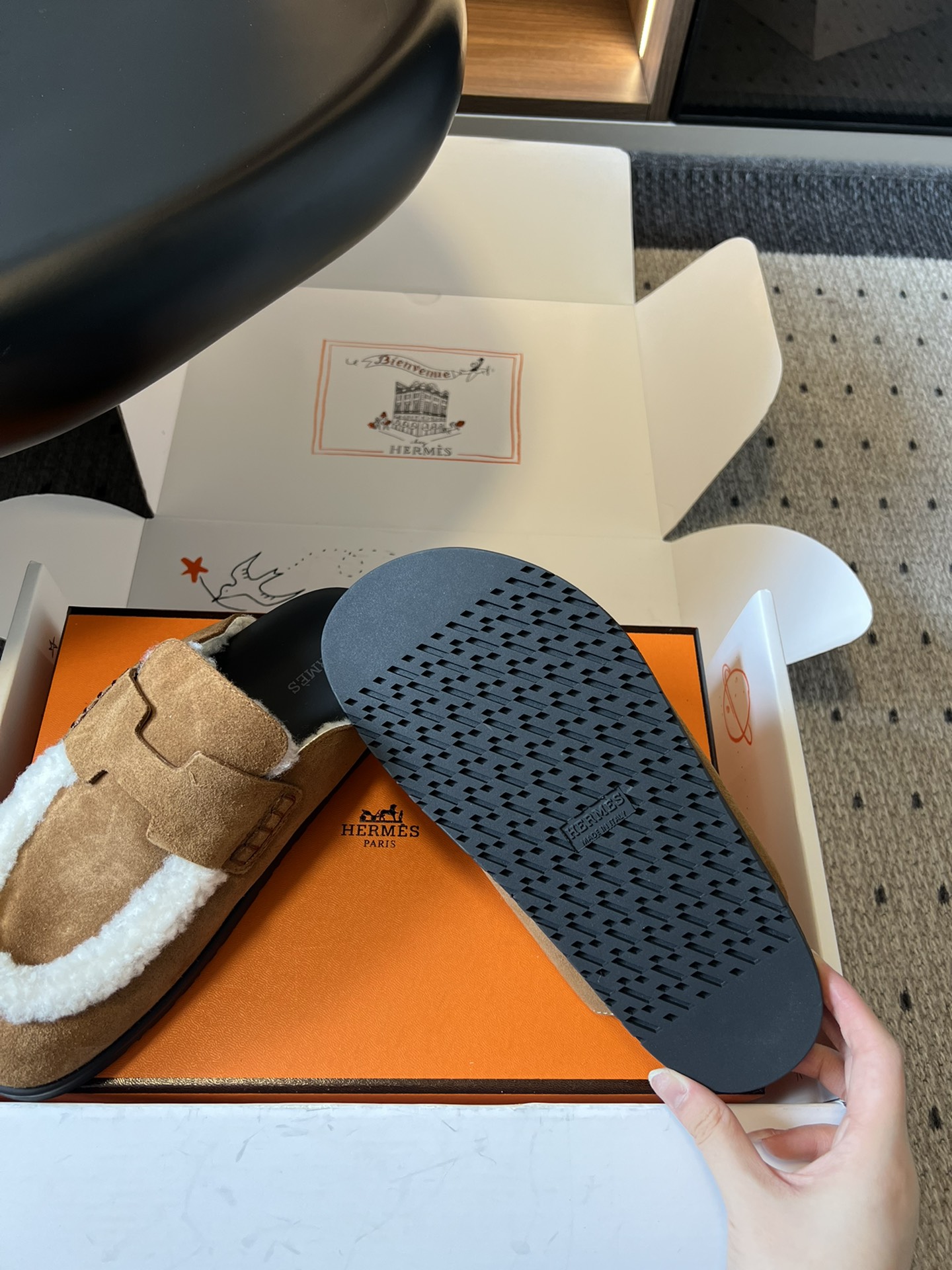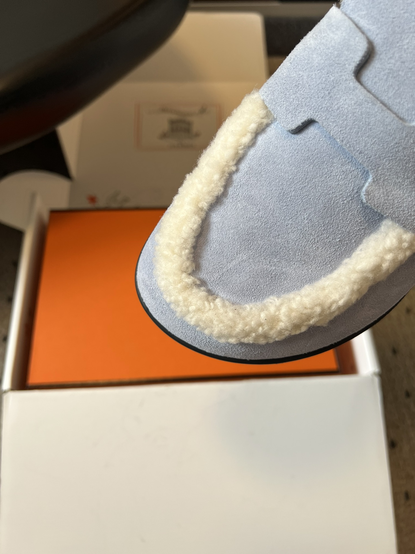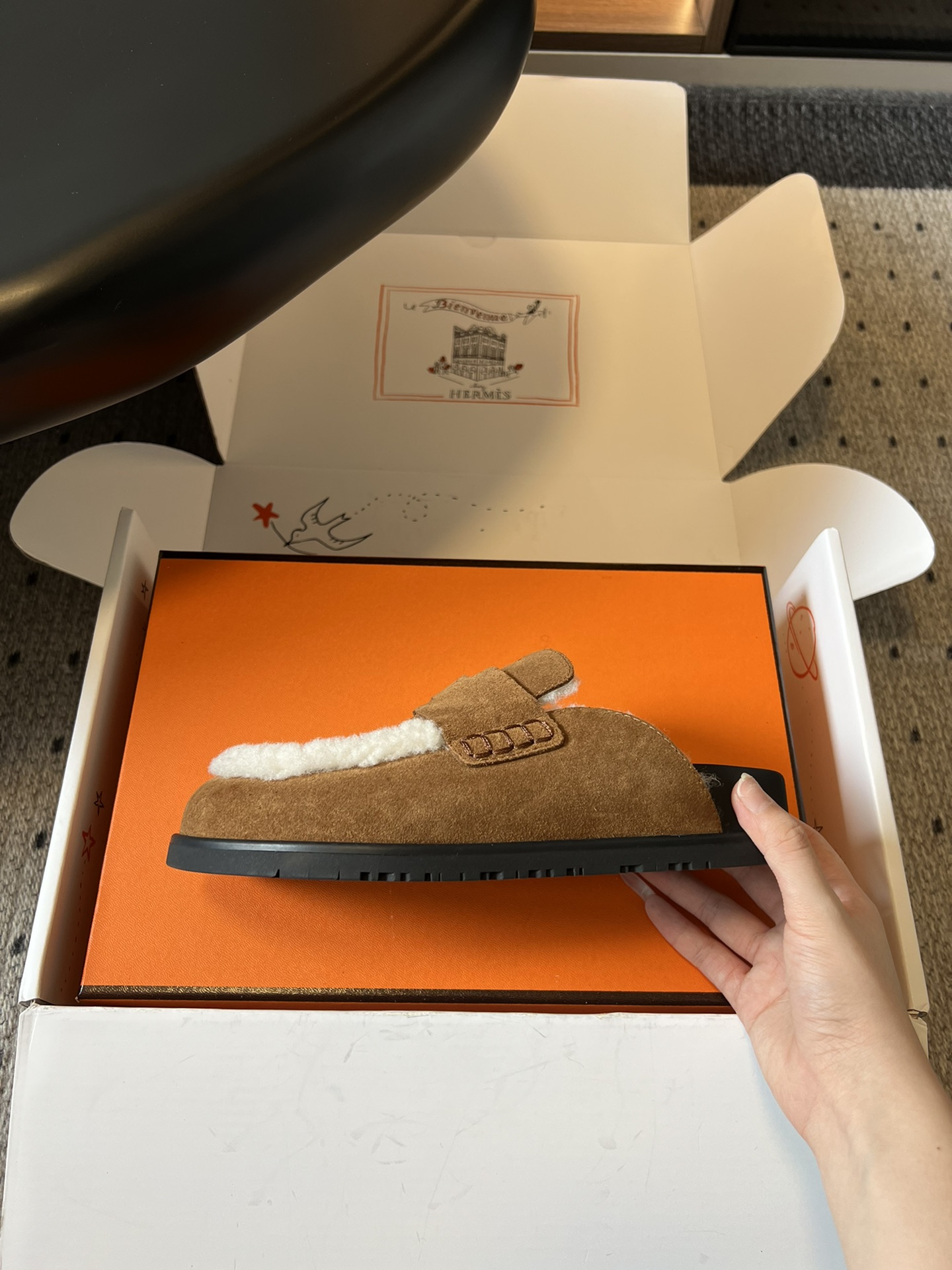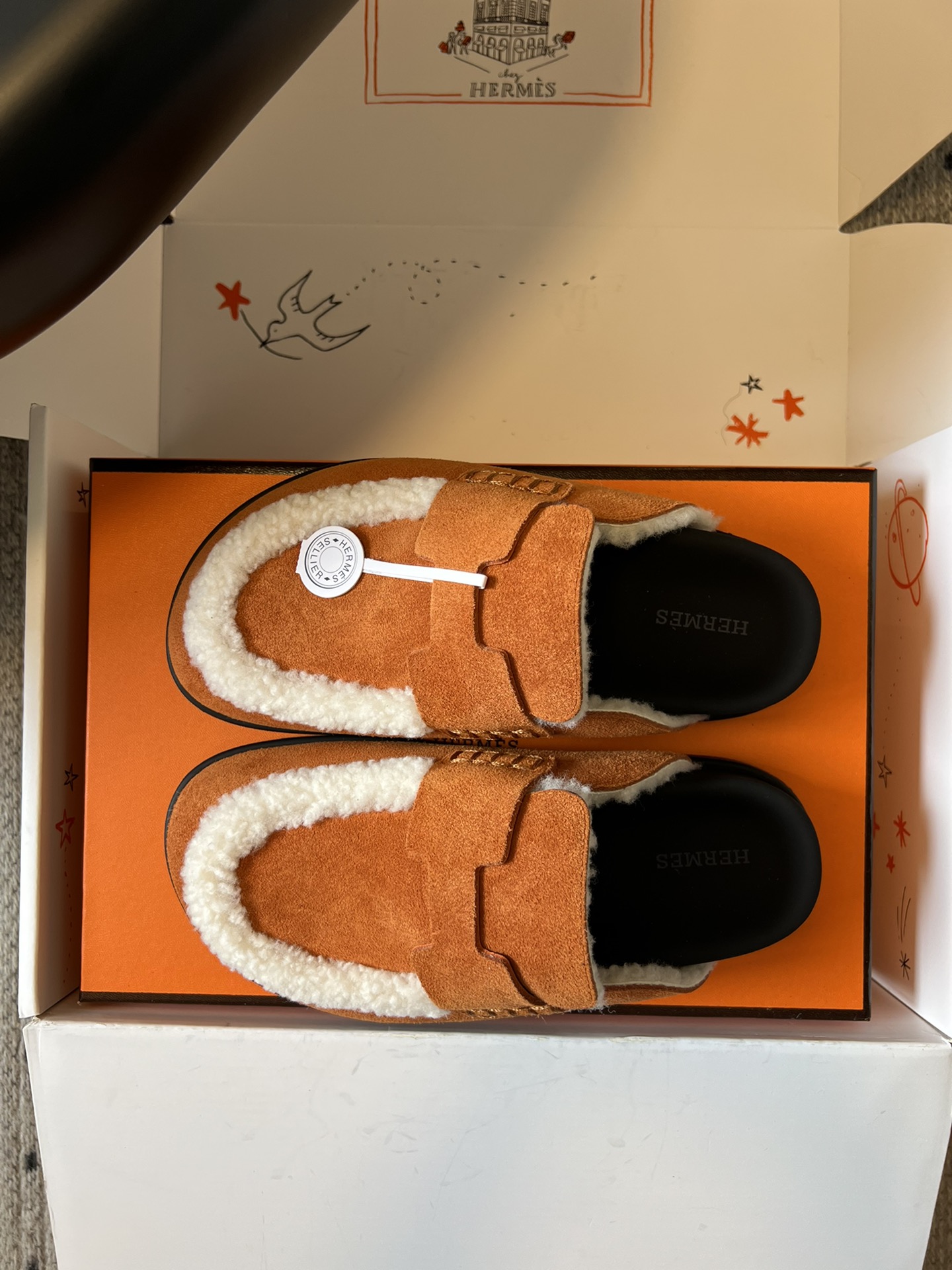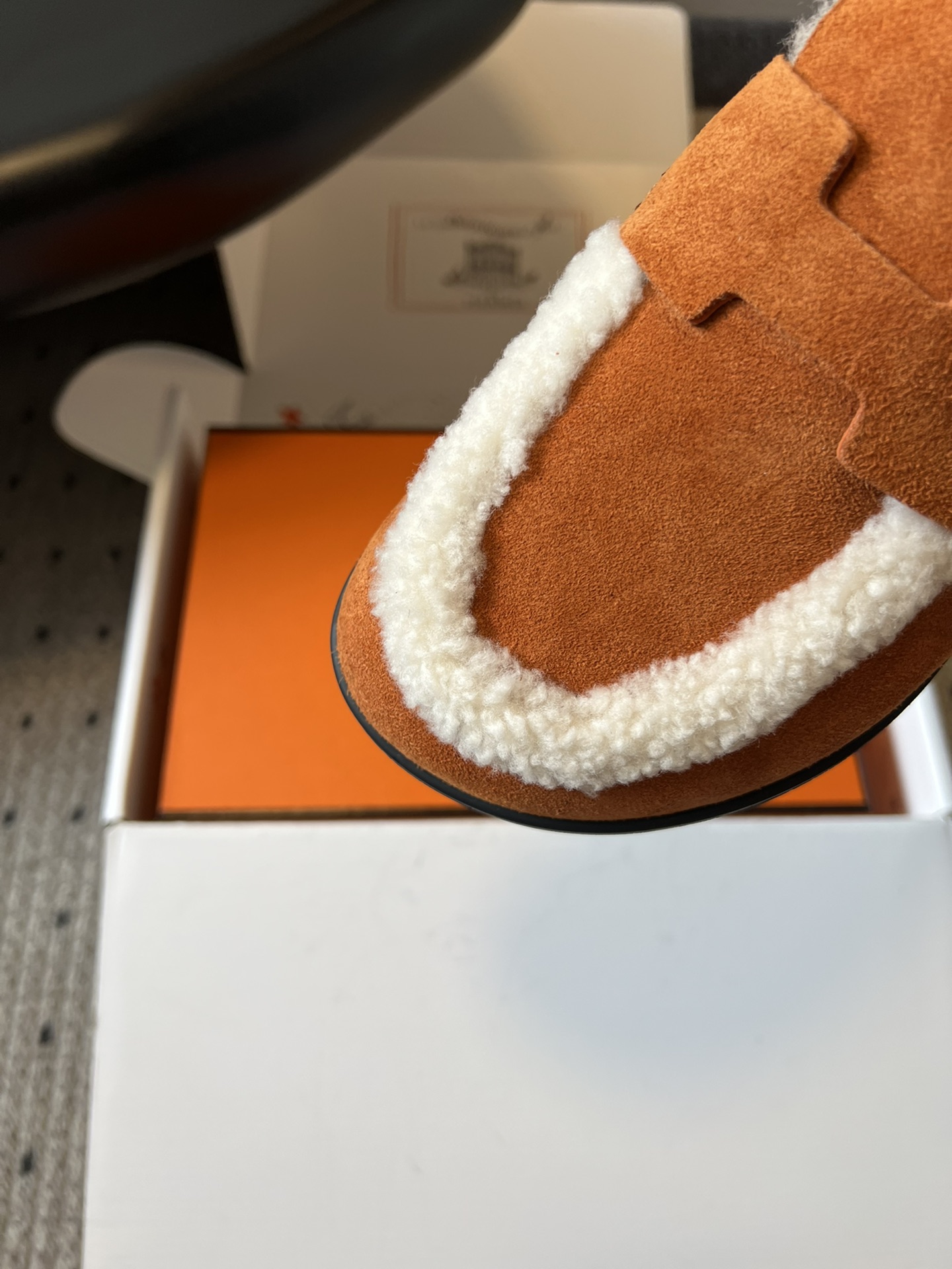 NIGO Hermes Men's And Women's Winter Boken Shoes Round Toe Flat Heel Slippers Solid Color Suede Mule Go Shoes #nigo81519
