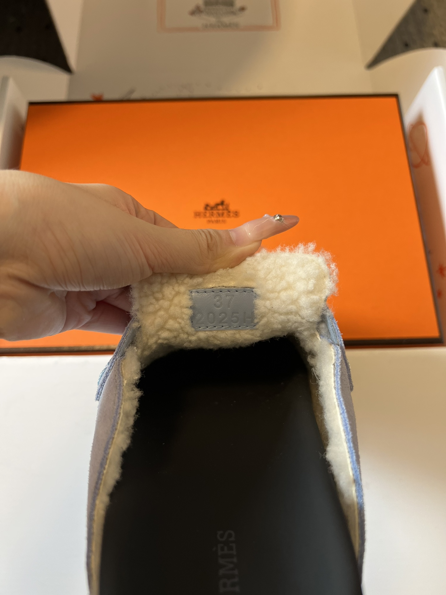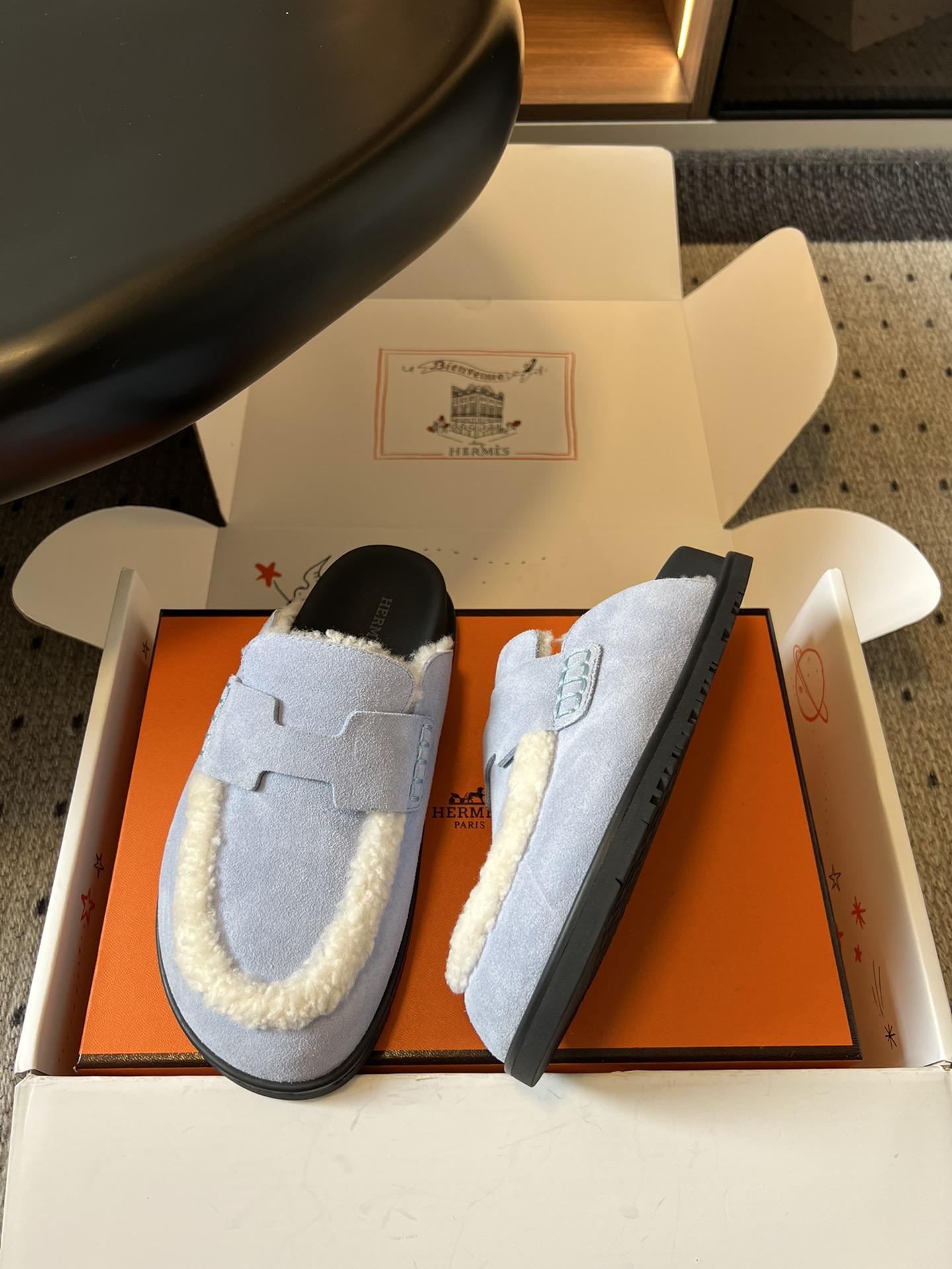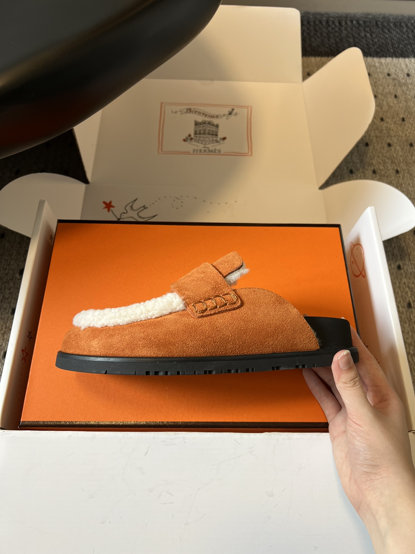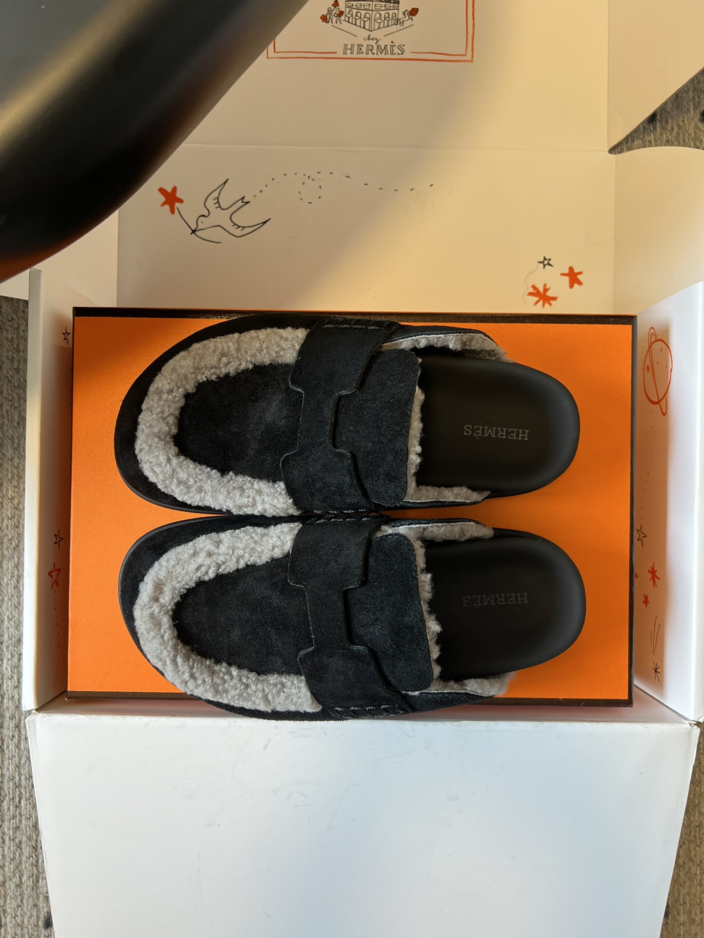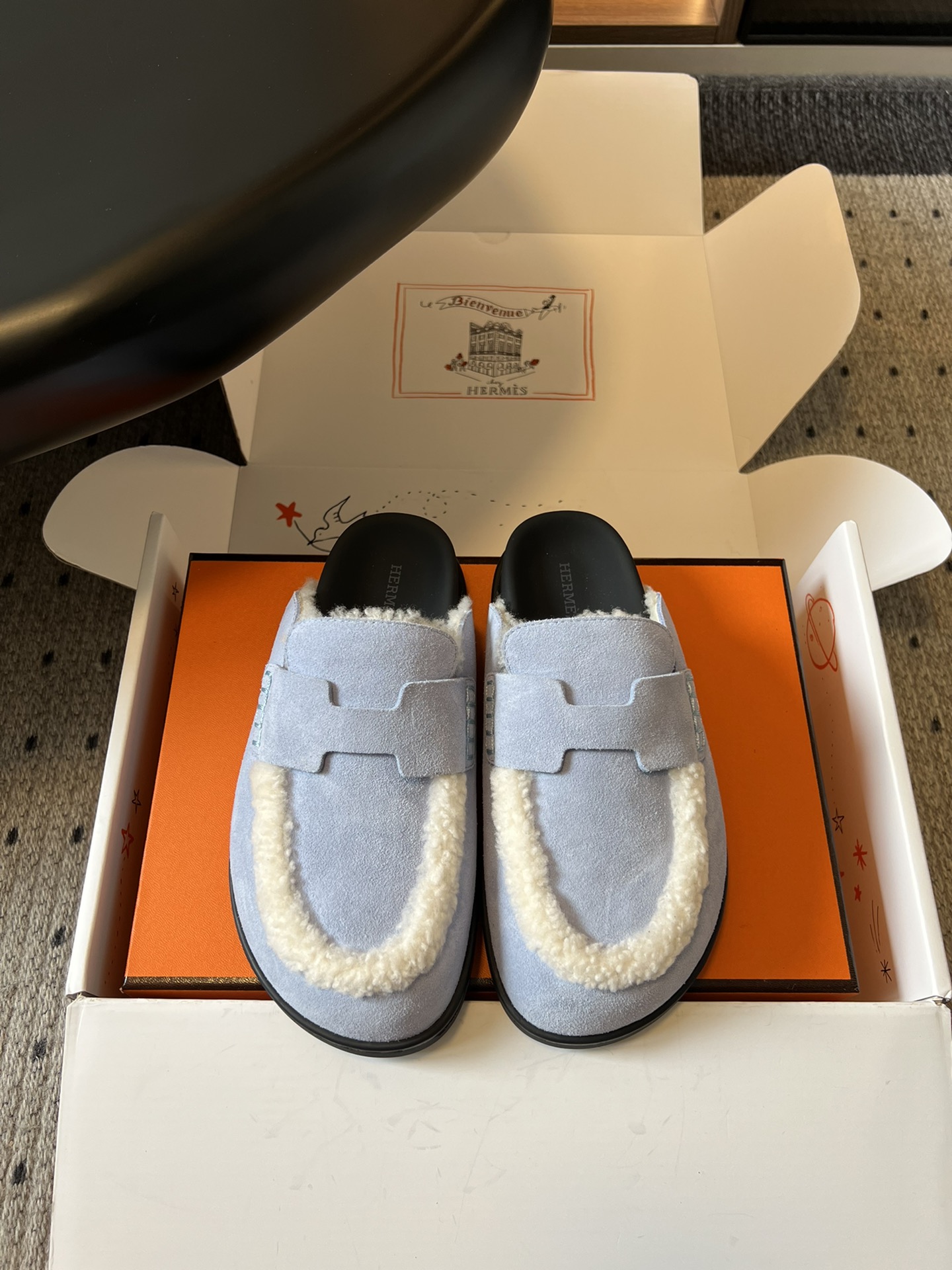 NIGO Hermes Men's And Women's Winter Boken Shoes Round Toe Flat Heel Slippers Solid Color Suede Mule Go Shoes #nigo81519