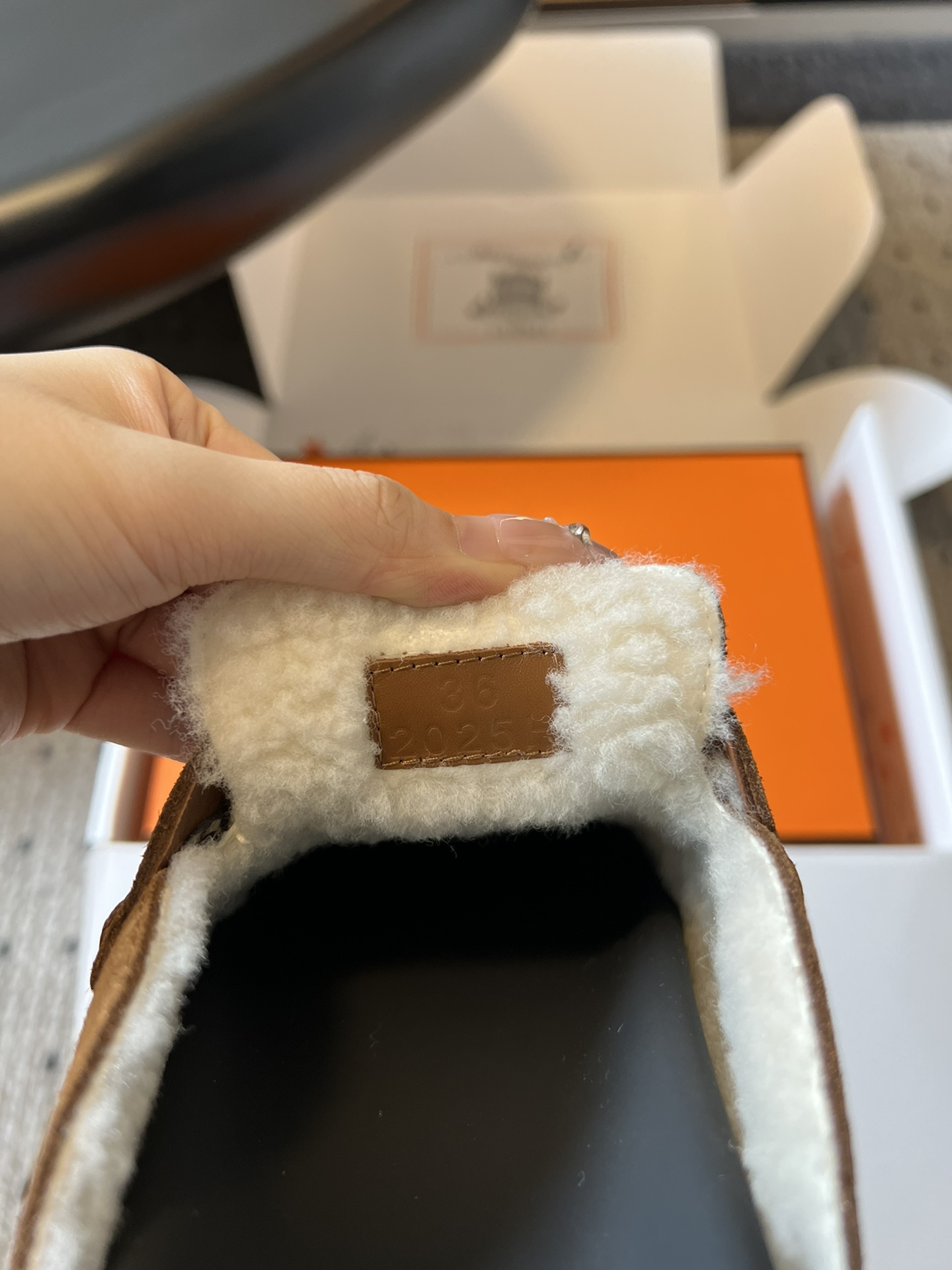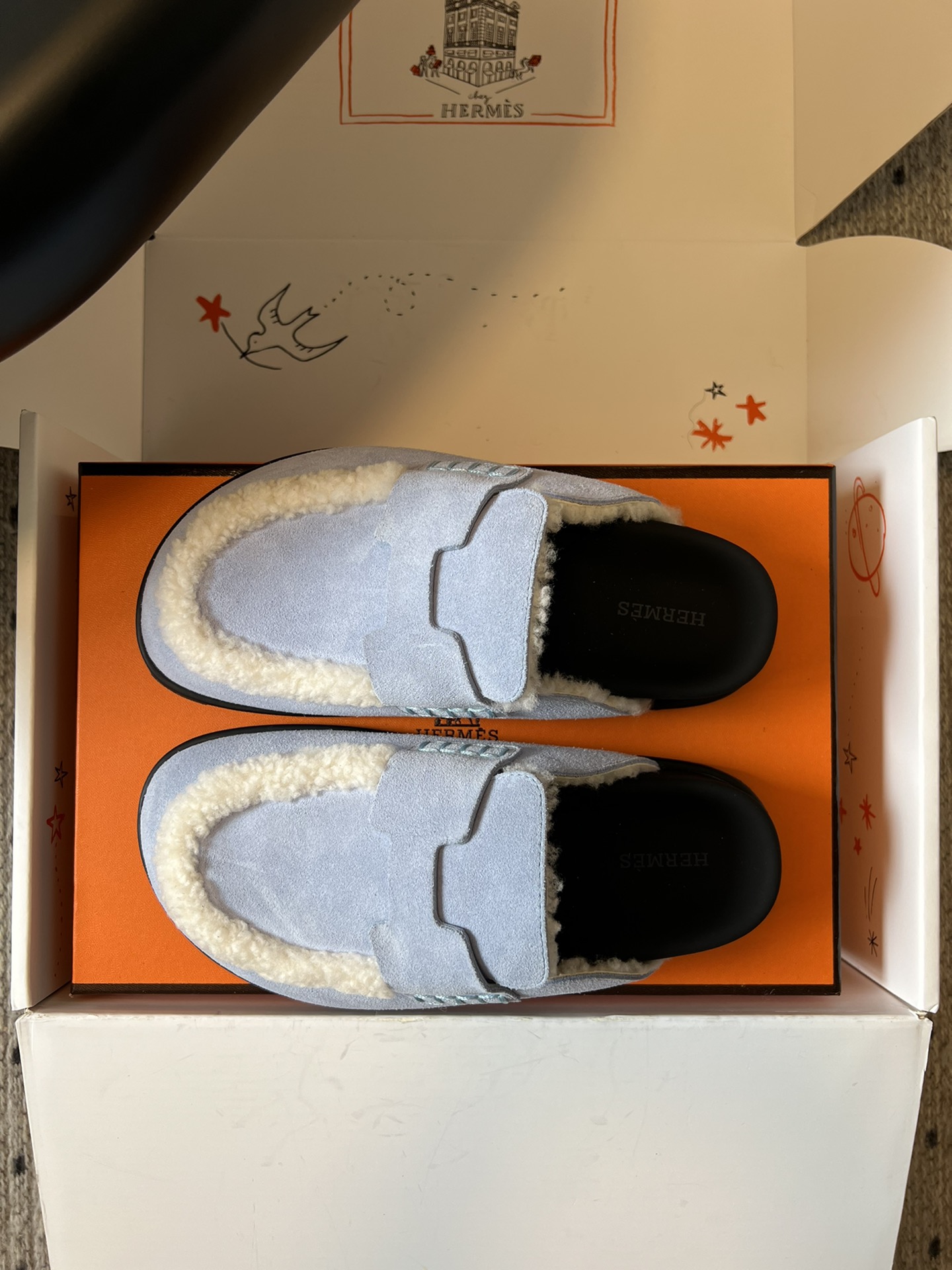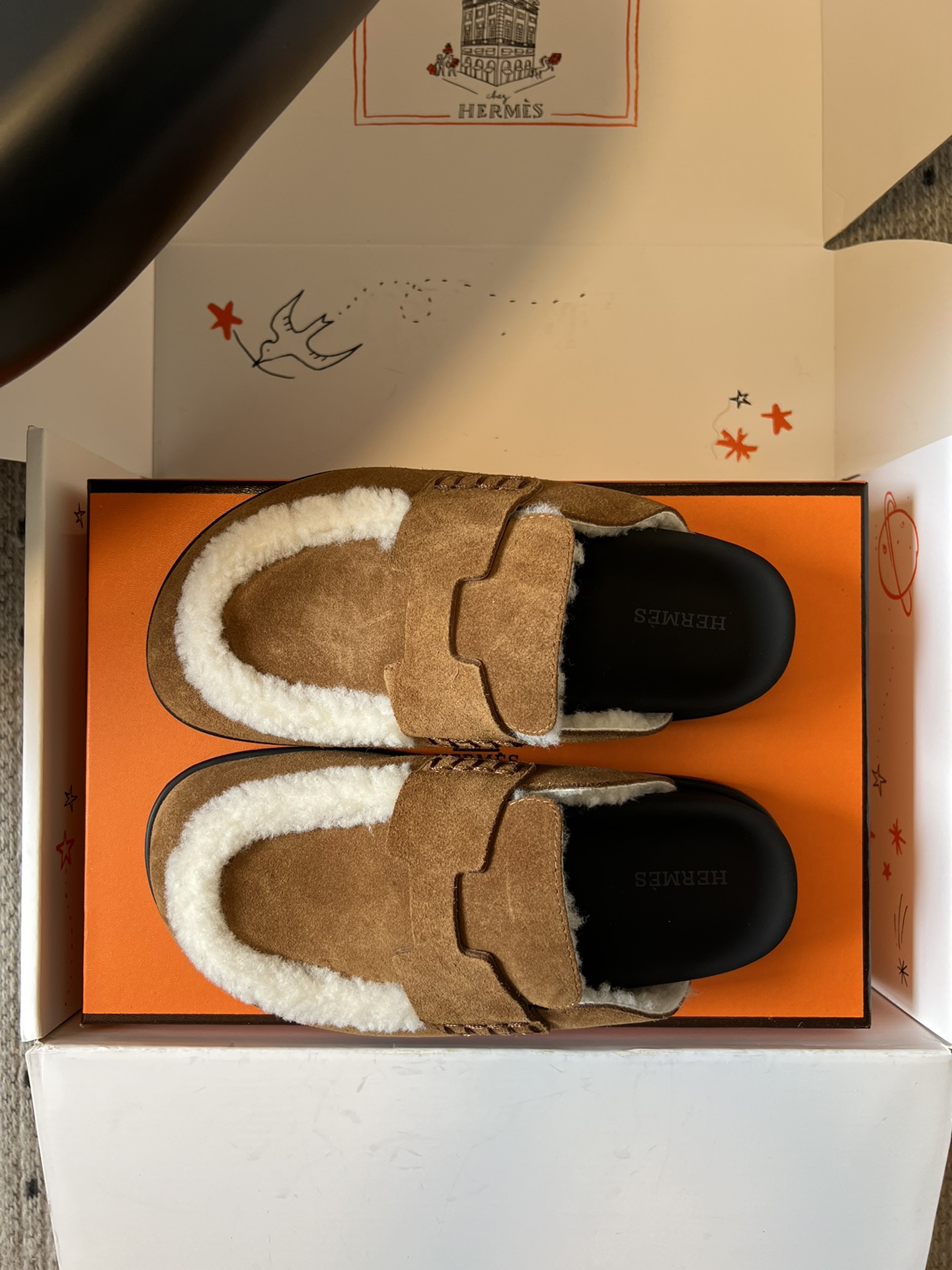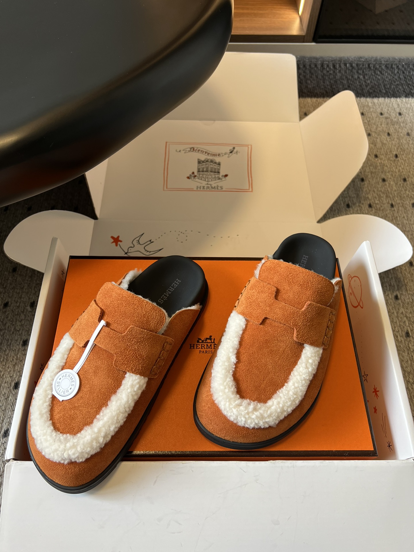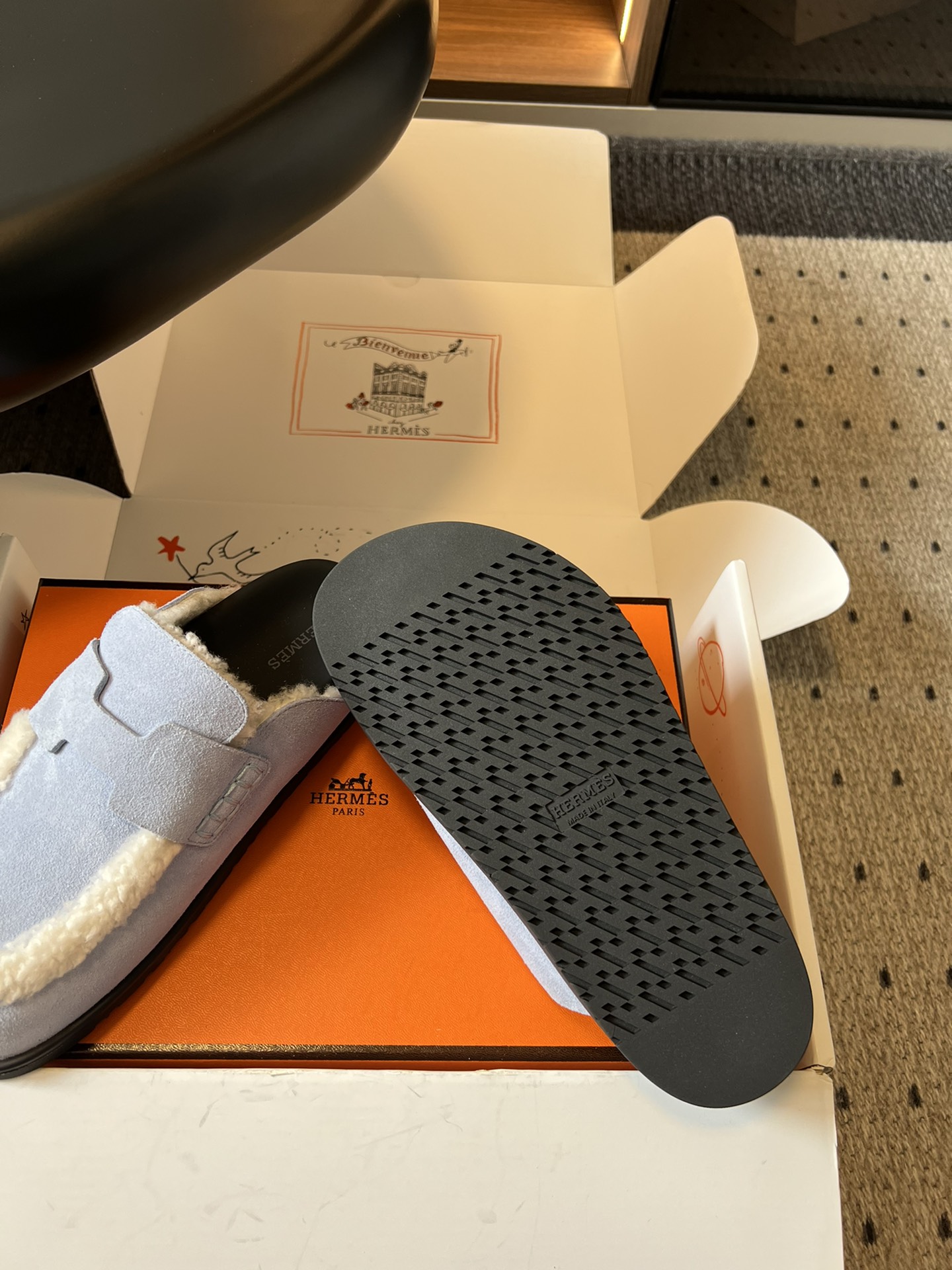 NIGO Hermes Men's And Women's Winter Boken Shoes Round Toe Flat Heel Slippers Solid Color Suede Mule Go Shoes #nigo81519