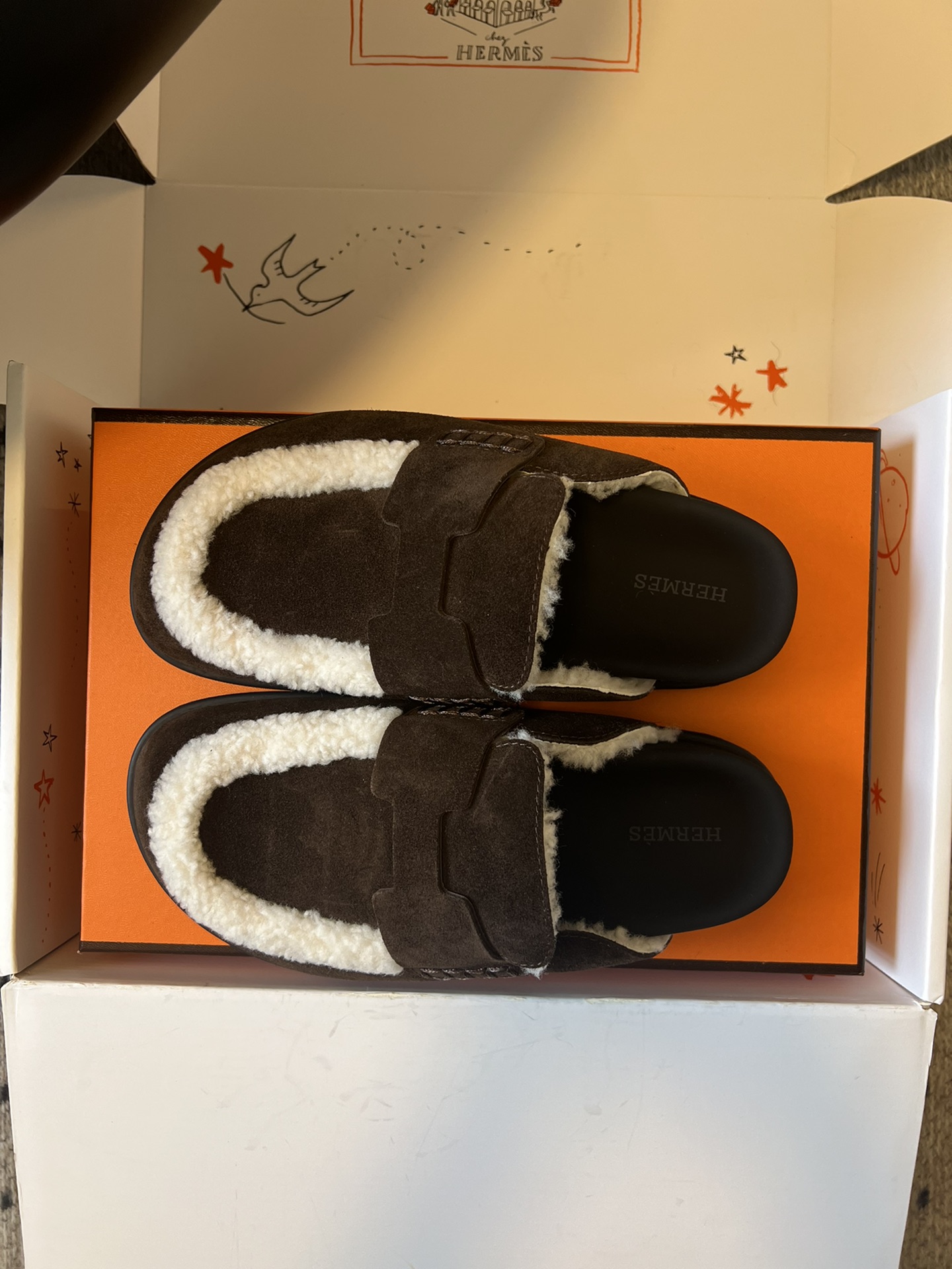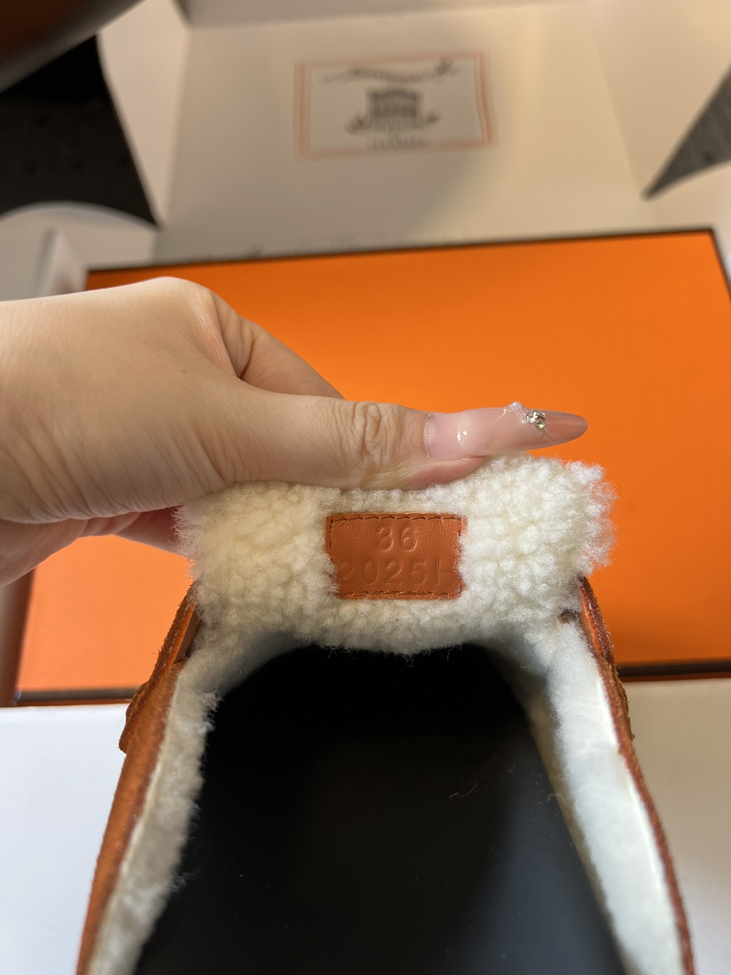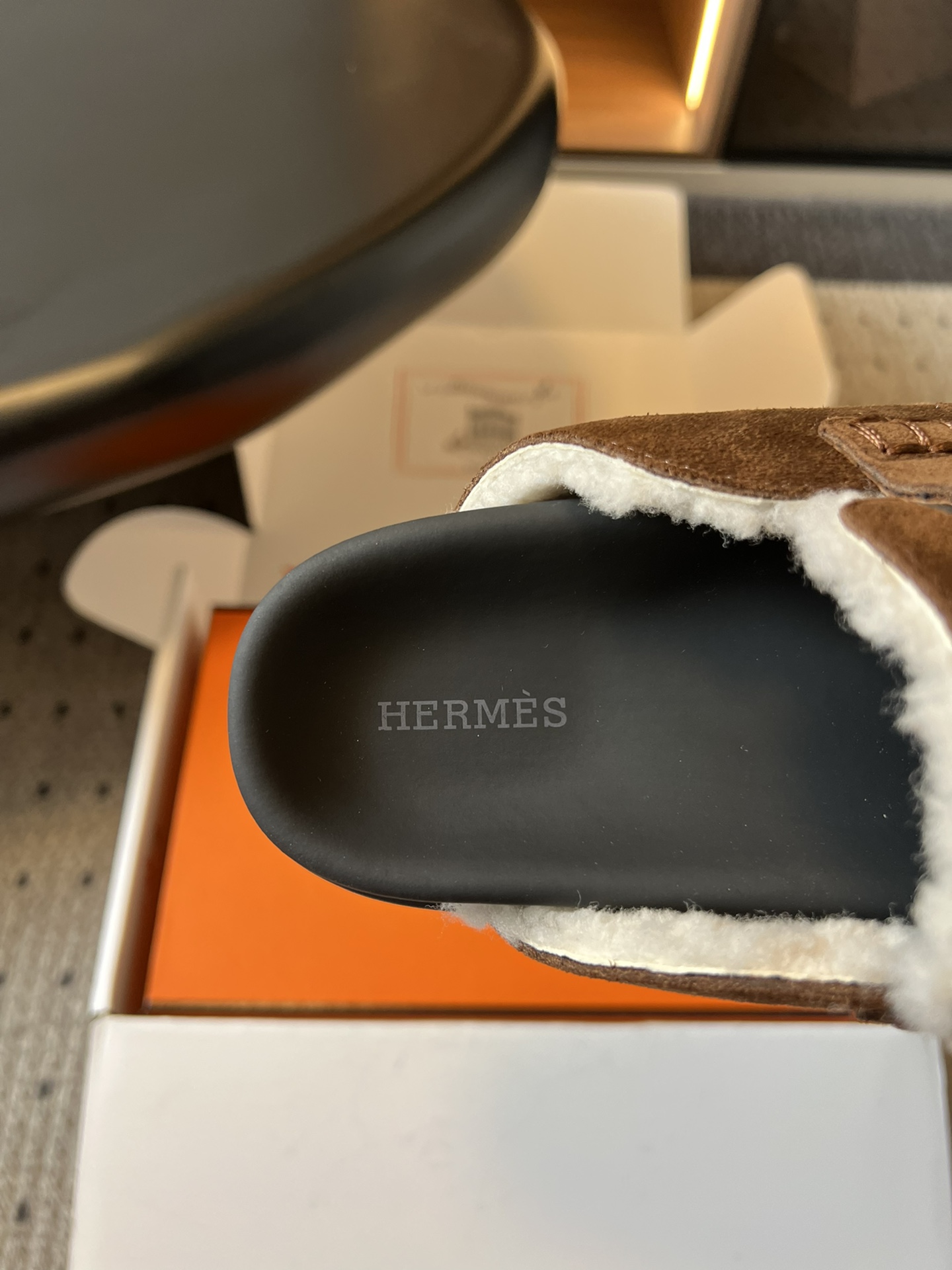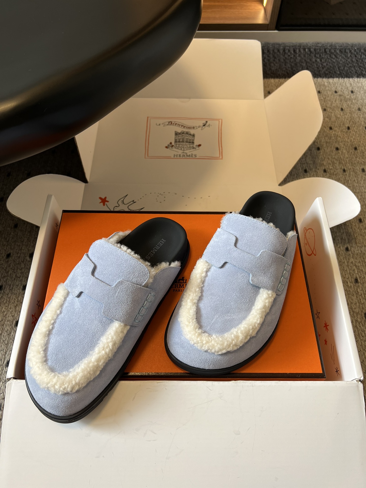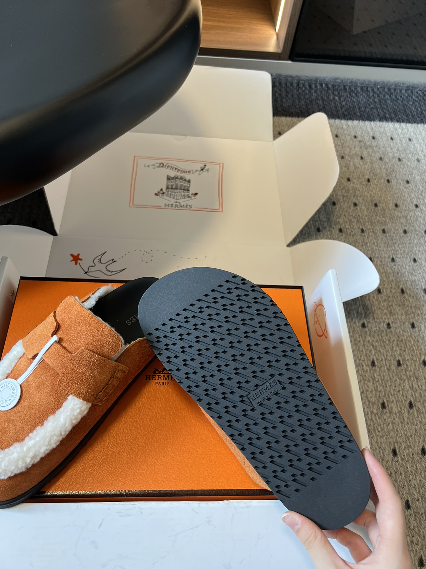 NIGO Hermes Men's And Women's Winter Boken Shoes Round Toe Flat Heel Slippers Solid Color Suede Mule Go Shoes #nigo81519