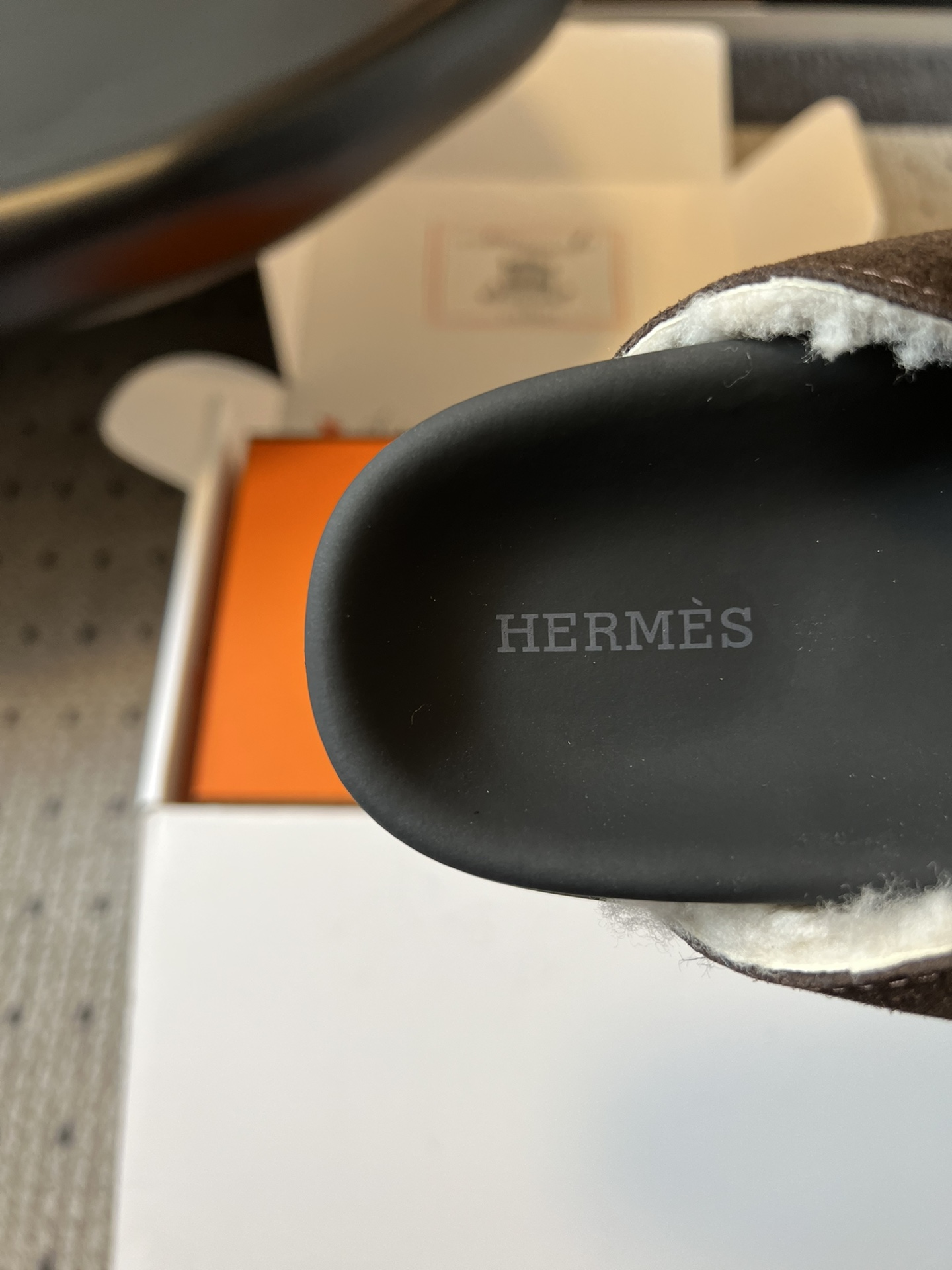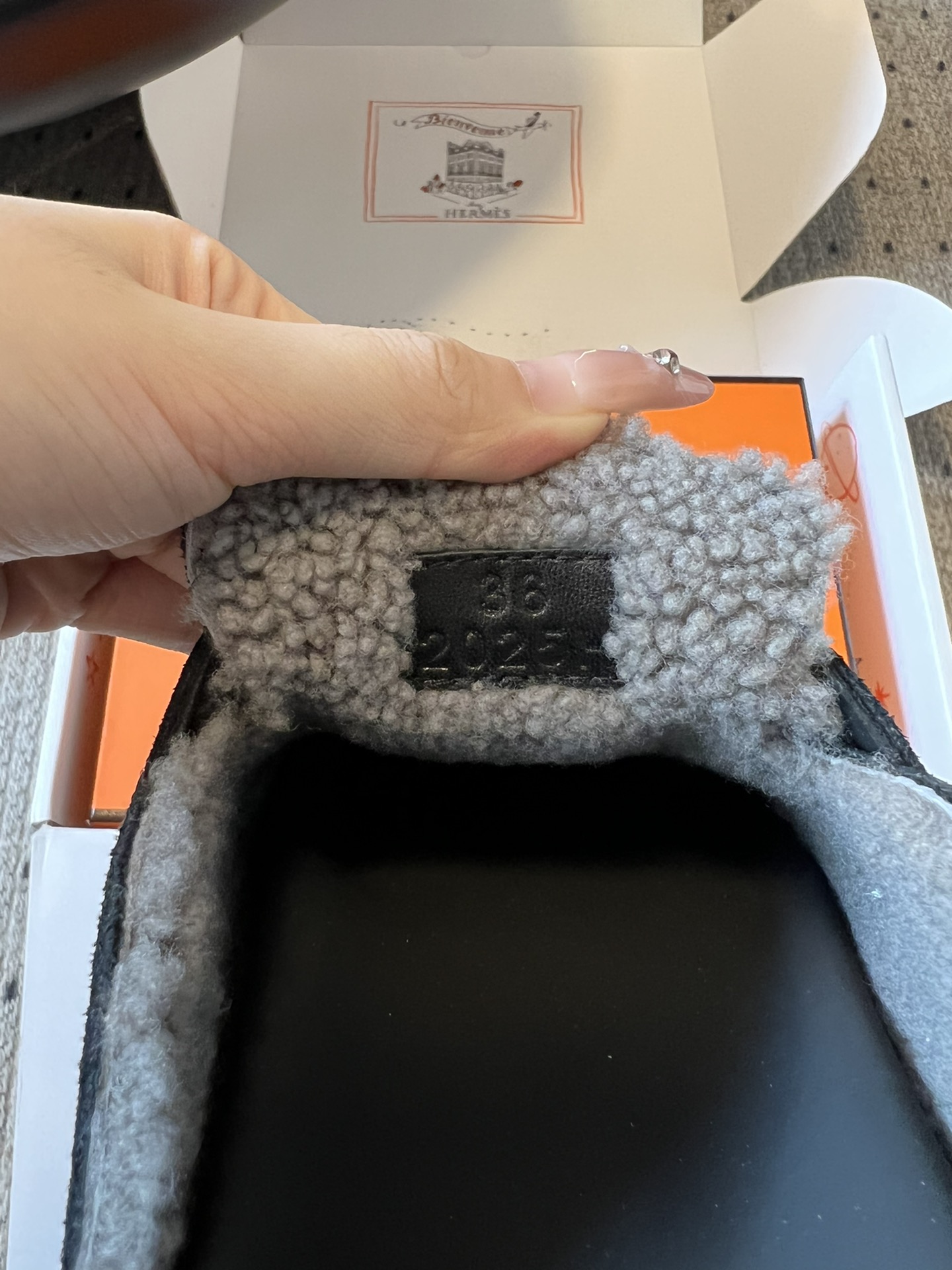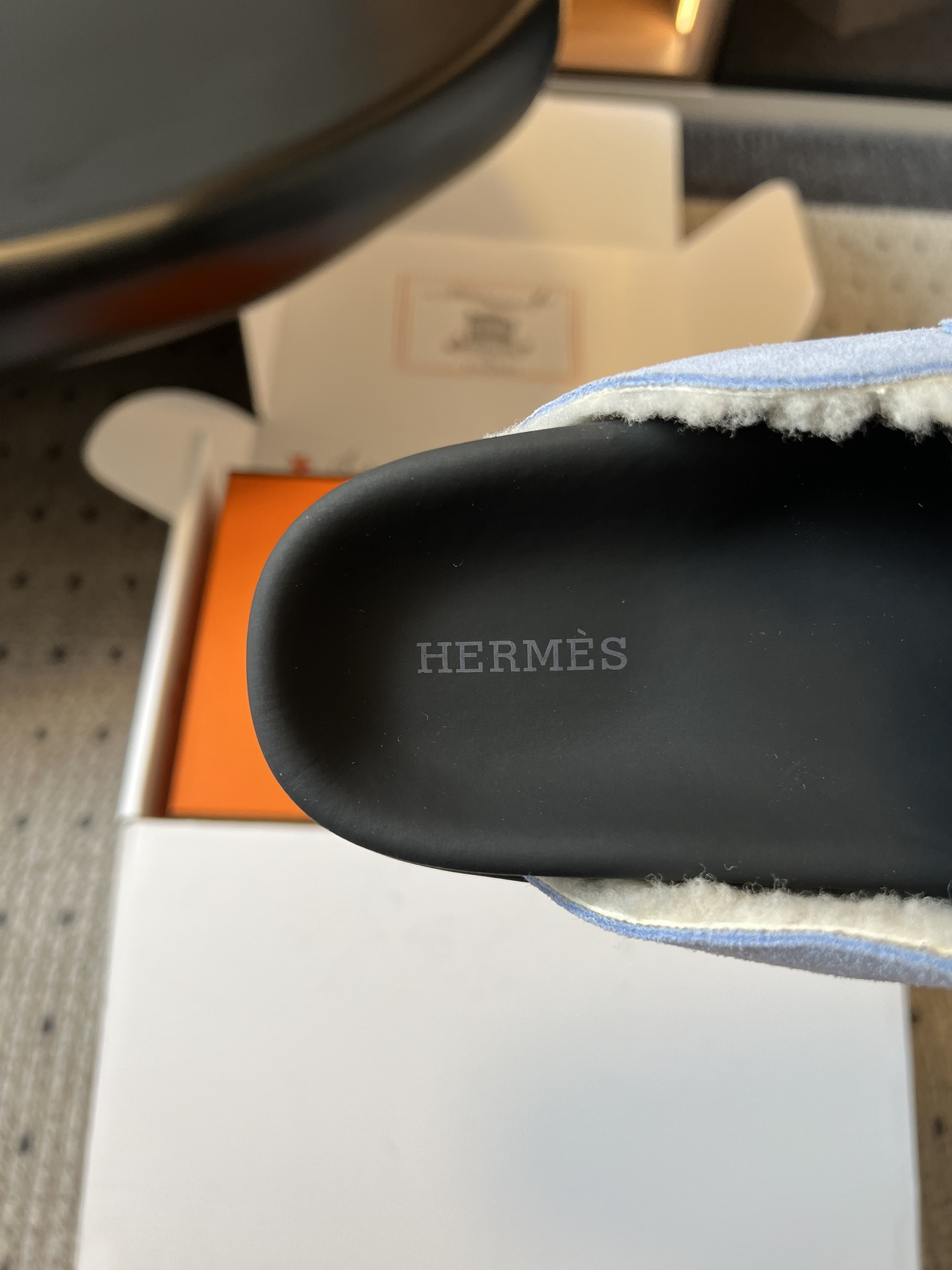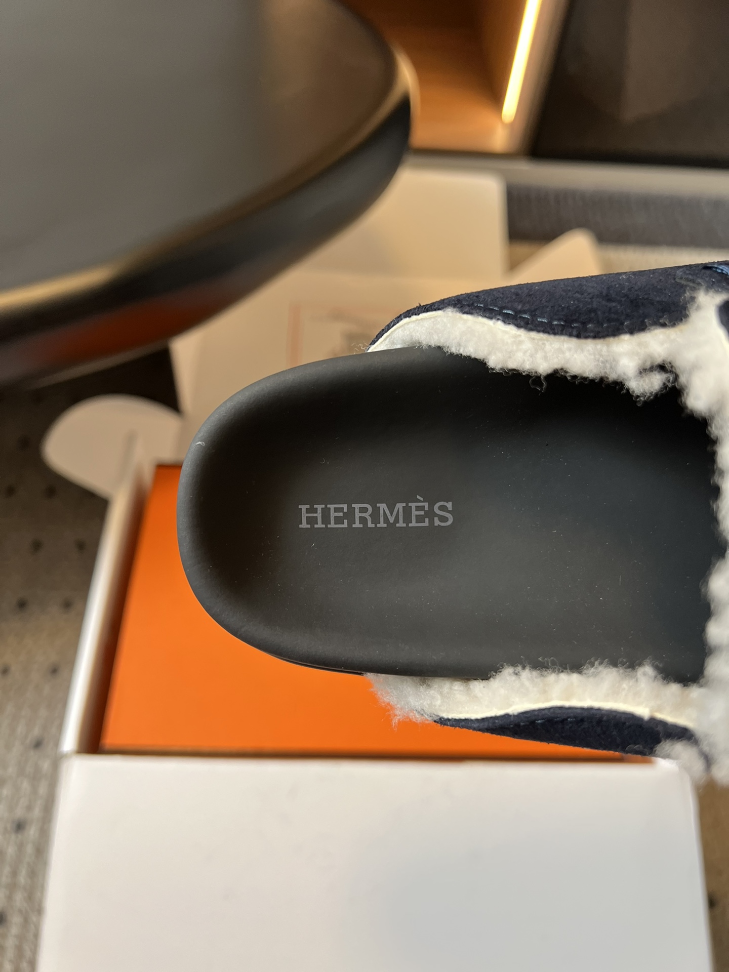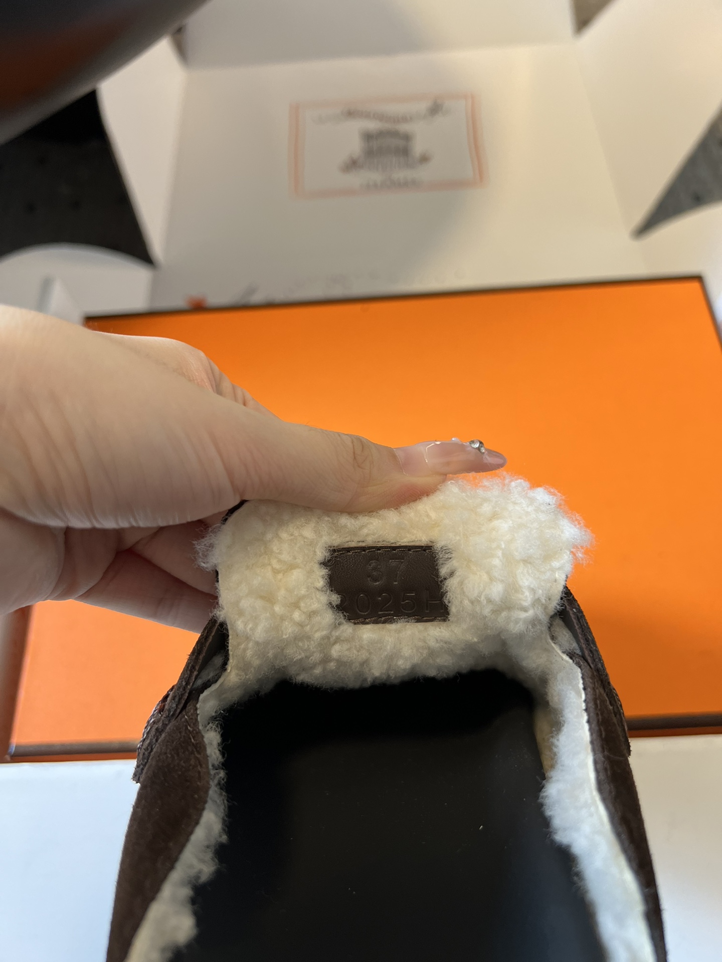 NIGO Hermes Men's And Women's Winter Boken Shoes Round Toe Flat Heel Slippers Solid Color Suede Mule Go Shoes #nigo81519