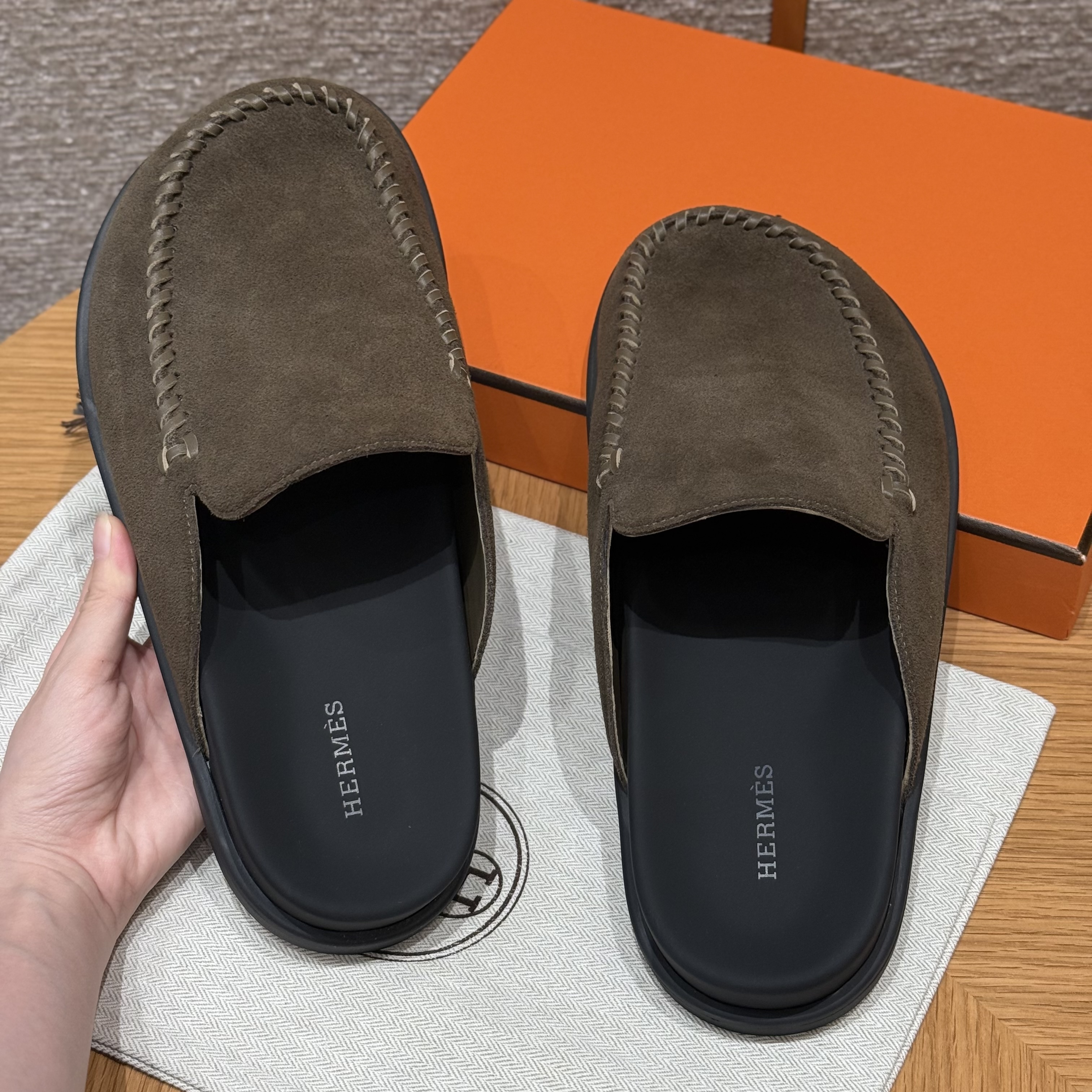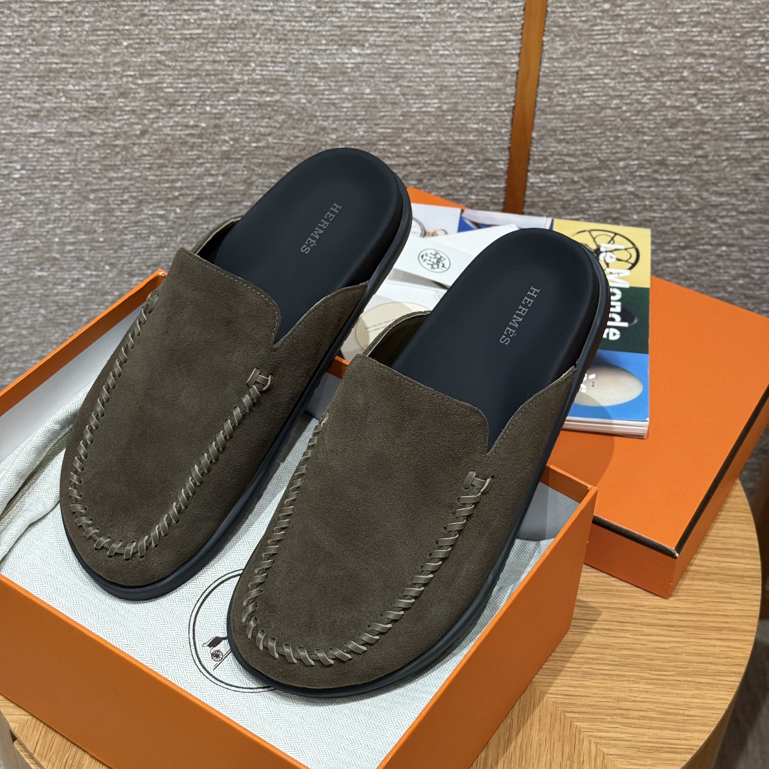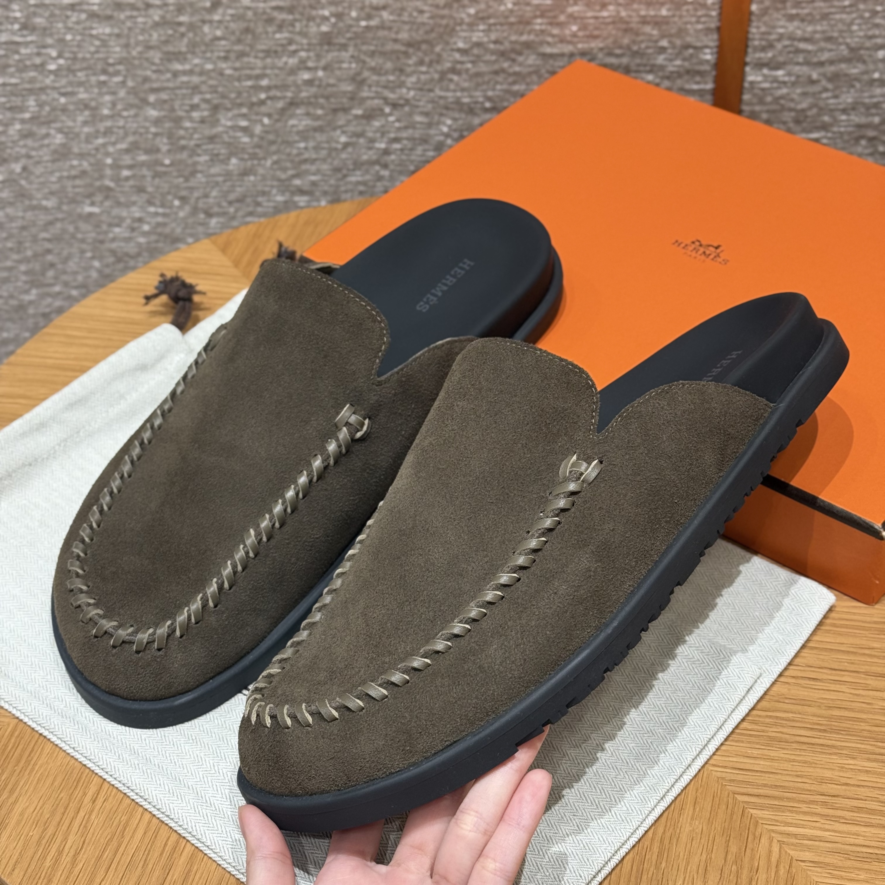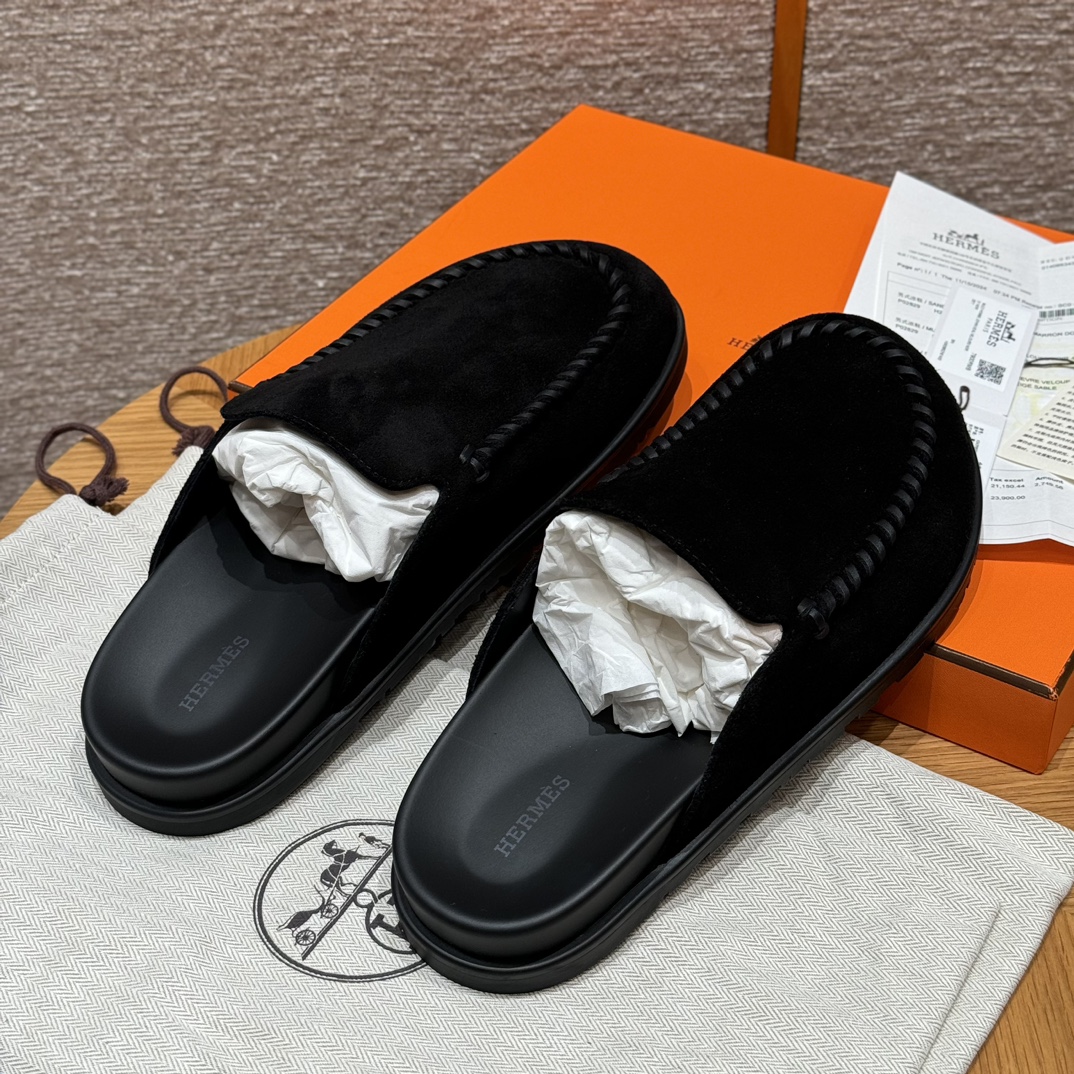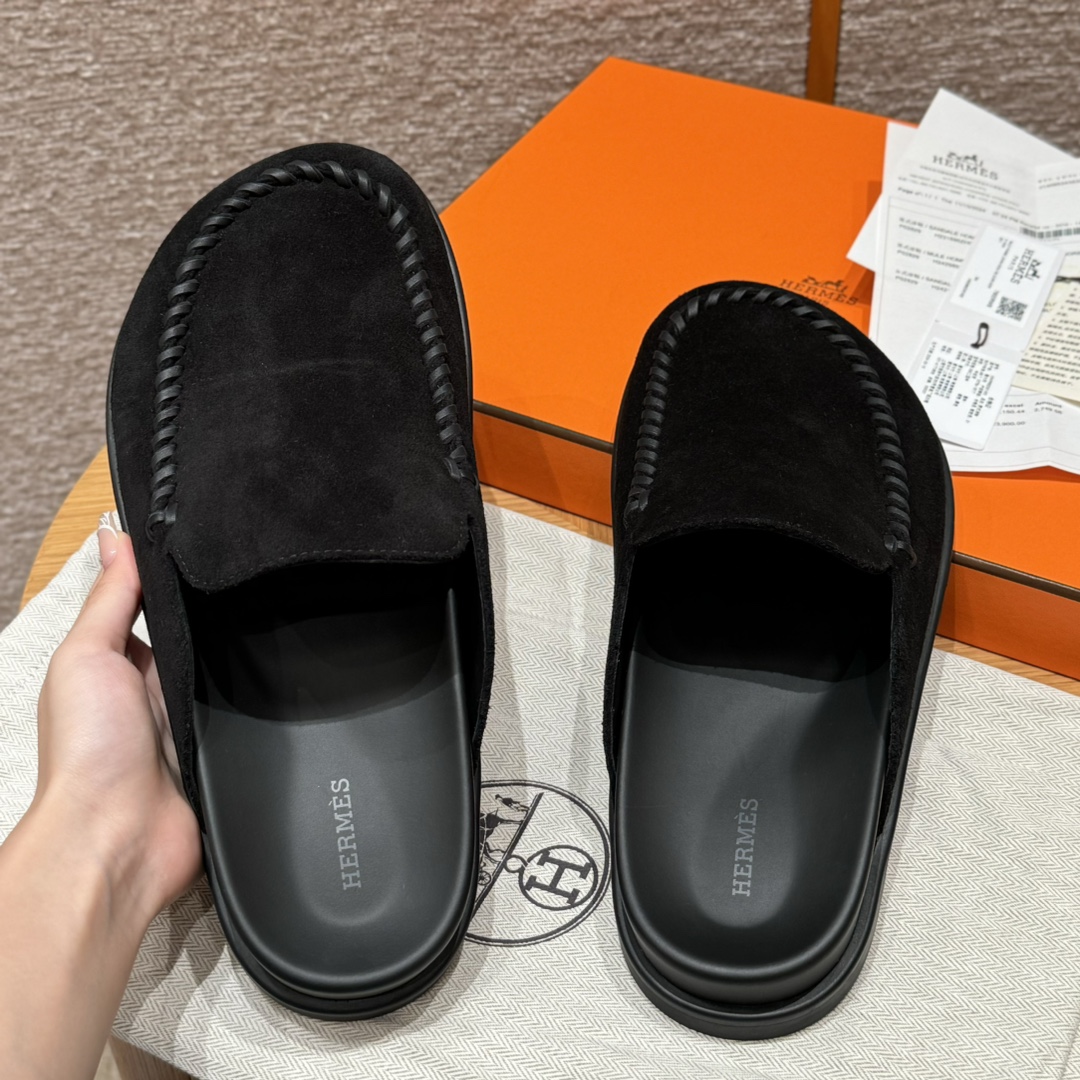 NIGO Hermes Men's Johan Mule Shoes Summer Solid Color Round Toe Suede Flat Slippers Casual Shoes Ngvp #nigo1831