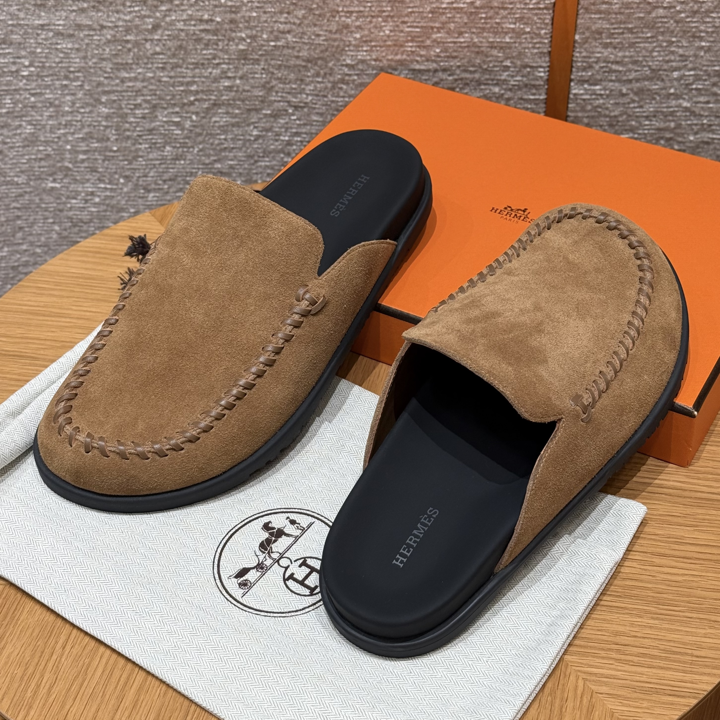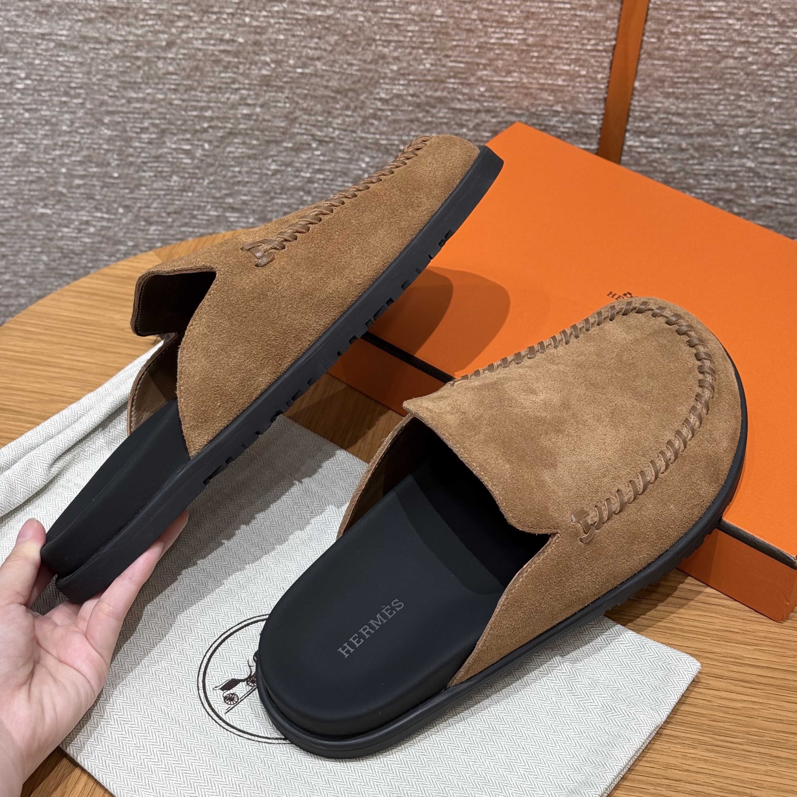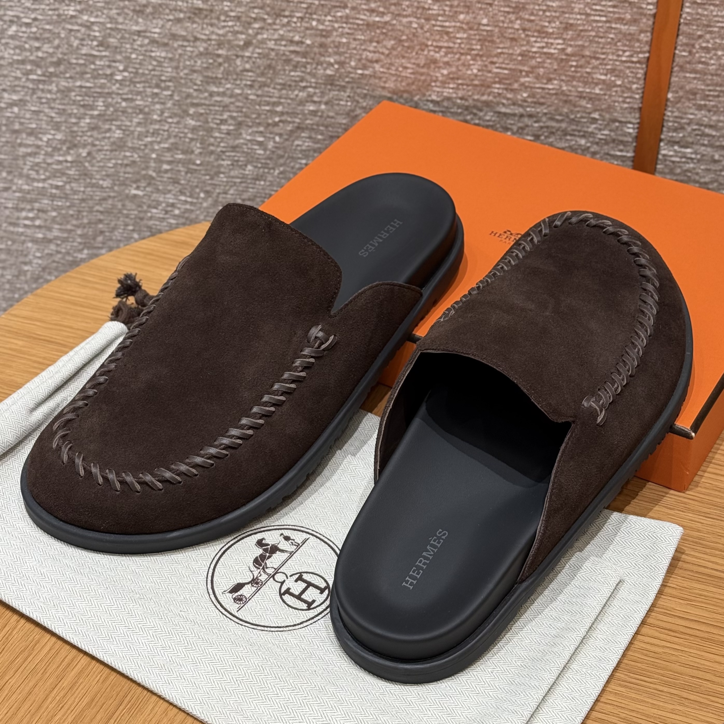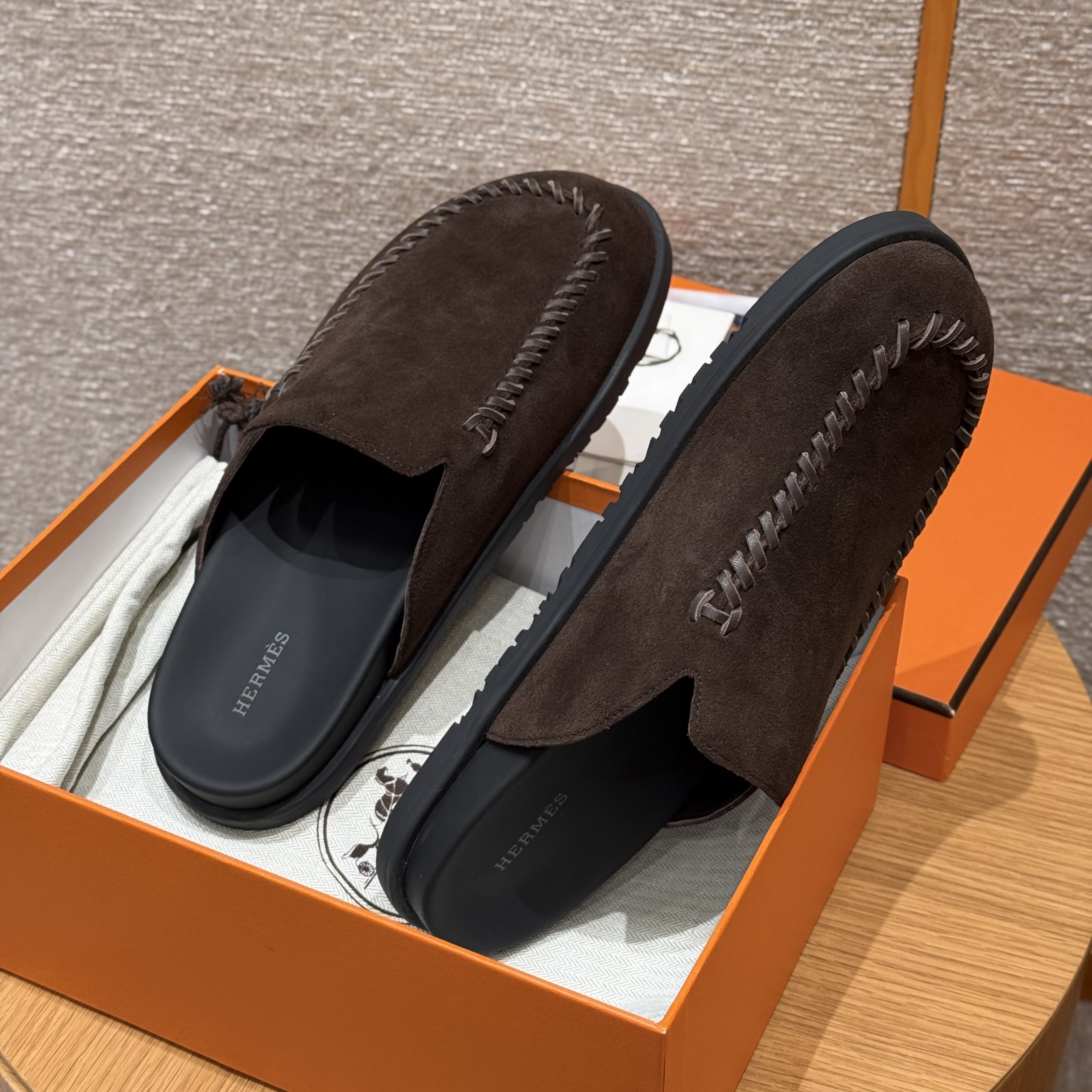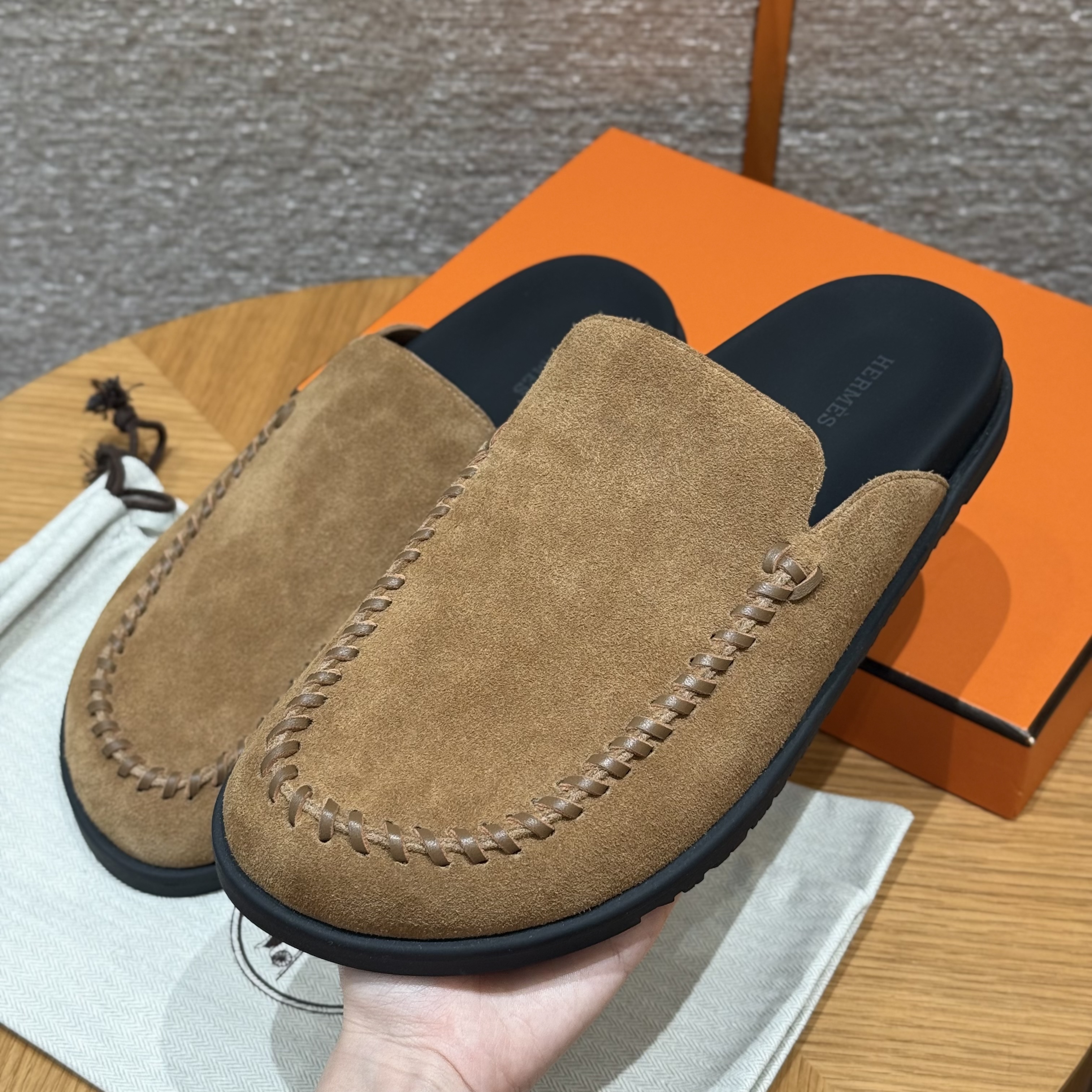 NIGO Hermes Men's Johan Mule Shoes Summer Solid Color Round Toe Suede Flat Slippers Casual Shoes Ngvp #nigo1831