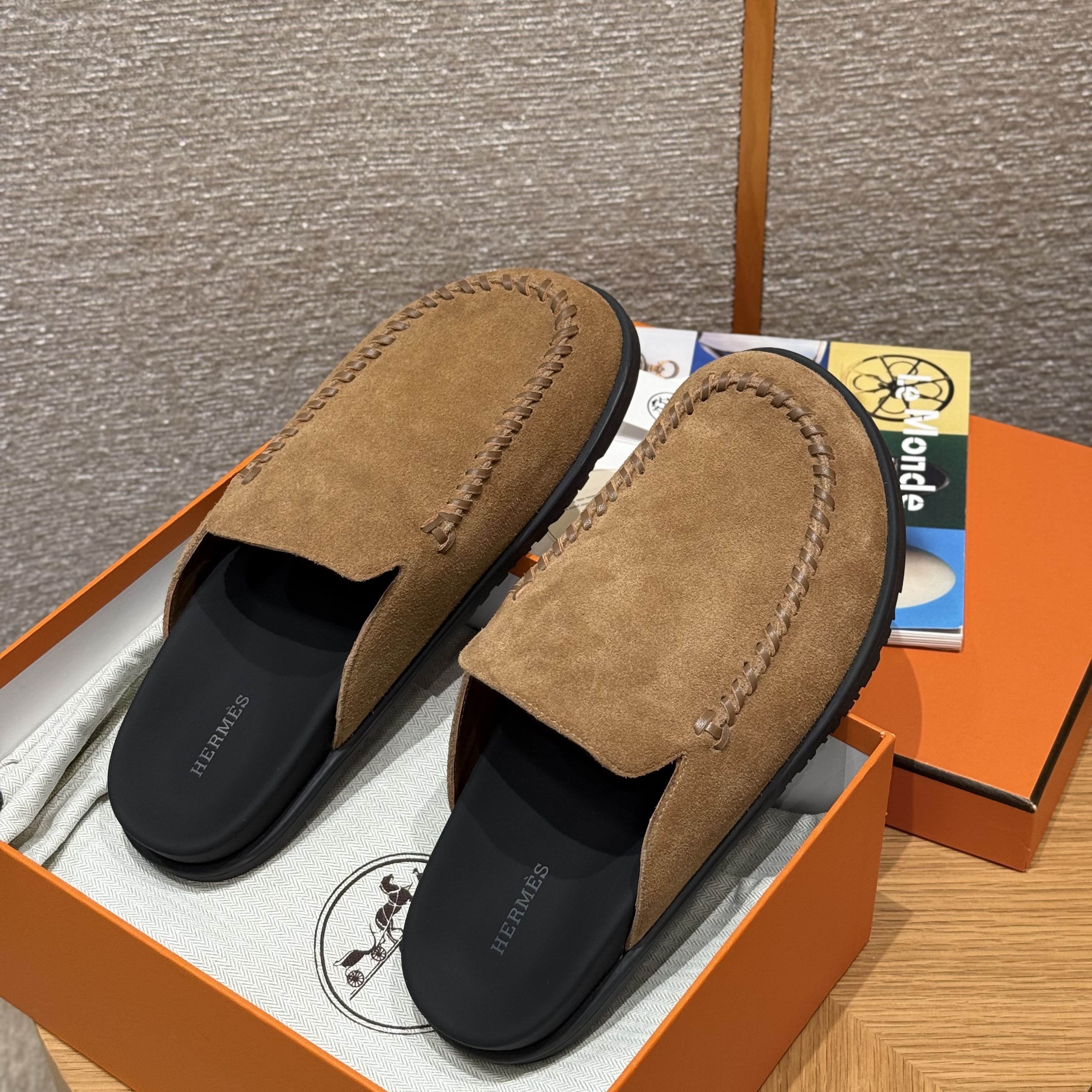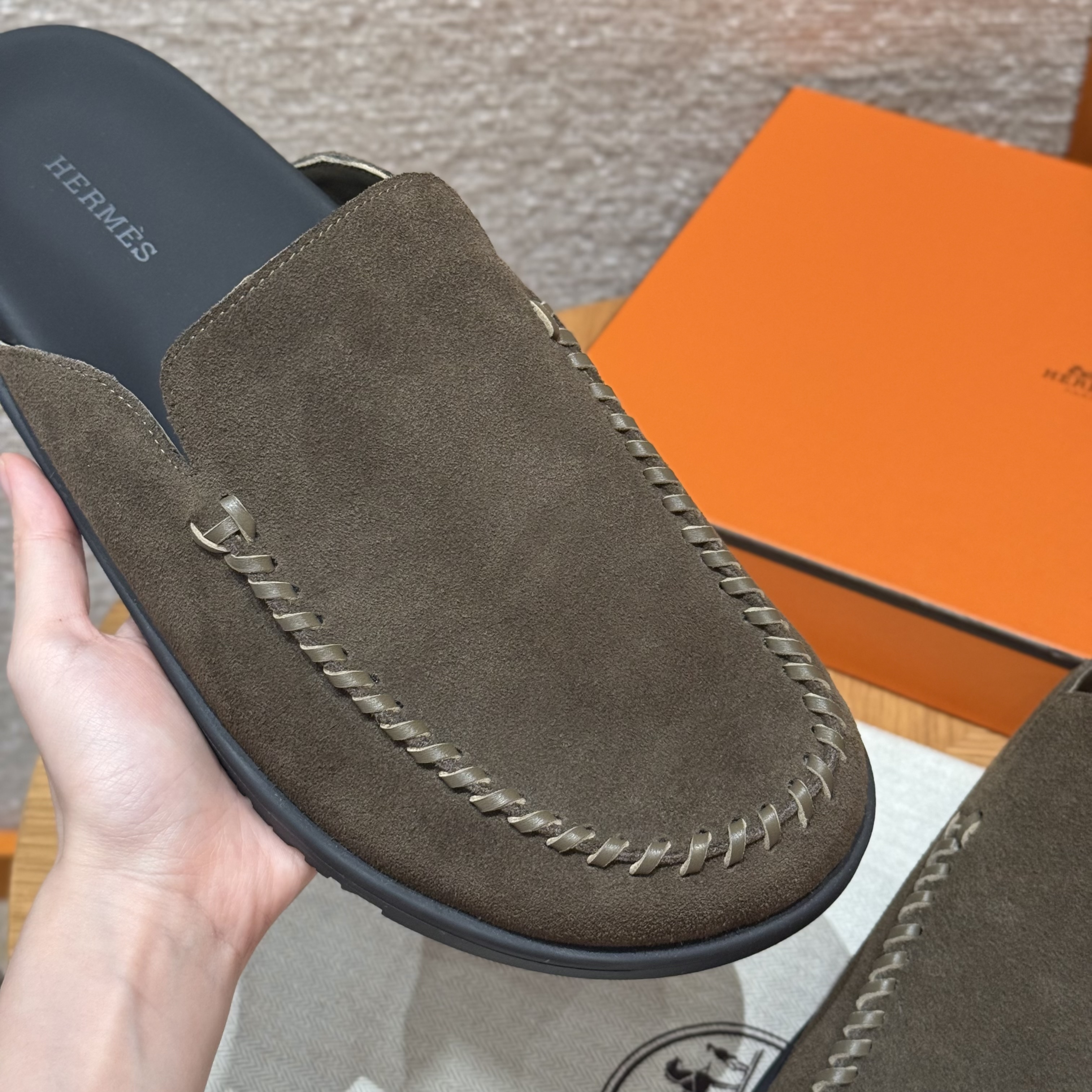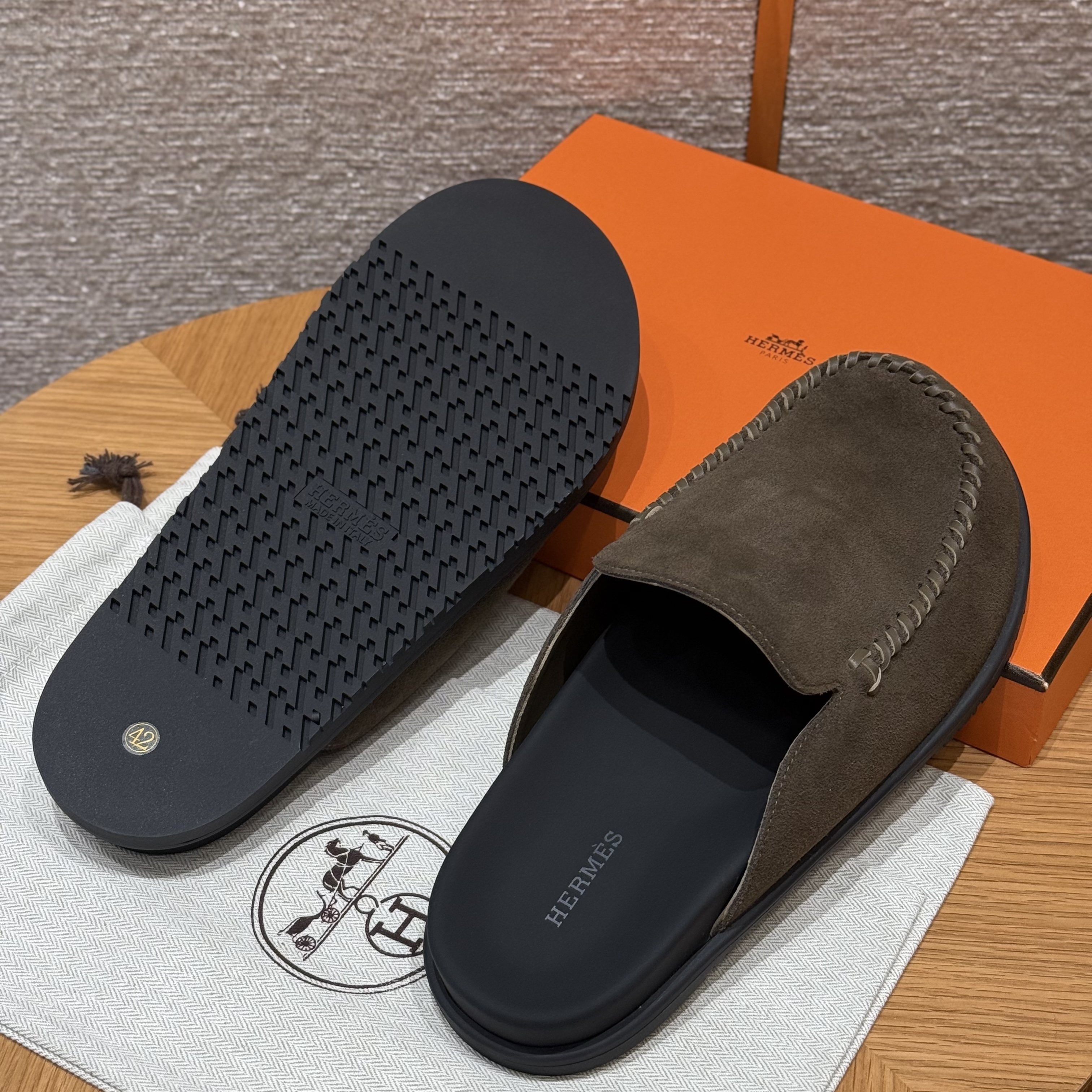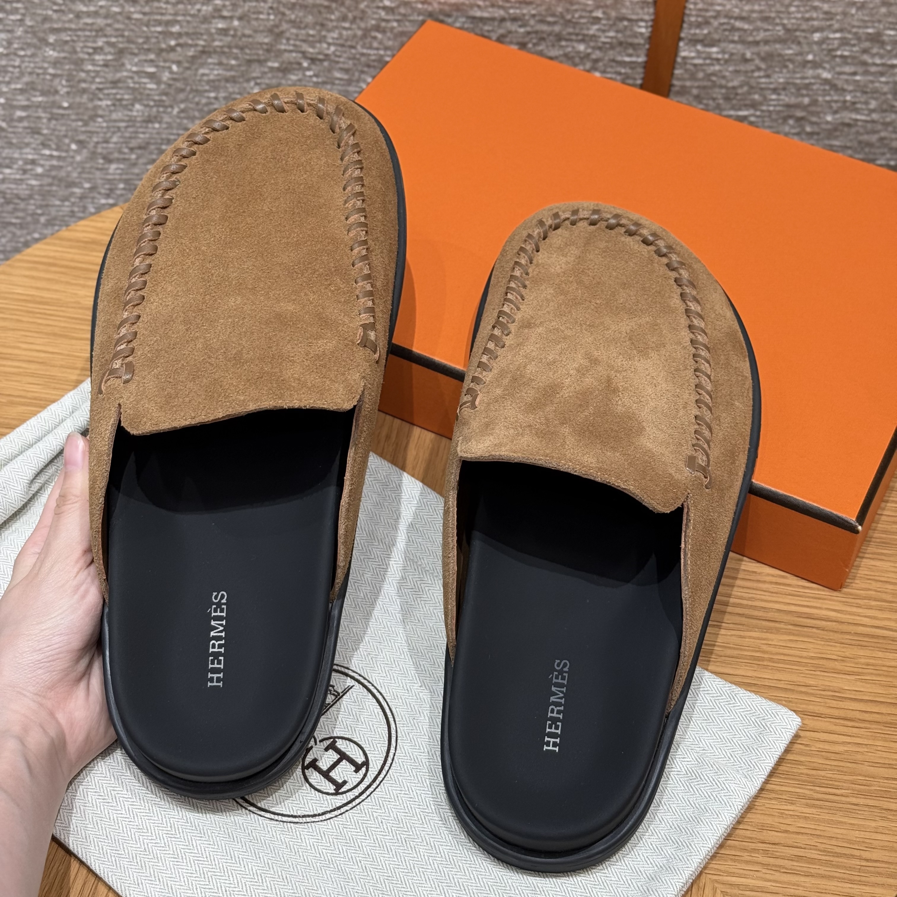 NIGO Hermes Men's Johan Mule Shoes Summer Solid Color Round Toe Suede Flat Slippers Casual Shoes Ngvp #nigo1831
