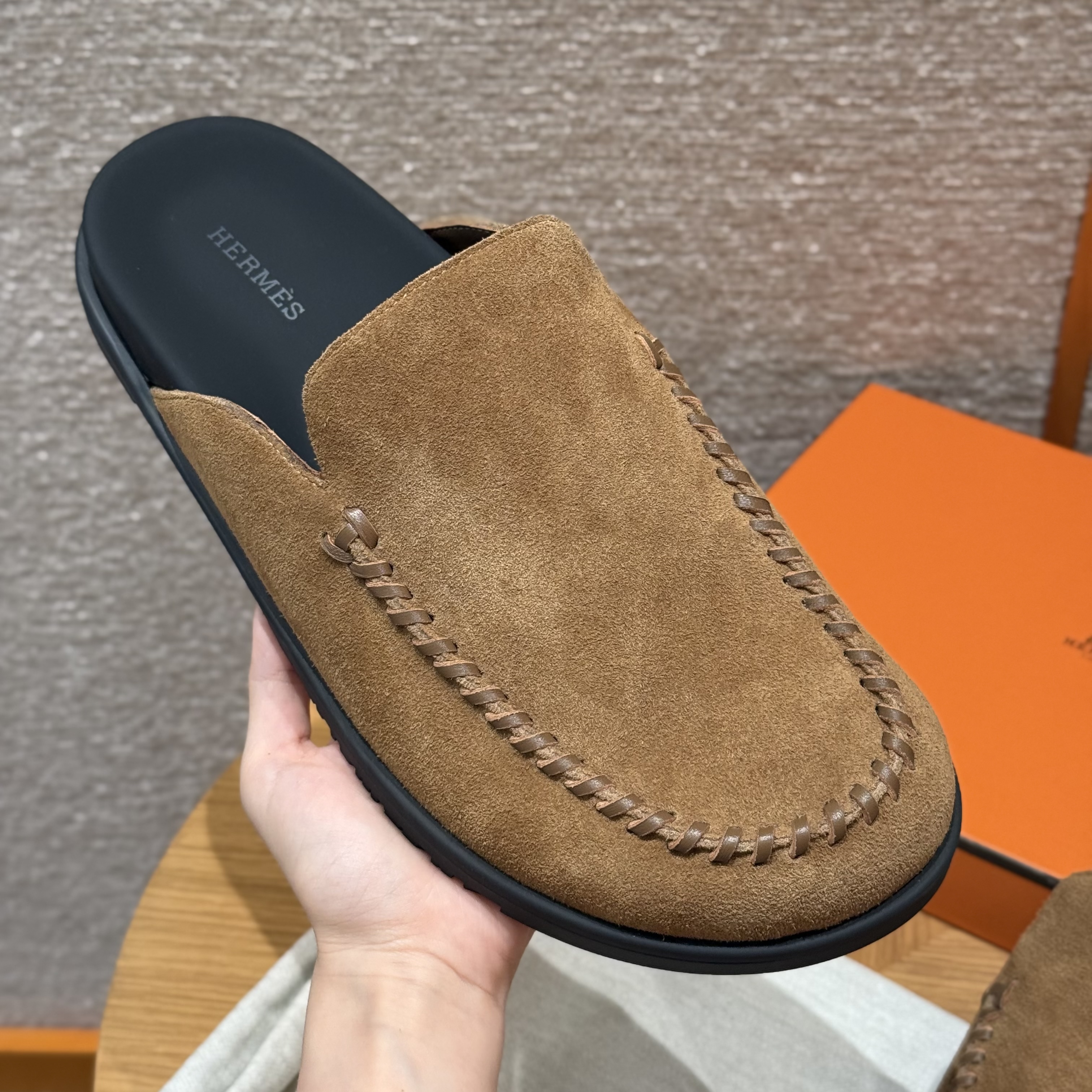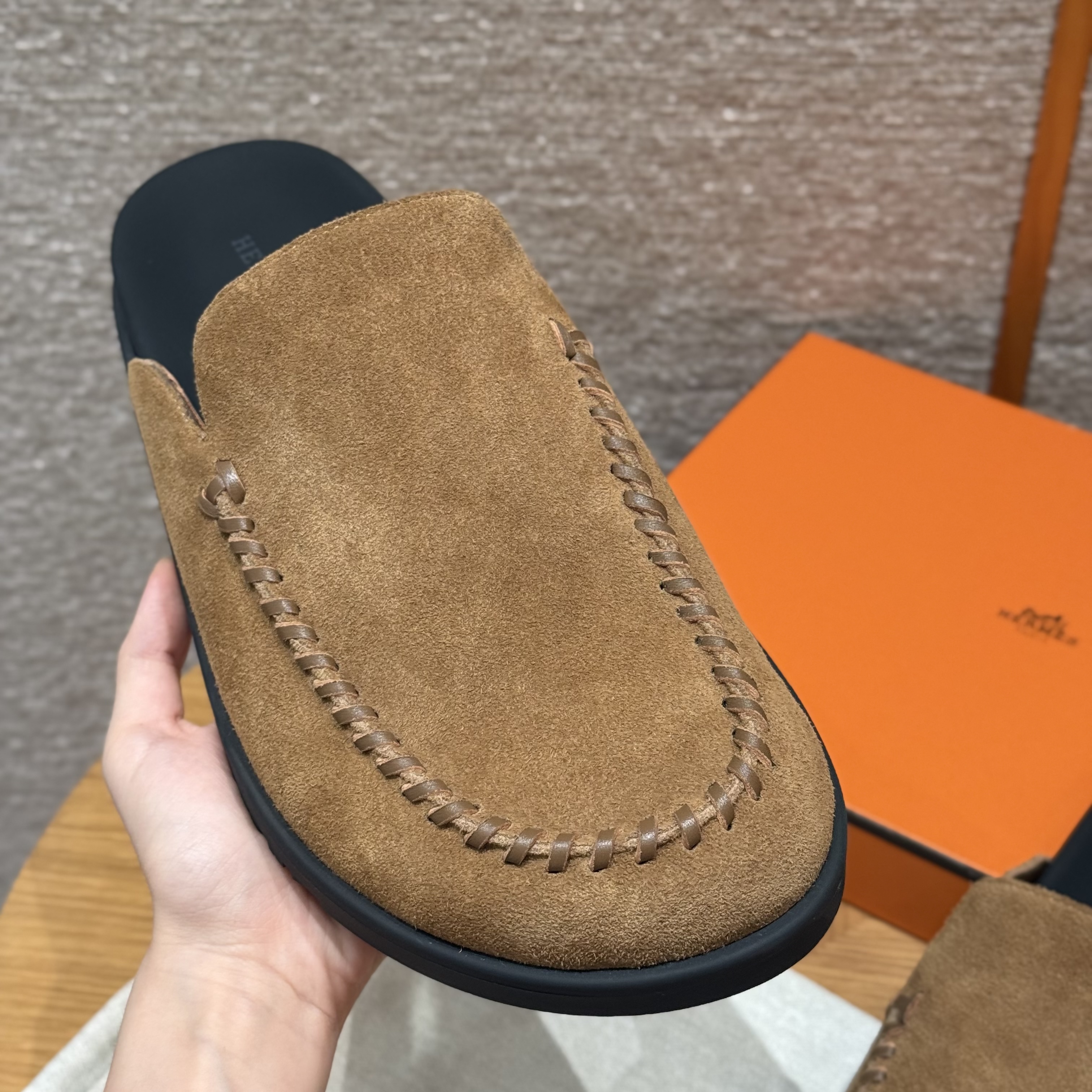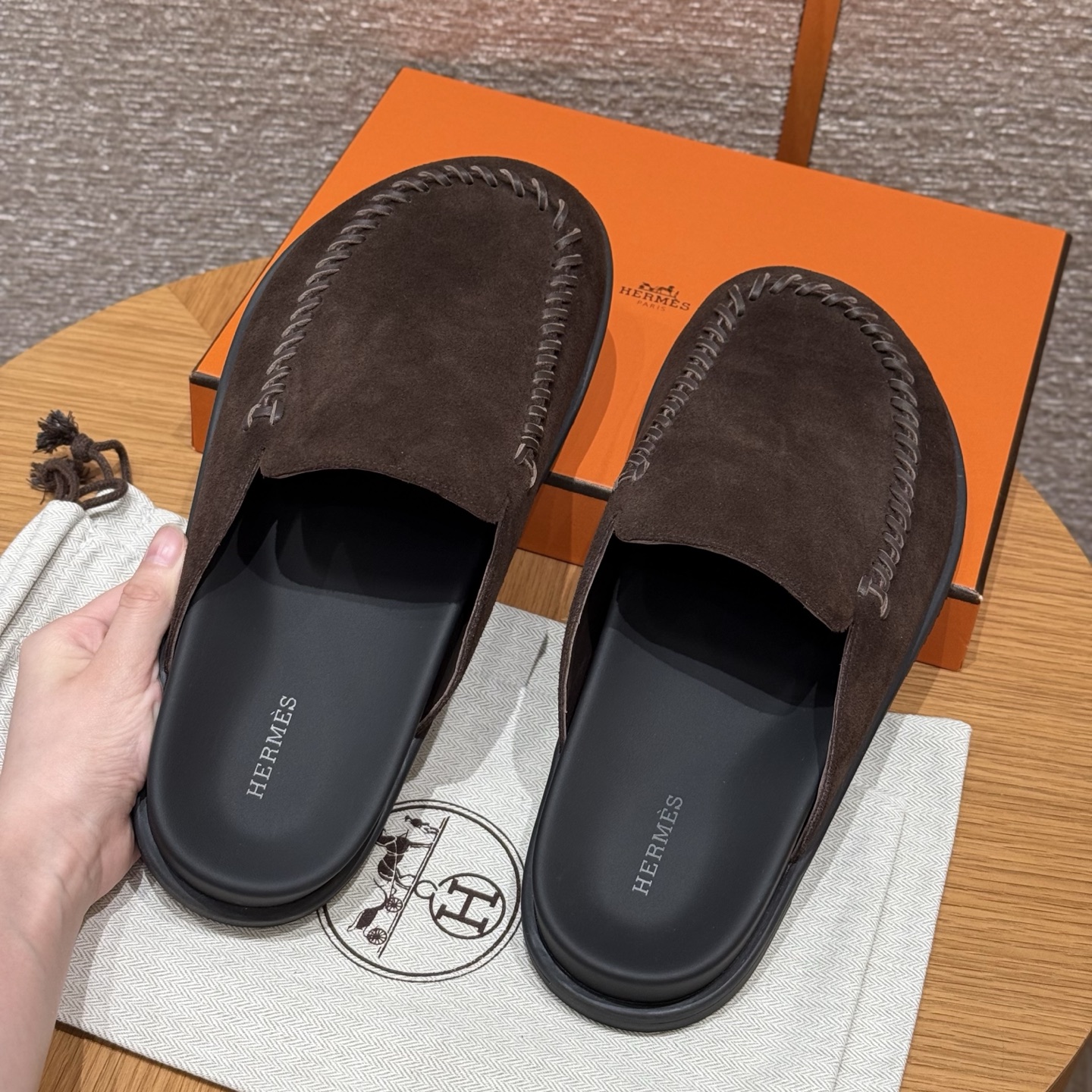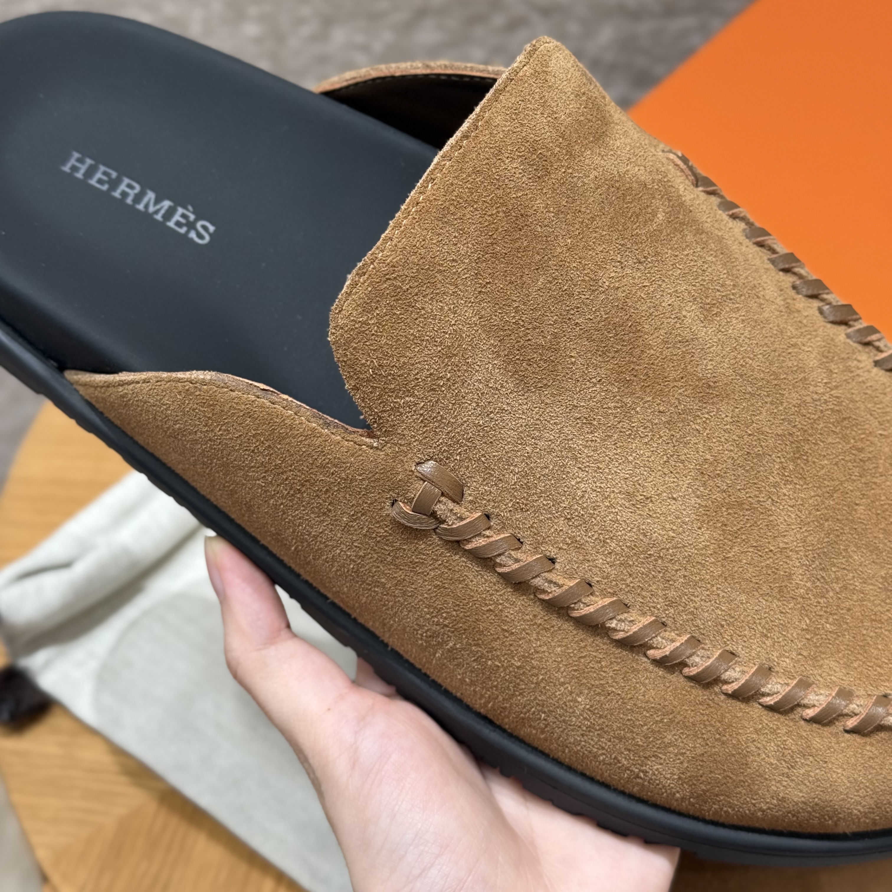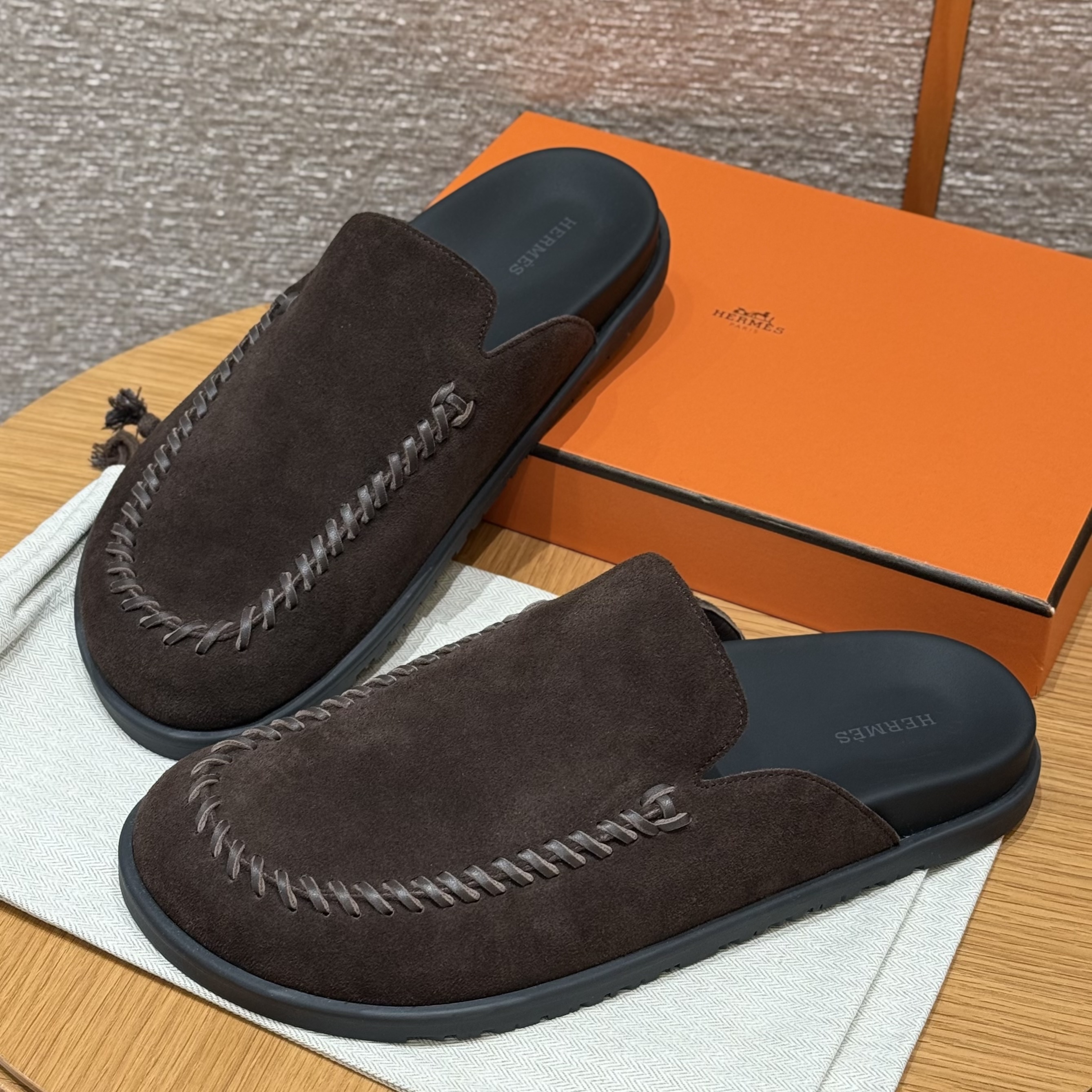 NIGO Hermes Men's Johan Mule Shoes Summer Solid Color Round Toe Suede Flat Slippers Casual Shoes Ngvp #nigo1831