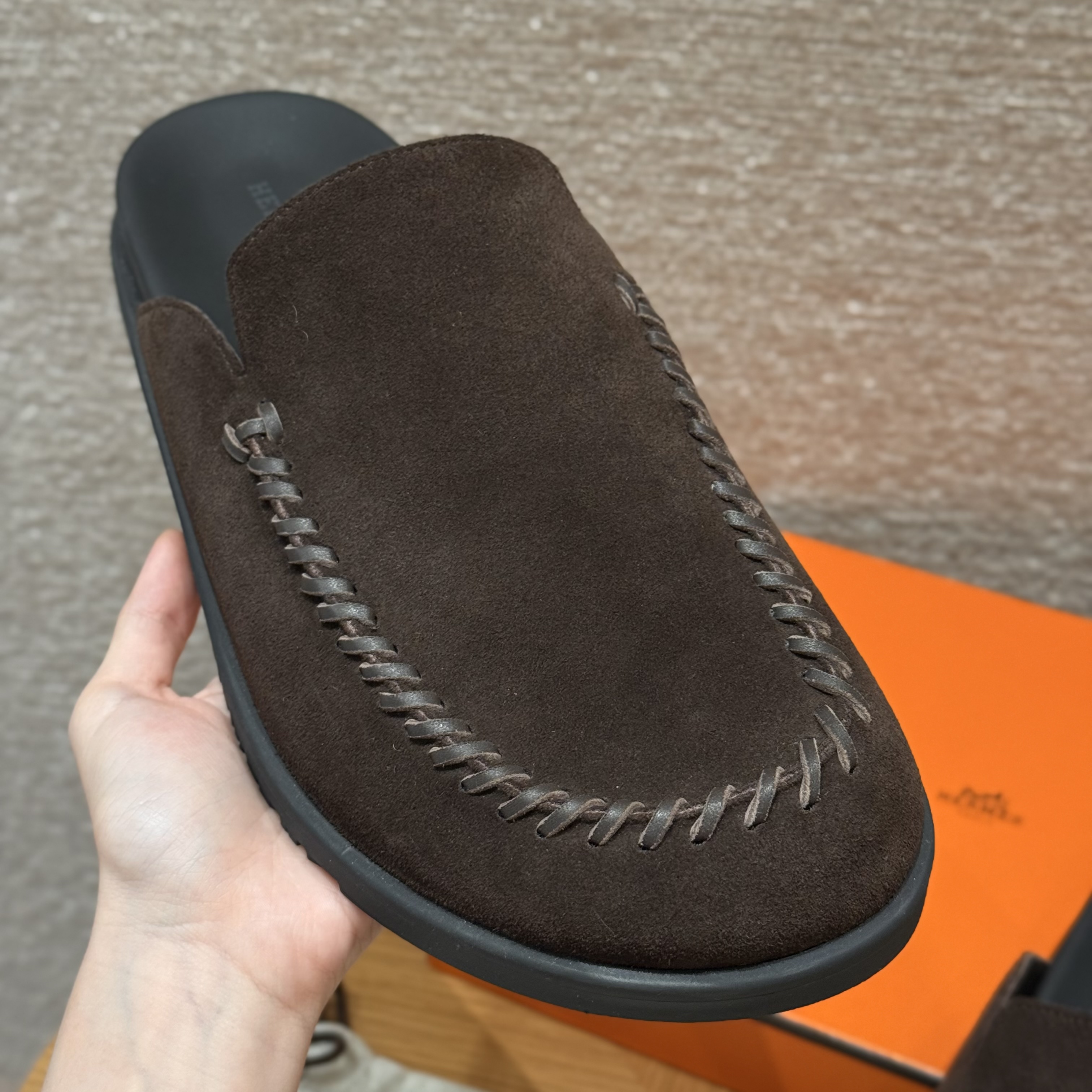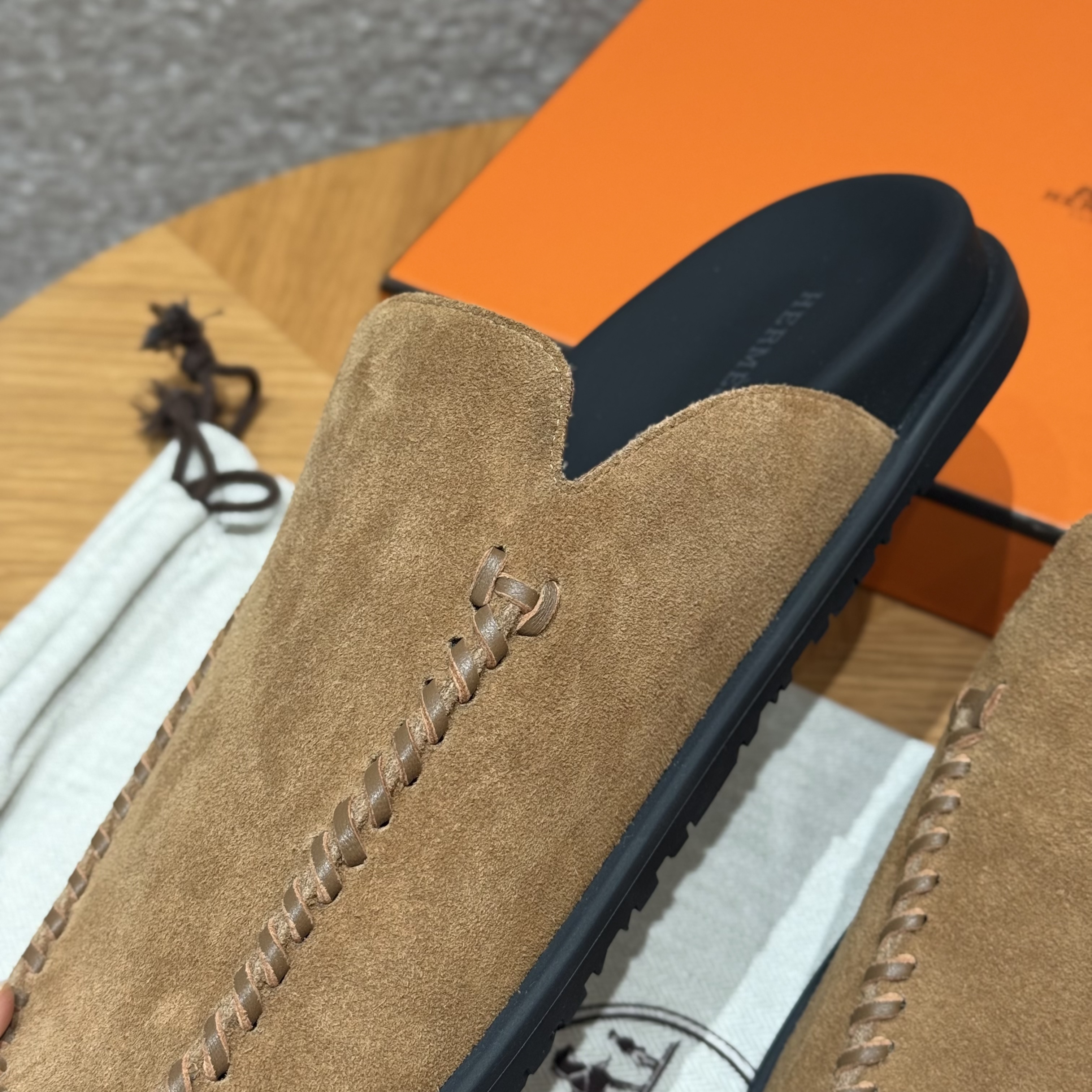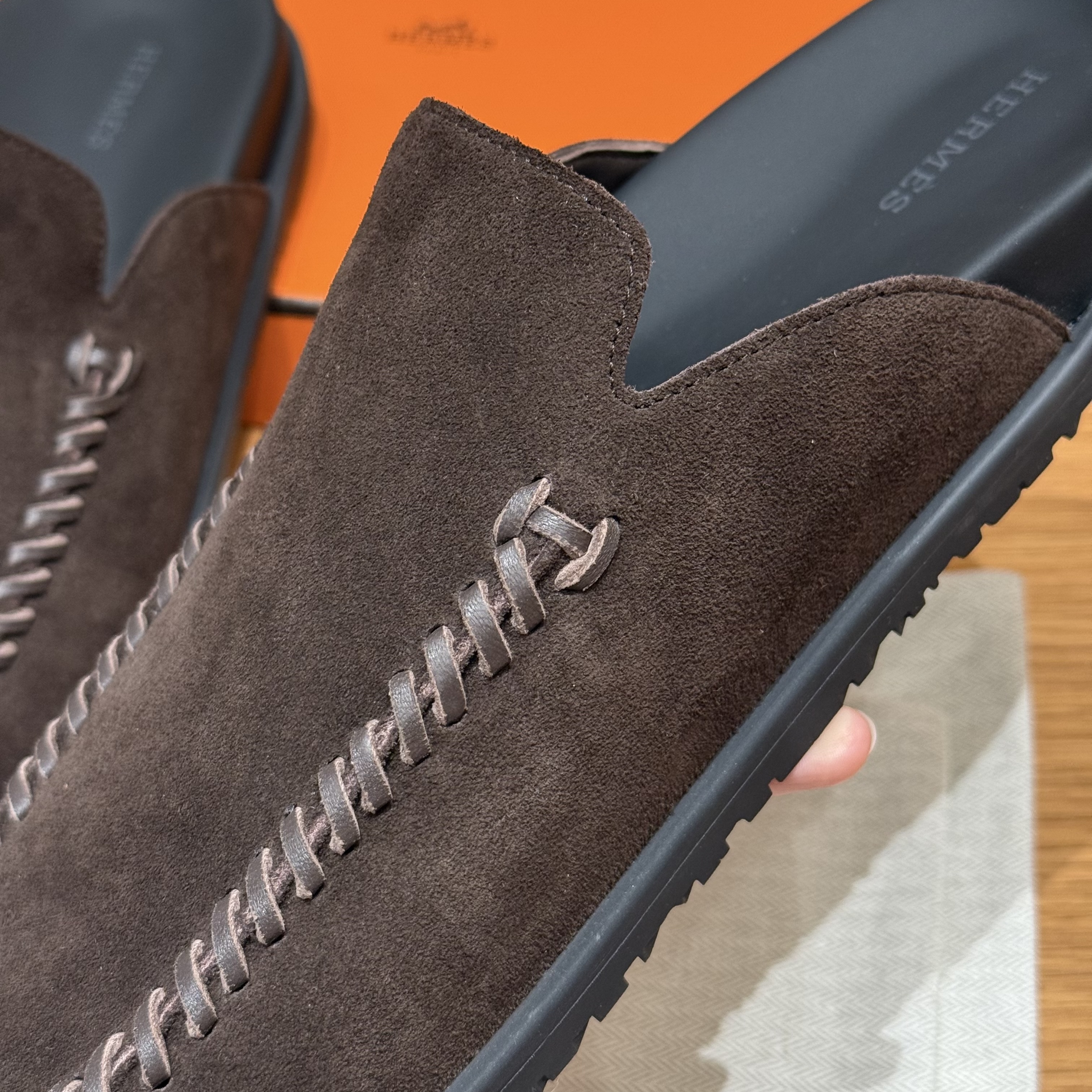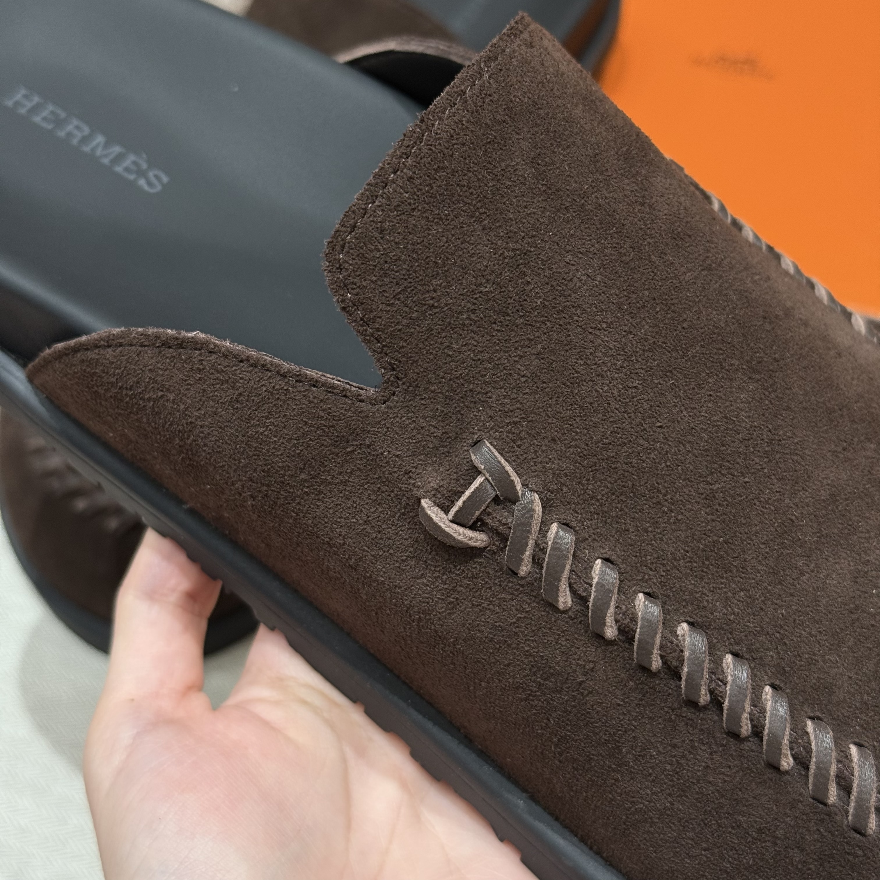 This Hermès shoes showcases the brand's exceptional craftsmanship and attention to detail. Crafted from premium suede, this piece combines timeless luxury with modern style.