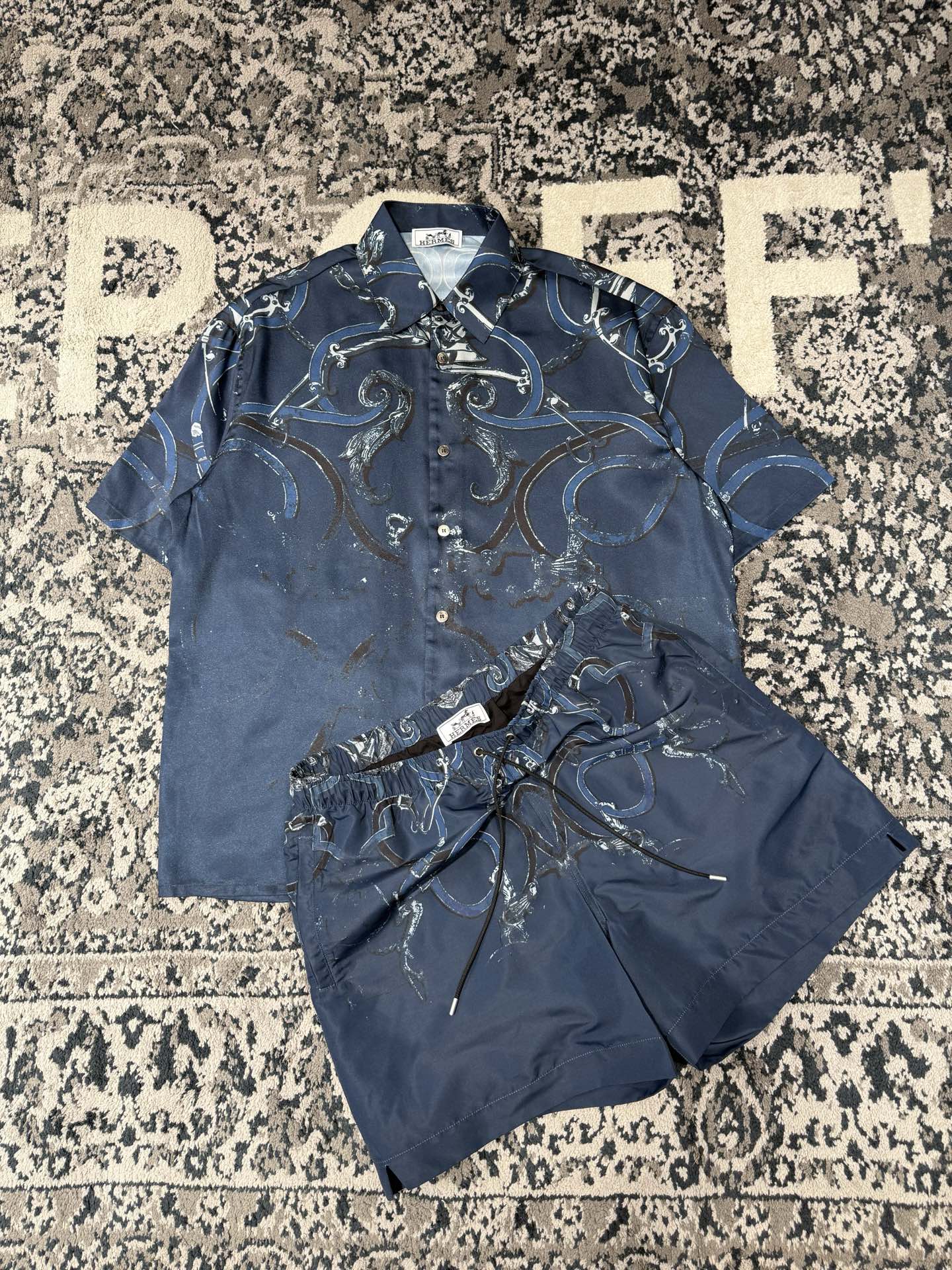 NIGO Hermes Men's Summer Silk Straight Printed Solid Color Short Sleeve Shirt Elastic Waist Swim Shorts Casual Shorts Ngvp #nigo1817