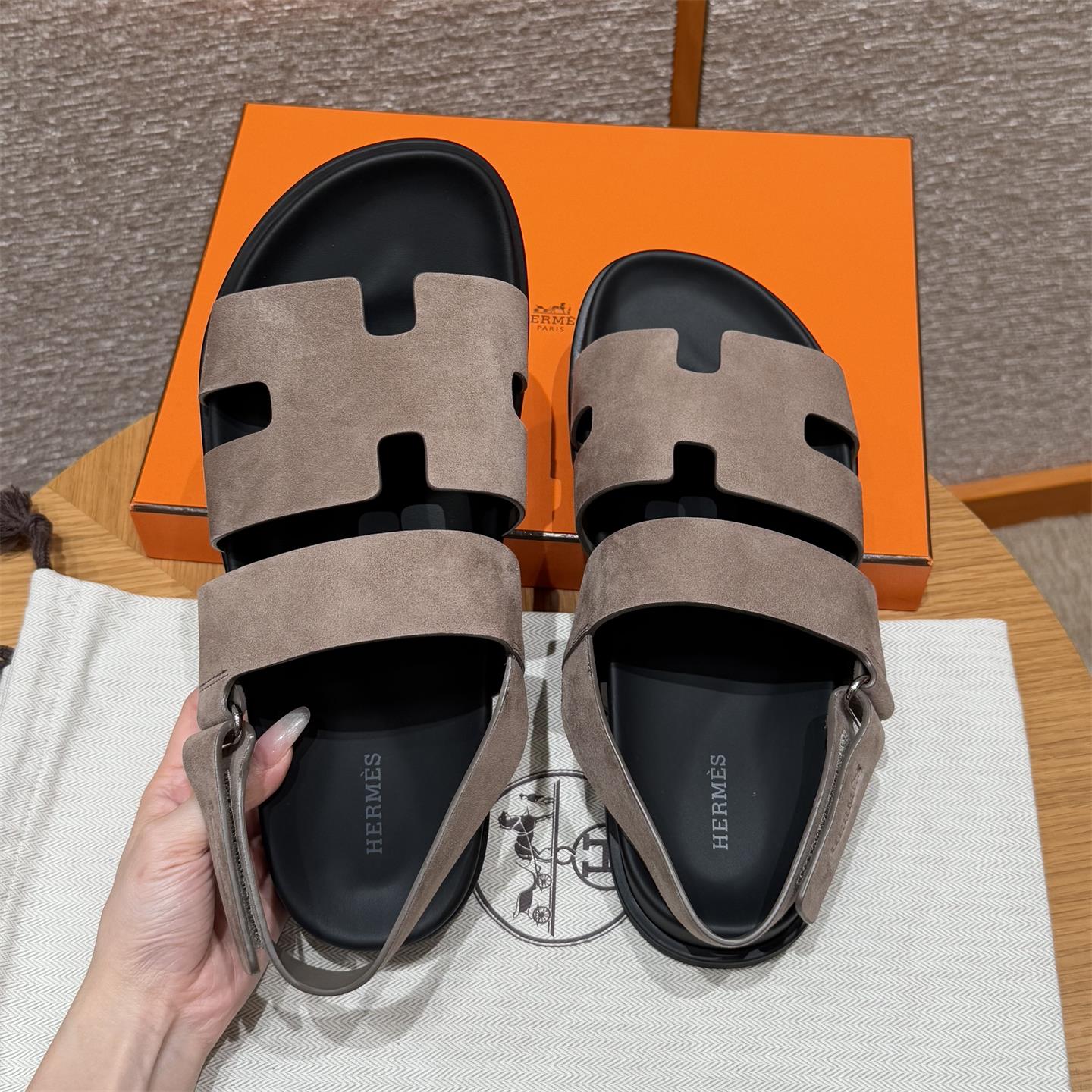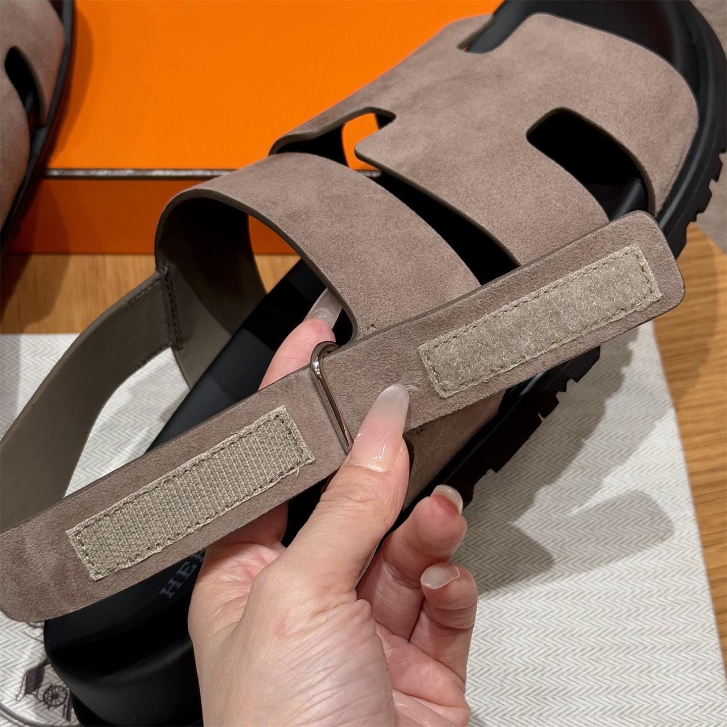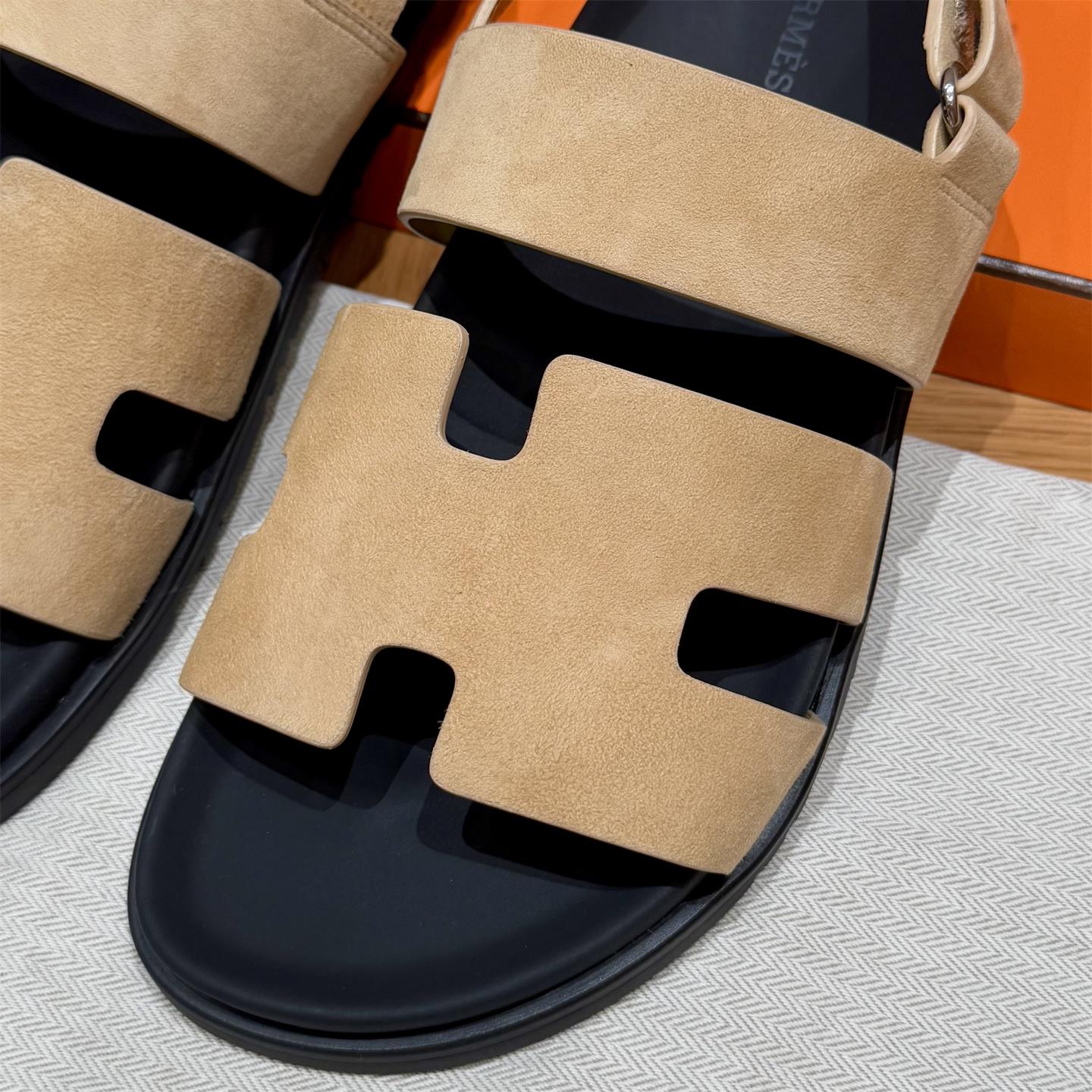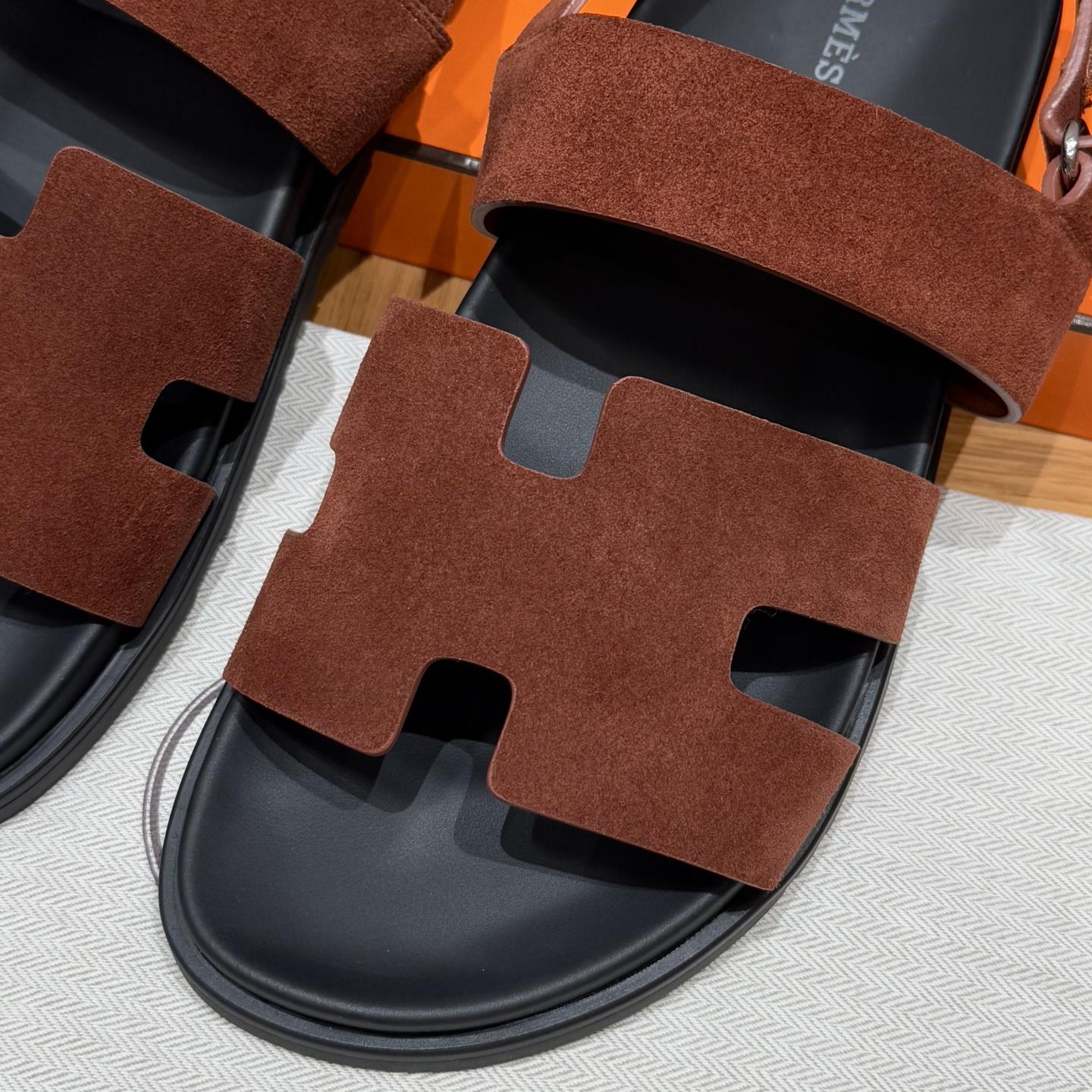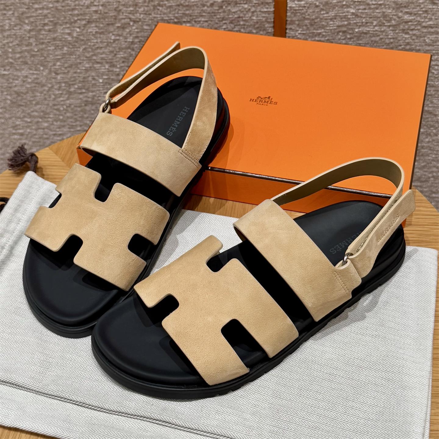 NIGO Hermes Men's Summer Solid Color Calfskin Suede Velcro Sandals Shoes #nigo75865