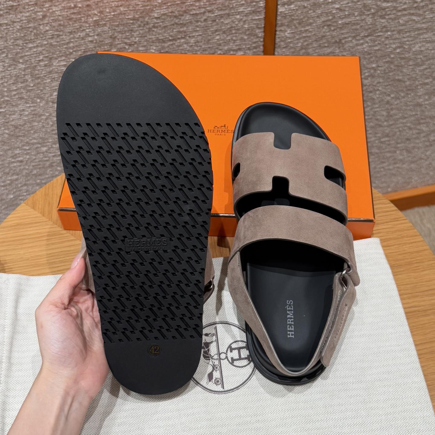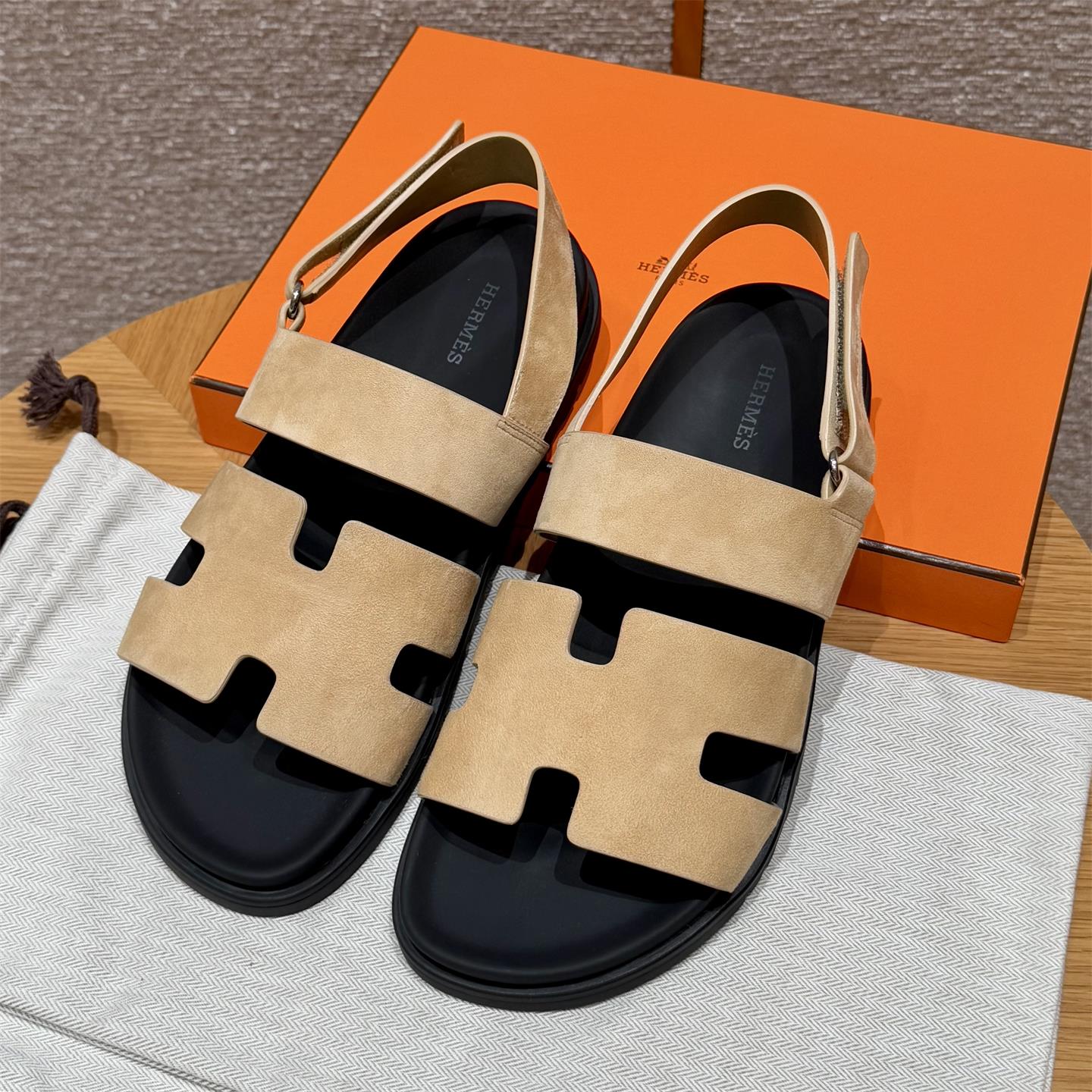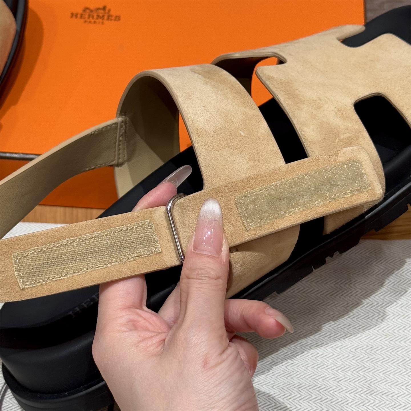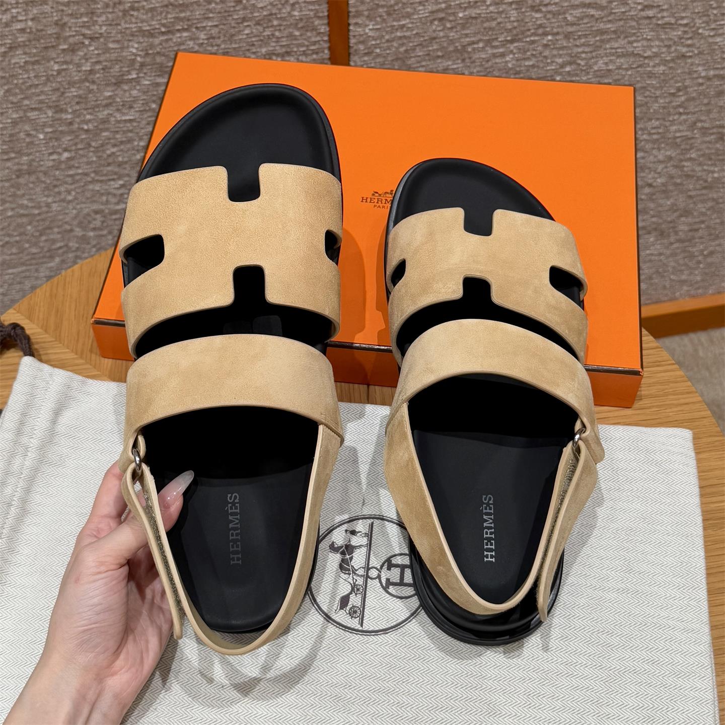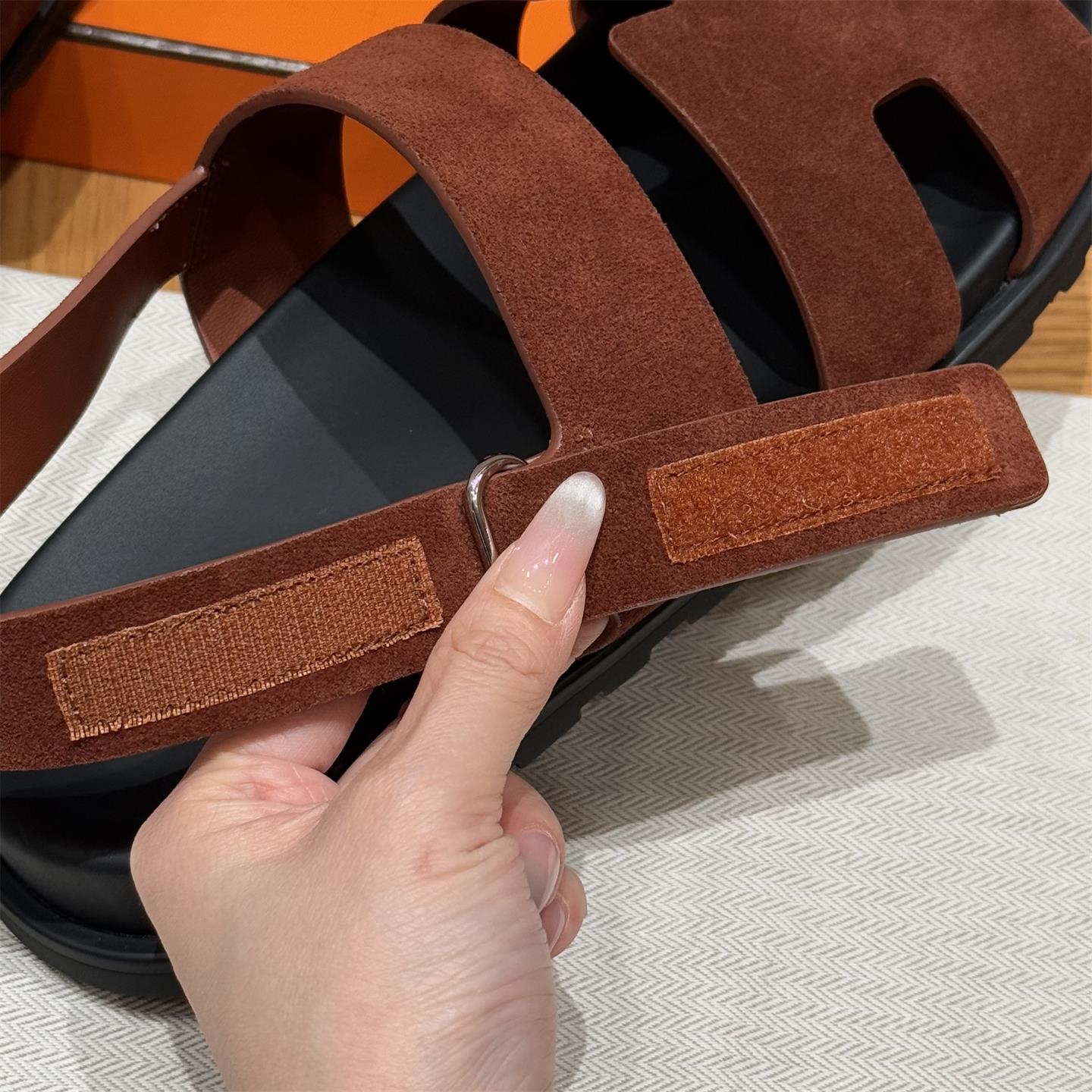 NIGO Hermes Men's Summer Solid Color Calfskin Suede Velcro Sandals Shoes #nigo75865