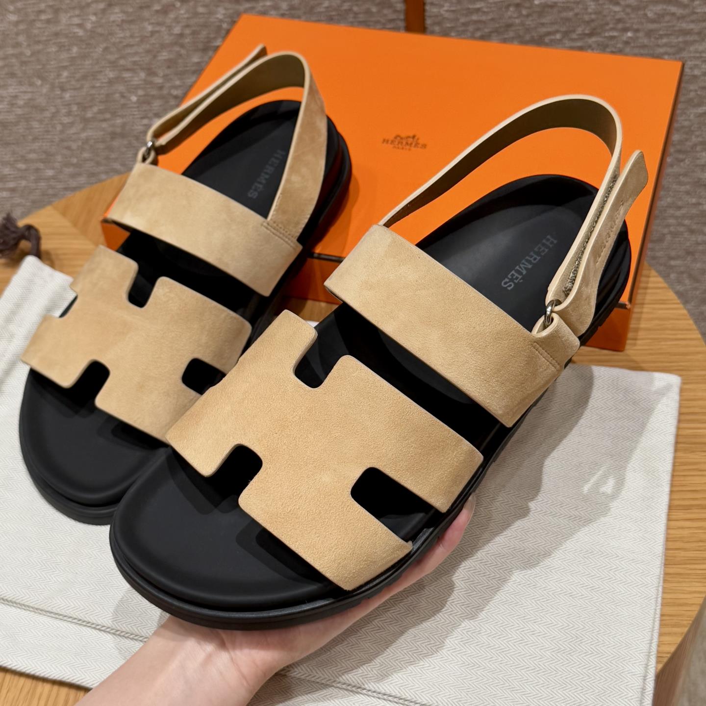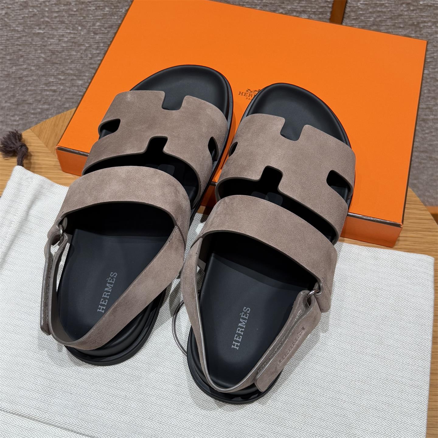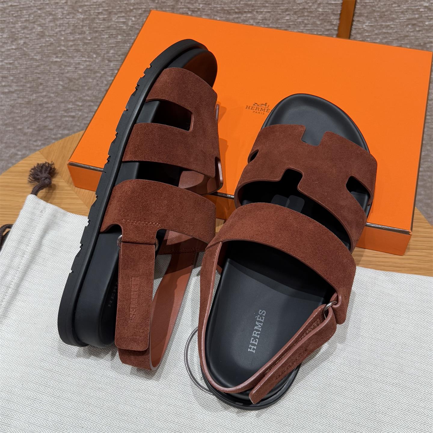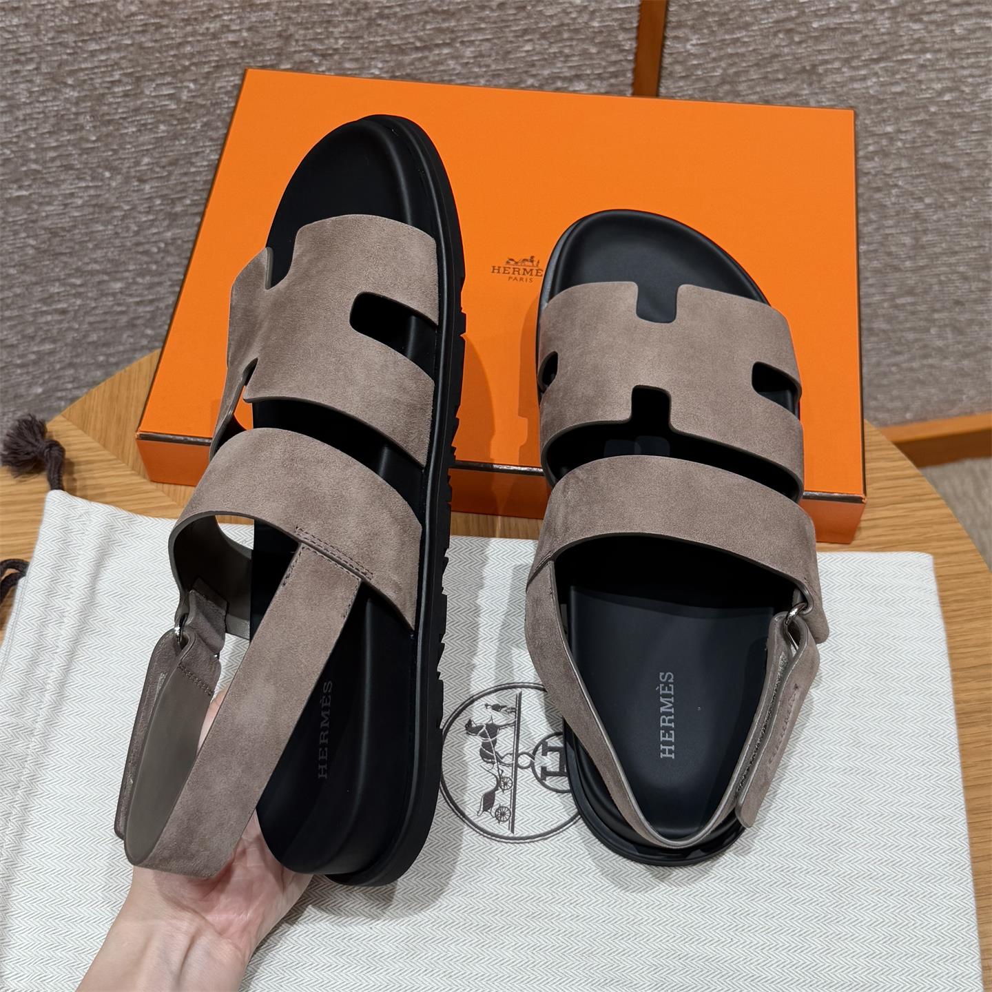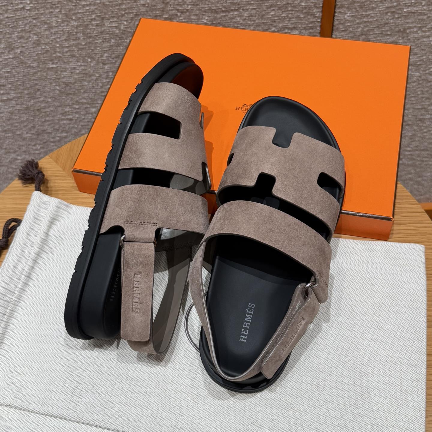 NIGO Hermes Men's Summer Solid Color Calfskin Suede Velcro Sandals Shoes #nigo75865