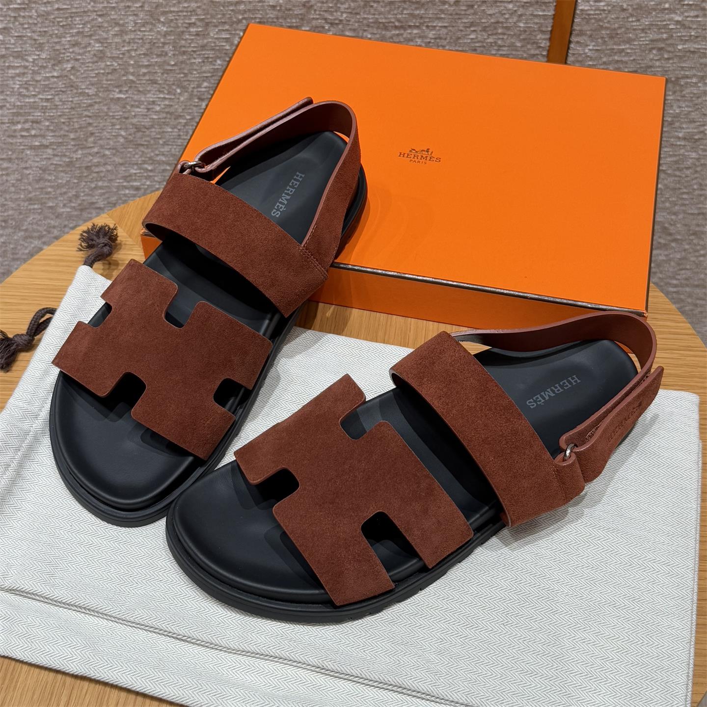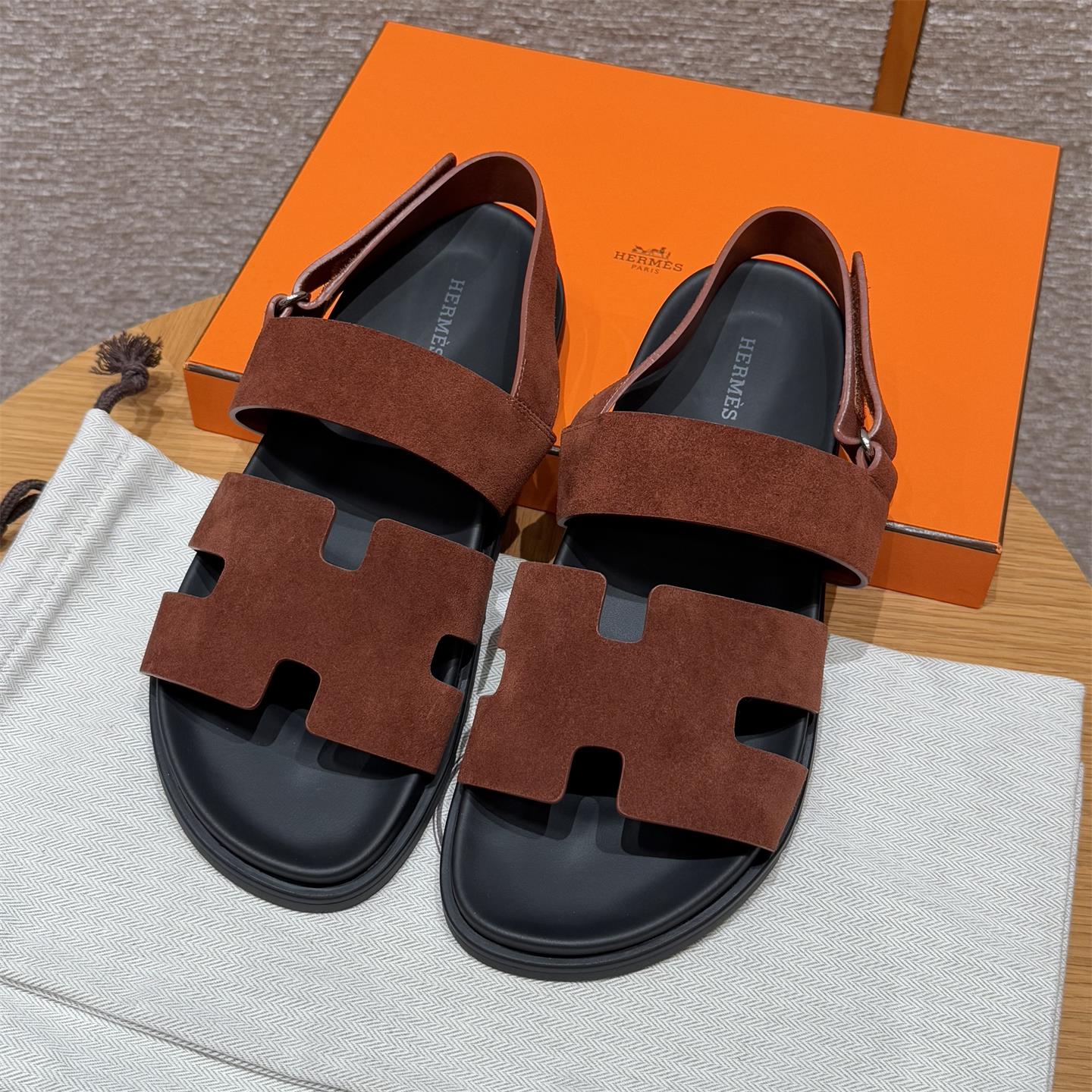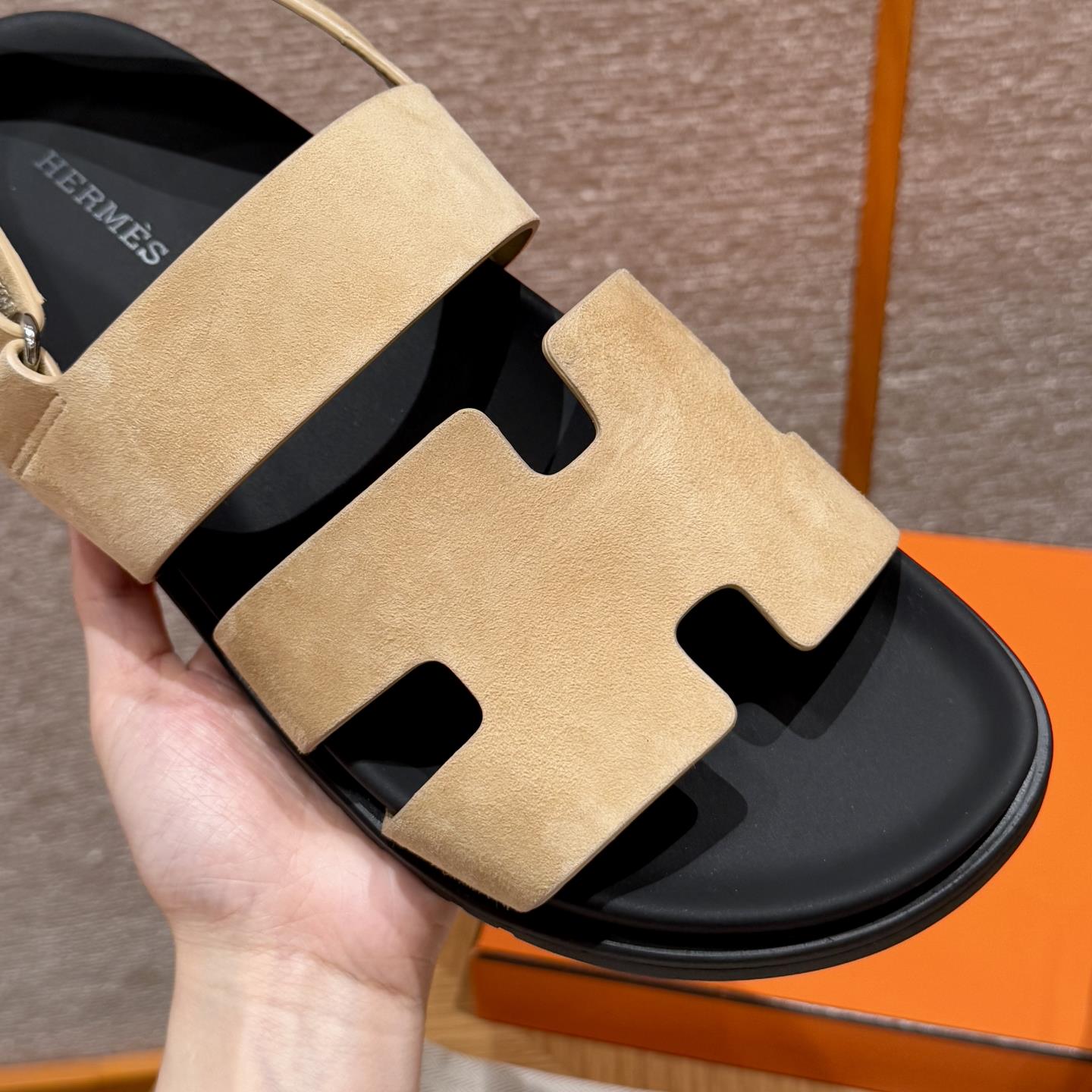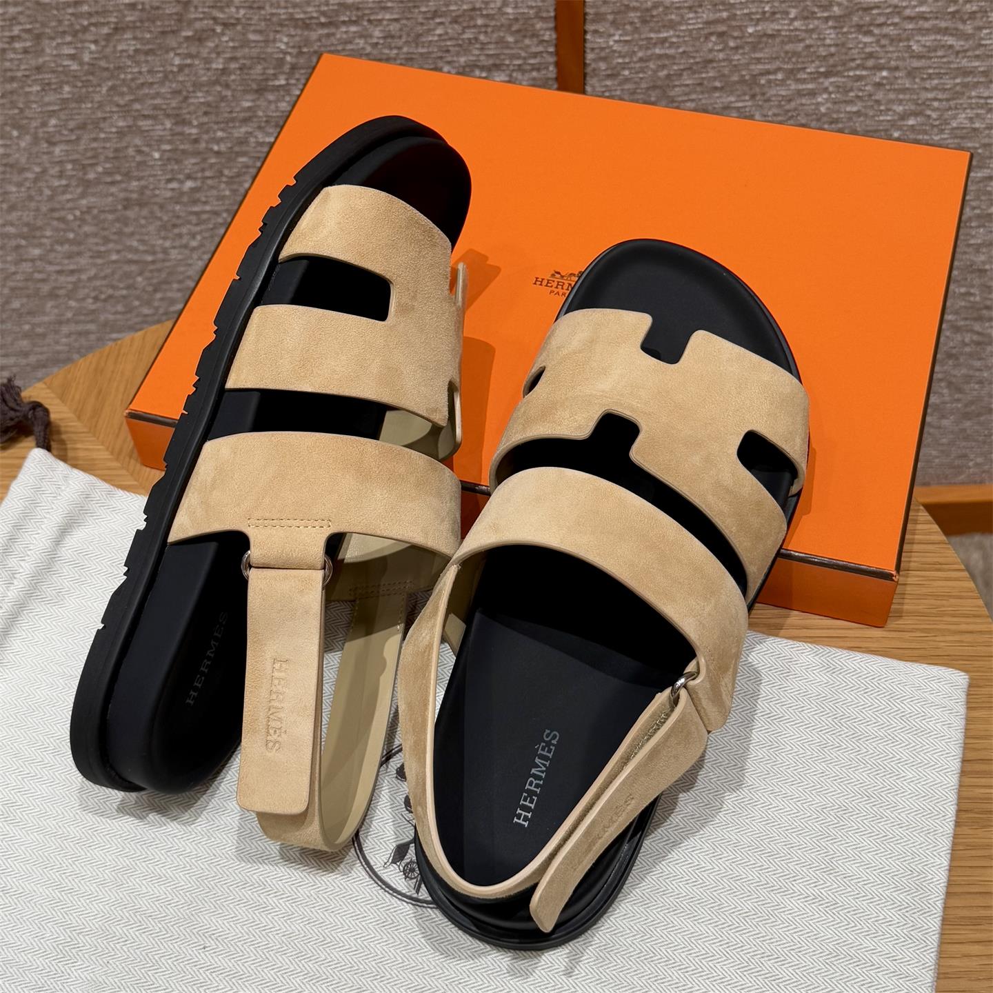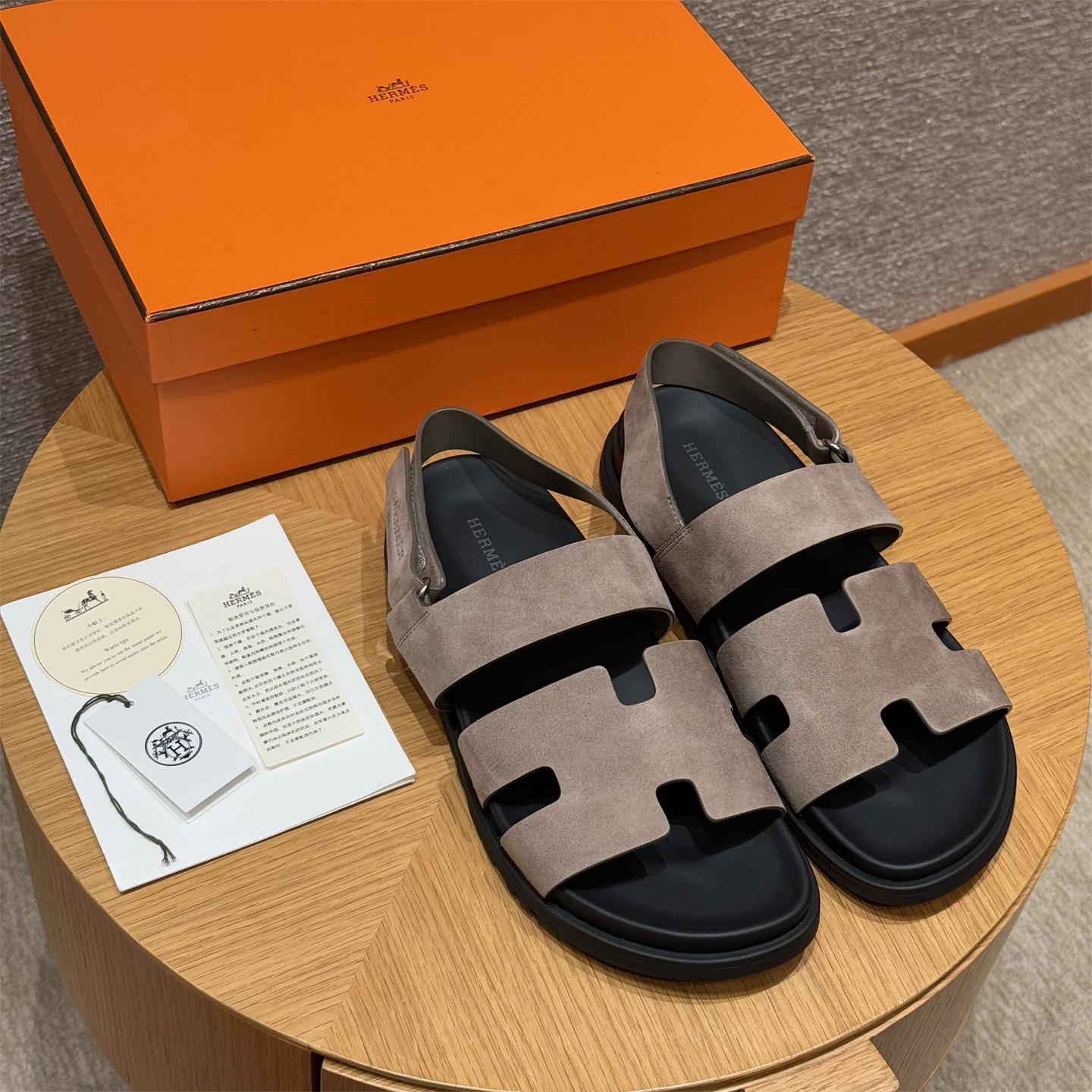 NIGO Hermes Men's Summer Solid Color Calfskin Suede Velcro Sandals Shoes #nigo75865