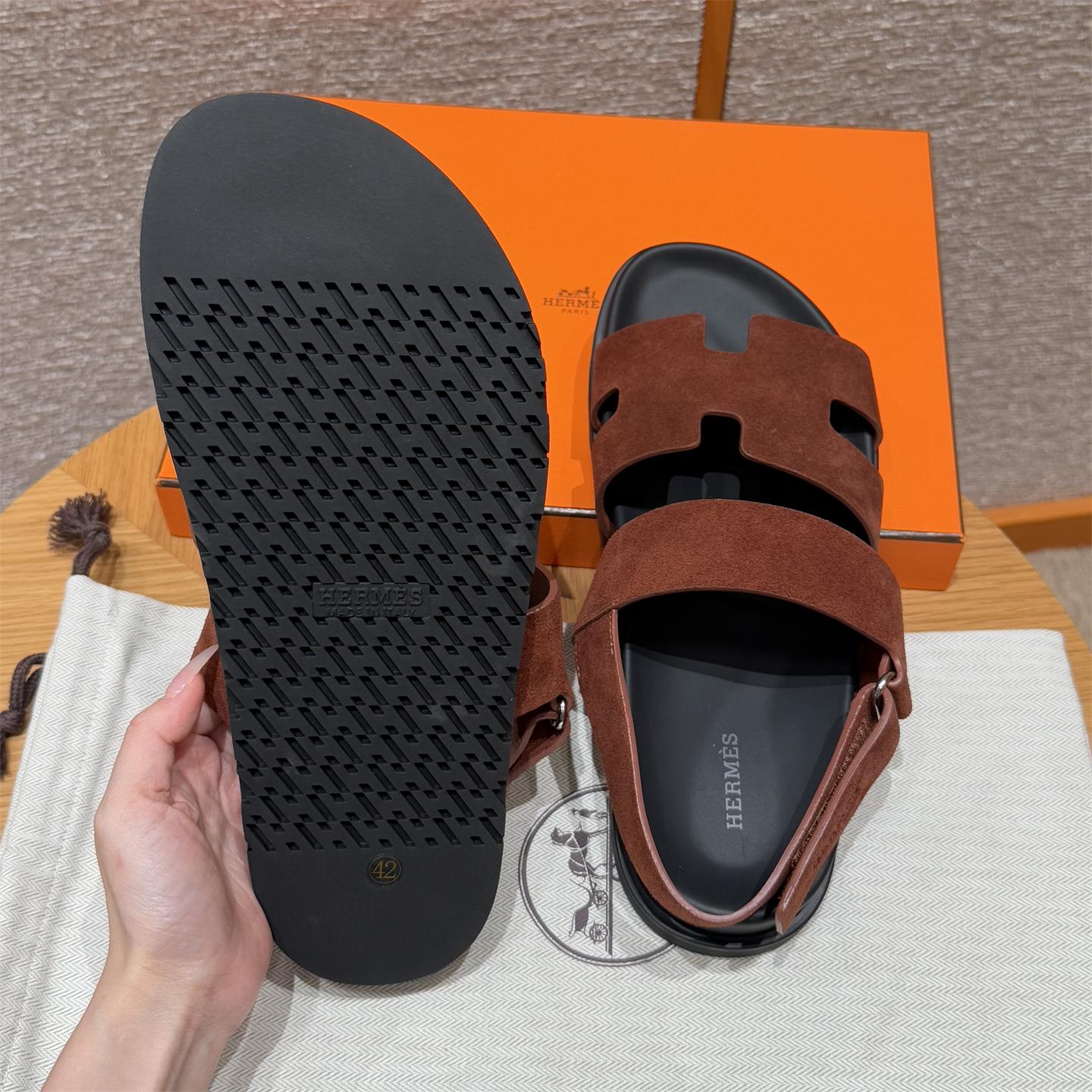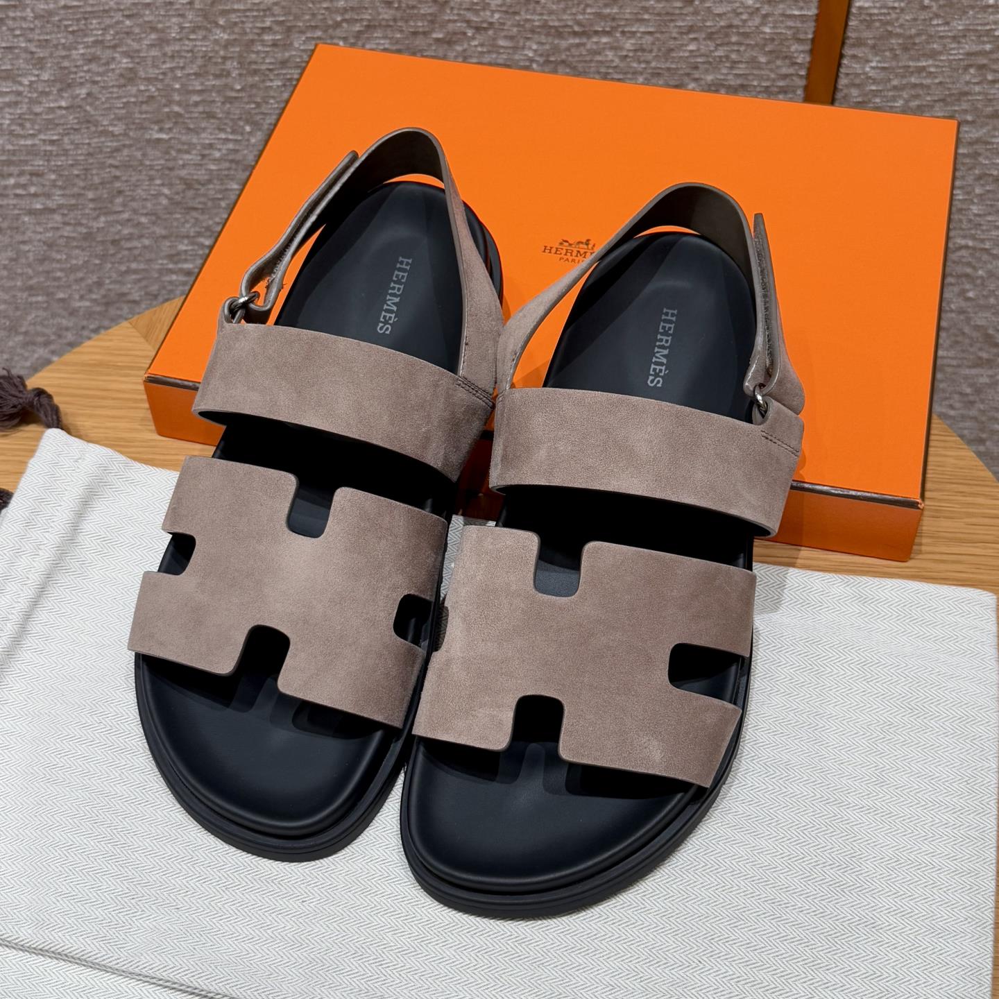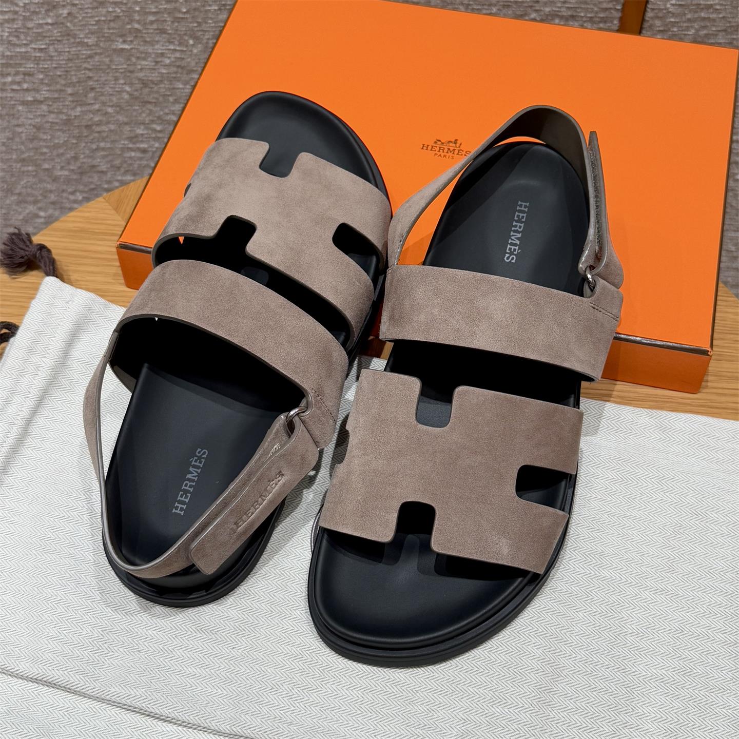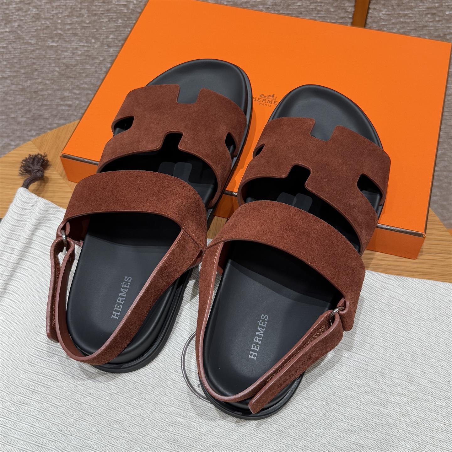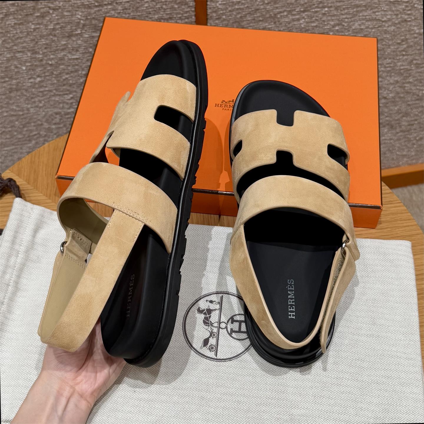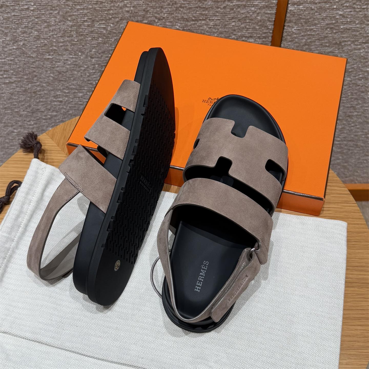 NIGO Hermes Men's Summer Solid Color Calfskin Suede Velcro Sandals Shoes #nigo75865