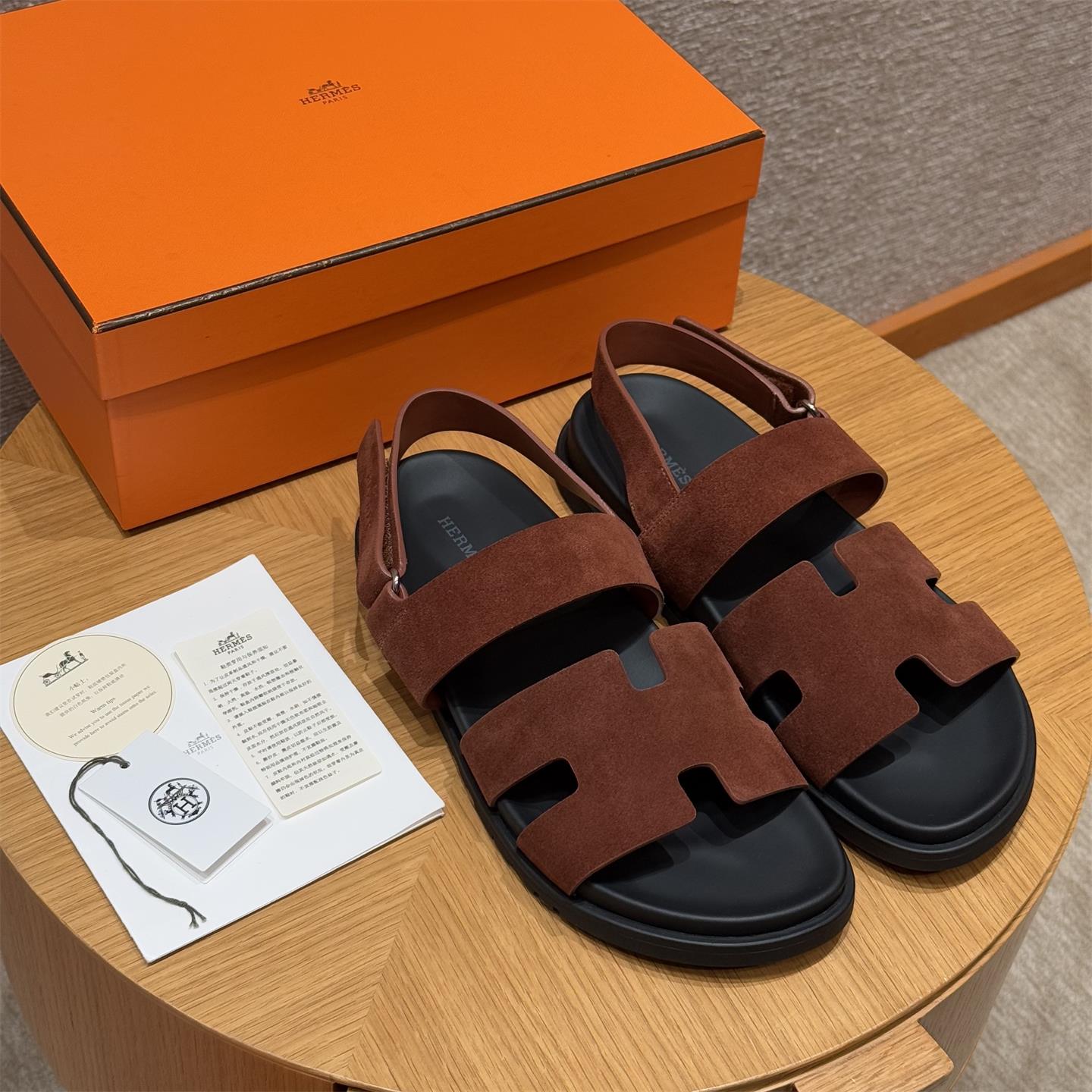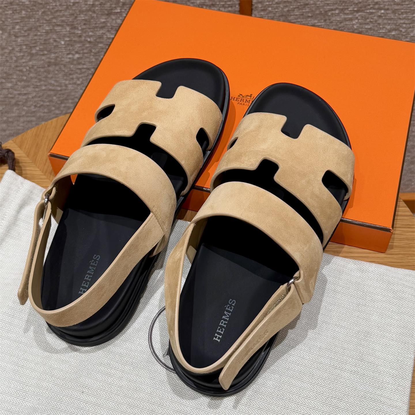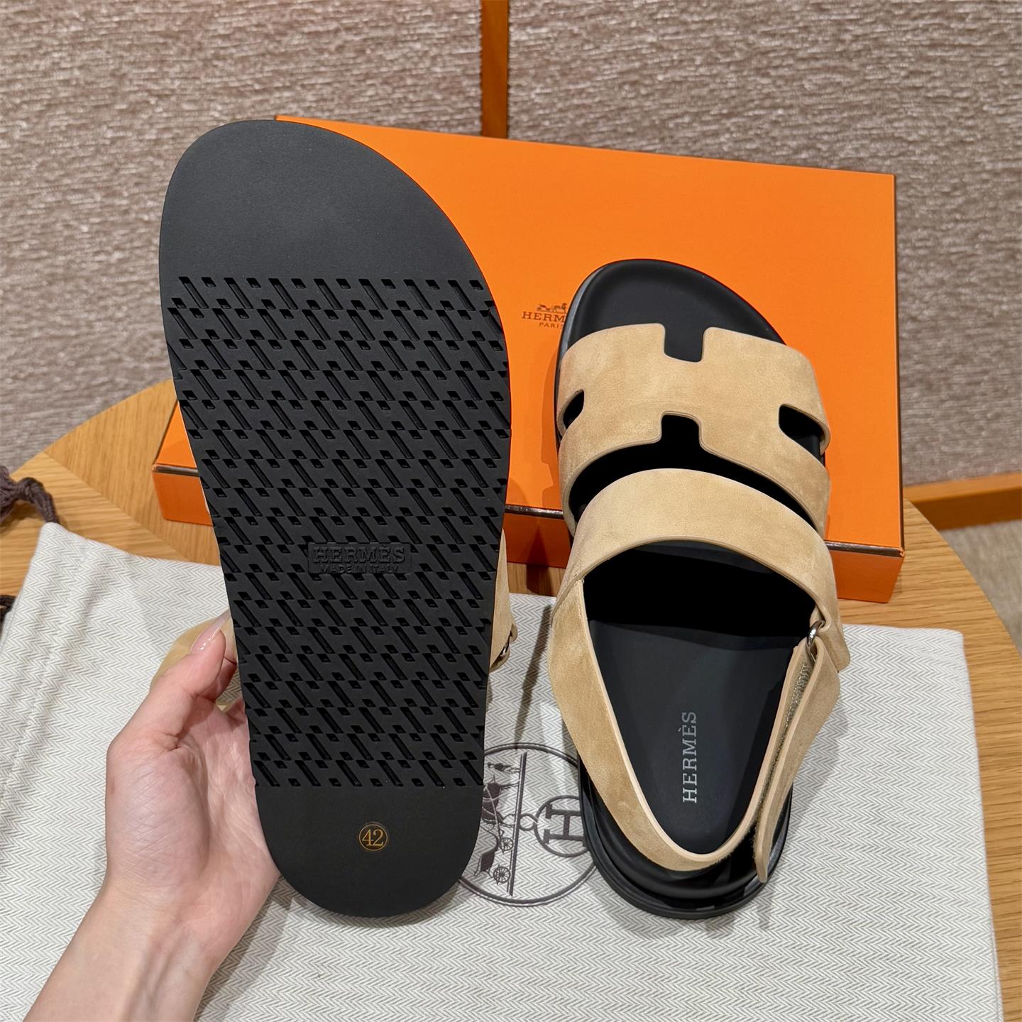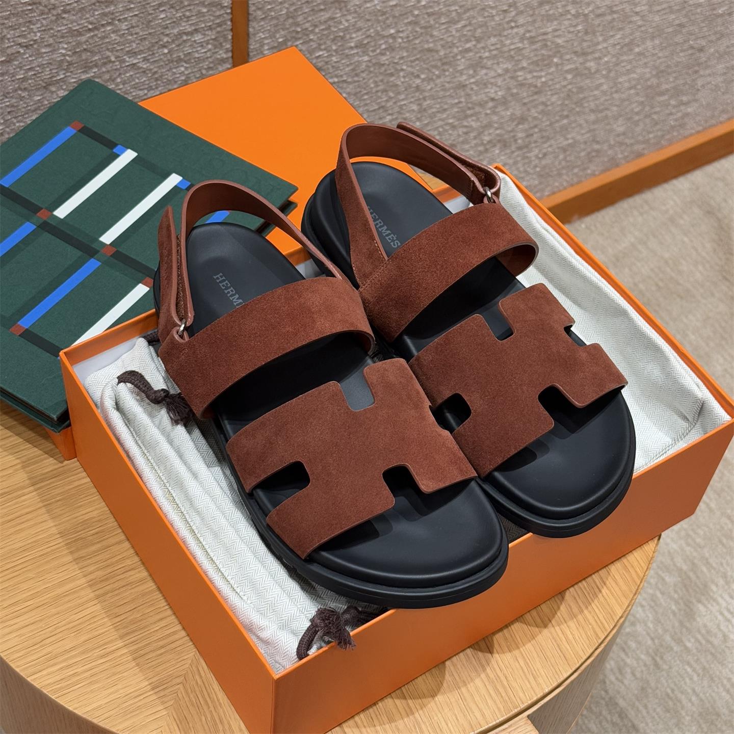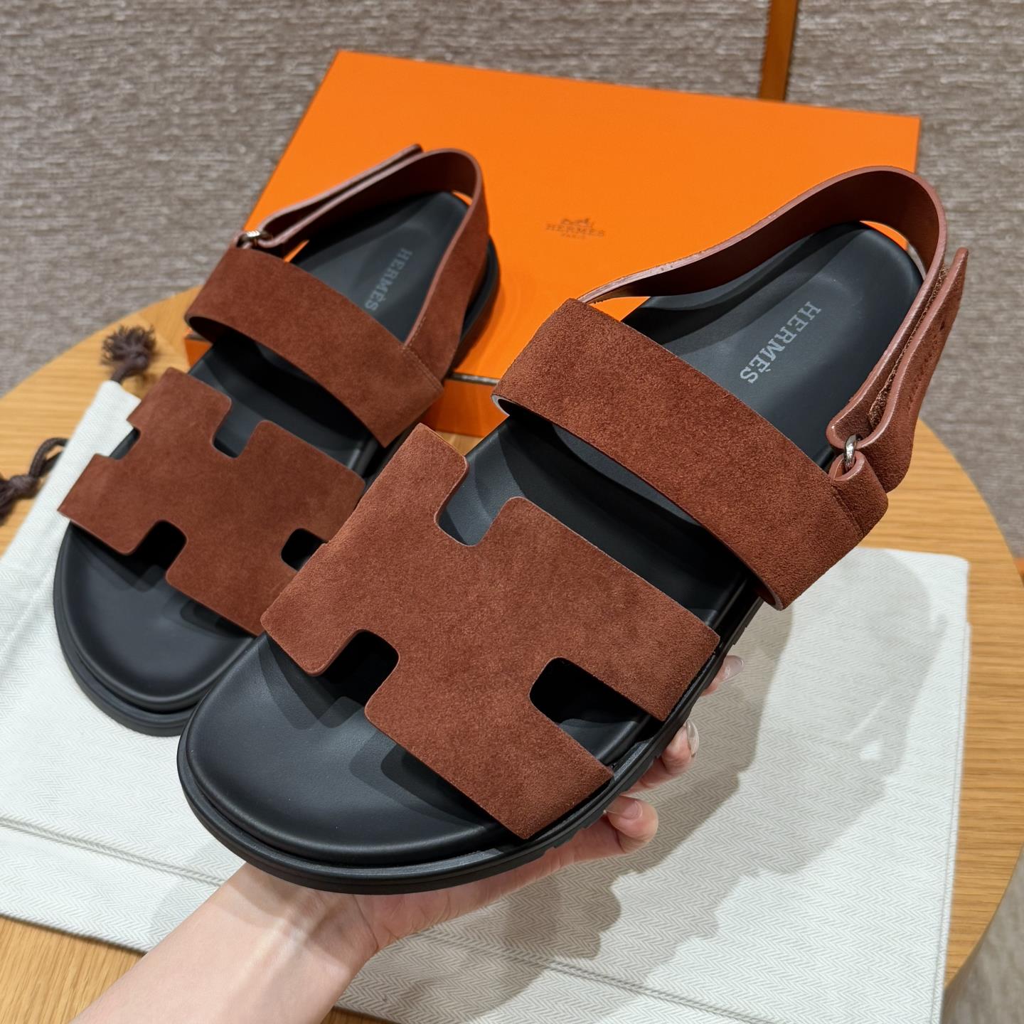 NIGO Hermes Men's Summer Solid Color Calfskin Suede Velcro Sandals Shoes #nigo75865