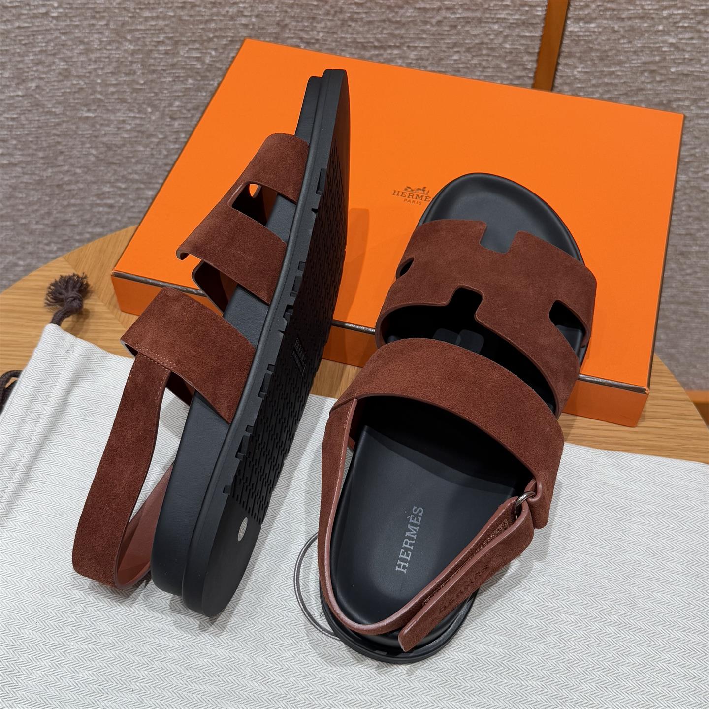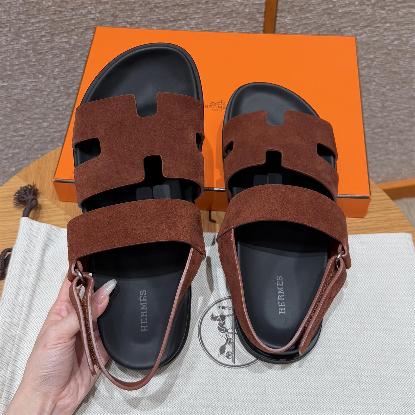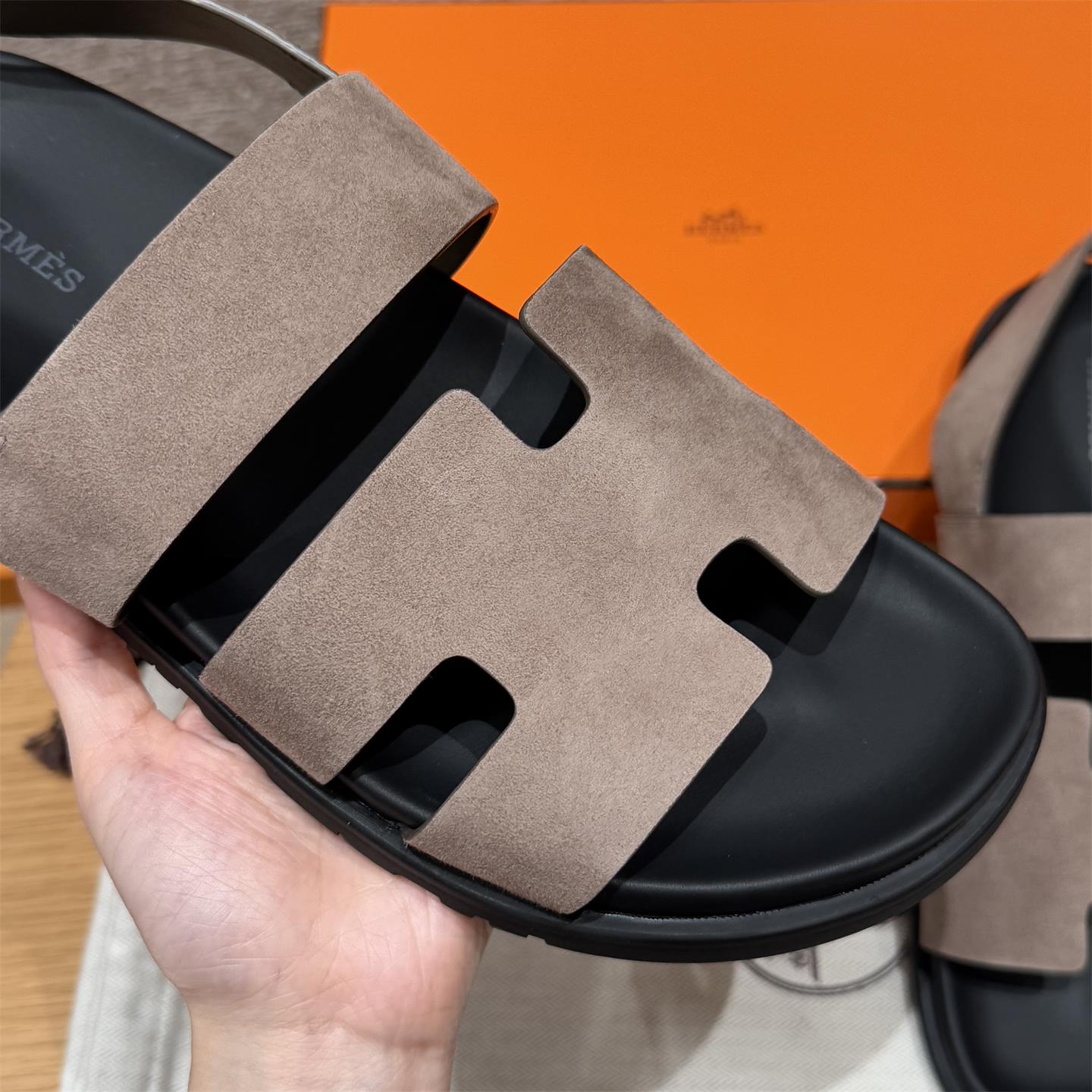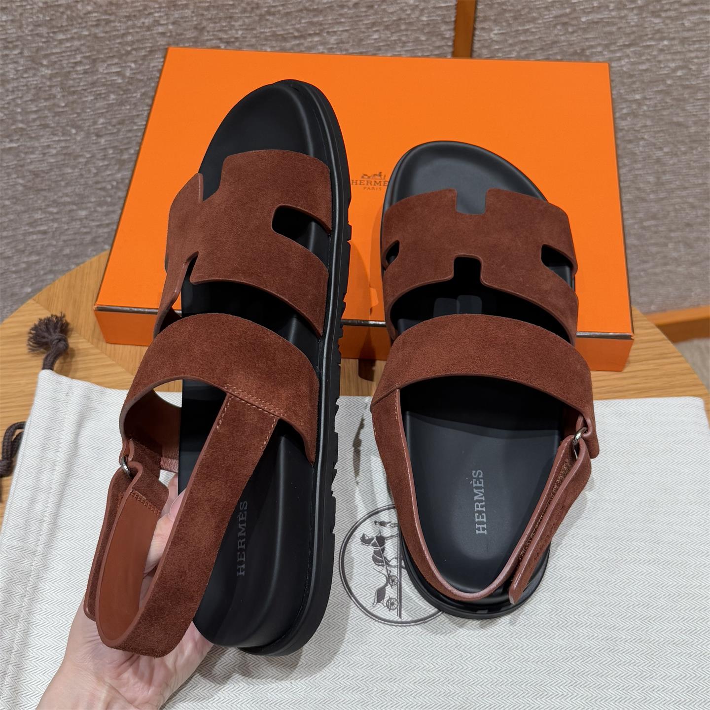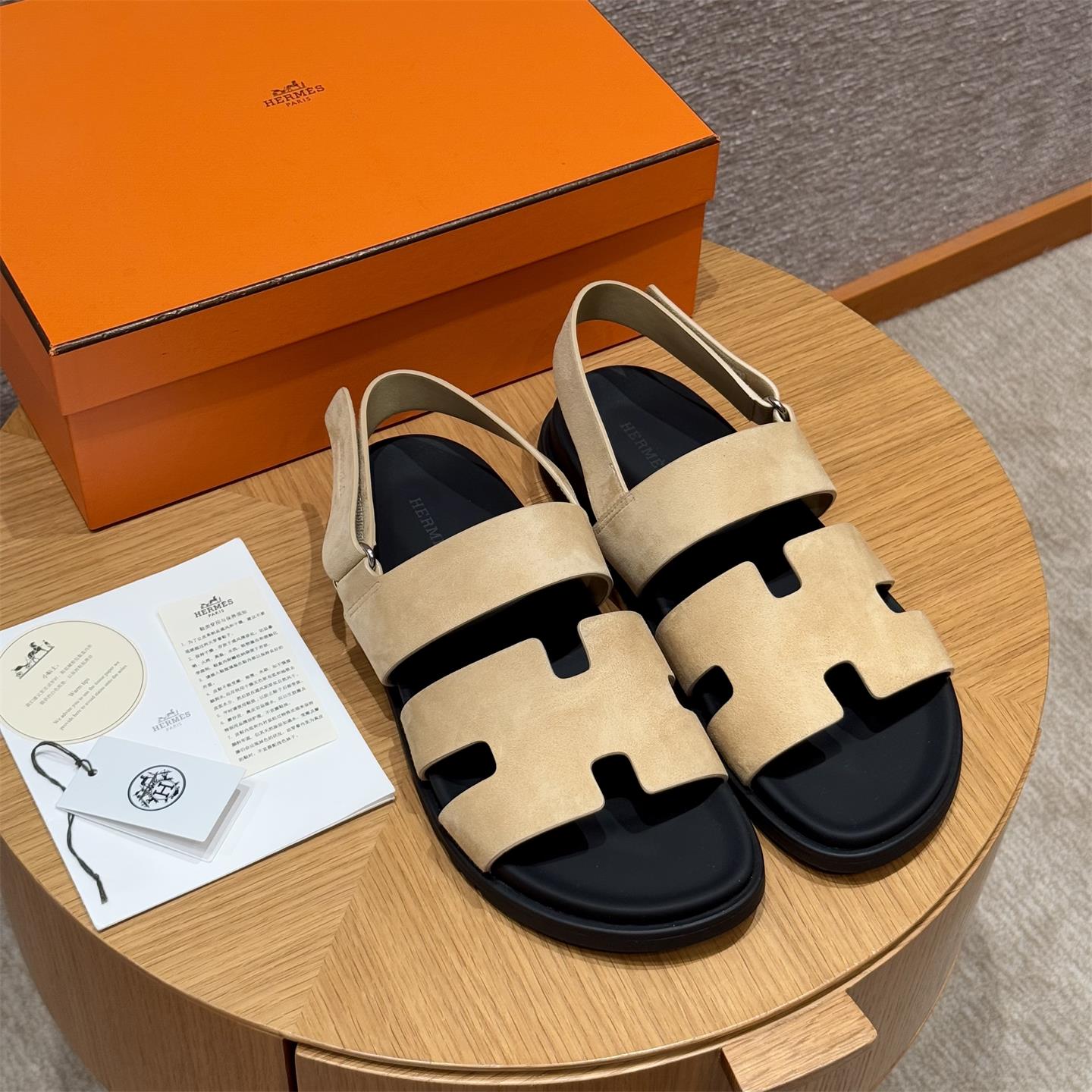 NIGO Hermes Men's Summer Solid Color Calfskin Suede Velcro Sandals Shoes #nigo75865