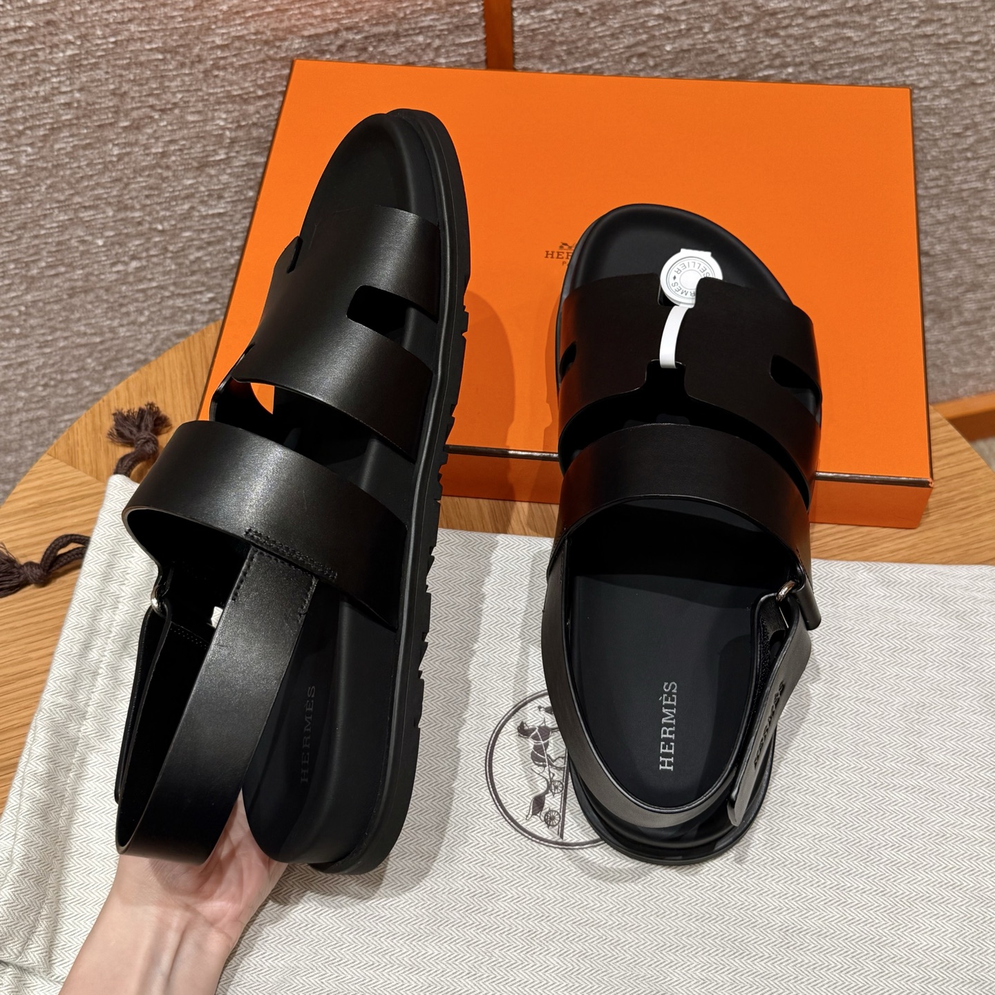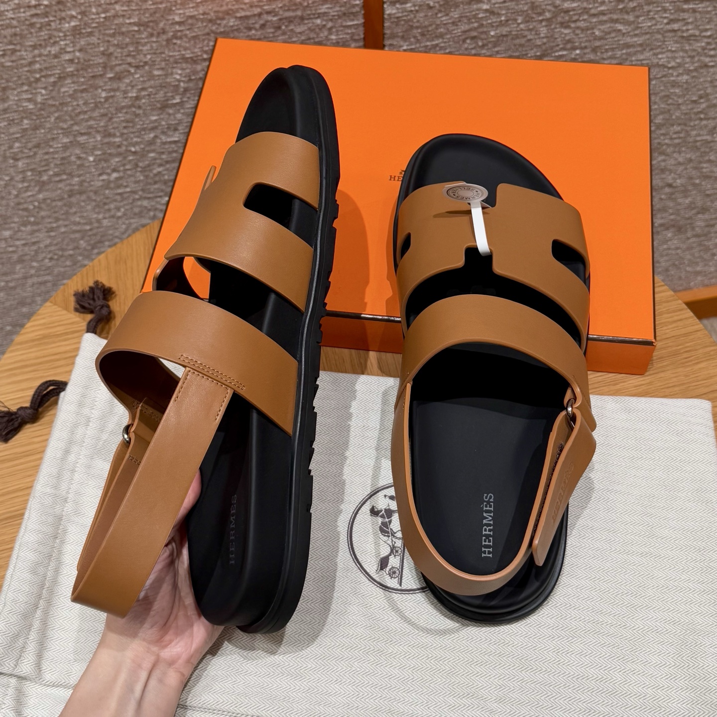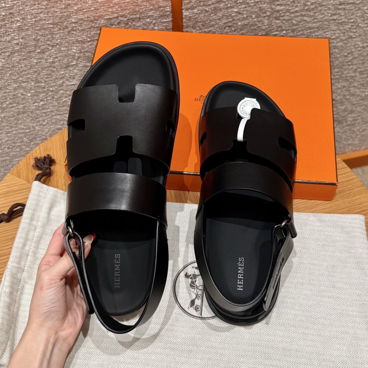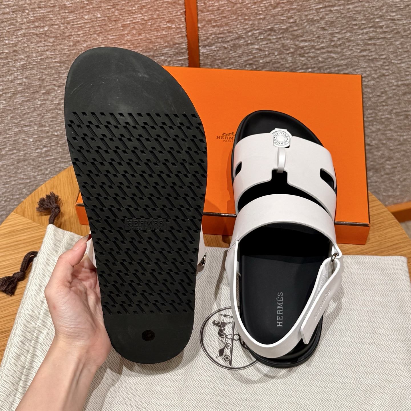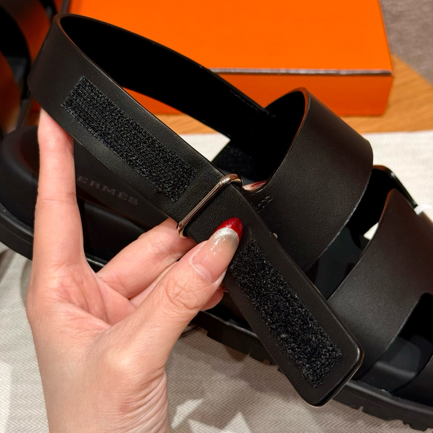 NIGO Hermes Men's Summer Solid Color Calfskin Suede Velcro Sandals Shoes #nigo75865