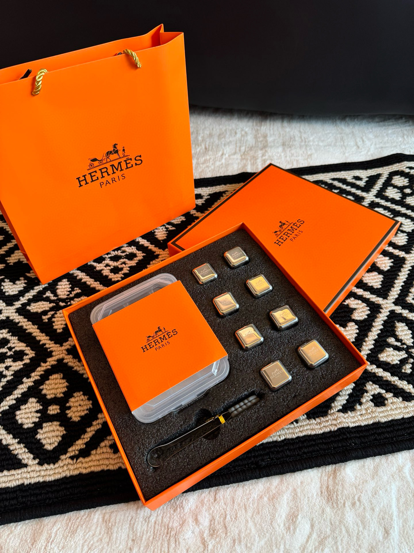 NIGO Hermes Monogrammed Solid Color Stainless Steel Ice Cube Gift Set #nigo75629
