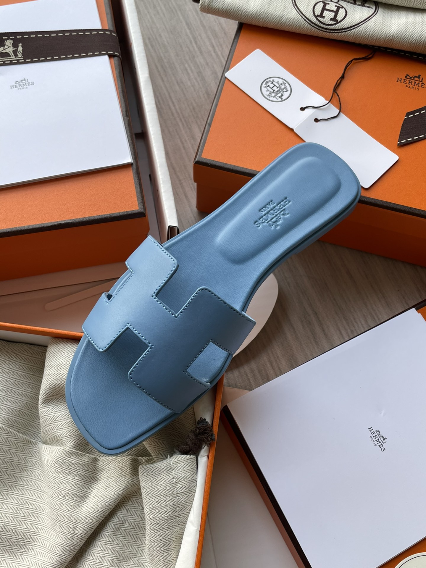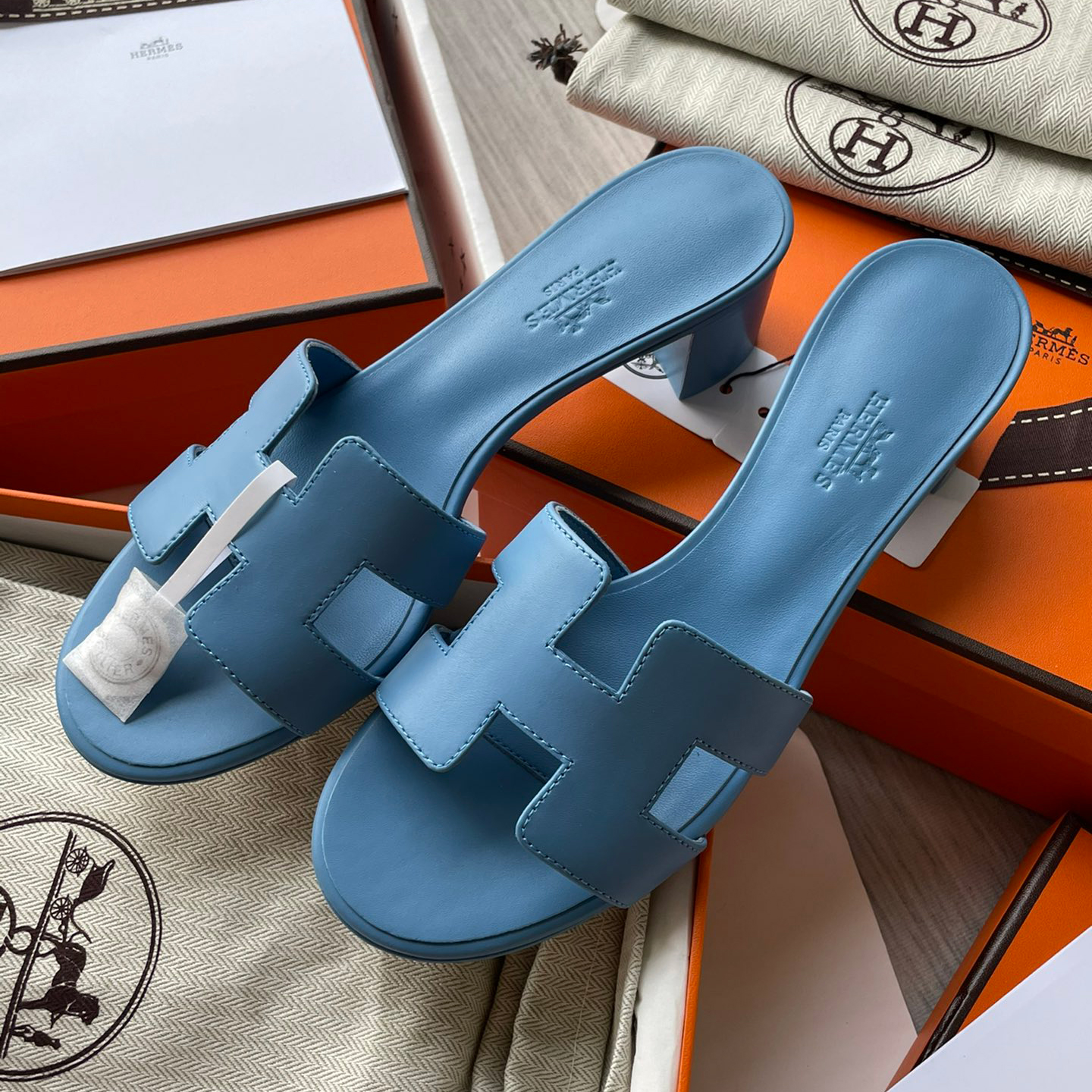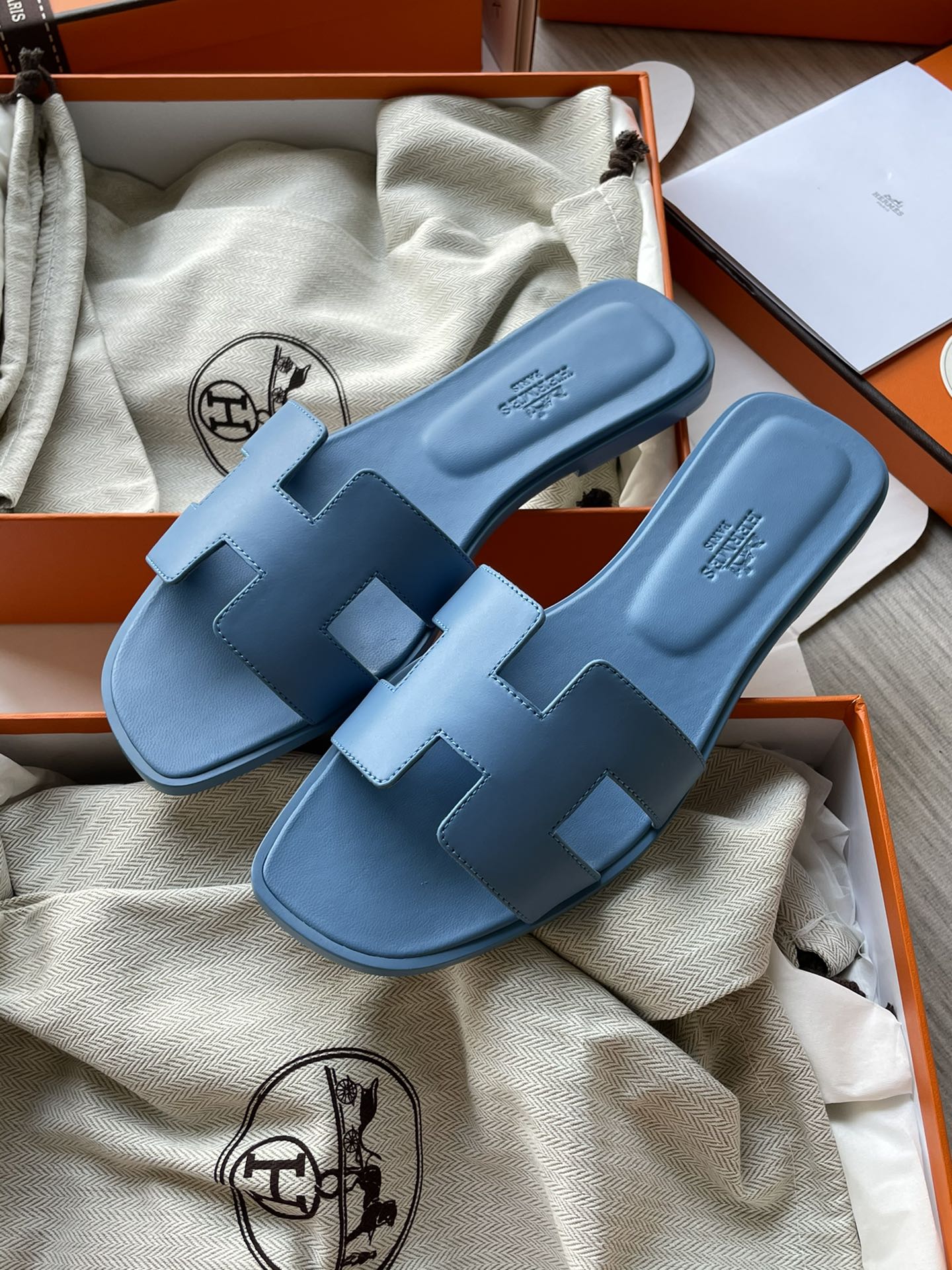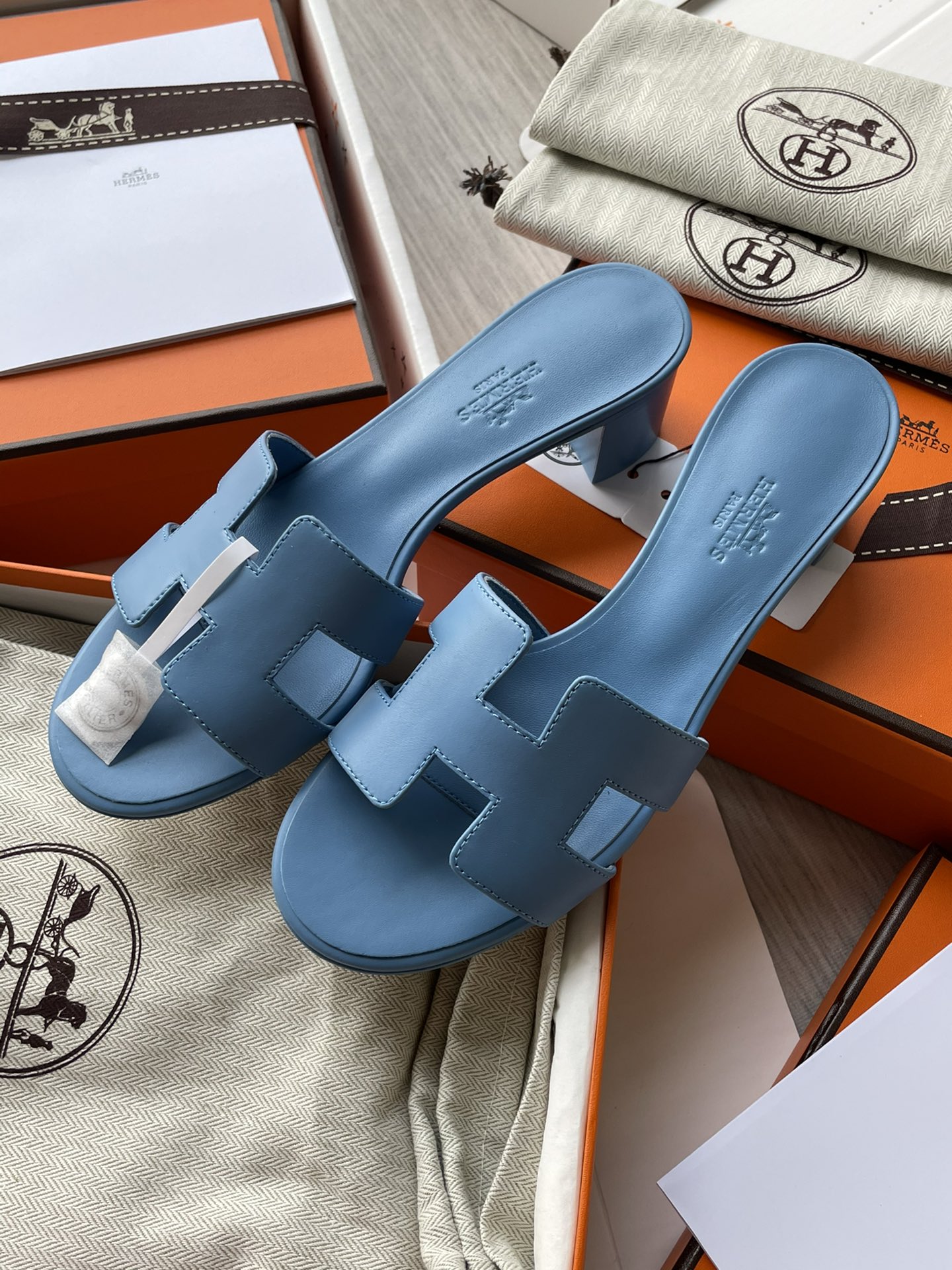 NIGO Hermes Oran Sandal Women's Summer Fashion Casual Solid Color Leather Slip On Sandals Mid Heel And Flat Shoes #nigo78338