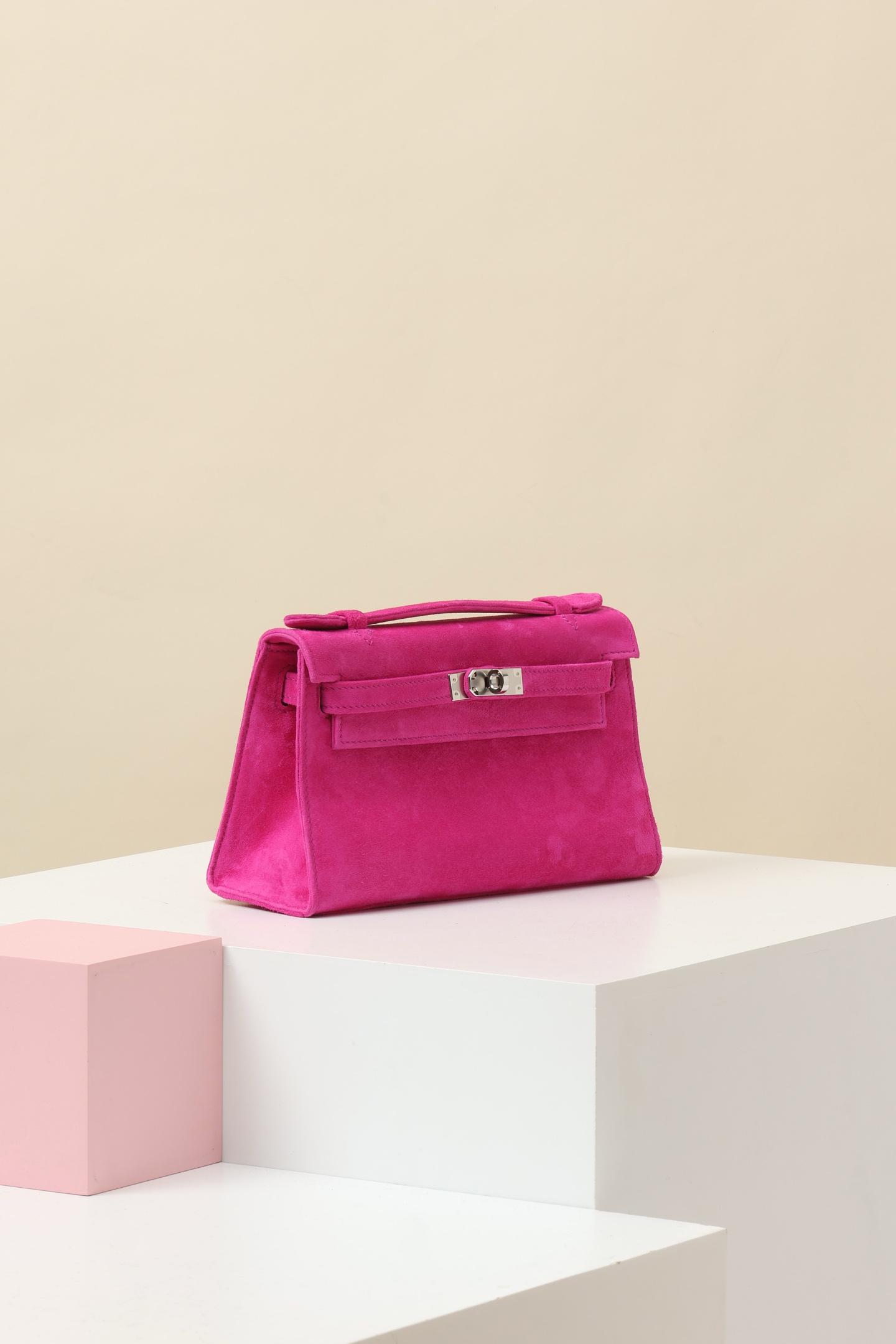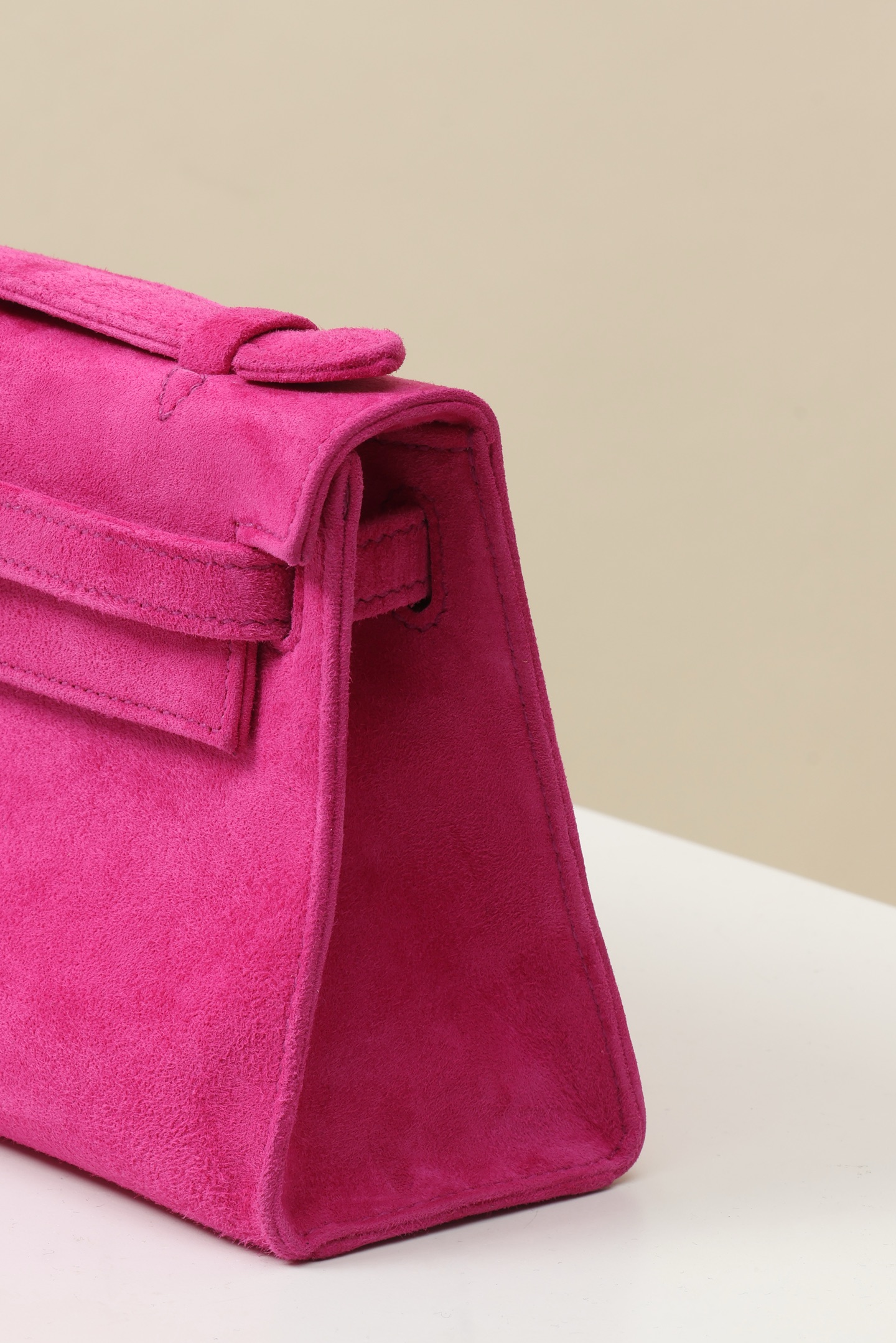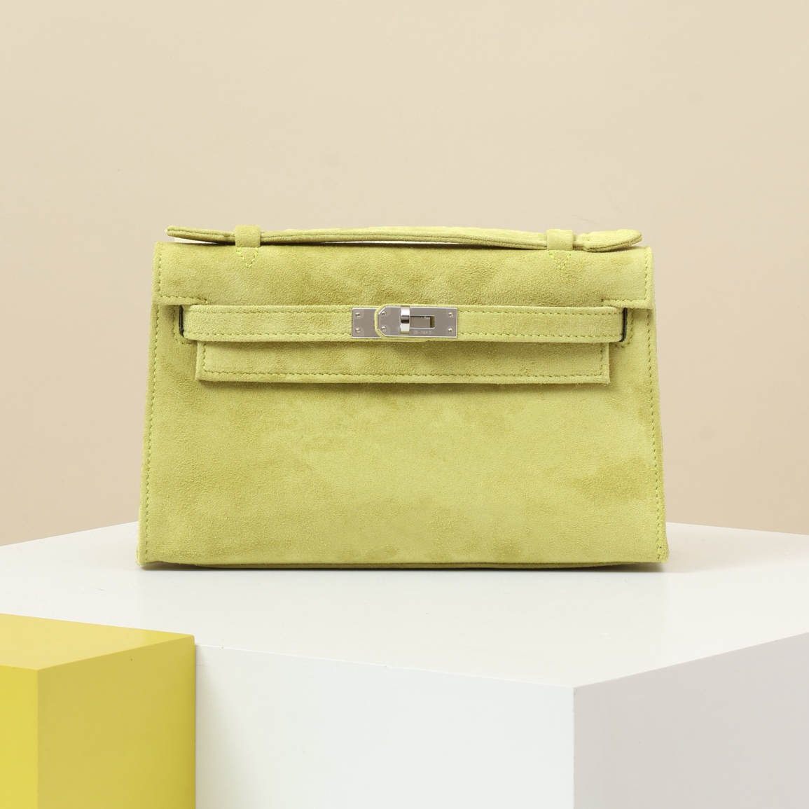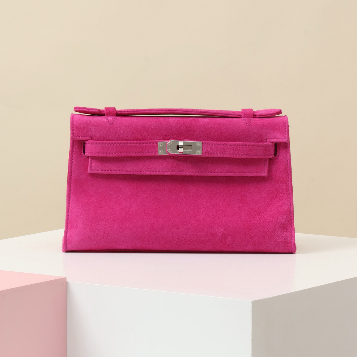 NIGO Hermes Women's Classic Solid Color Suede Kelly Bag With Silver Buckle Handbag Tote Bag Bags #nigo78955