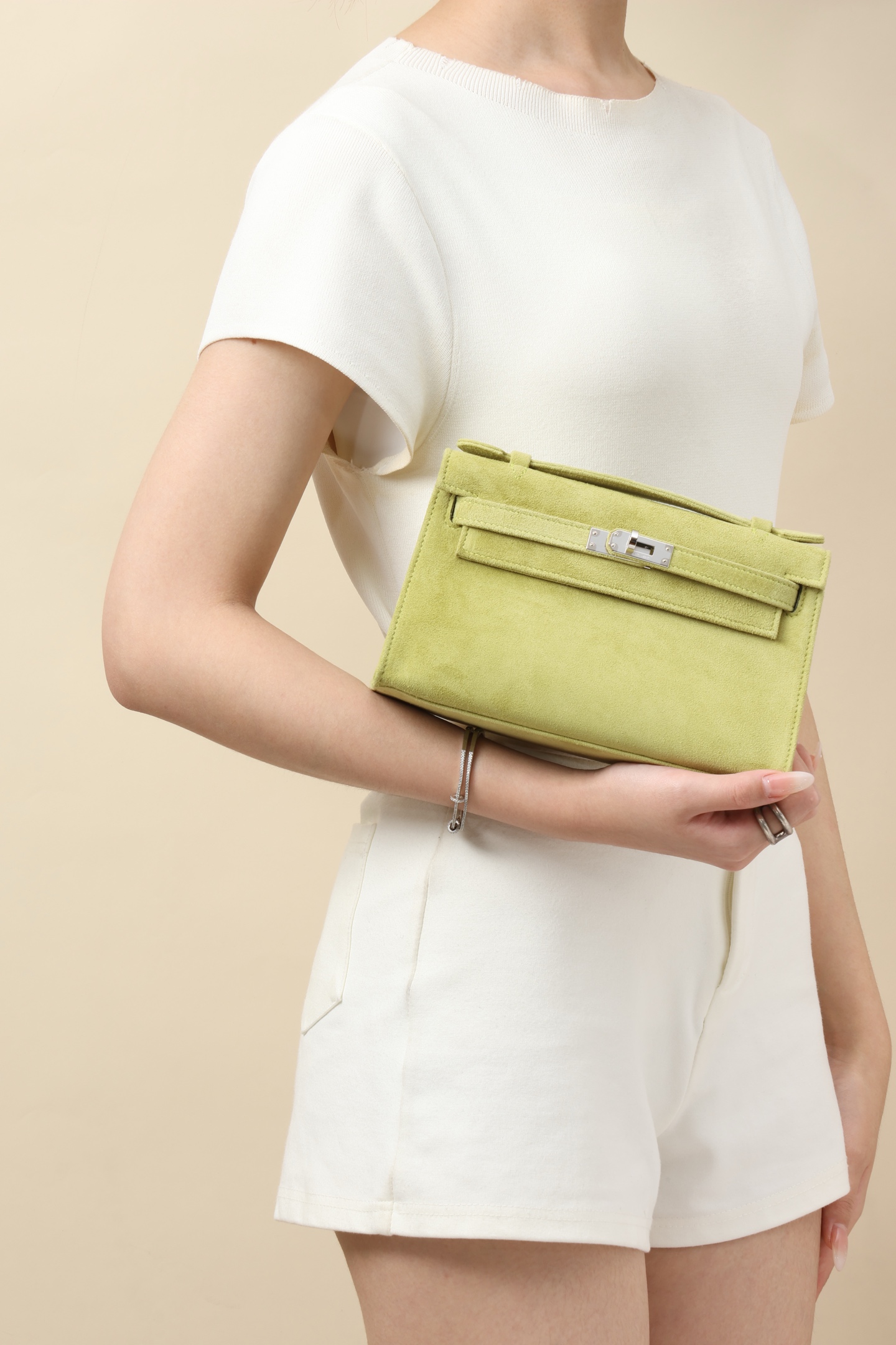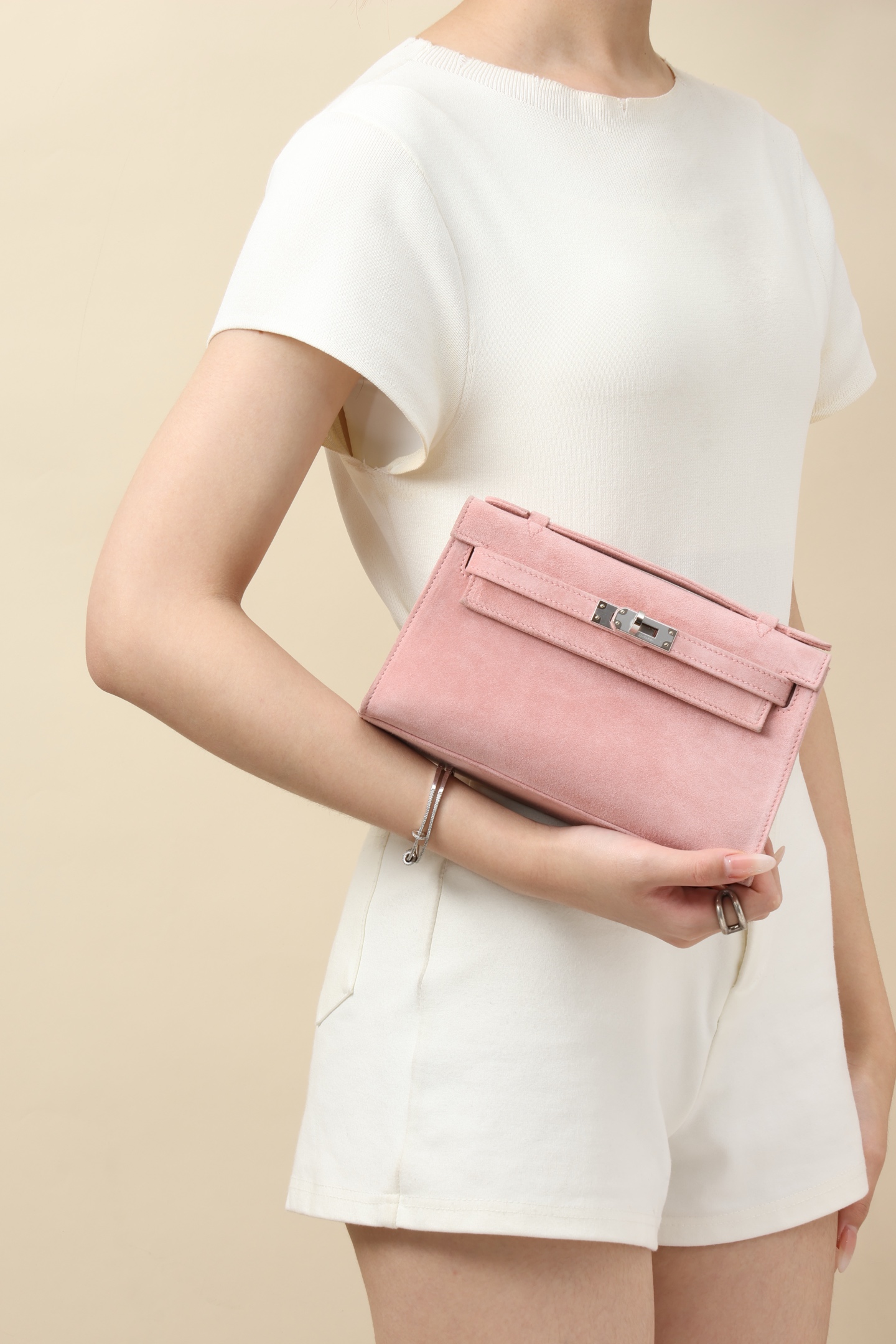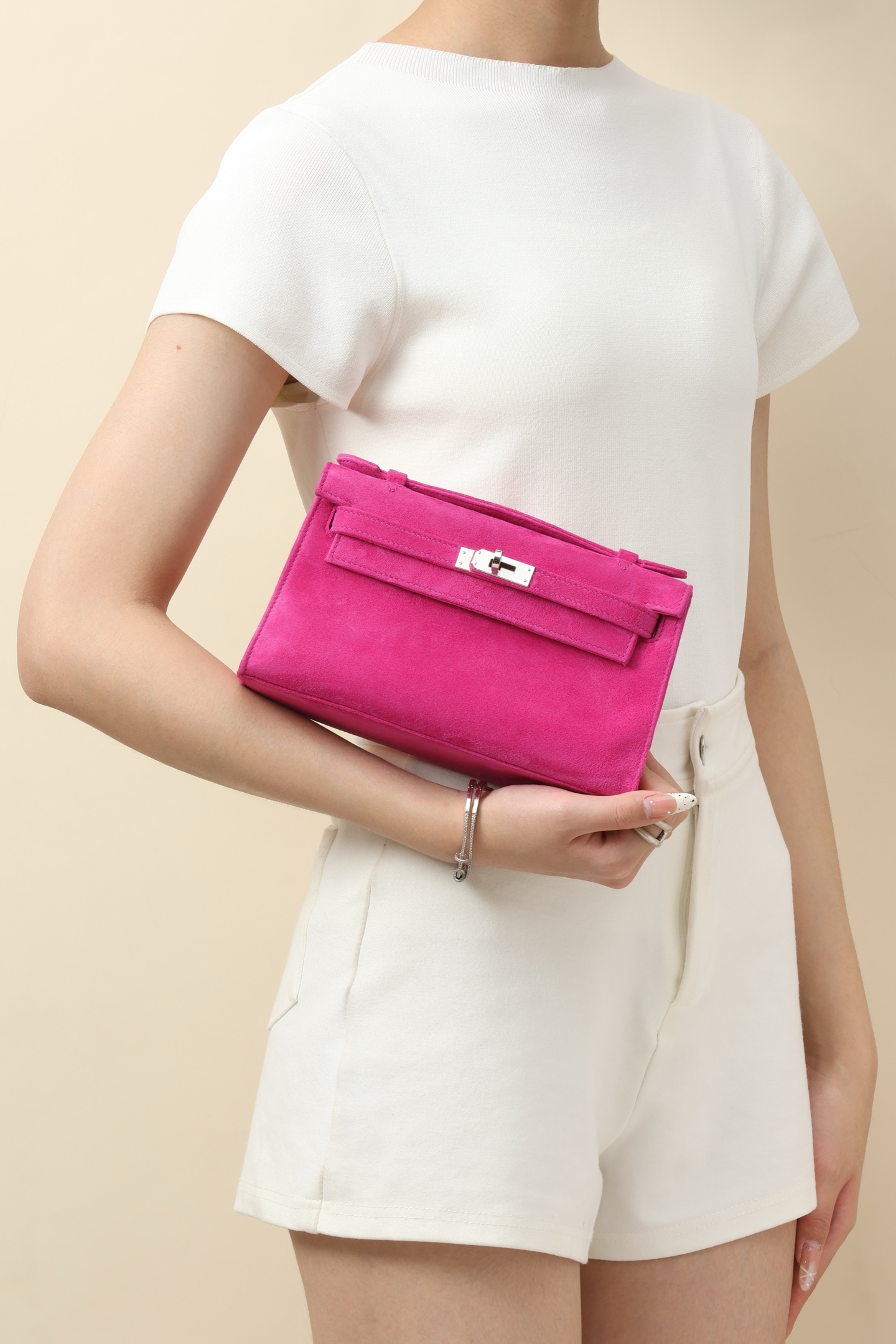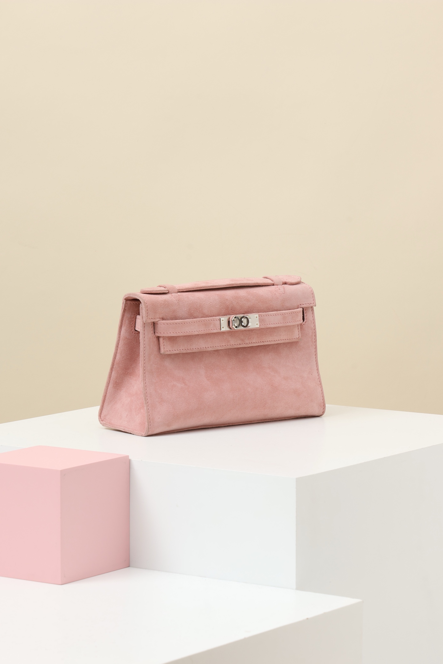 NIGO Hermes Women's Classic Solid Color Suede Kelly Bag With Silver Buckle Handbag Tote Bag Bags #nigo78955