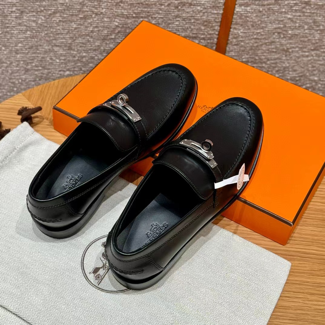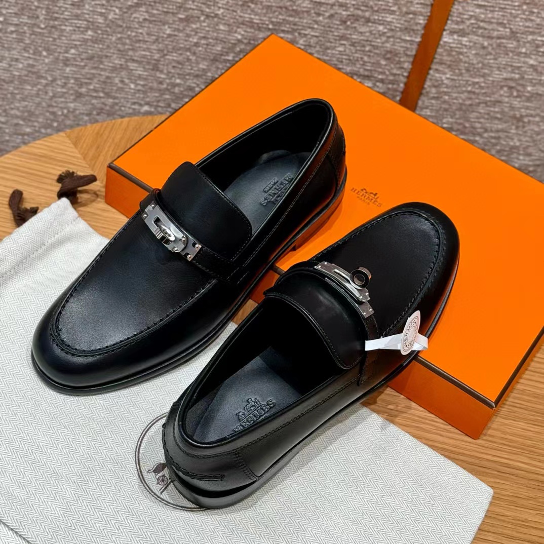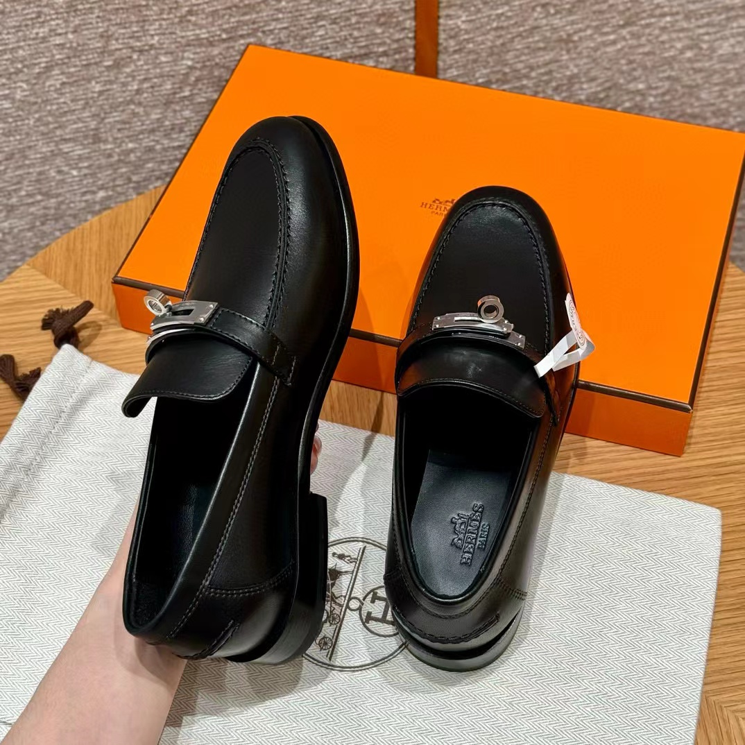 NIGO Hermes Women's Destin Loafers Four Seasons Solid Color Logo Cow Leather Round Toe Casual Shoes #nigo71626