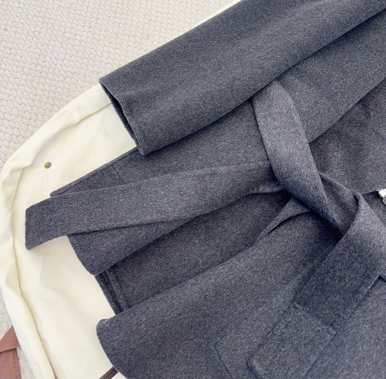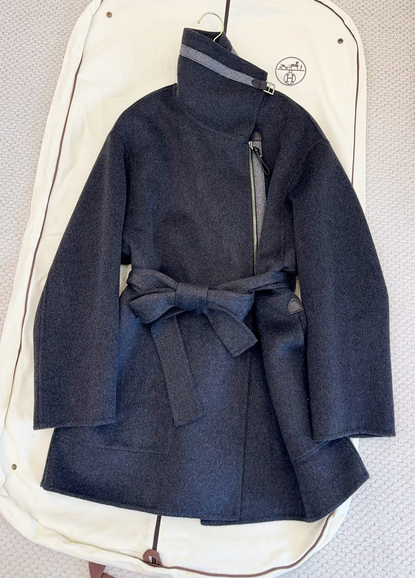 NIGO Hermes Women's Double-Faced Cashmere Mid-Length Coat Autumn/Winter Solid Color Collar Zipper Tie-Front Straight-Cut Jacket Ngvp #nigo2577