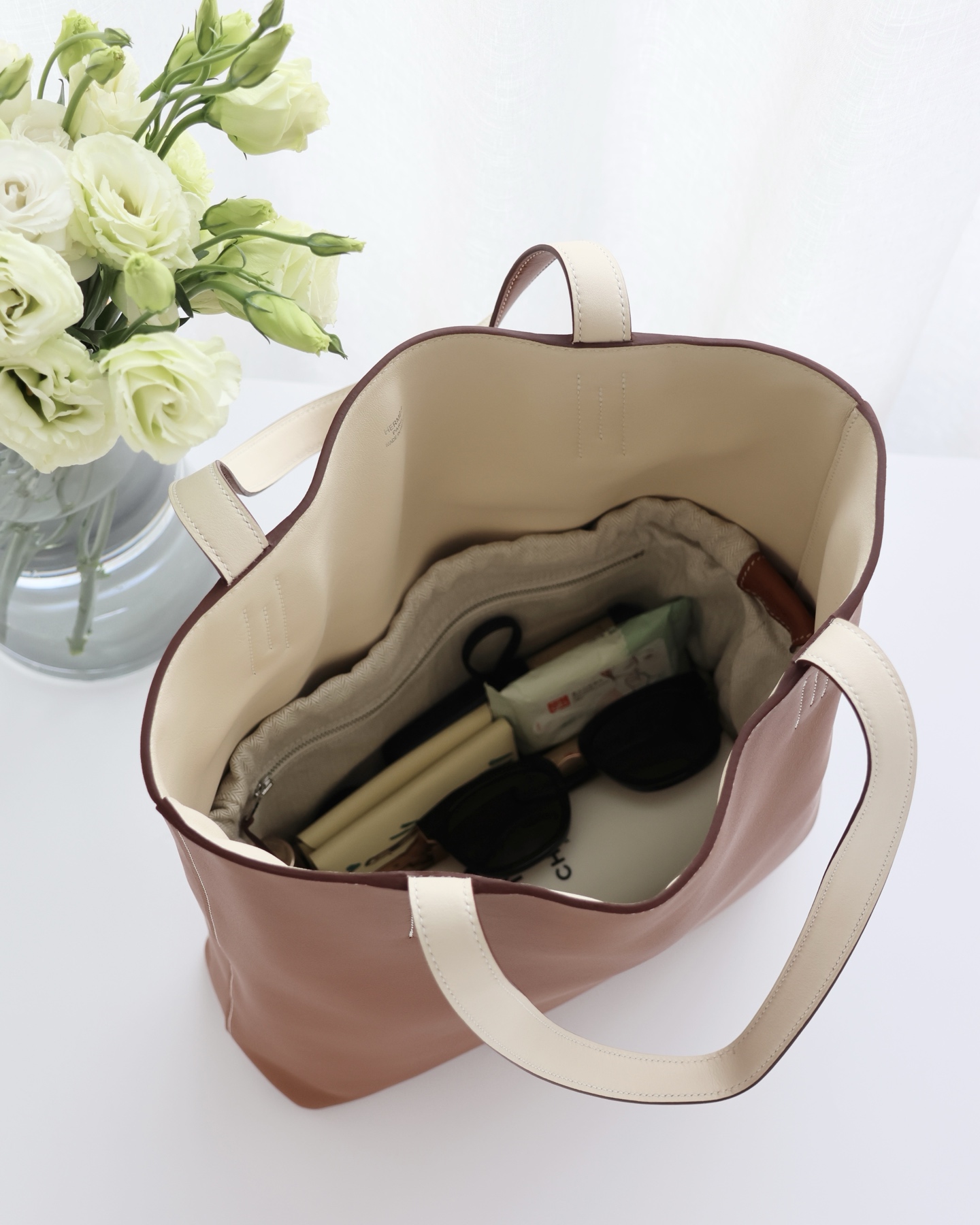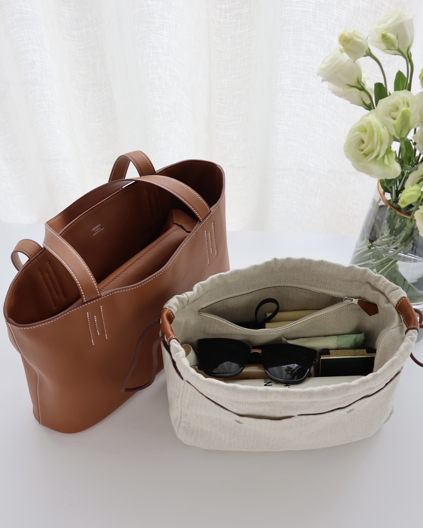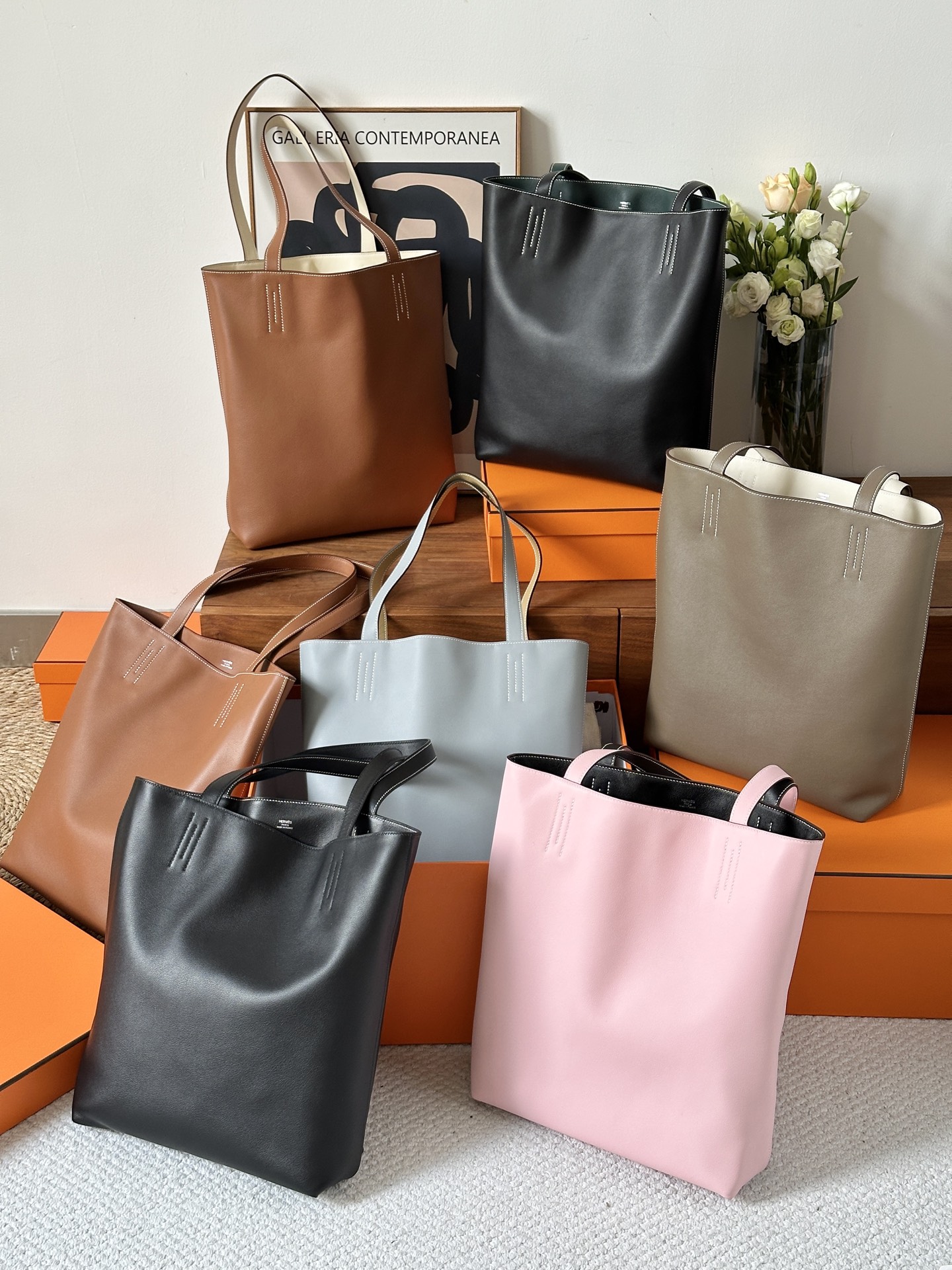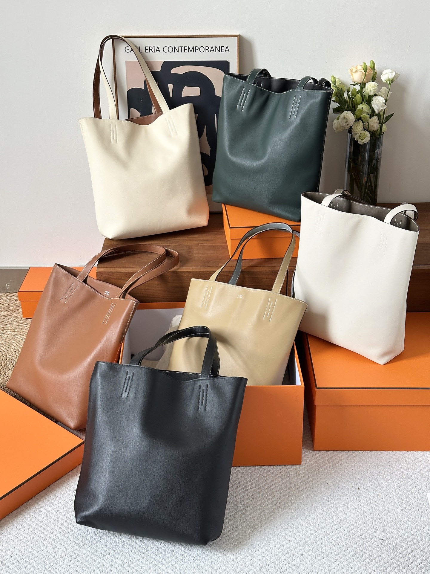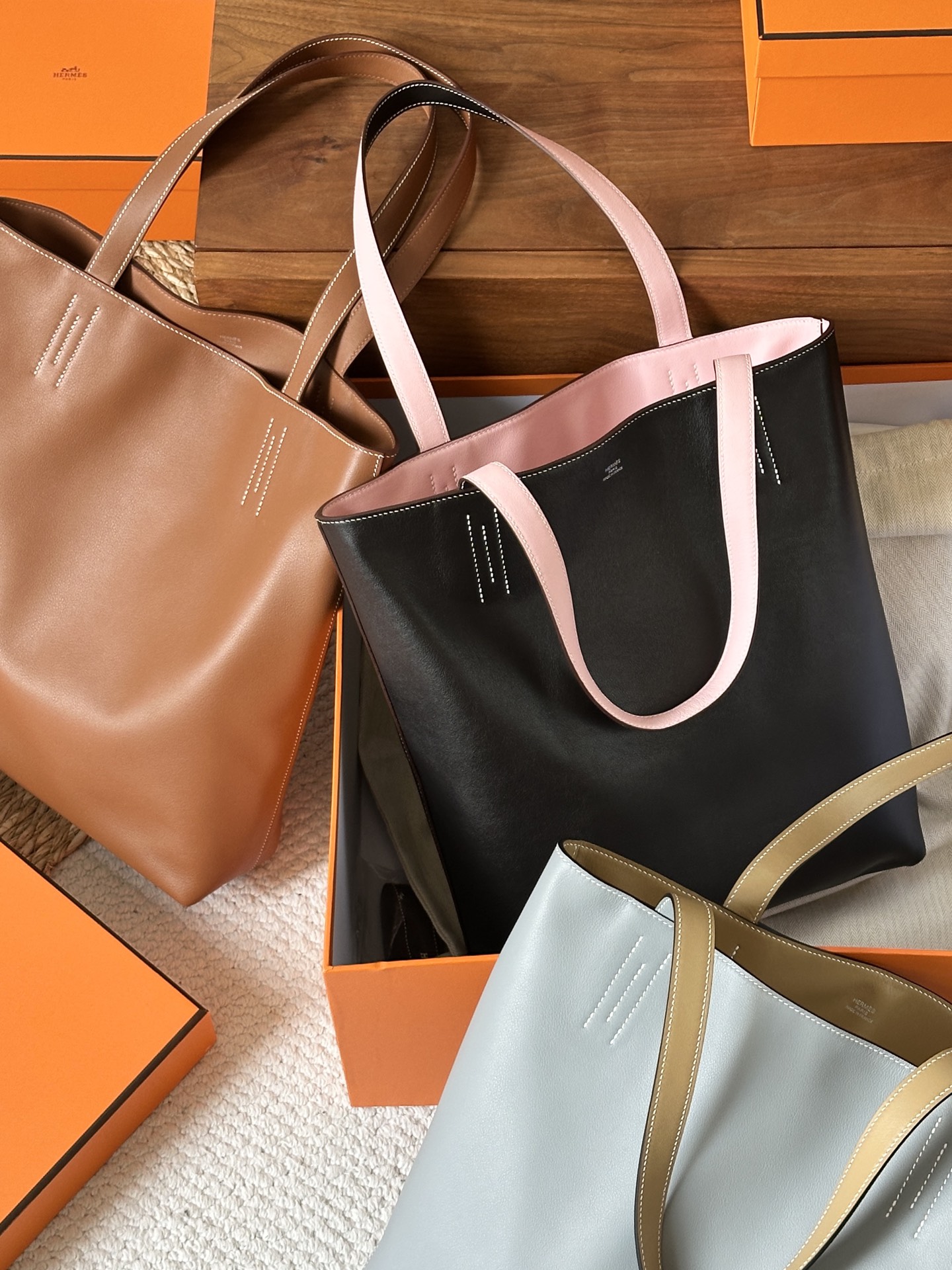 NIGO Hermes Women's Double Sensneo Calfskin Shoulder Bag Fashionable Color-Blocked Open Bag Double-Sided Tote Bag With Makeup Bag Bags Ngvp H086707CAAL #nigo2277