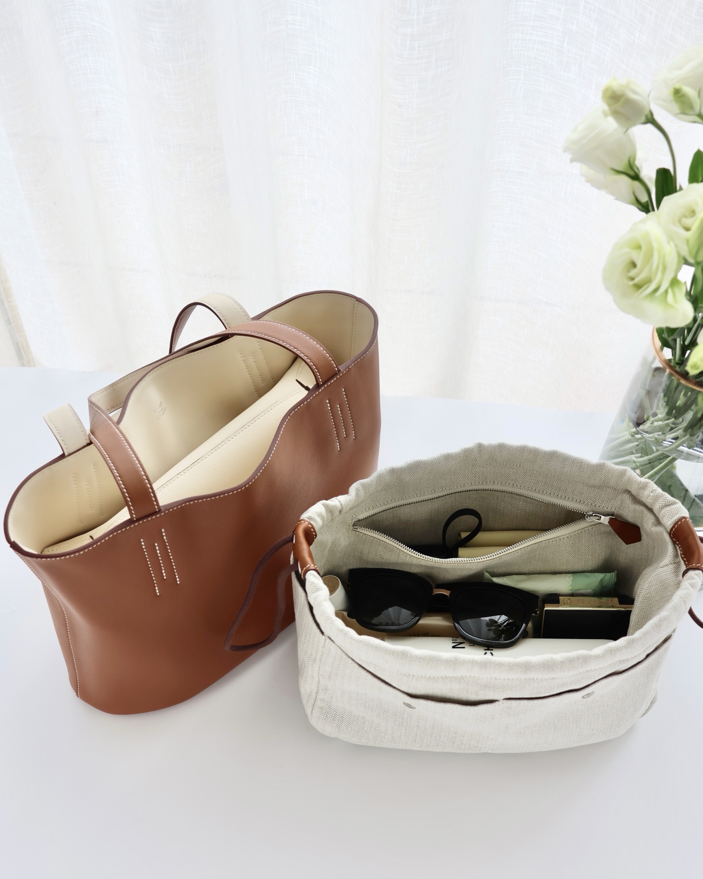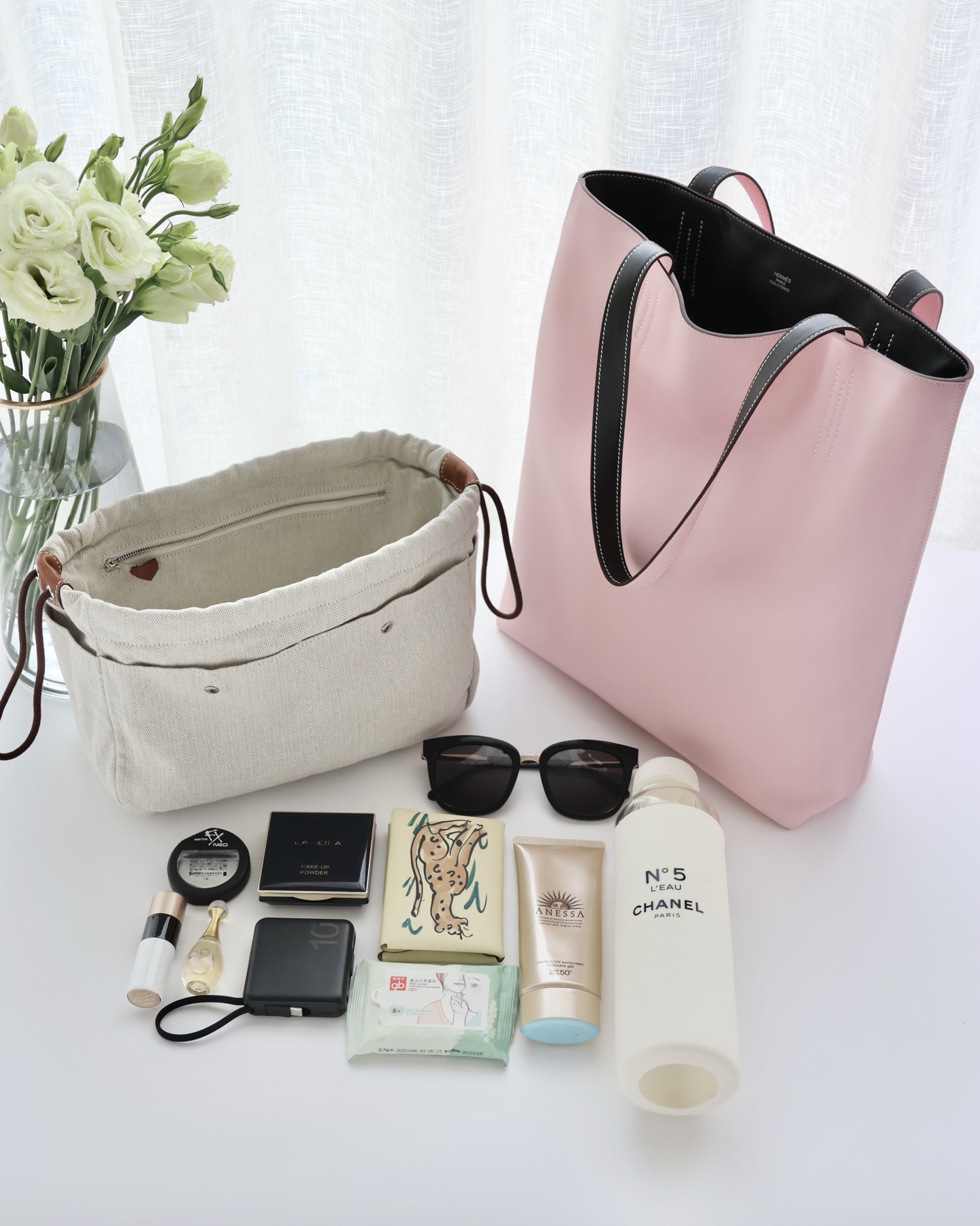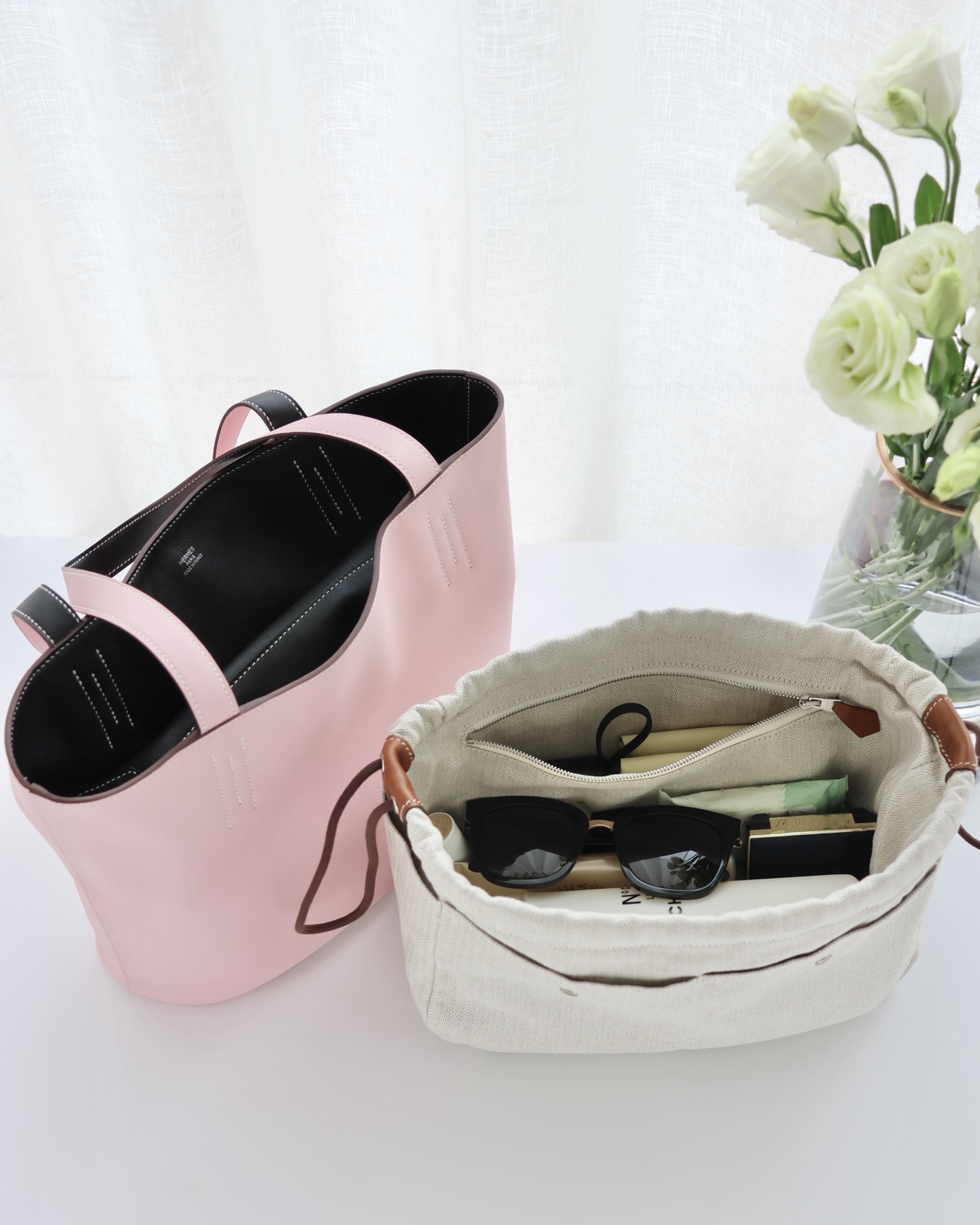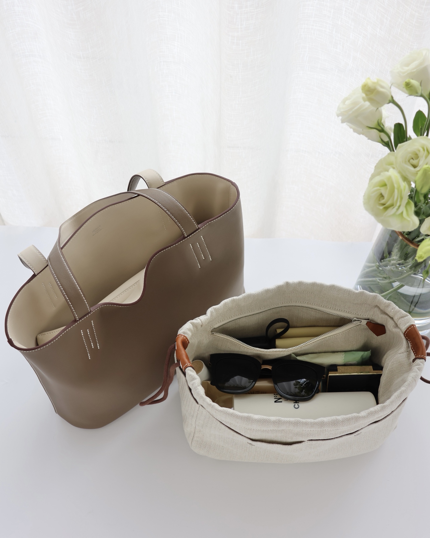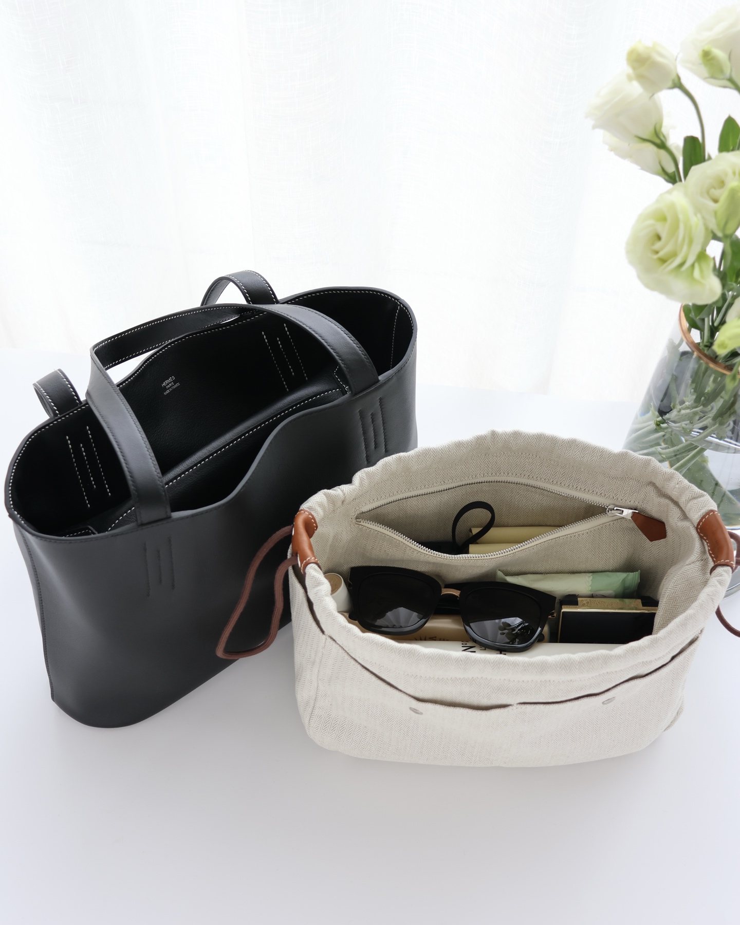 NIGO Hermes Women's Double Sensneo Calfskin Shoulder Bag Fashionable Color-Blocked Open Bag Double-Sided Tote Bag With Makeup Bag Bags Ngvp H086707CAAL #nigo2277