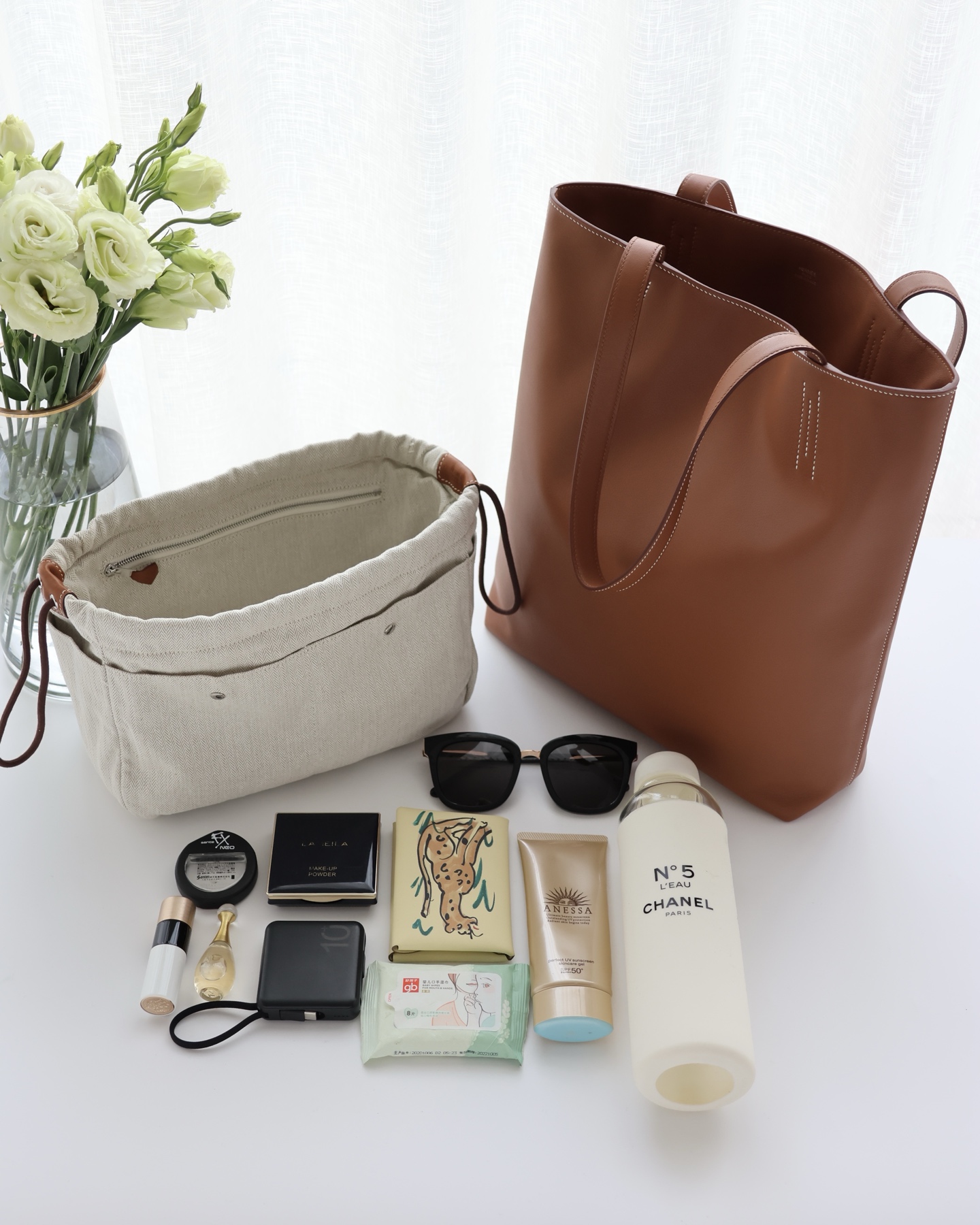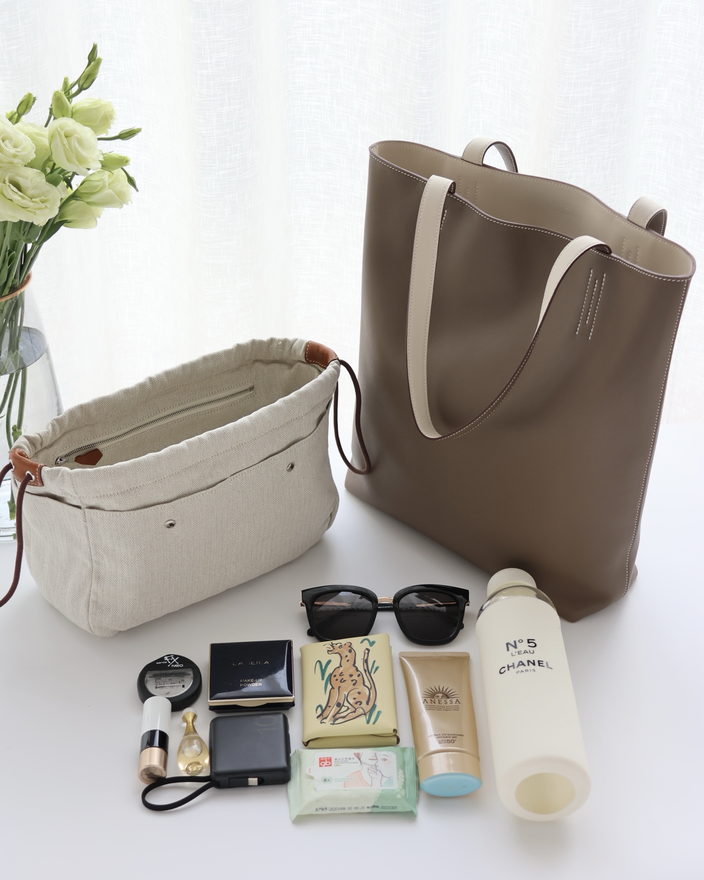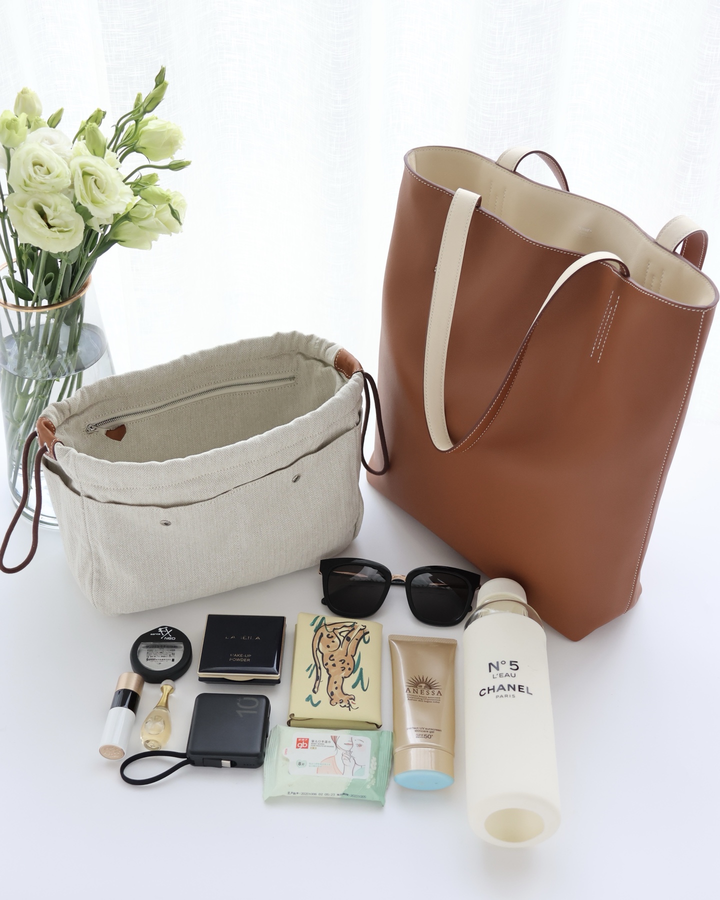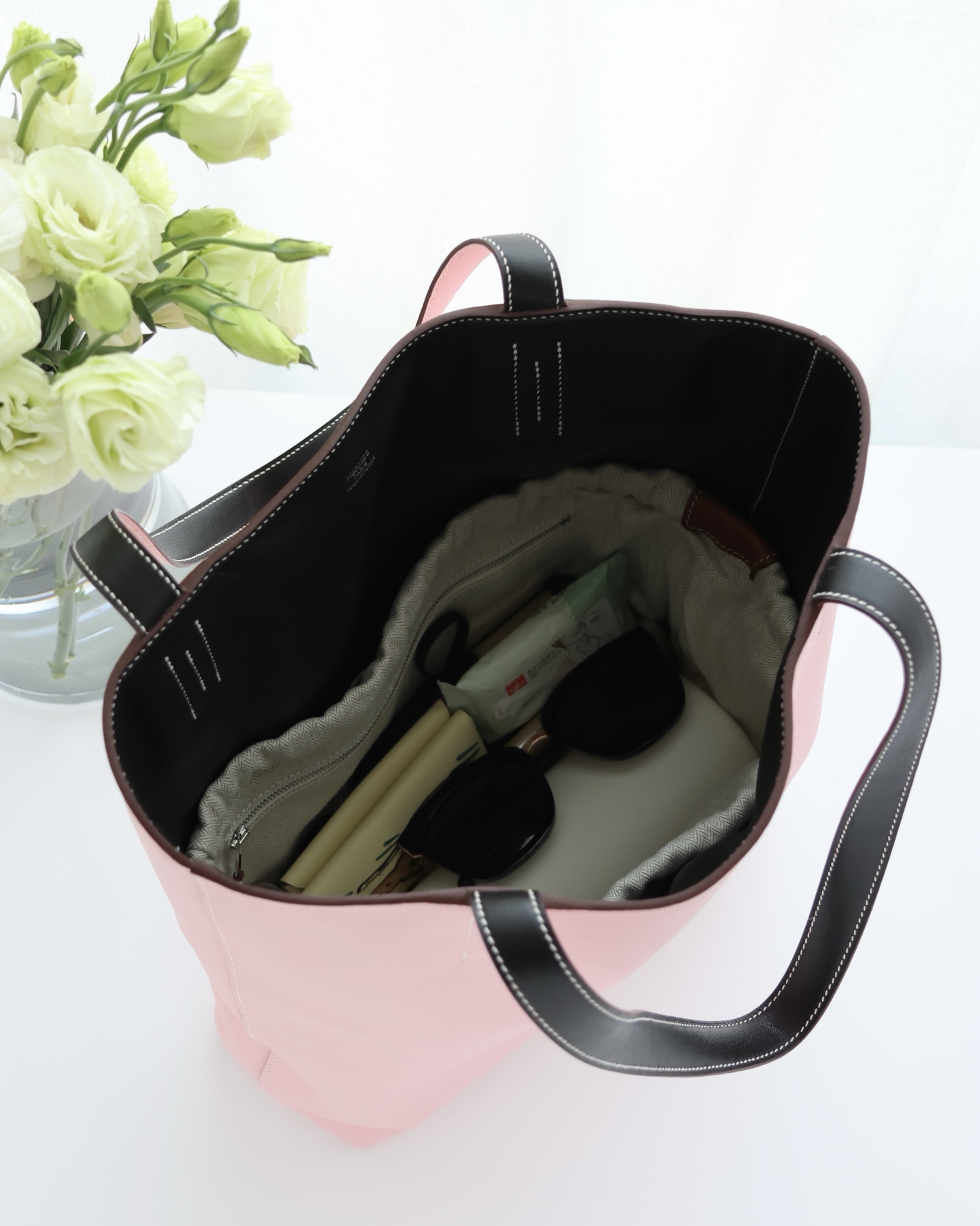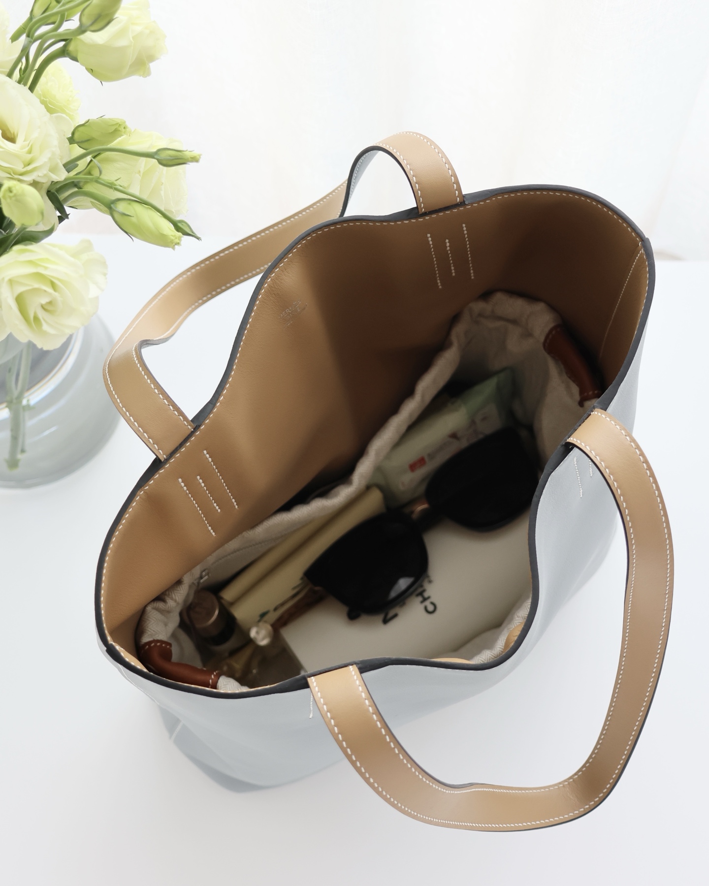 NIGO Hermes Women's Double Sensneo Calfskin Shoulder Bag Fashionable Color-Blocked Open Bag Double-Sided Tote Bag With Makeup Bag Bags Ngvp H086707CAAL #nigo2277